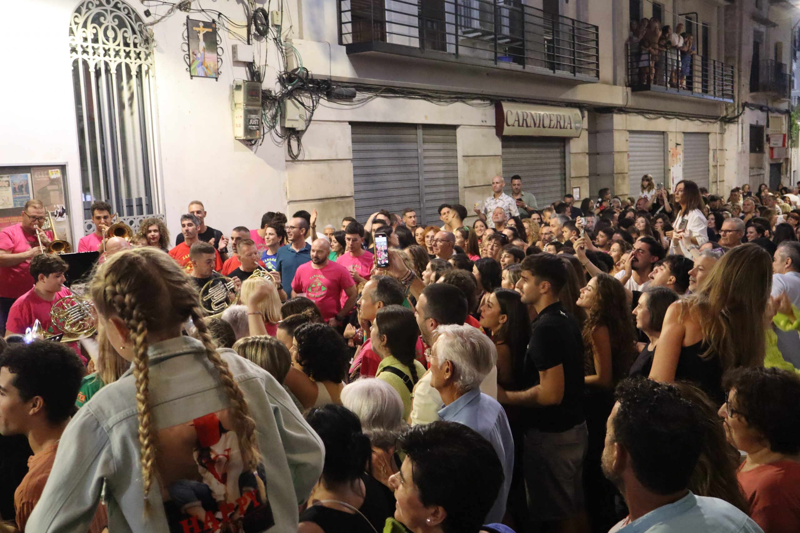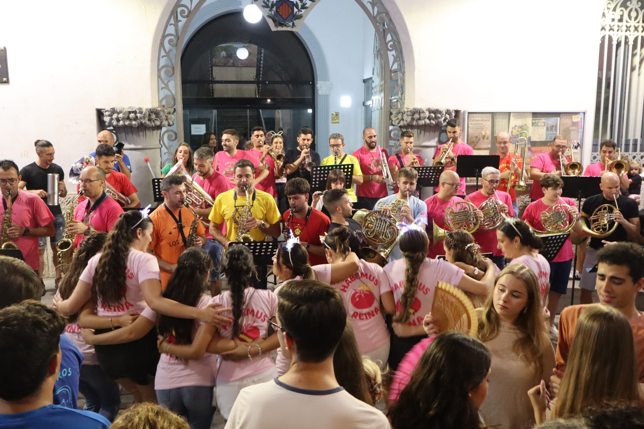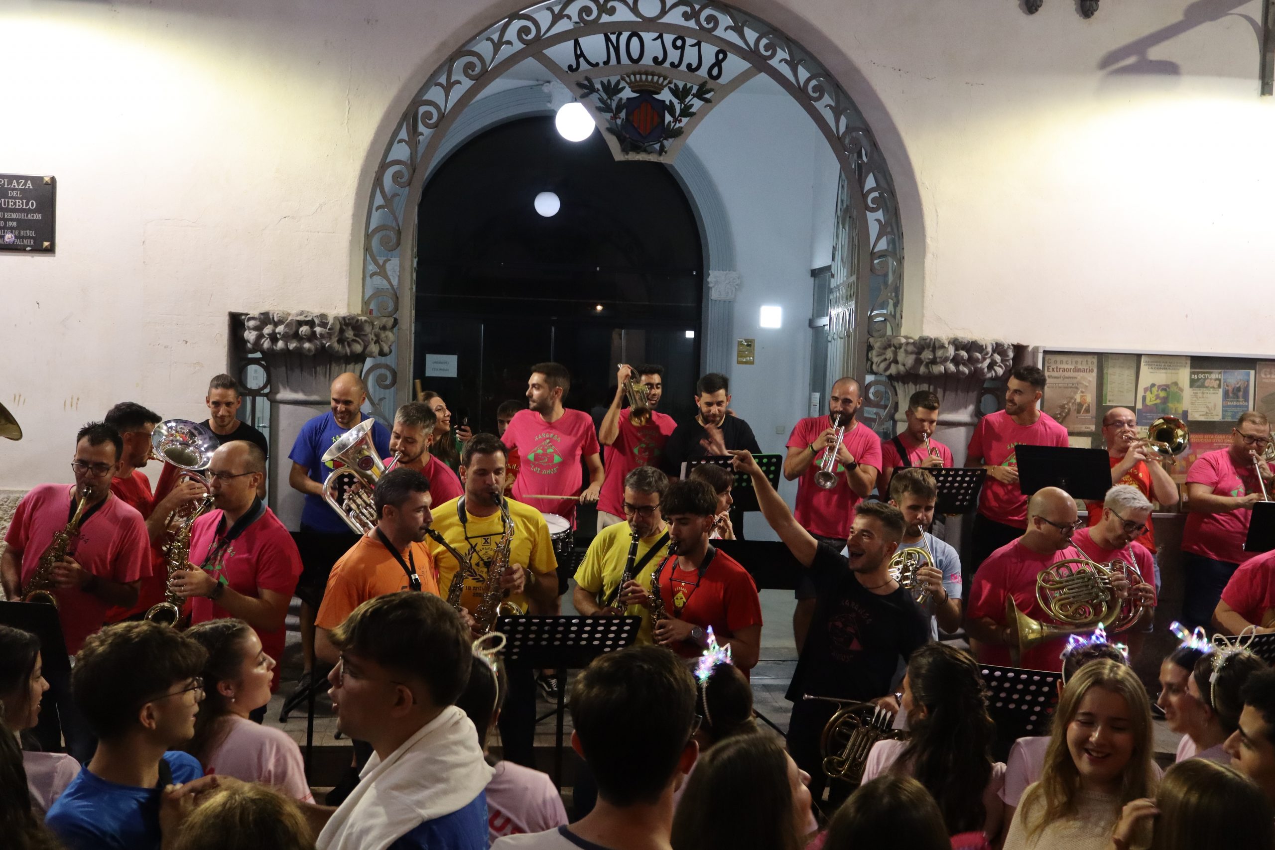 Una vez una abarrotada Plaza del Pueblo terminó de cenar, cientos de buñoleras y buñoleros se levantaron de sus sillas para asistir, por primera vez, al pregón de las fiestas. Carmen Alís animó a las vecinas y vecinos a disfrutar de las fiestas y a vivirlas con intensidad. Antes, la Xaranga Lox Xinos de Buñol ya había calentado el ambiente con varias piezas musicales que levantaron a todos de sus sillas y los pusieron a bailar. Una vez, Carmen Alís terminó su discurso, la Xaranga interpretó el «Himno a Buñol» que cientos de personas cantaron al unísono en la Plaza del Pueblo dejándose sus gargantas. Todo ello acompañado de cánticos en los que Buñol siempre fue el protagonista.