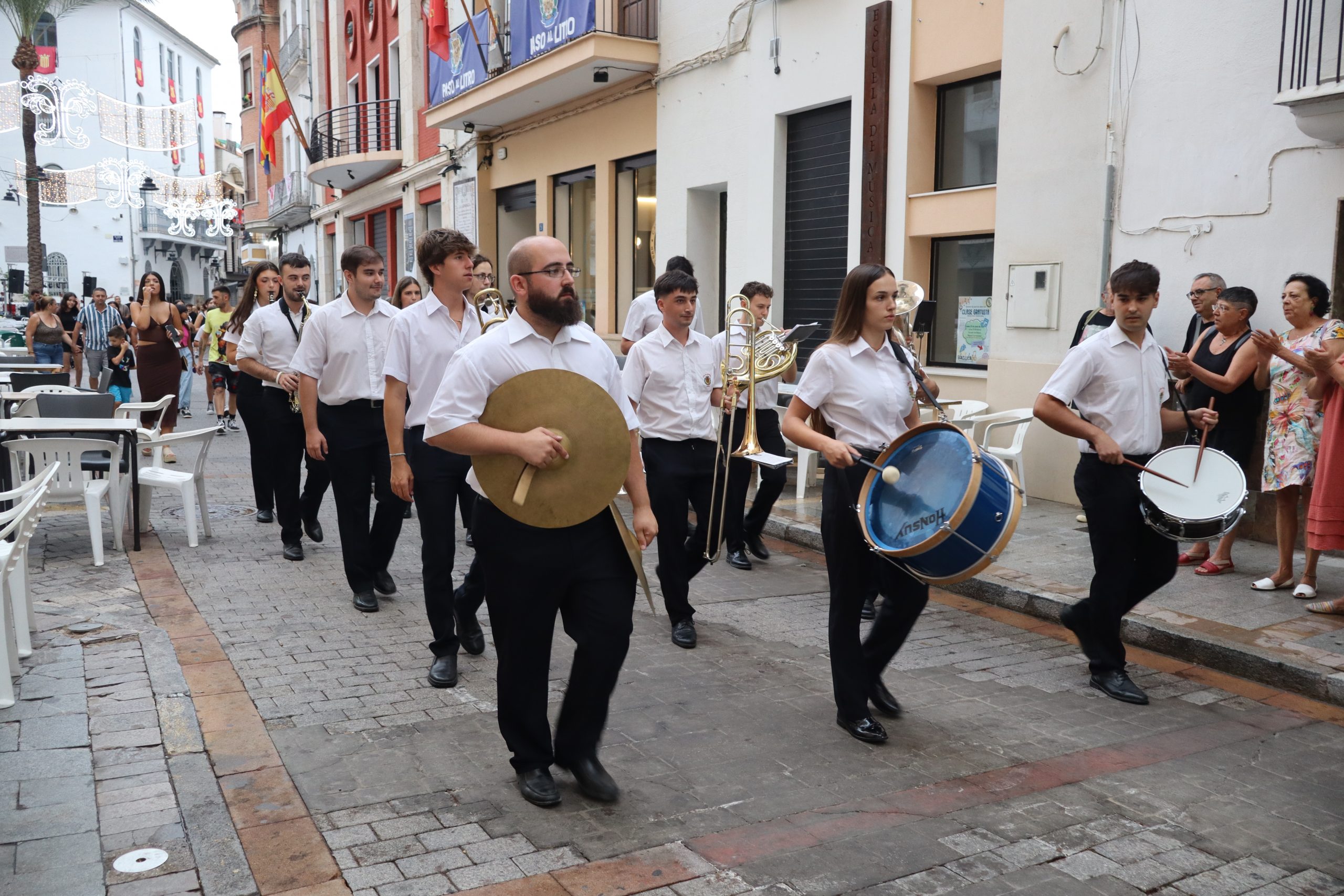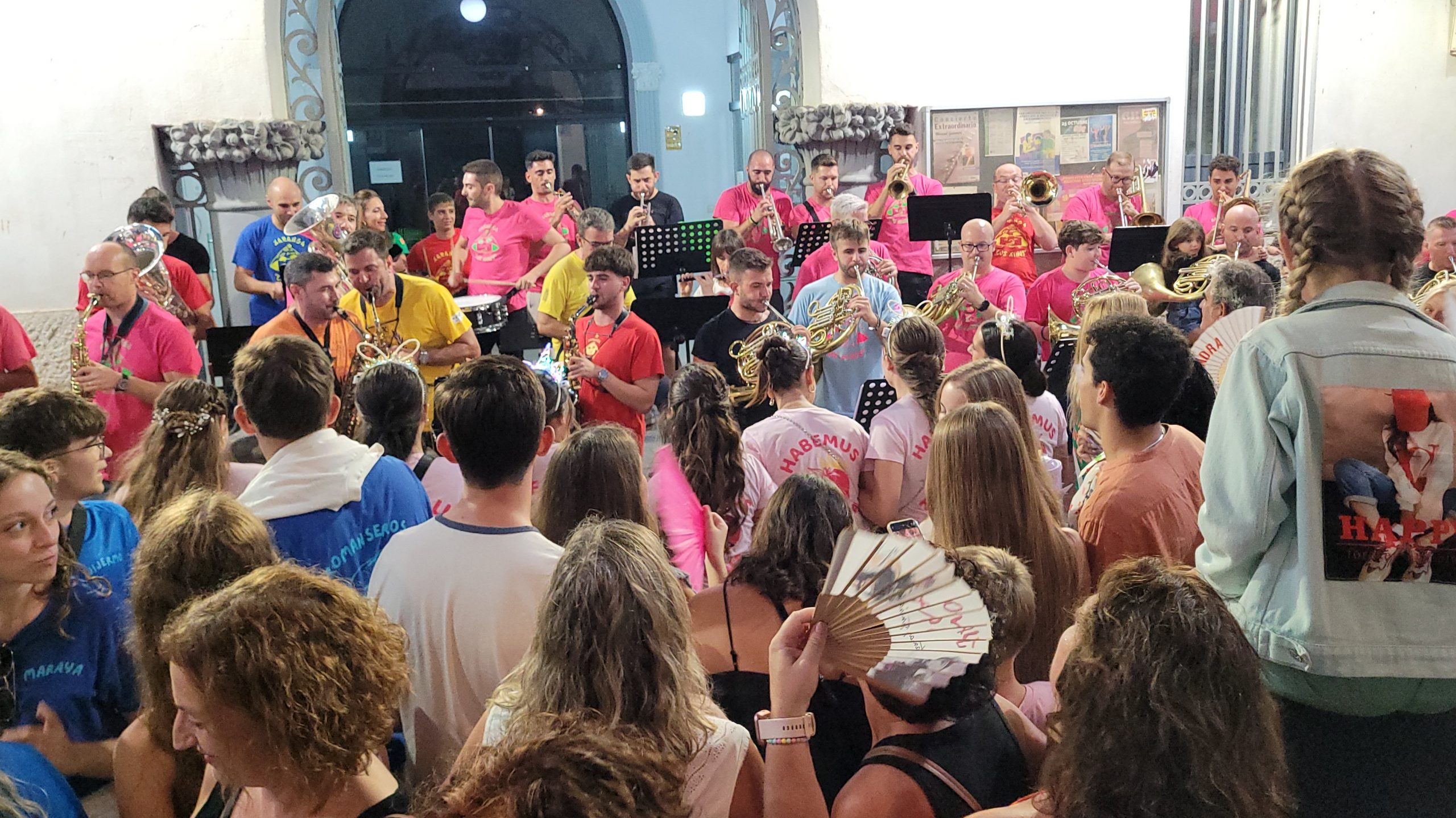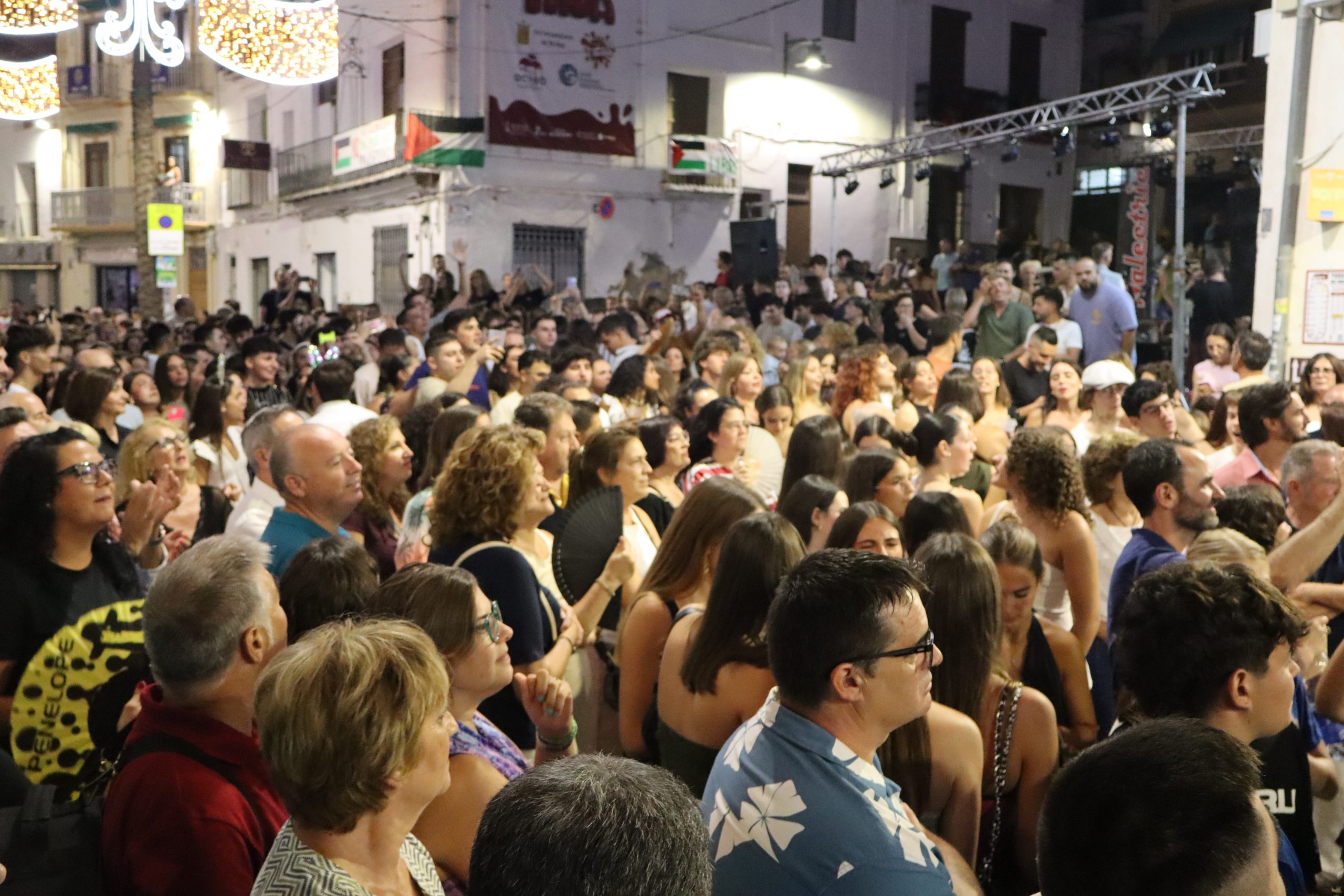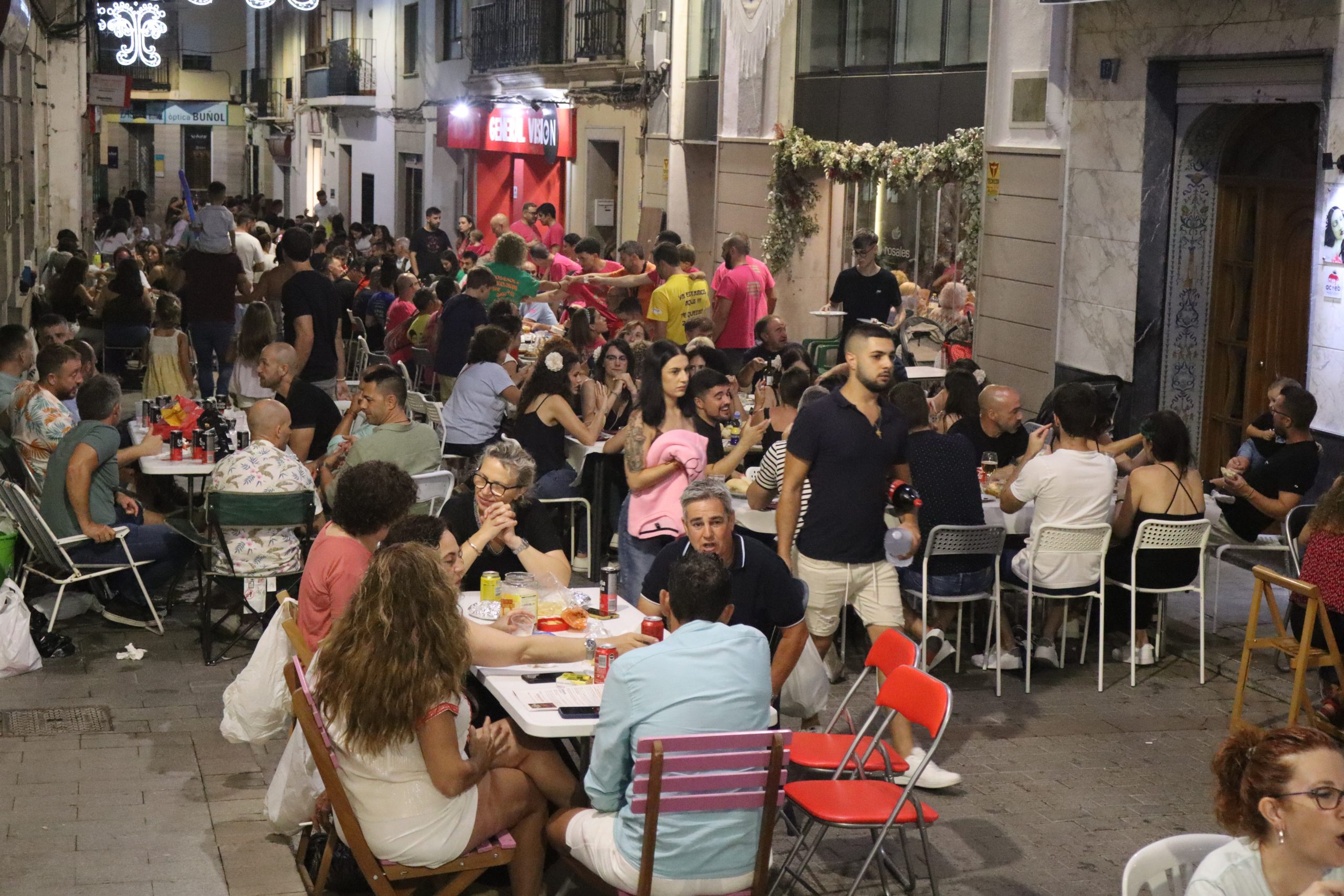 Una vez una abarrotada Plaza del Pueblo terminó de cenar, cientos de buñoleras y buñoleros se levantaron de sus sillas para asistir, por primera vez, al pregón de las fiestas. Carmen Alís animó a las vecinas y vecinos a disfrutar de las fiestas y a vivirlas con intensidad. Antes, la Xaranga Lox Xinos de Buñol ya había calentado el ambiente con varias piezas musicales que levantaron a todos de sus sillas y los pusieron a bailar. Una vez, Carmen Alís terminó su discurso, la Xaranga interpretó el «Himno a Buñol» que cientos de personas cantaron al unísono en la Plaza del Pueblo dejándose sus gargantas. Todo ello acompañado de cánticos en los que Buñol siempre fue el protagonista.