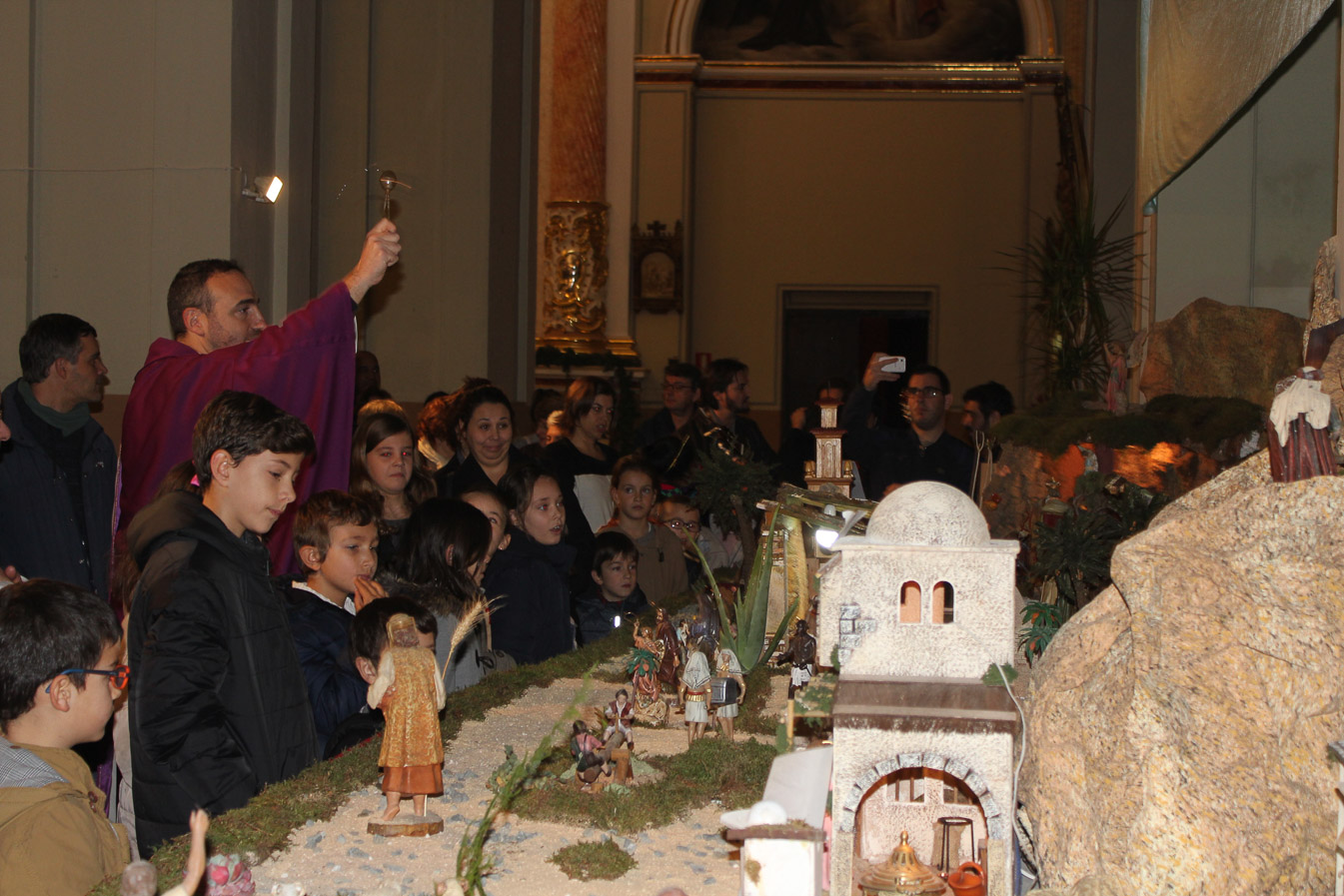 Instantes después se procedió a la inauguración y bendición del Belén por parte del párroco de la localidad, Enrique Boronat Albors. Este año, el Nacimiento es muy catequético a fin de que el visitante pueda visualizar mejor las escenas y consta de 5 metros cuadrados. Coincidiendo con el 250 aniversario de la consagración de este templo, aparece la maqueta en madera de esta parroquia que realizo en vida el buñolense José Motril.