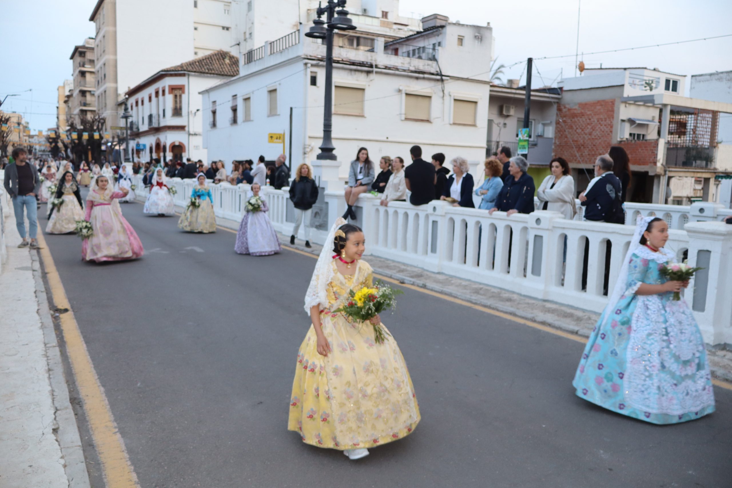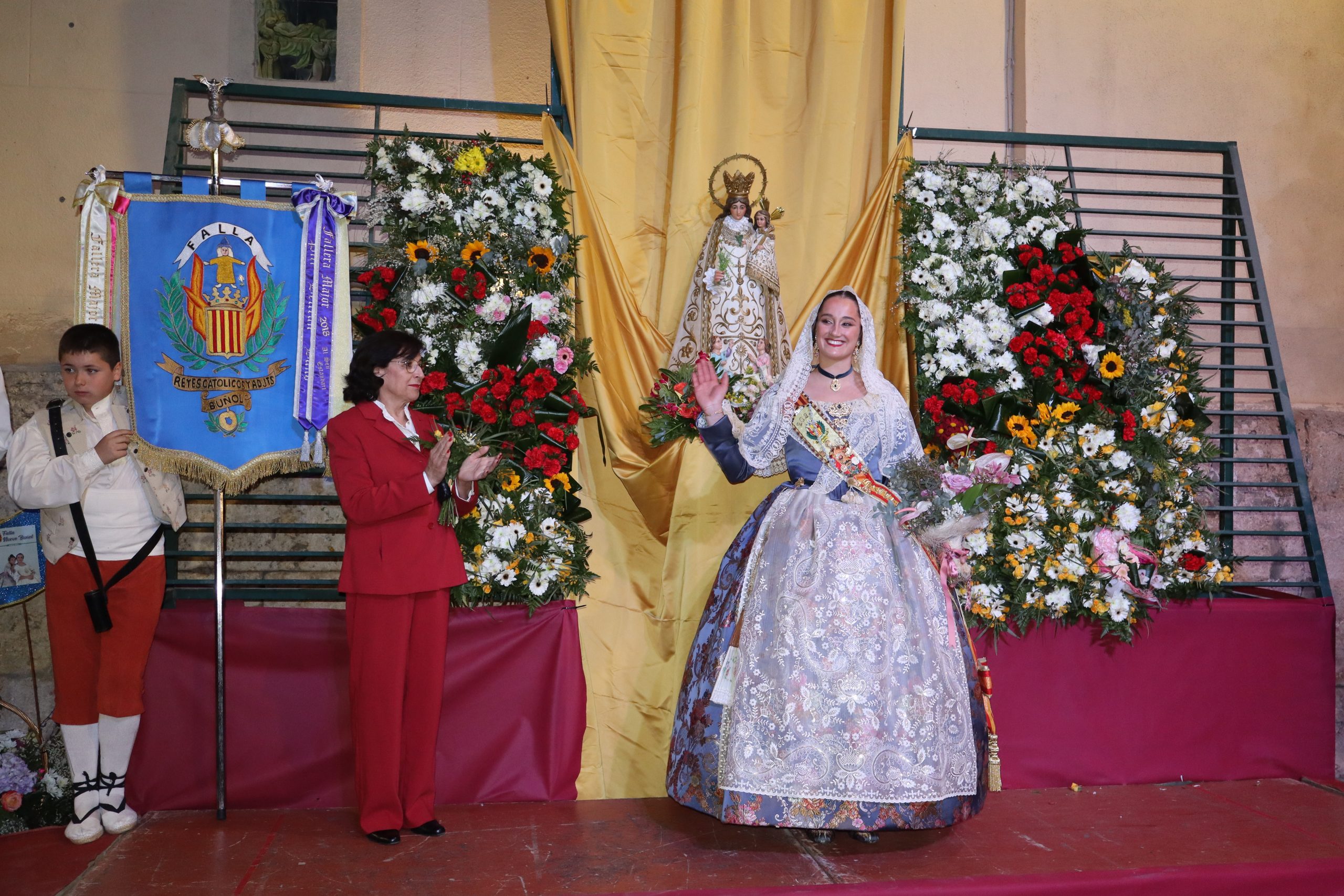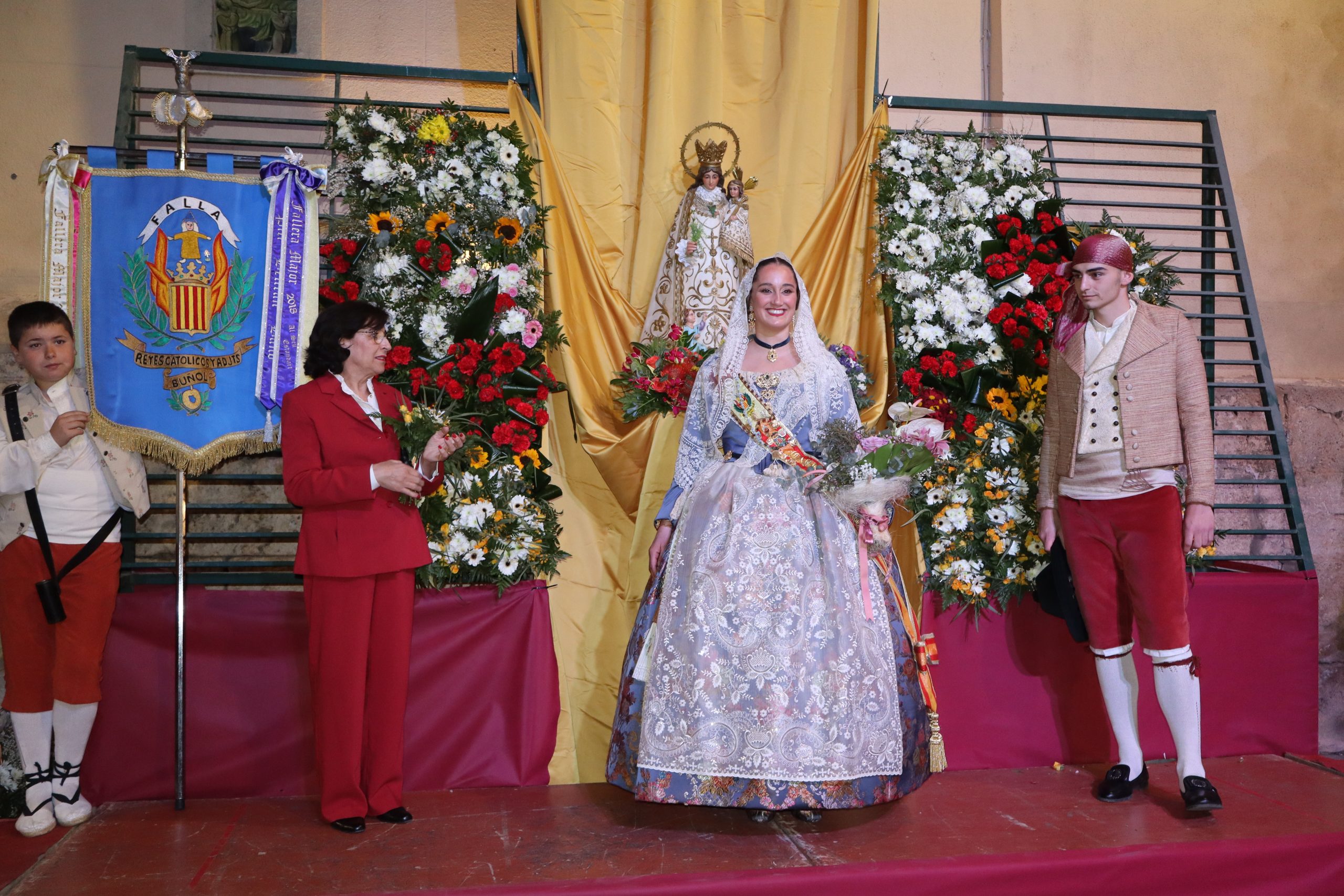 Redacción.- Ayer por la tarde decenas de falleras y falleros partieron de Avenida de la Violeta de Buñol para celebrar la Ofrenda a la Virgen de los Desamparados uno de los actos más emotivos de las Fallas de la localidad. Familias enteras, falleras y falleros partieron con sus ramos, centros, cestas, etc hacia la Parroquia San Pedro Apóstol, donde la imagen de la Virgen presidió el altar mayor.