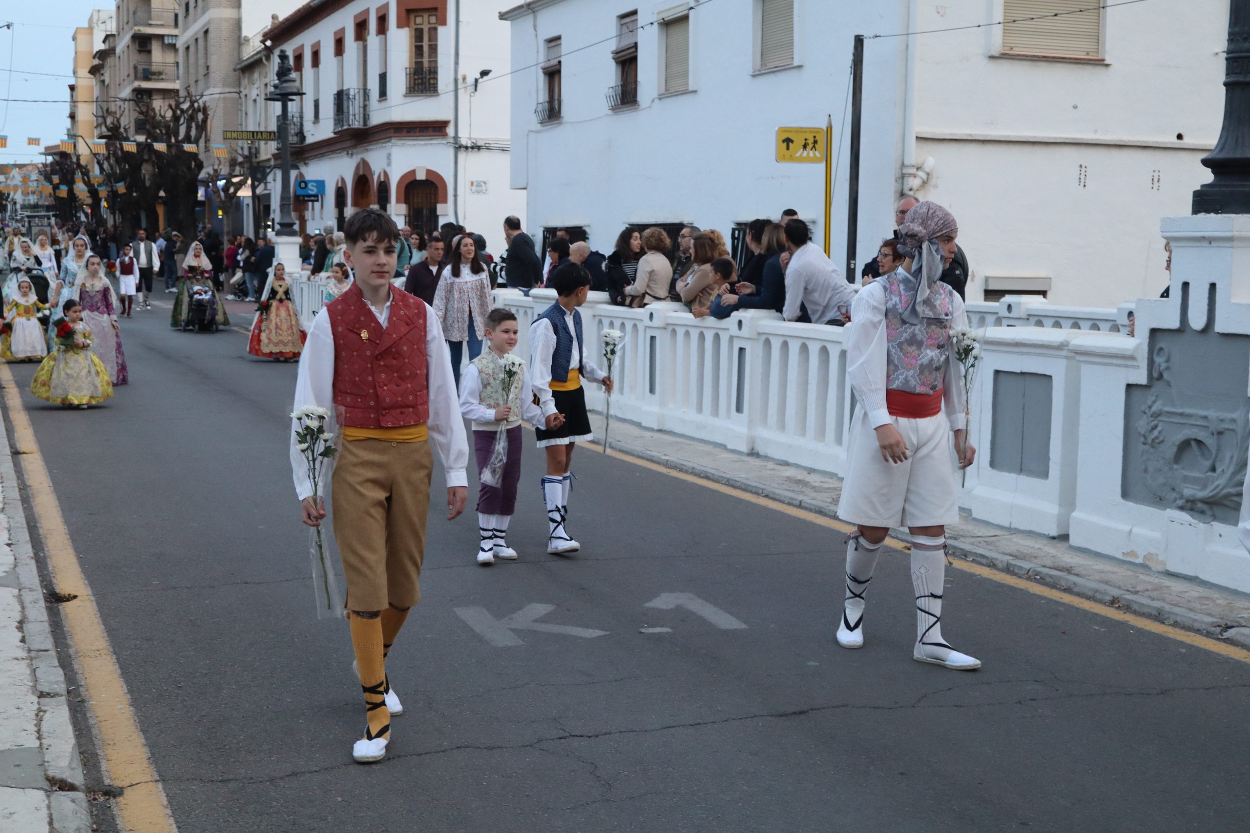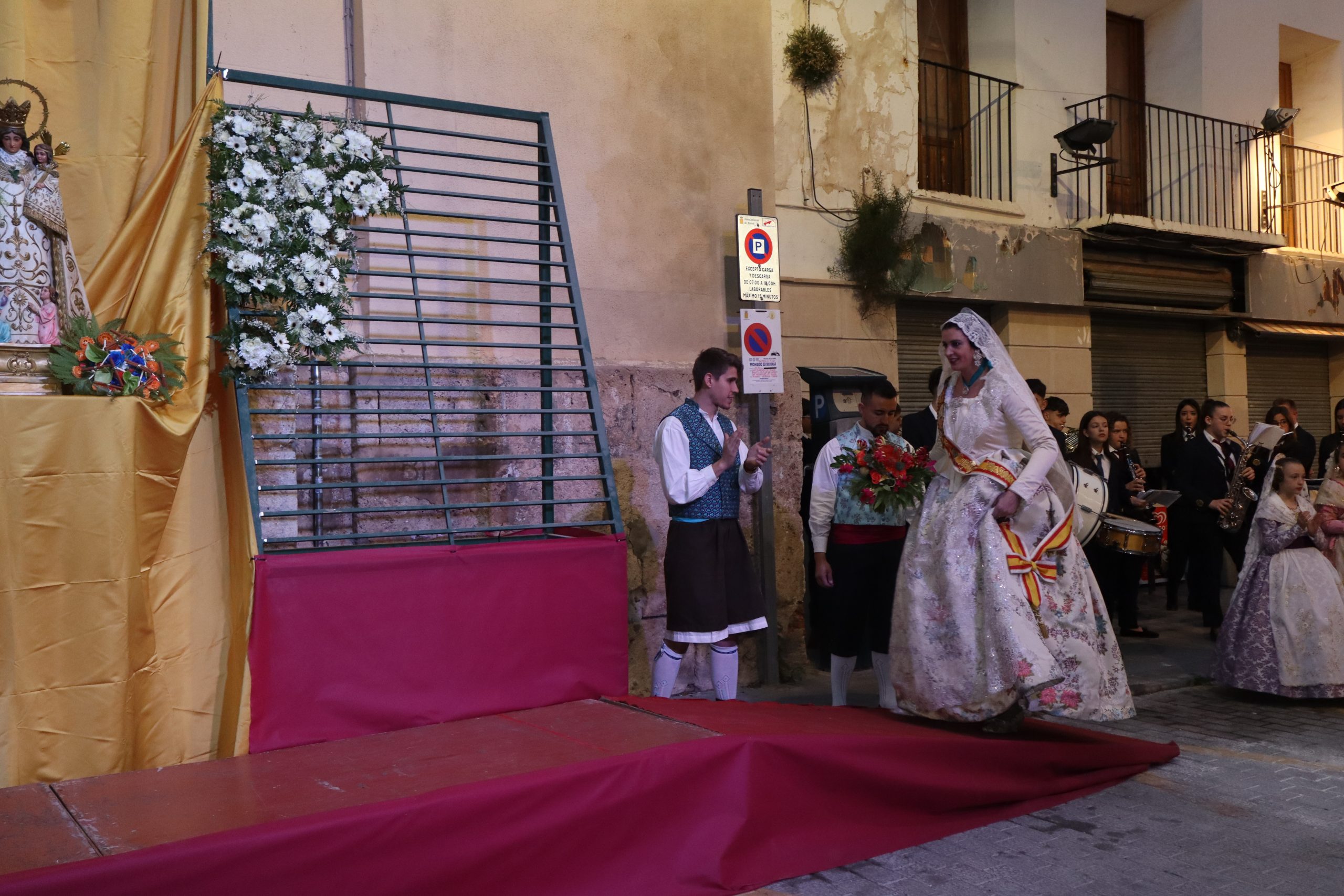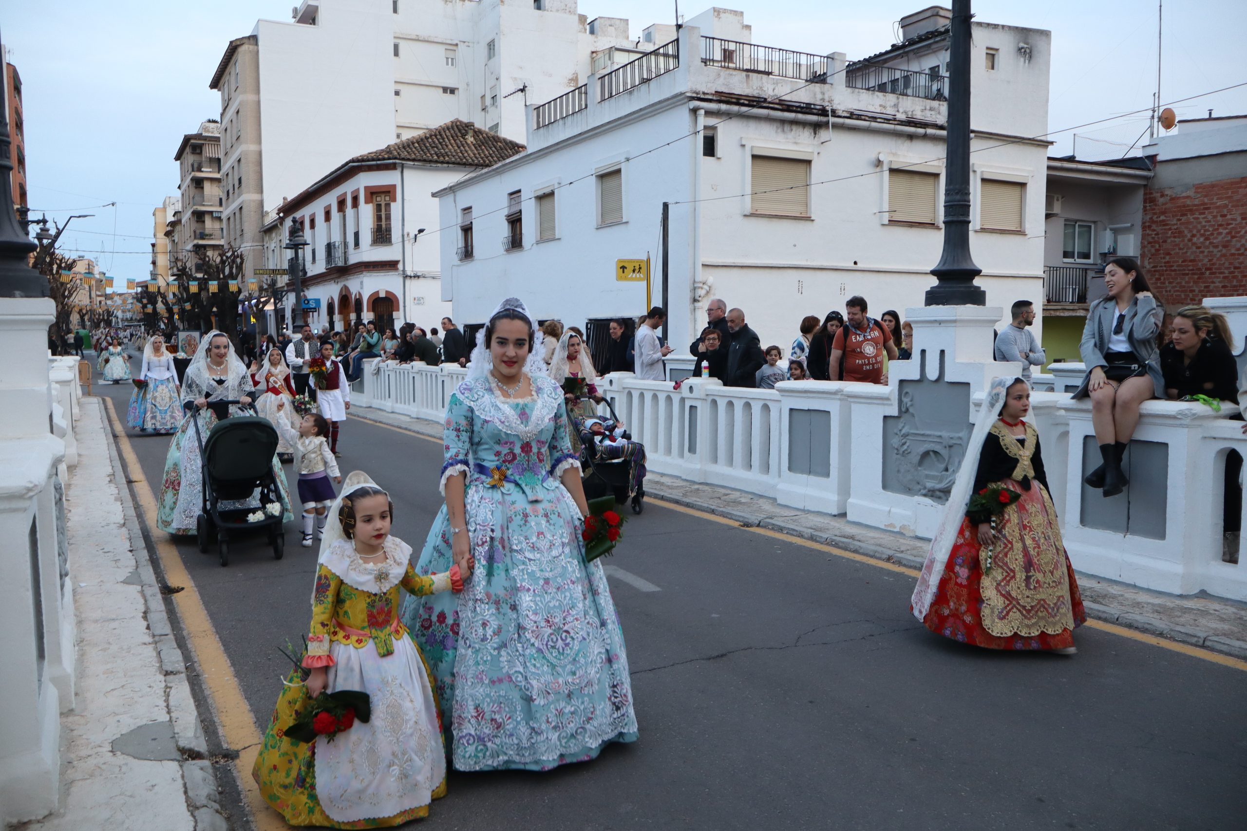 Redacción.- Ayer por la tarde decenas de falleras y falleros partieron de Avenida de la Violeta de Buñol para celebrar la Ofrenda a la Virgen de los Desamparados uno de los actos más emotivos de las Fallas de la localidad. Familias enteras, falleras y falleros partieron con sus ramos, centros, cestas, etc hacia la Parroquia San Pedro Apóstol, donde la imagen de la Virgen presidió el altar mayor.