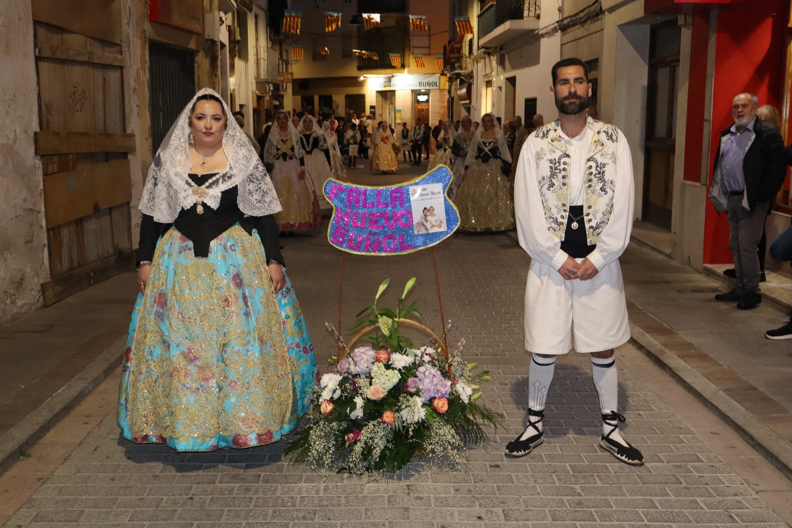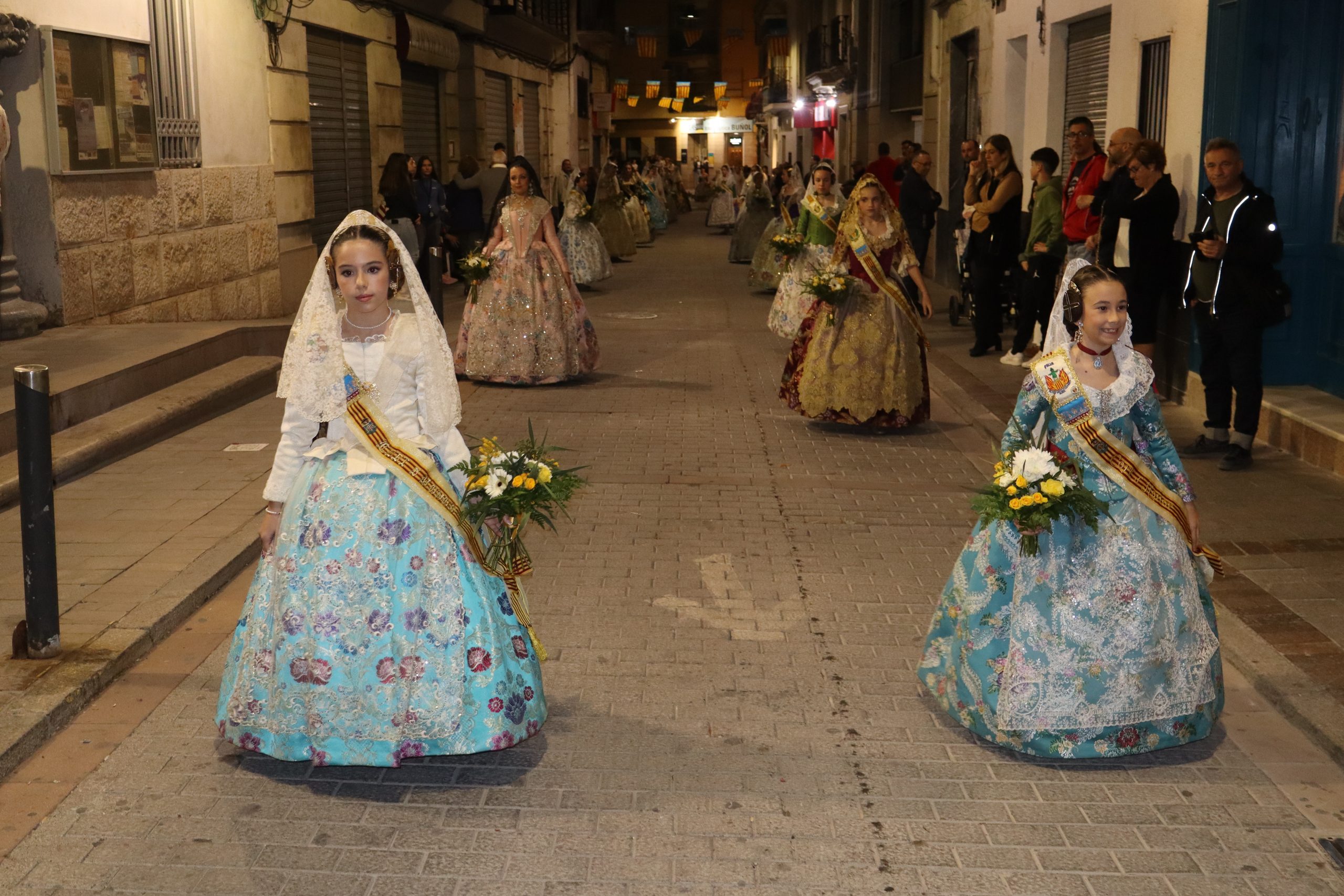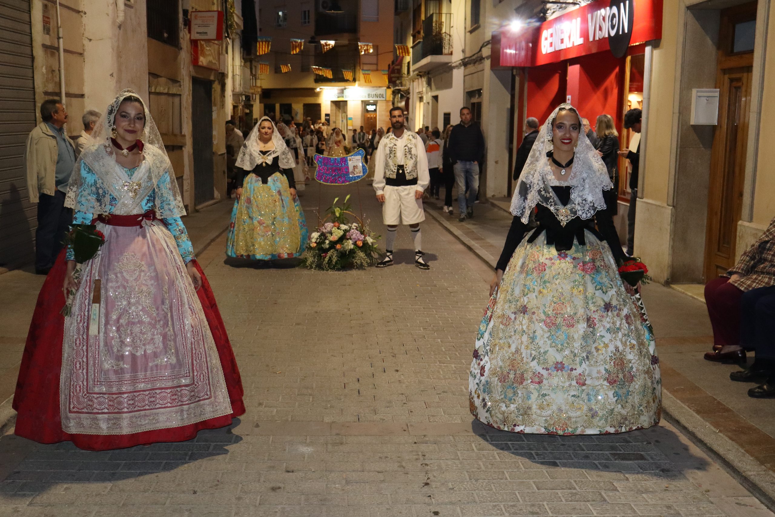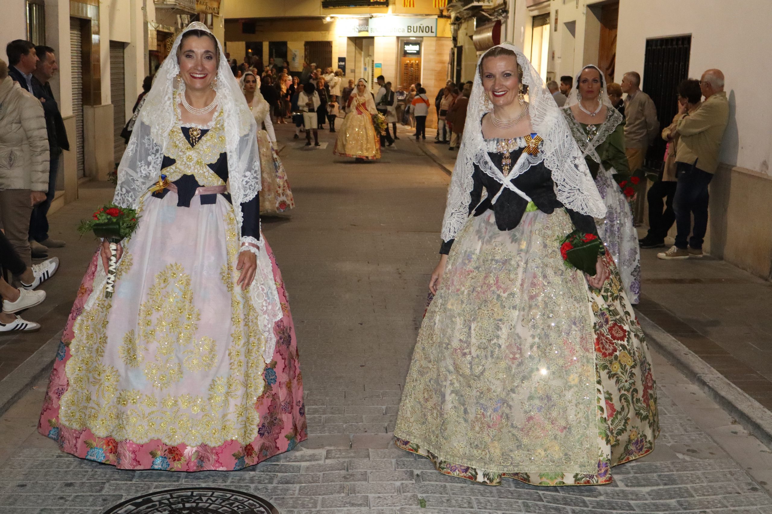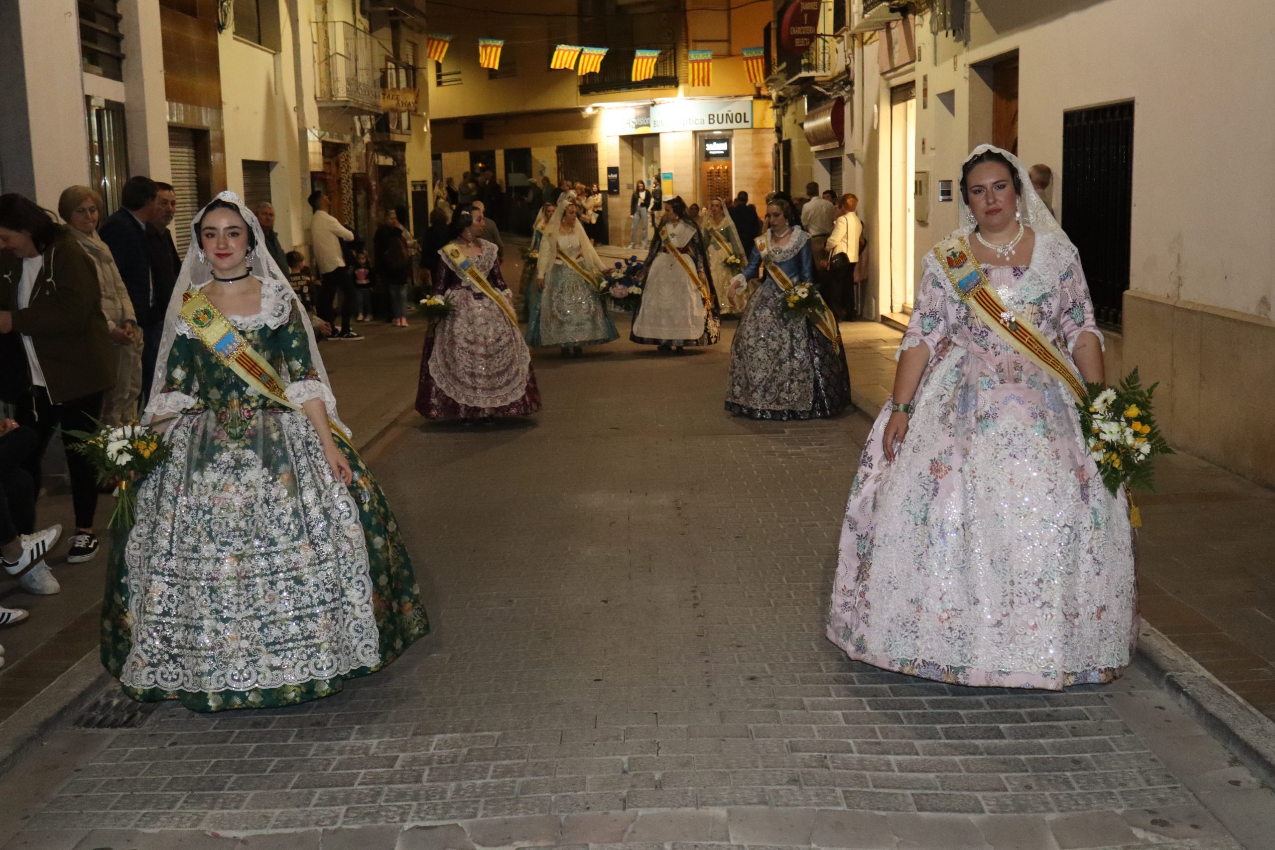 La Ofrenda siempre es uno de los actos más emotivos en el mundo fallero, sobre todo para las Falleras Mayores. Es un evento donde las protagonistas de cada comisión se ven arropadas por toda su comisión, que sale en masa a participar. Y no solo las falleras y falleros dieron alegría y color a la Avenida de la Violeta, País Valenciano, Calle del Cid y la Plaza del Pueblo, sino también los numerosísimos ciudadanos que salieron a ver a sus familiares, a su nieta, a su nieto, hijo o hija desfilar. Lo aplausos se sucedían a uno y otro lado de las calles y eso engrandeció un acto ya de por sí, enorme. Fueron las comisiones de la Falla Buñol Pueblo, la Falla Nuevo Buñol y la Falla Reyes Católicos, las protagonistas de una tarde maravillosa.