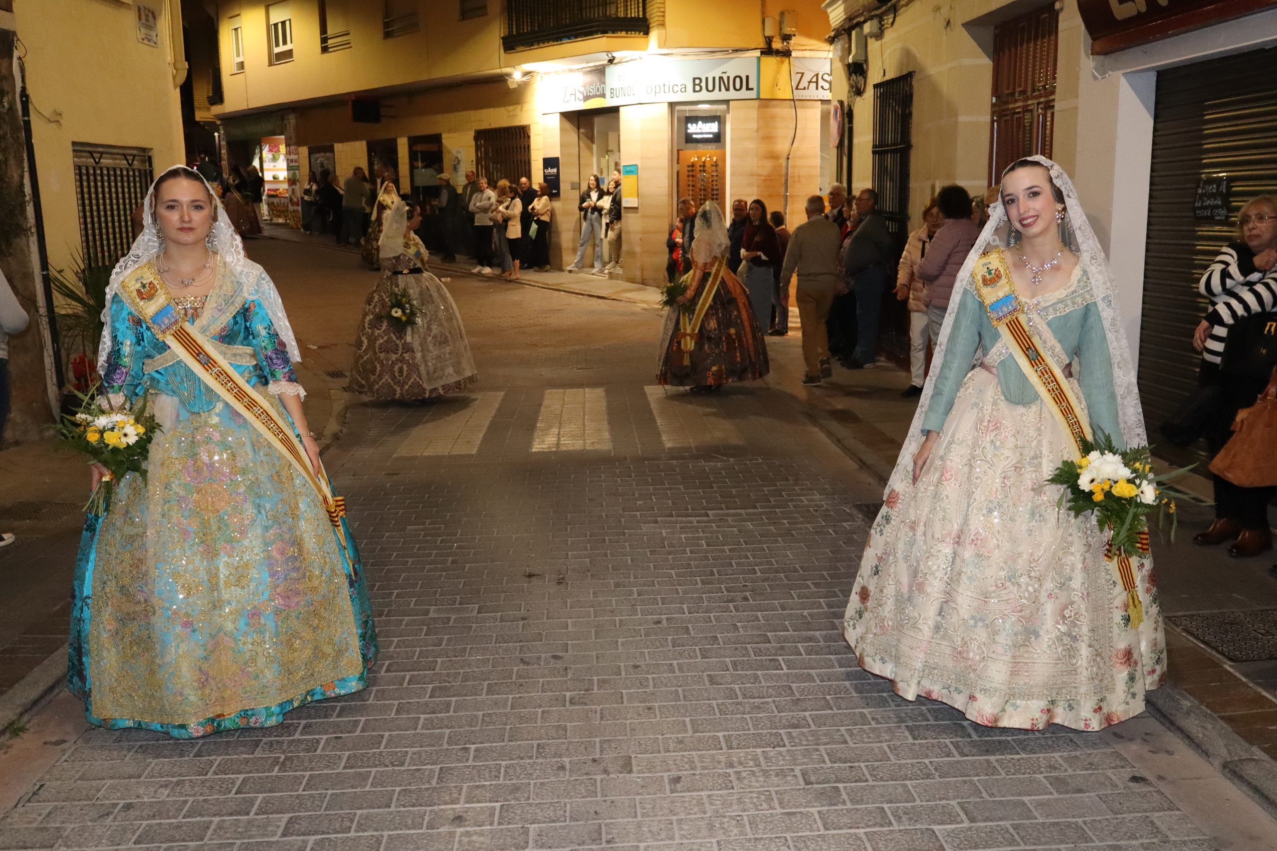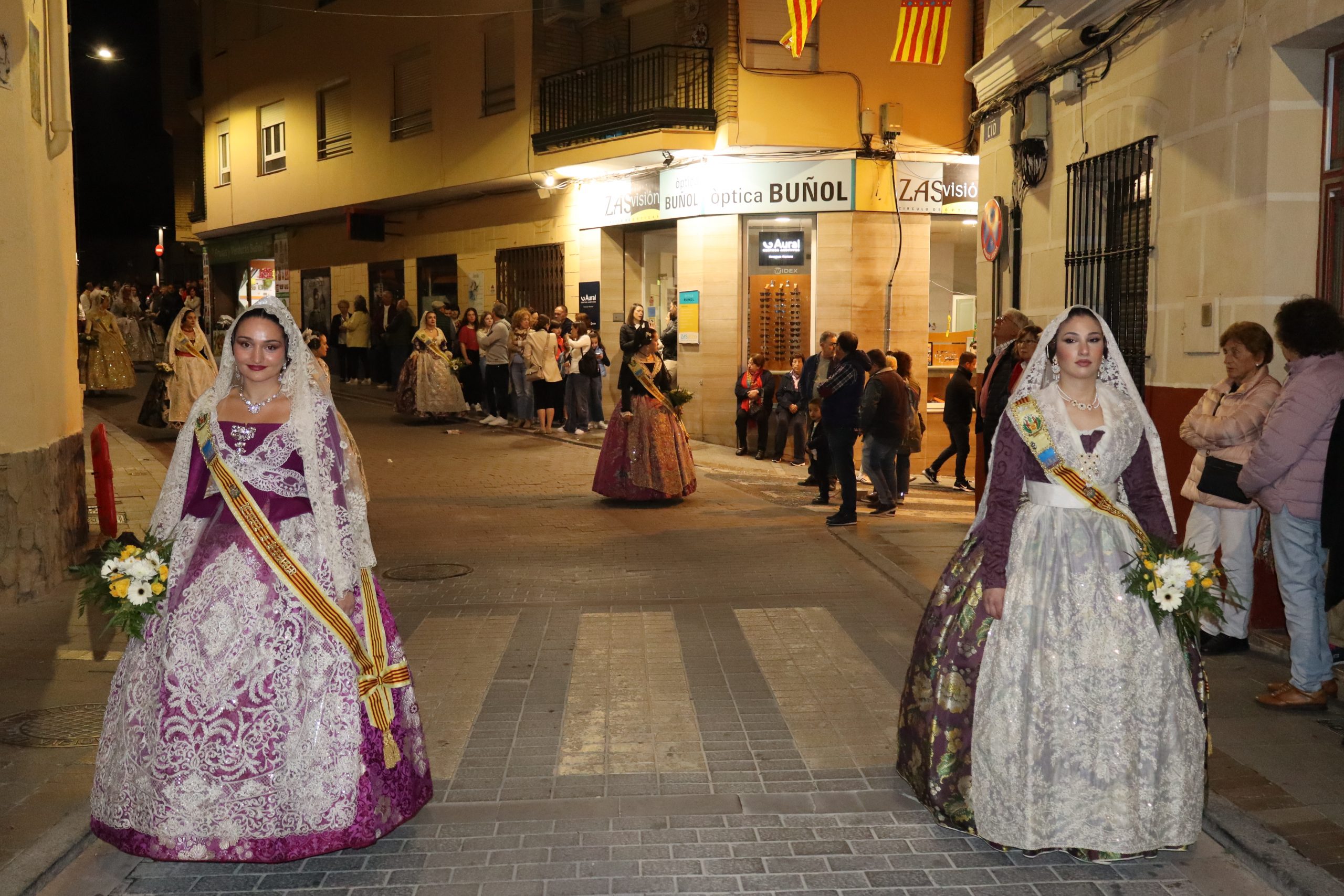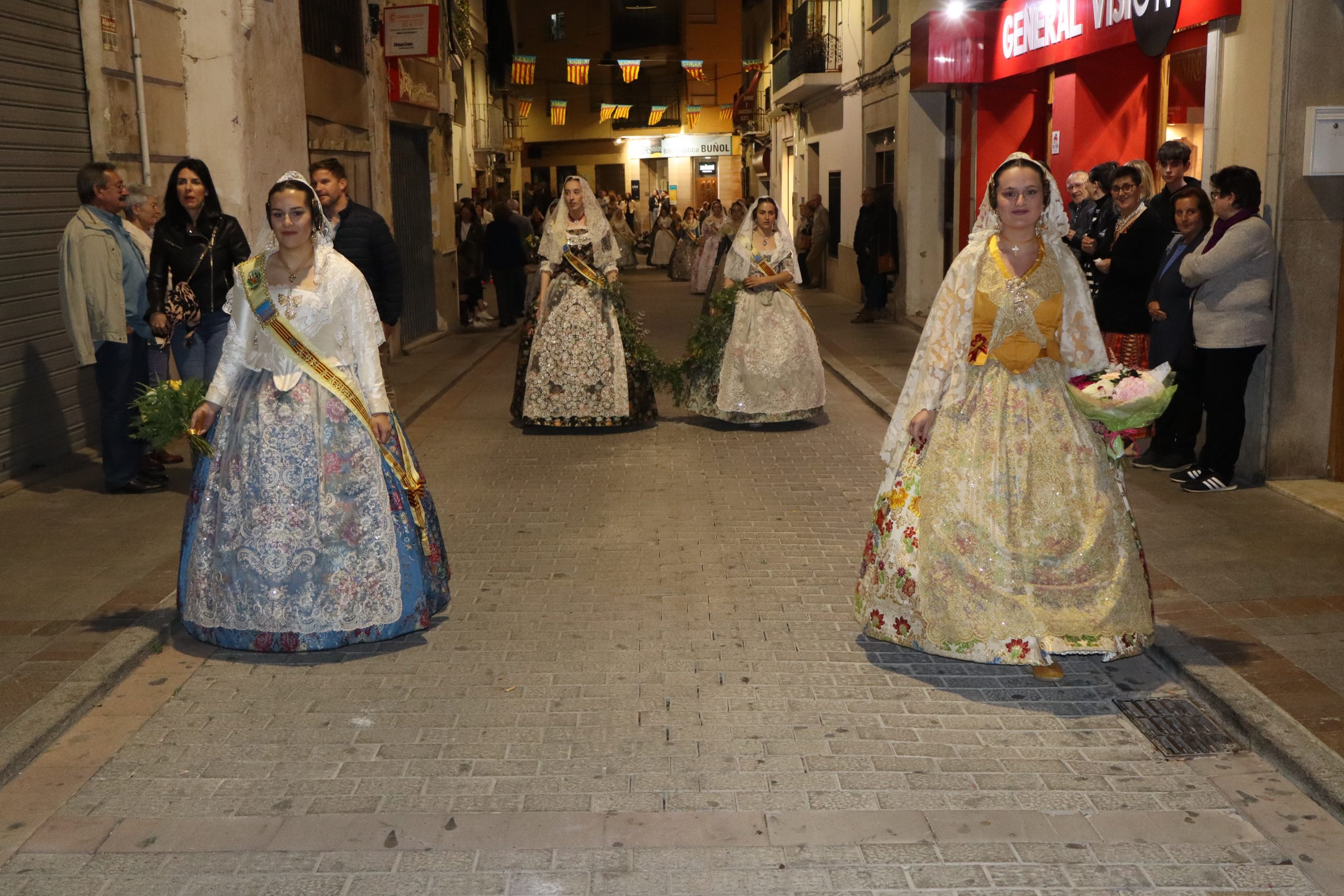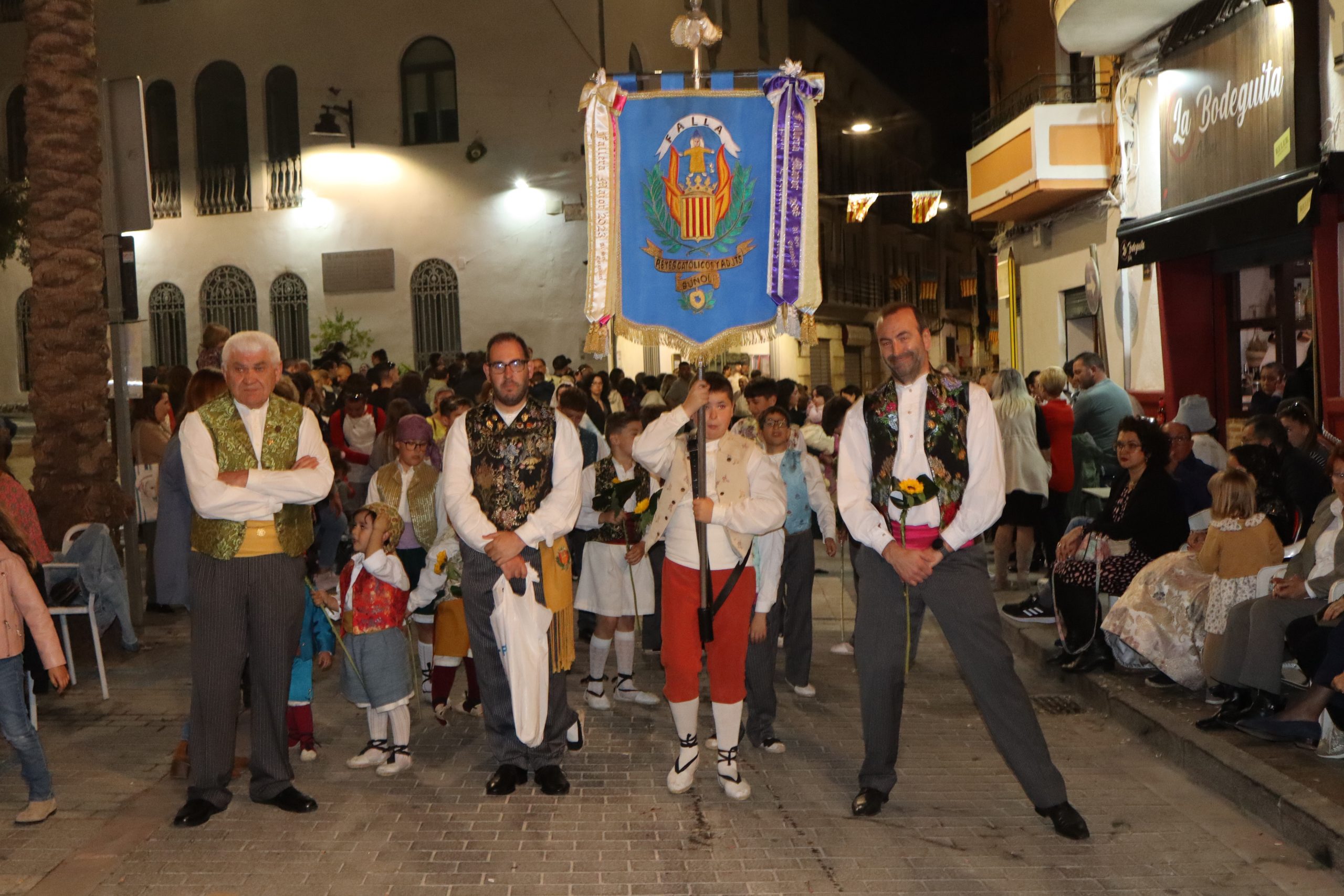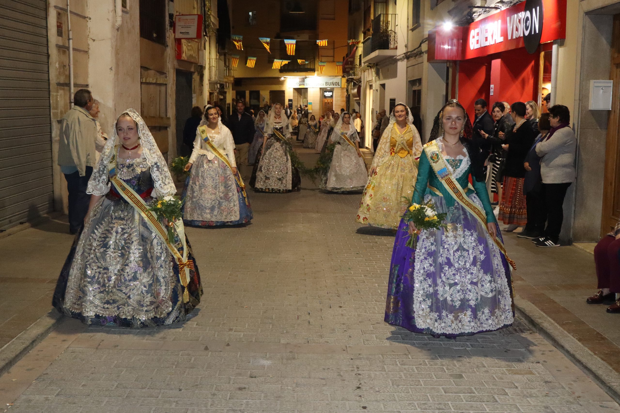La Ofrenda siempre es uno de los actos más emotivos en el mundo fallero, sobre todo para las Falleras Mayores. Es un evento donde las protagonistas de cada comisión se ven arropadas por toda su comisión, que sale en masa a participar. Y no solo las falleras y falleros dieron alegría y color a la Avenida de la Violeta, País Valenciano, Calle del Cid y la Plaza del Pueblo, sino también los numerosísimos ciudadanos que salieron a ver a sus familiares, a su nieta, a su nieto, hijo o hija desfilar. Lo aplausos se sucedían a uno y otro lado de las calles y eso engrandeció un acto ya de por sí, enorme. Fueron las comisiones de la Falla Buñol Pueblo, la Falla Nuevo Buñol y la Falla Reyes Católicos, las protagonistas de una tarde maravillosa.