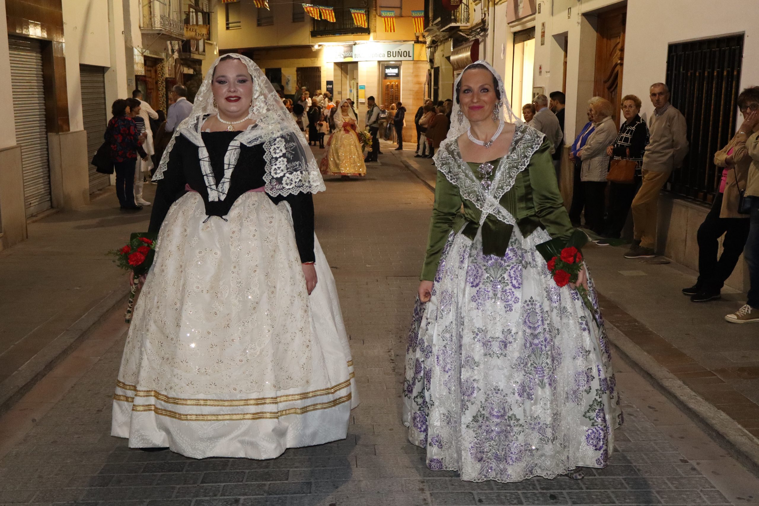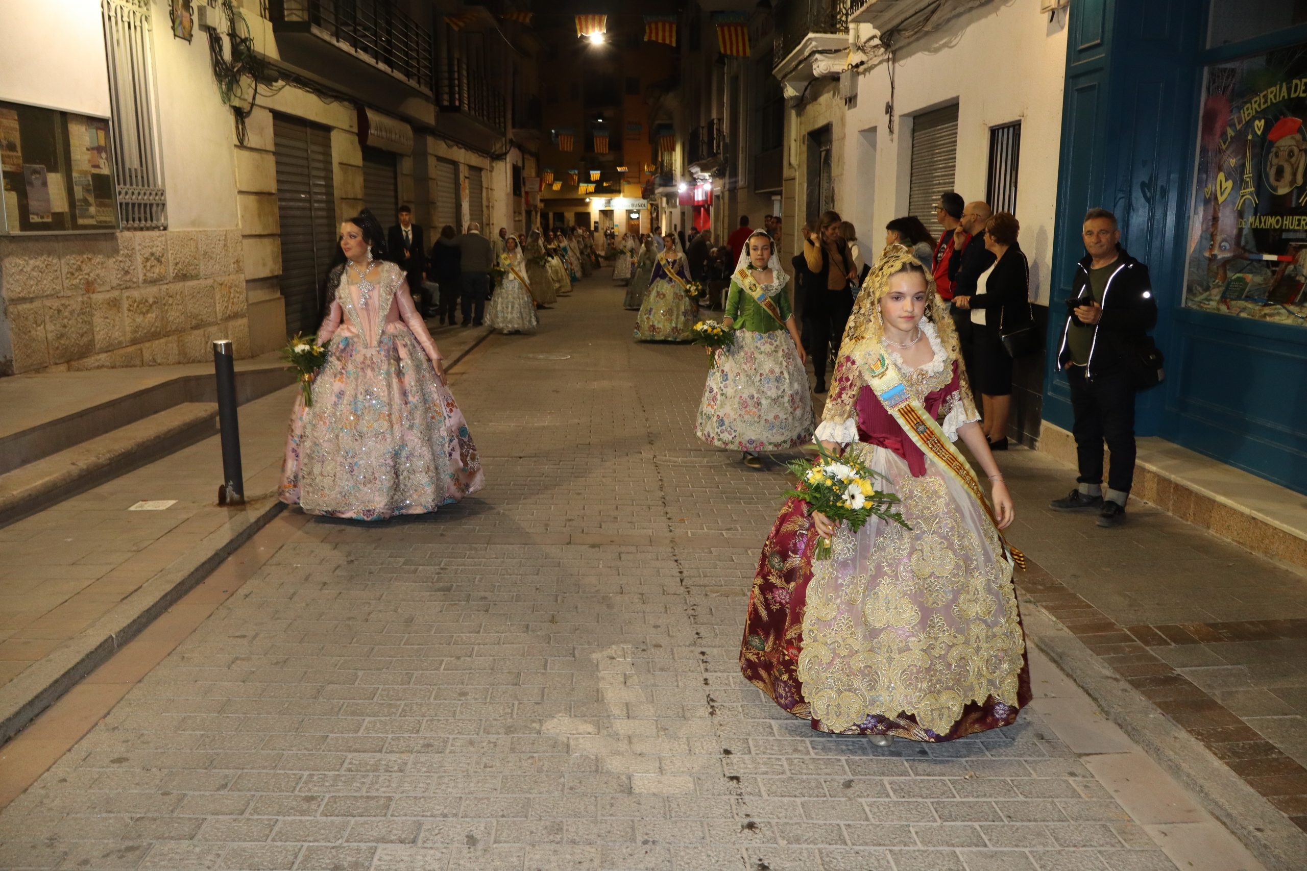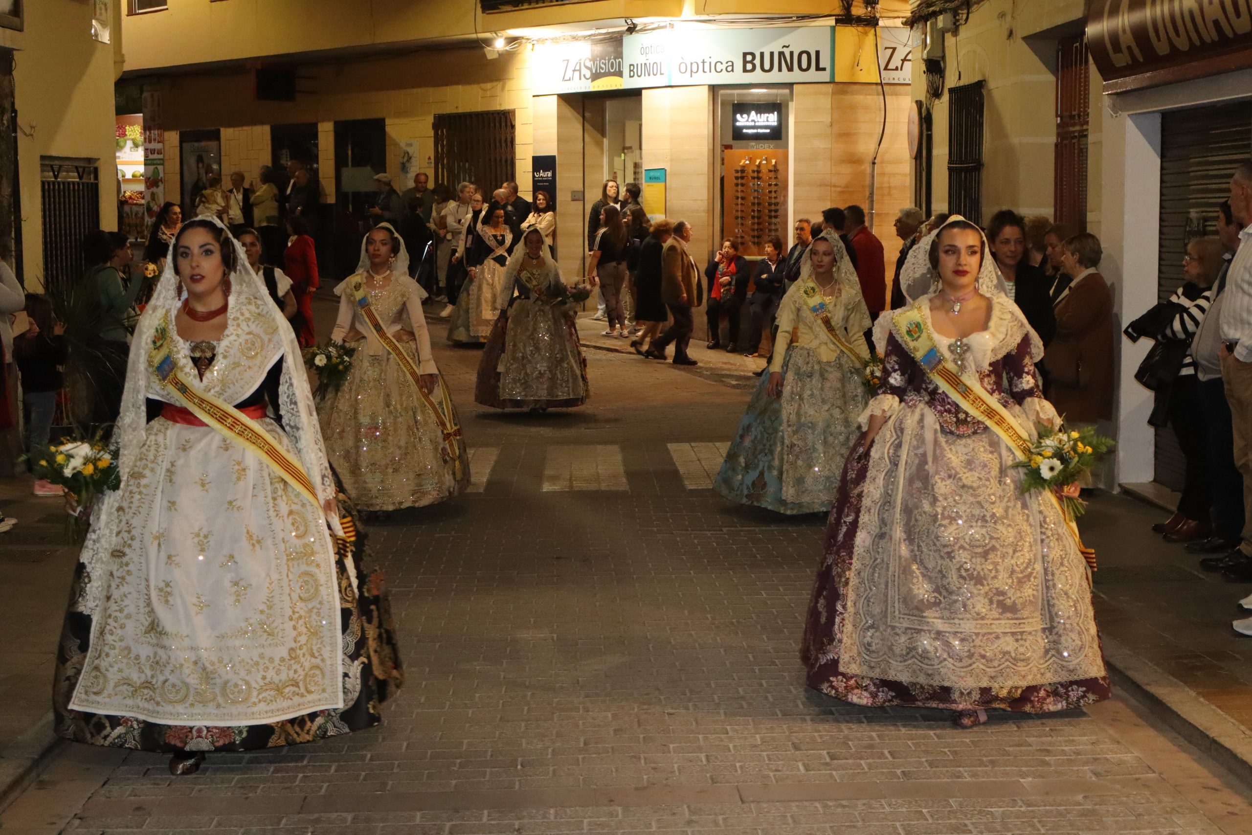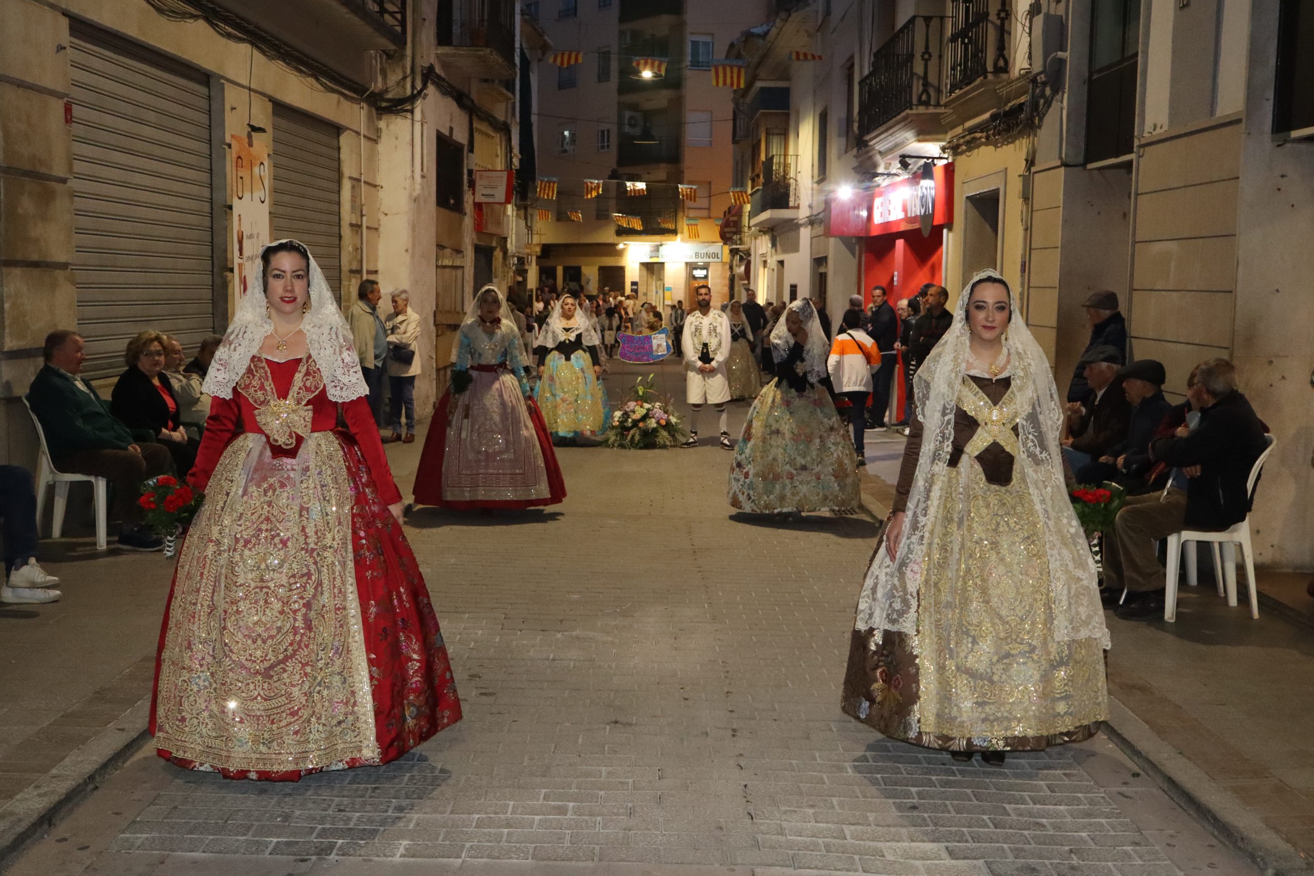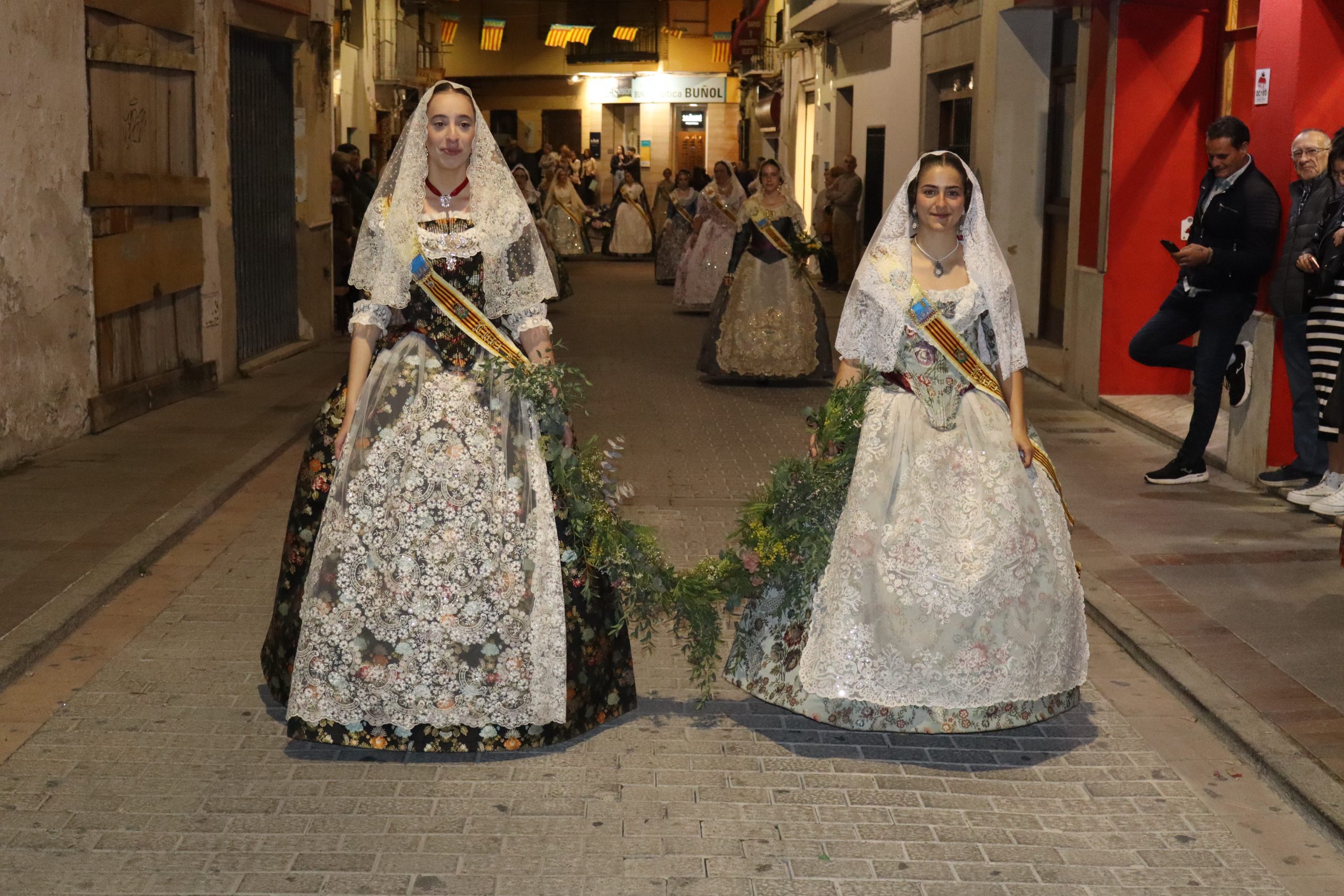 La Ofrenda siempre es uno de los actos más emotivos en el mundo fallero, sobre todo para las Falleras Mayores. Es un evento donde las protagonistas de cada comisión se ven arropadas por toda su comisión, que sale en masa a participar. Y no solo las falleras y falleros dieron alegría y color a la Avenida de la Violeta, País Valenciano, Calle del Cid y la Plaza del Pueblo, sino también los numerosísimos ciudadanos que salieron a ver a sus familiares, a su nieta, a su nieto, hijo o hija desfilar. Lo aplausos se sucedían a uno y otro lado de las calles y eso engrandeció un acto ya de por sí, enorme. Fueron las comisiones de la Falla Buñol Pueblo, la Falla Nuevo Buñol y la Falla Reyes Católicos, las protagonistas de una tarde maravillosa.