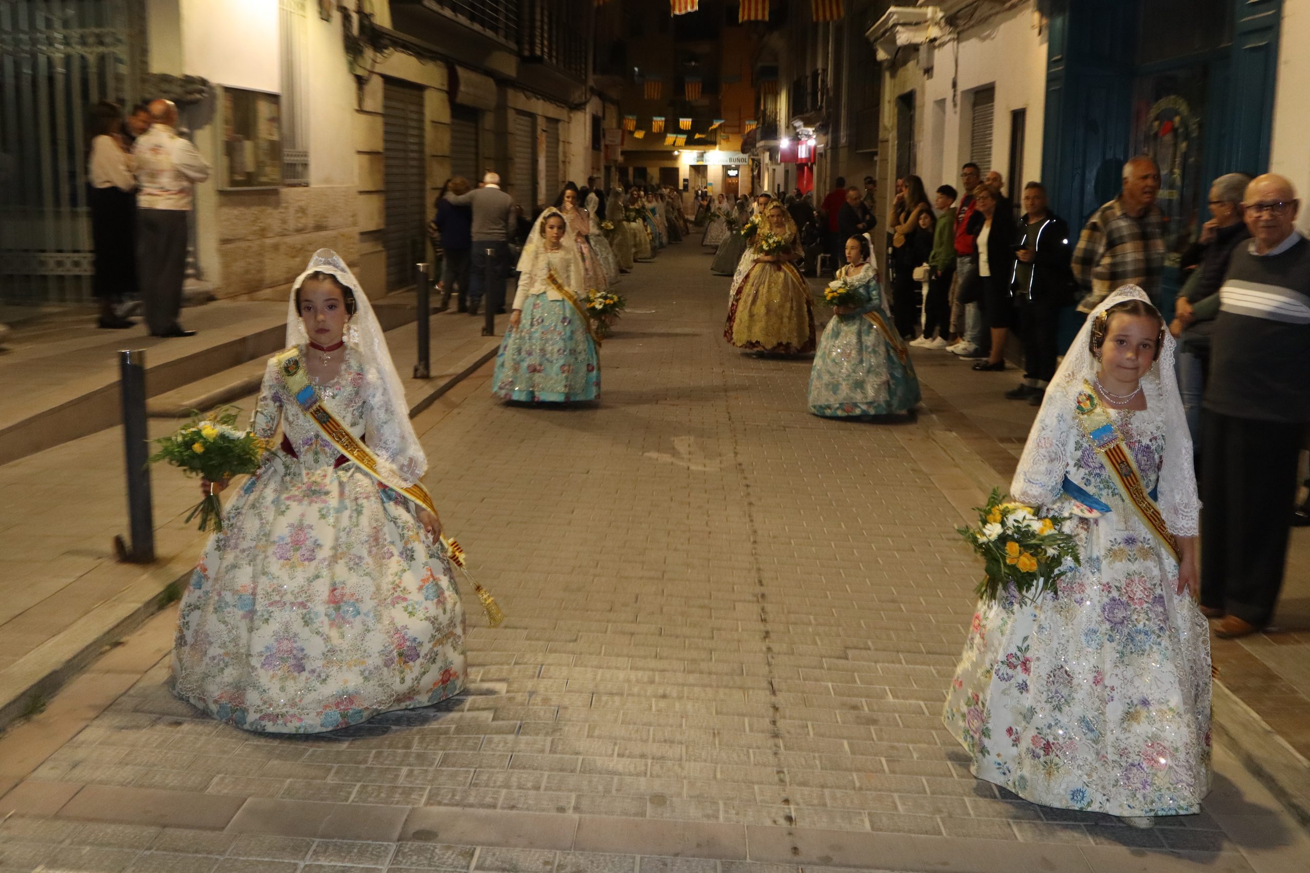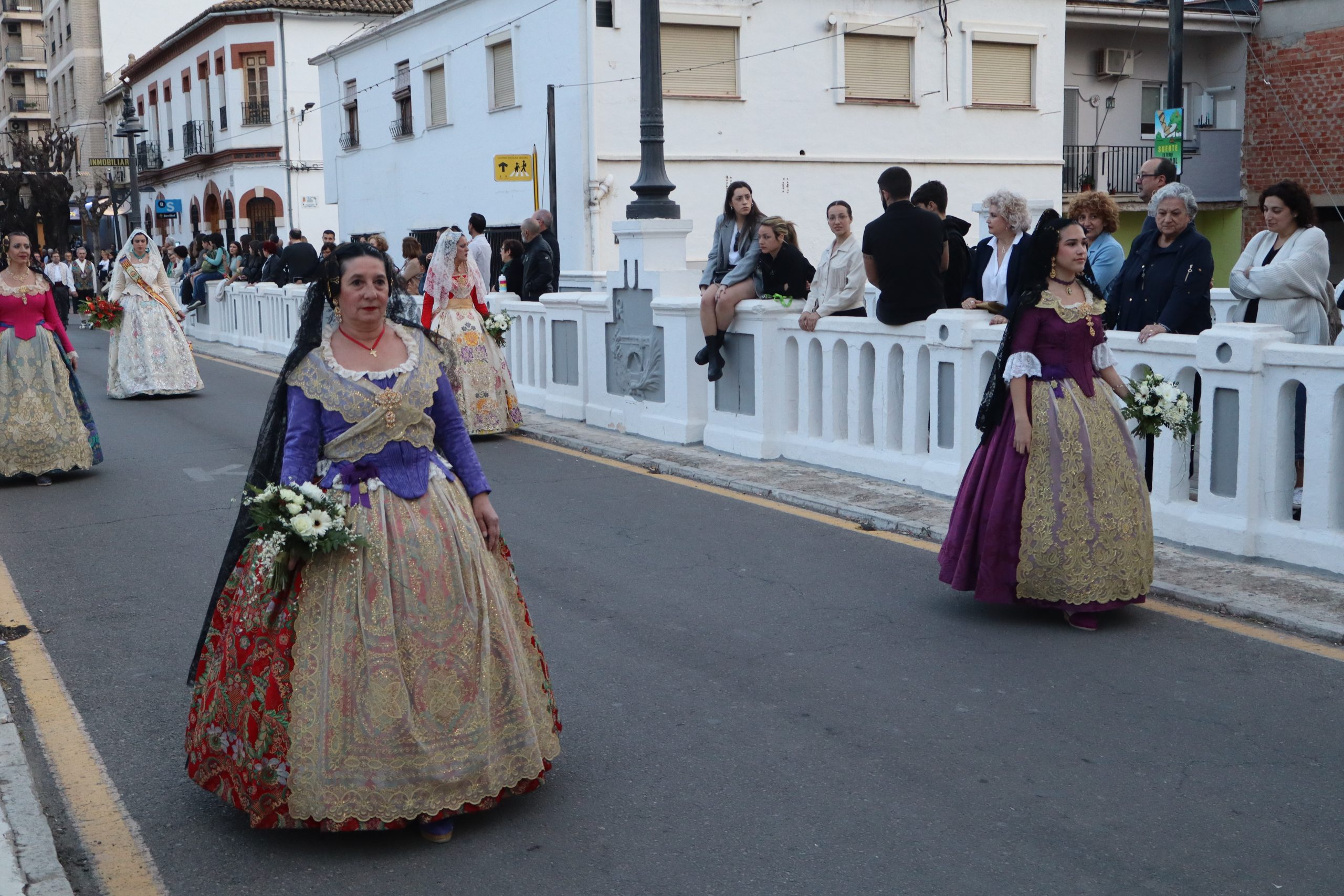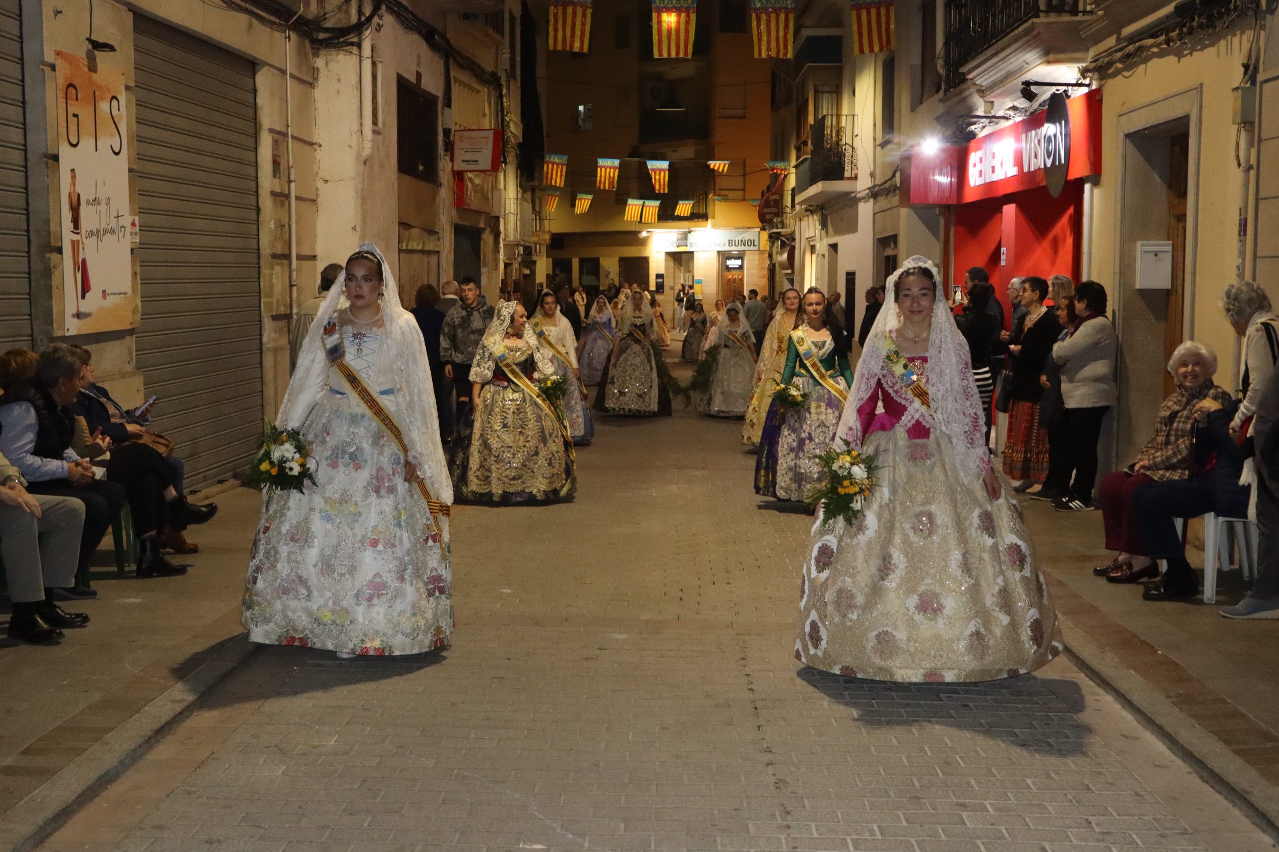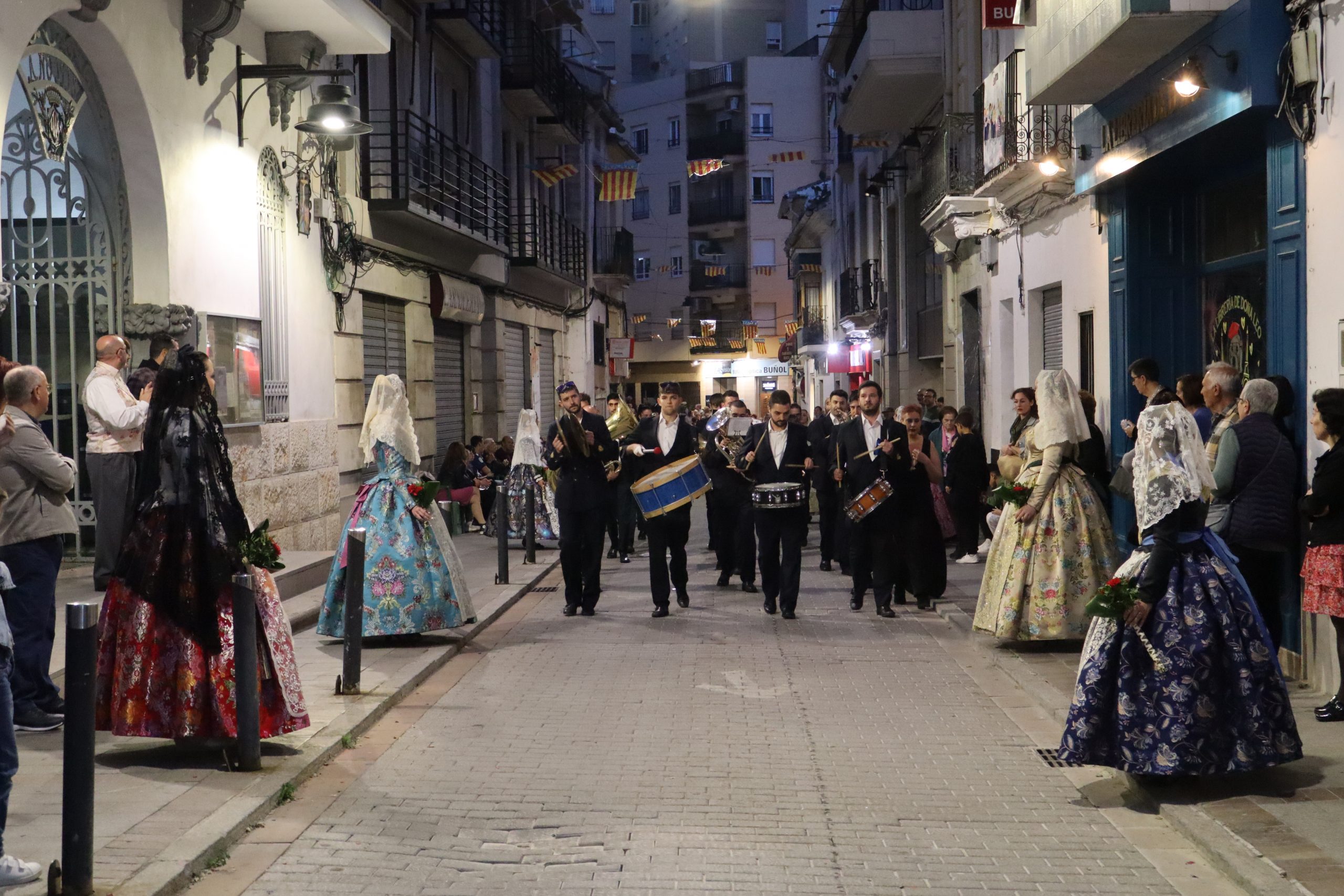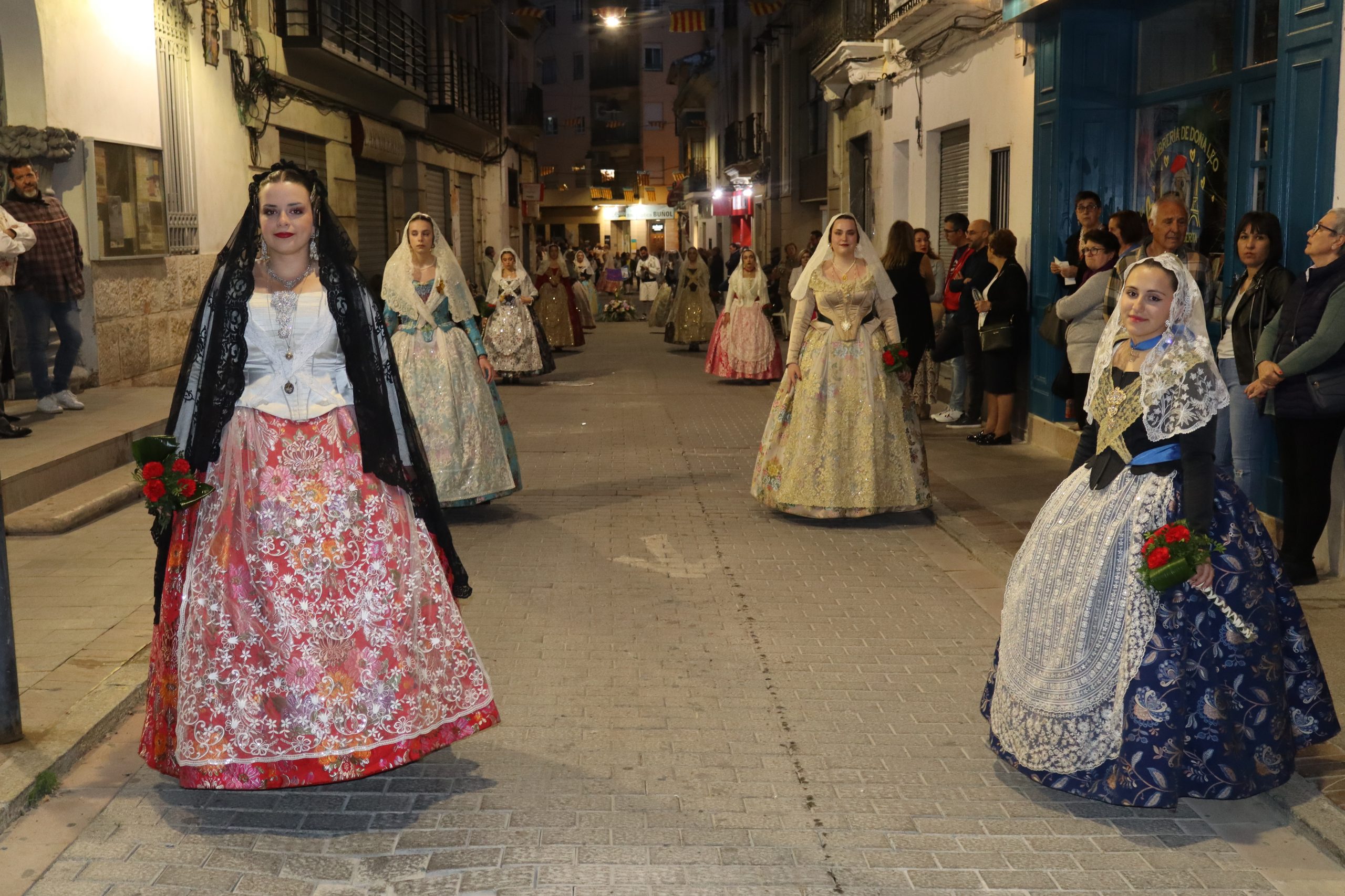 La Ofrenda siempre es uno de los actos más emotivos en el mundo fallero, sobre todo para las Falleras Mayores. Es un evento donde las protagonistas de cada comisión se ven arropadas por toda su comisión, que sale en masa a participar. Y no solo las falleras y falleros dieron alegría y color a la Avenida de la Violeta, País Valenciano, Calle del Cid y la Plaza del Pueblo, sino también los numerosísimos ciudadanos que salieron a ver a sus familiares, a su nieta, a su nieto, hijo o hija desfilar. Lo aplausos se sucedían a uno y otro lado de las calles y eso engrandeció un acto ya de por sí, enorme. Fueron las comisiones de la Falla Buñol Pueblo, la Falla Nuevo Buñol y la Falla Reyes Católicos, las protagonistas de una tarde maravillosa.
