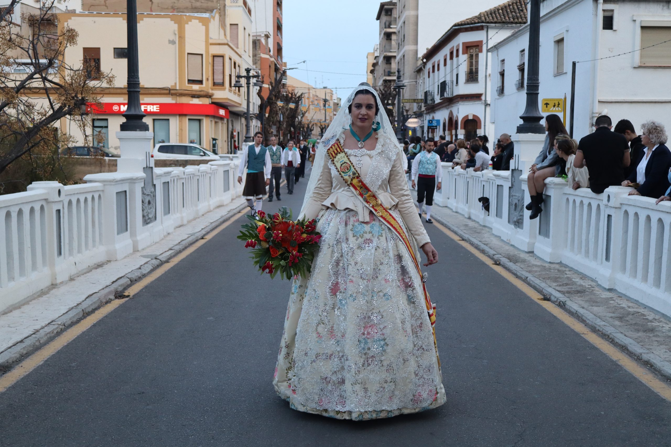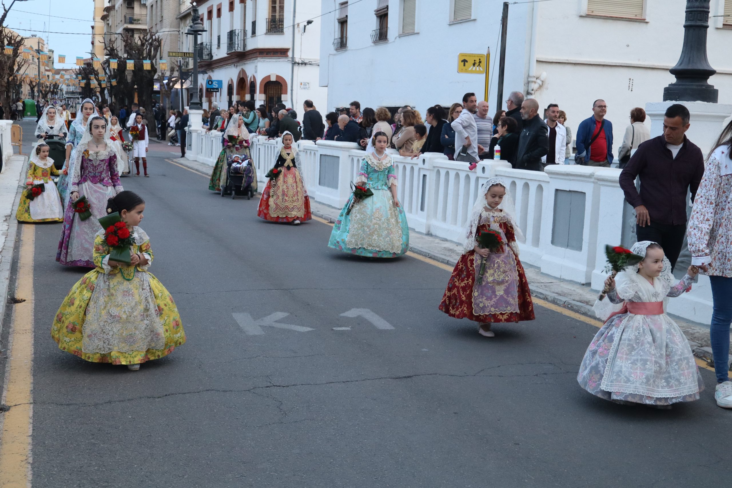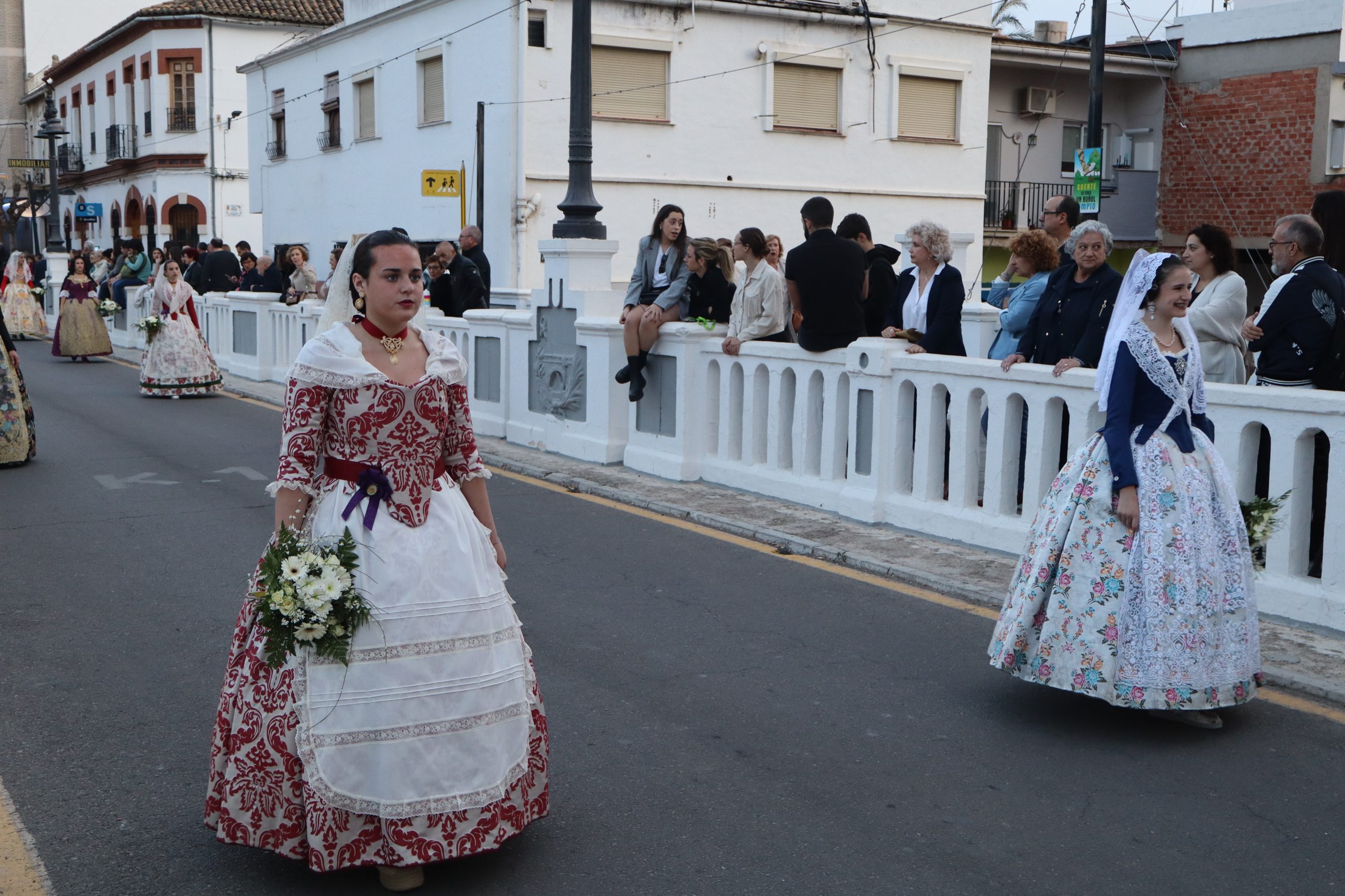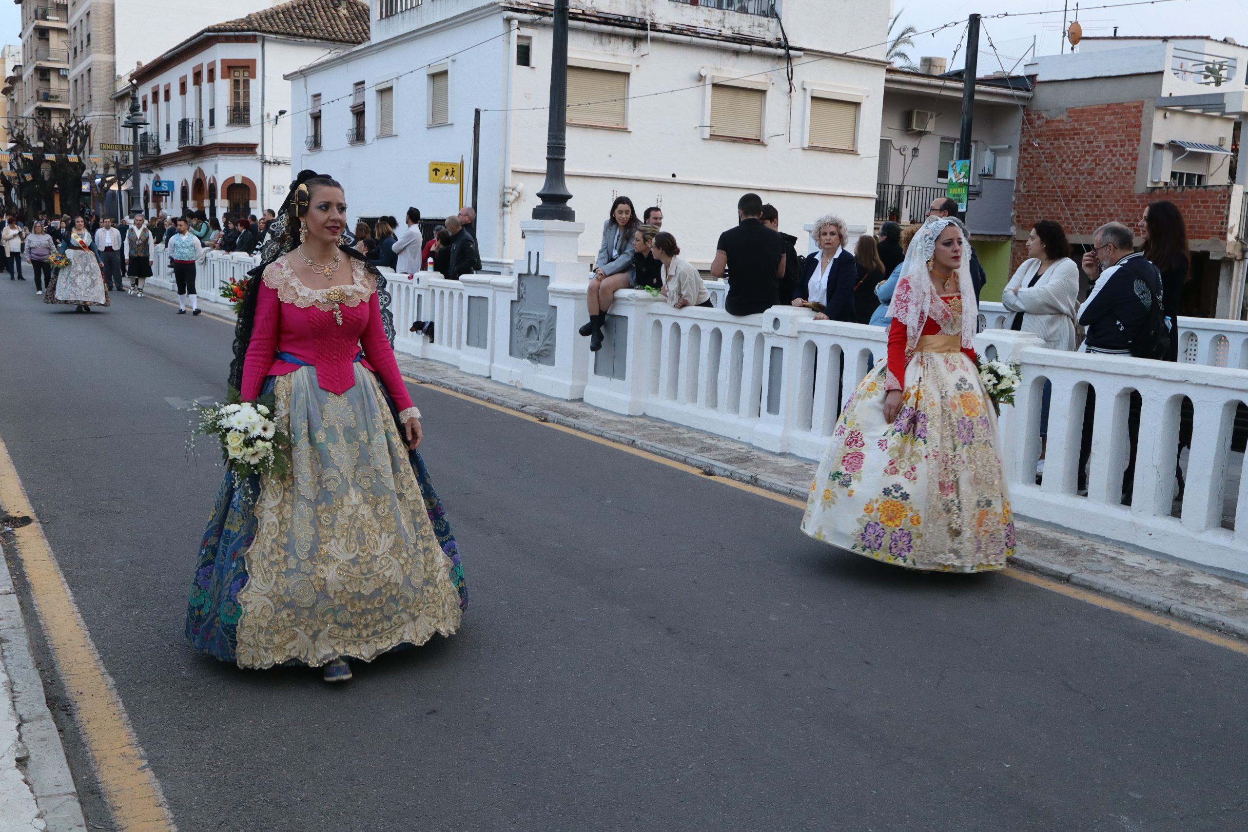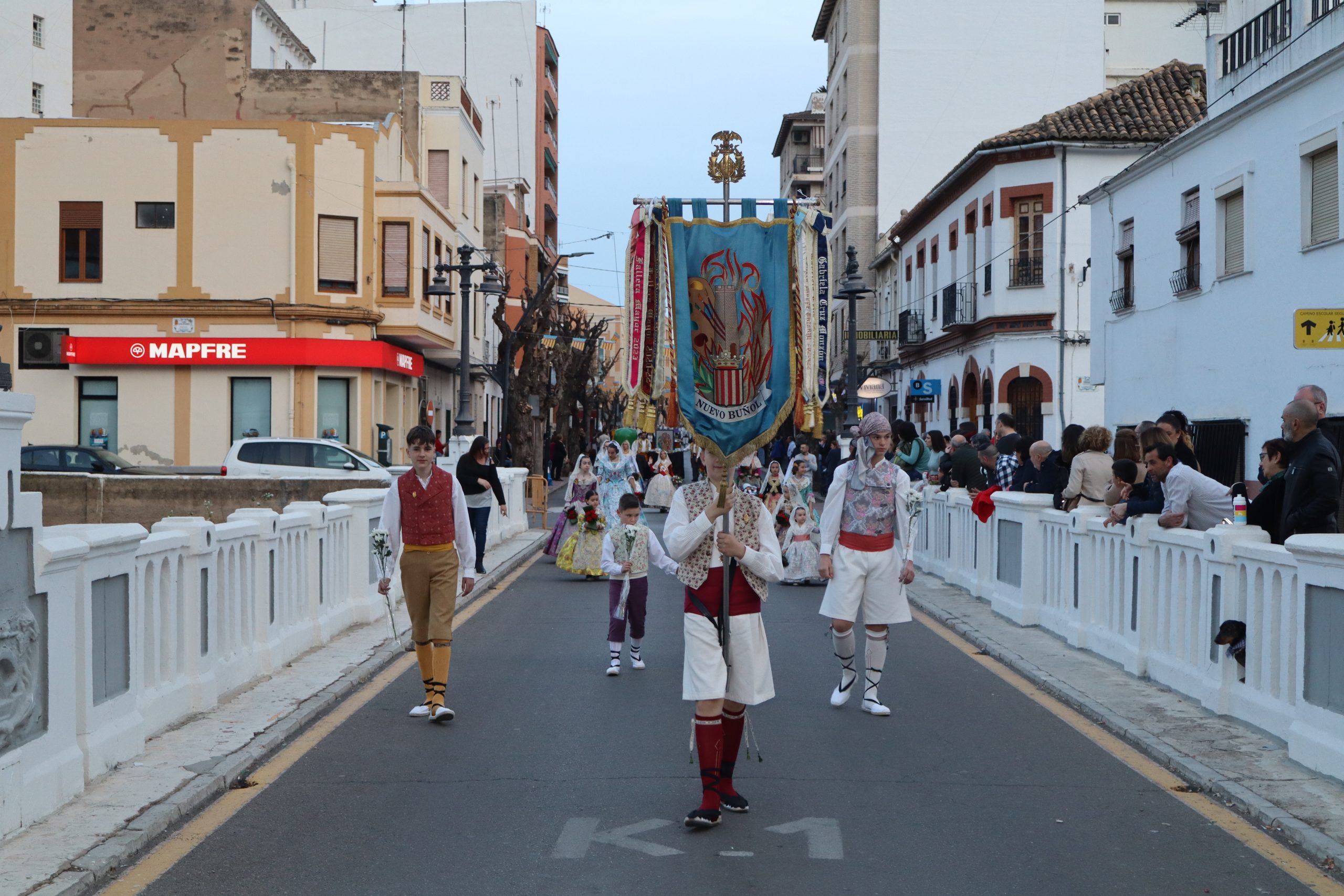 La Ofrenda siempre es uno de los actos más emotivos en el mundo fallero, sobre todo para las Falleras Mayores. Es un evento donde las protagonistas de cada comisión se ven arropadas por toda su comisión, que sale en masa a participar. Y no solo las falleras y falleros dieron alegría y color a la Avenida de la Violeta, País Valenciano, Calle del Cid y la Plaza del Pueblo, sino también los numerosísimos ciudadanos que salieron a ver a sus familiares, a su nieta, a su nieto, hijo o hija desfilar. Lo aplausos se sucedían a uno y otro lado de las calles y eso engrandeció un acto ya de por sí, enorme. Fueron las comisiones de la Falla Buñol Pueblo, la Falla Nuevo Buñol y la Falla Reyes Católicos, las protagonistas de una tarde maravillosa.