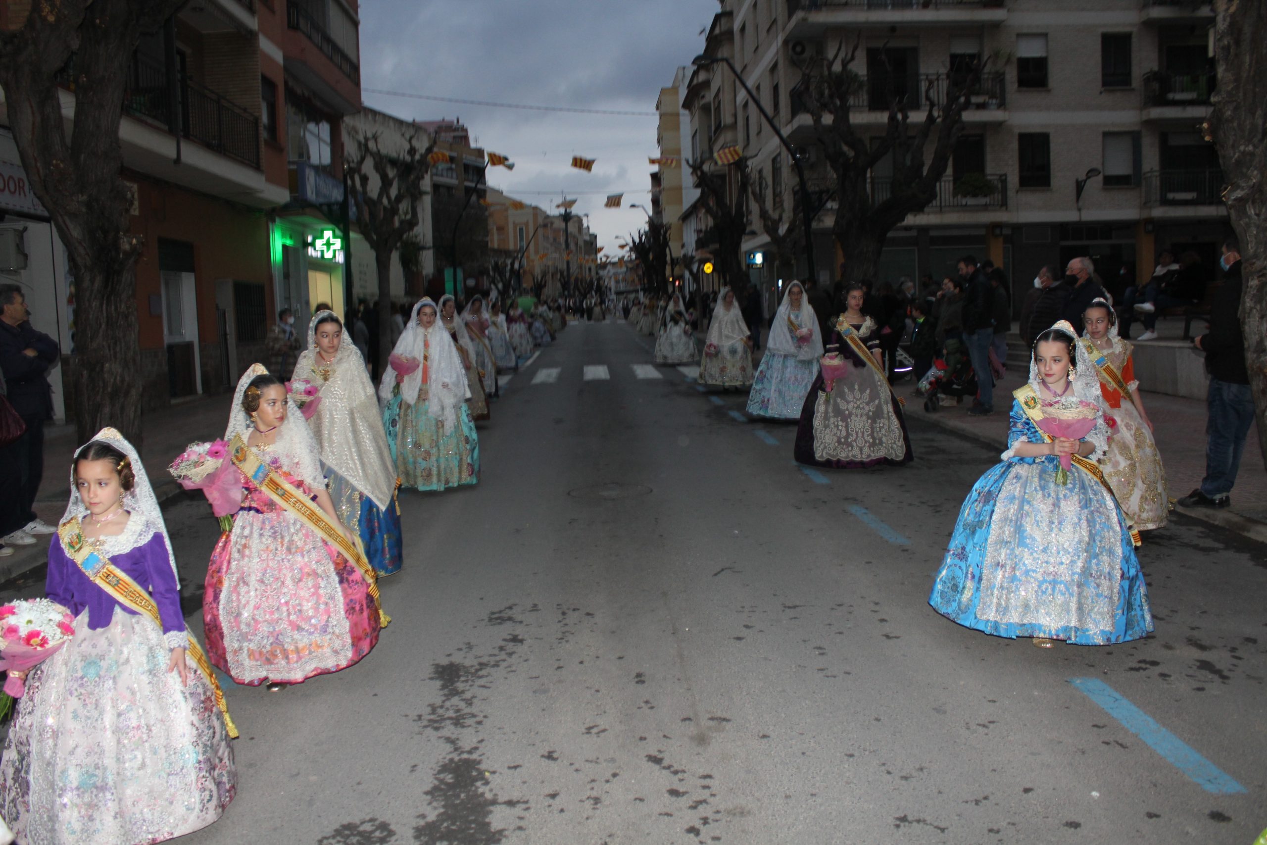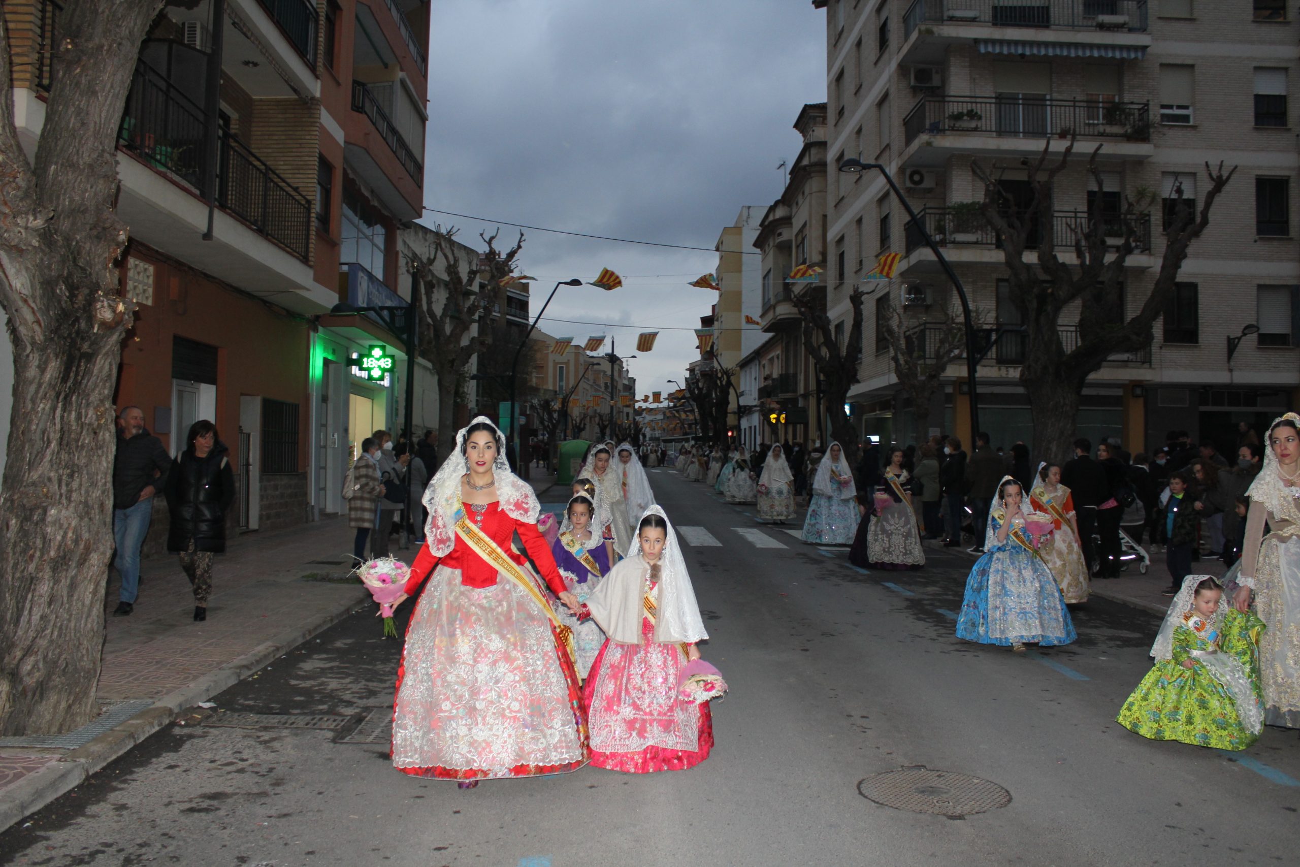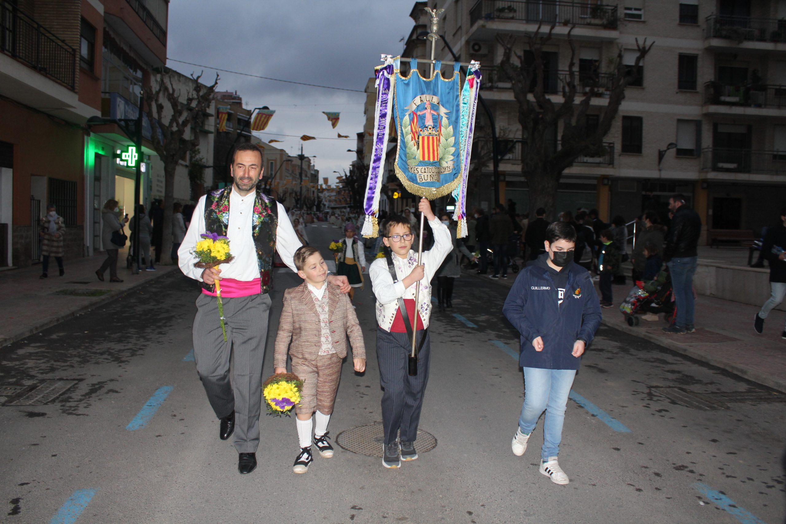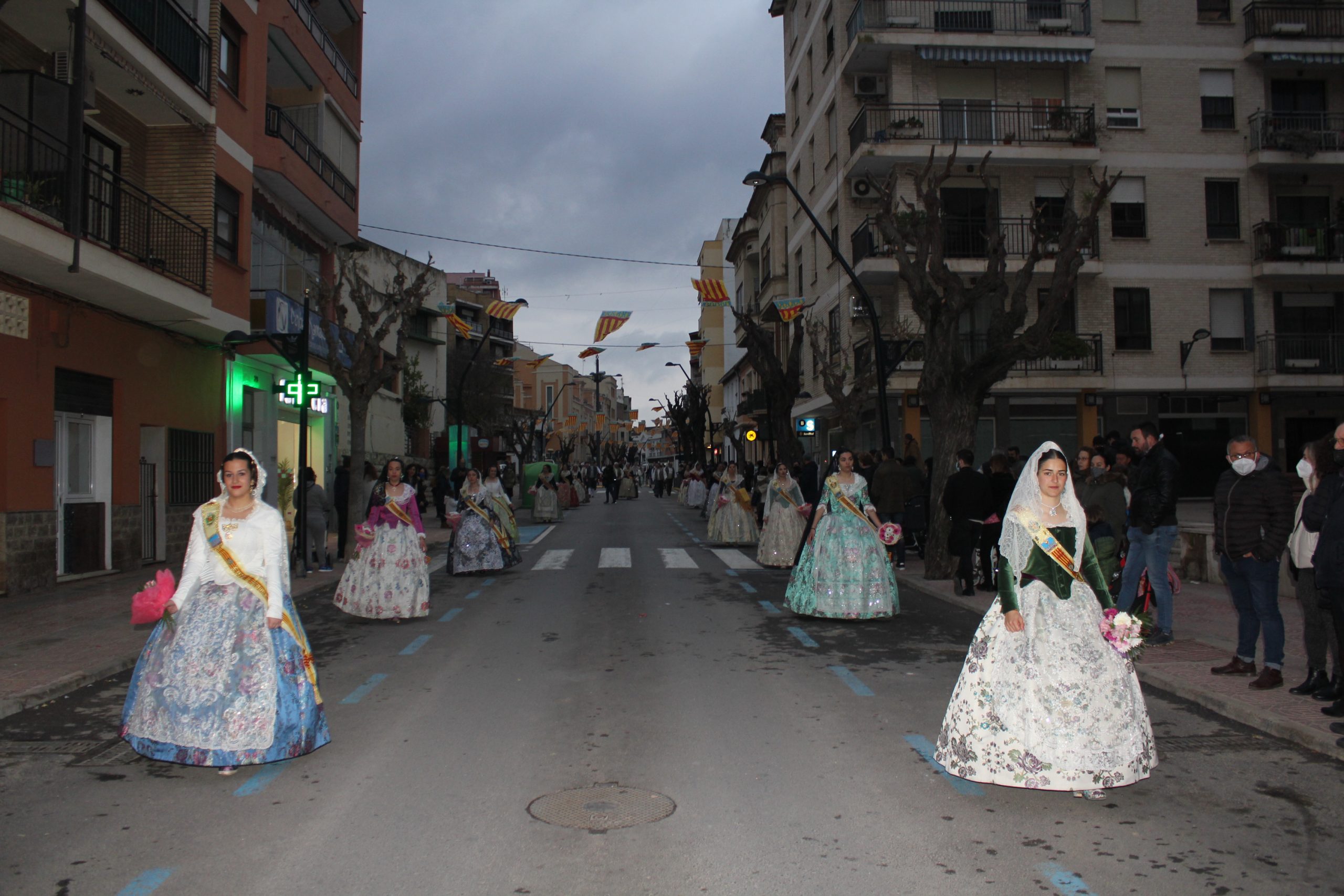 En la del pueblo, desde la Avenida de la Violeta, participaron las comisiones de la Falla Buñol Pueblo, Falla Reyes Católicos y Nuevo Buñol, que recordemos obtuvo el premio a la mejor falla grande. En Las Ventas, desfilaron, las comisiones de El Prado y Falla Ventas. Aunque el tiempo fue bastante desapacible, siempre es un momento único y bonito para las familias, para las falleras y falleros, participar en un acto como este y así lo reflejaron sus caras.