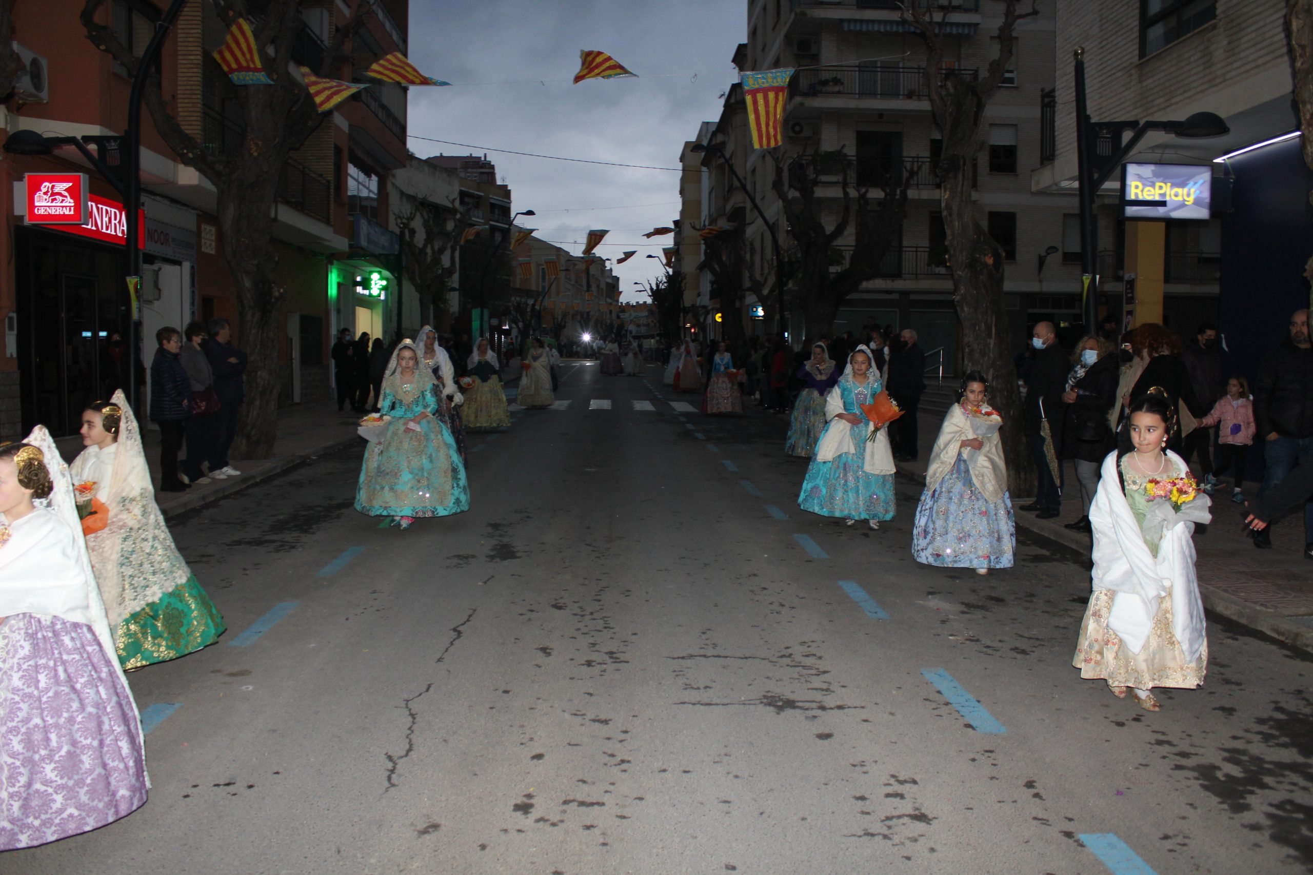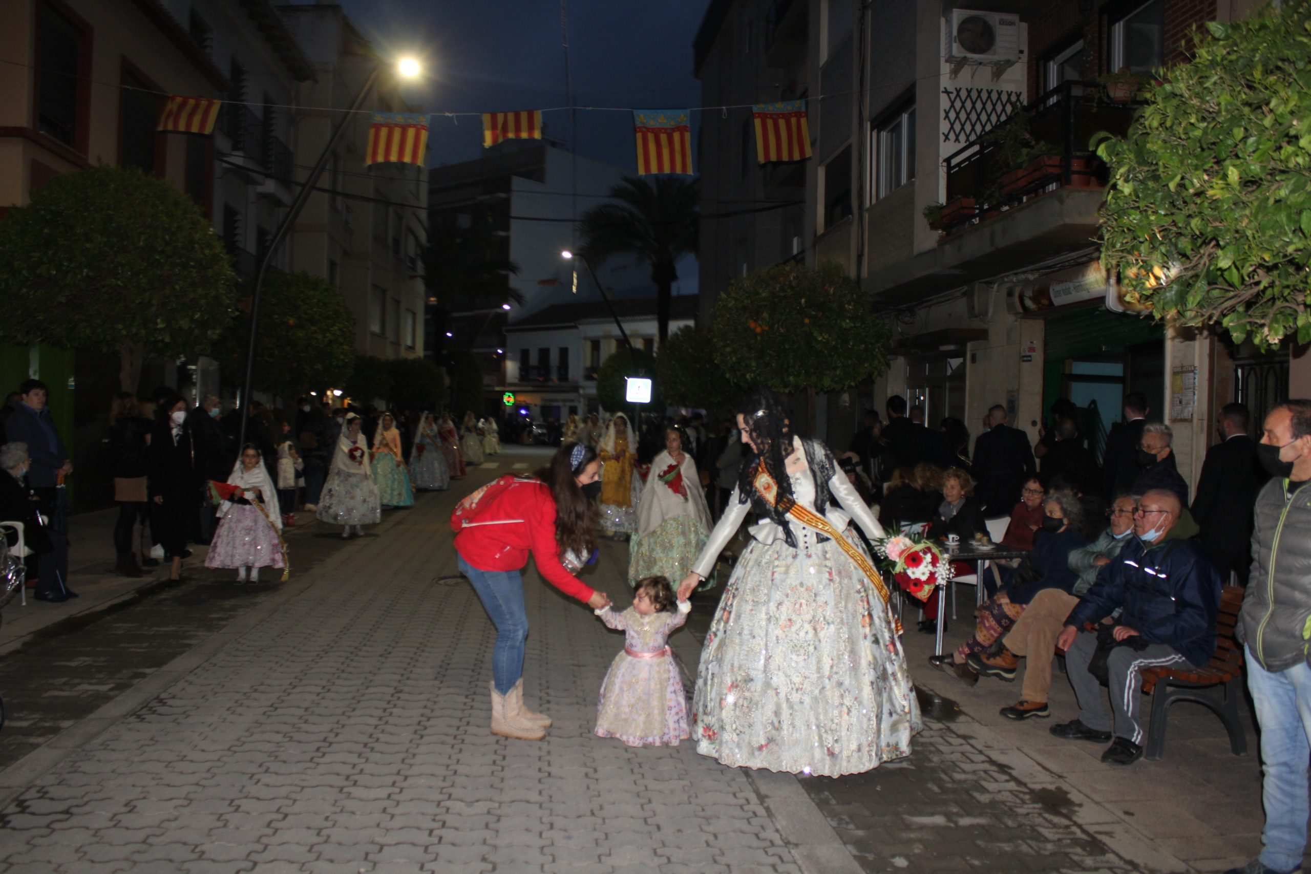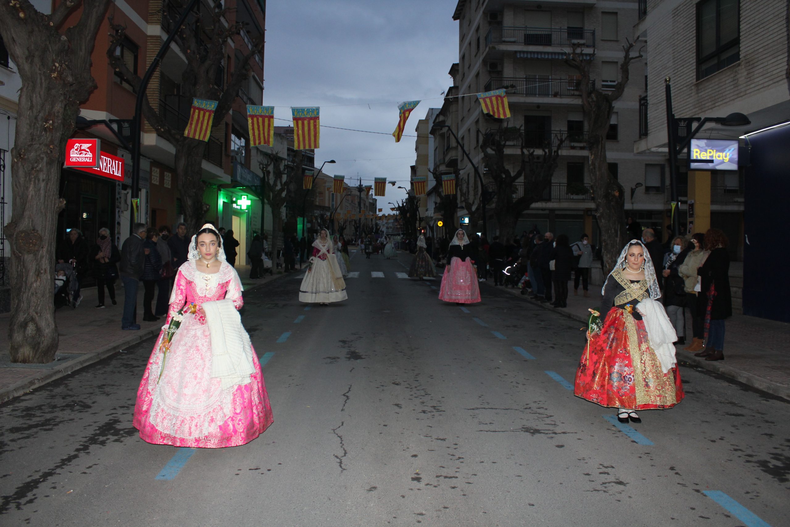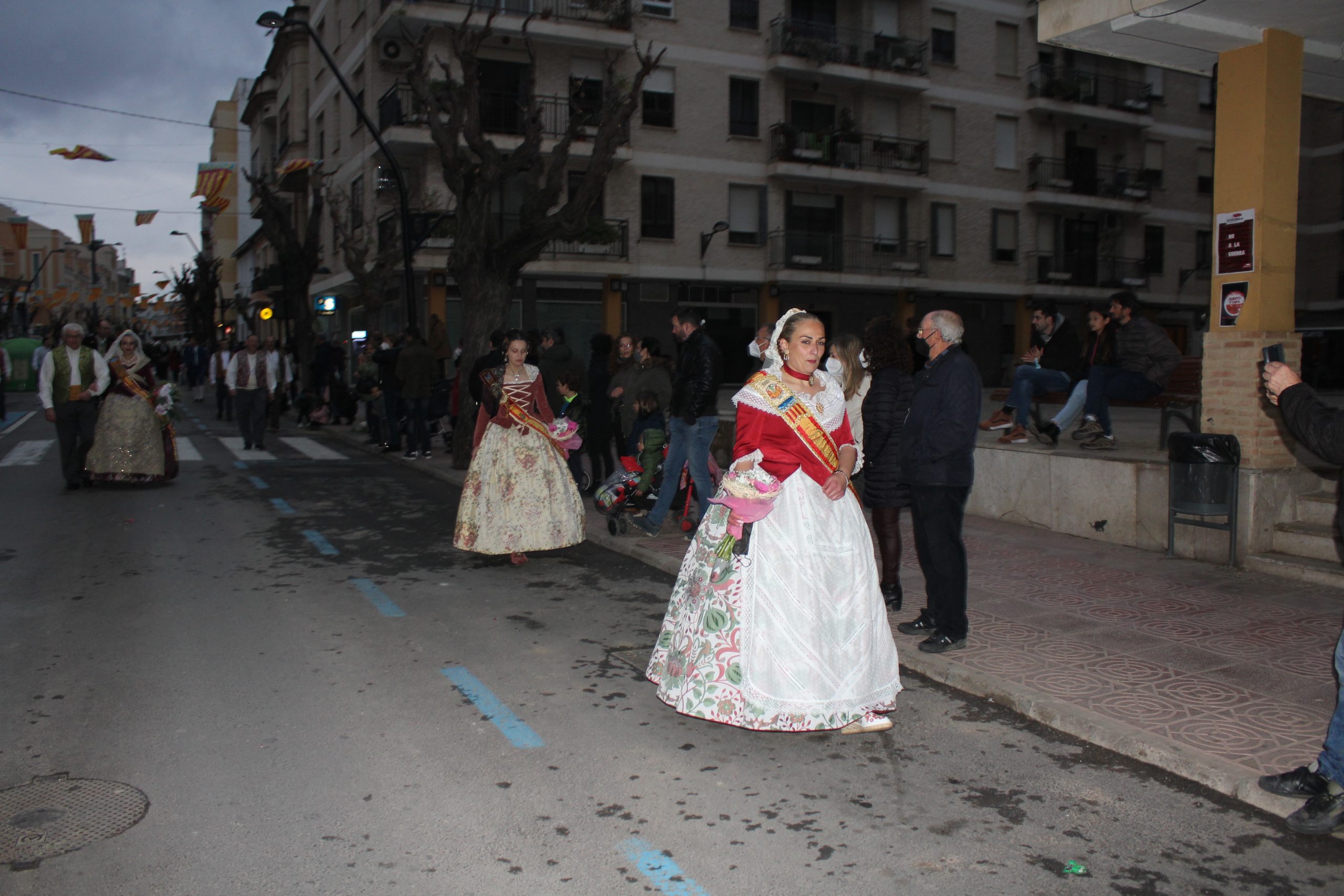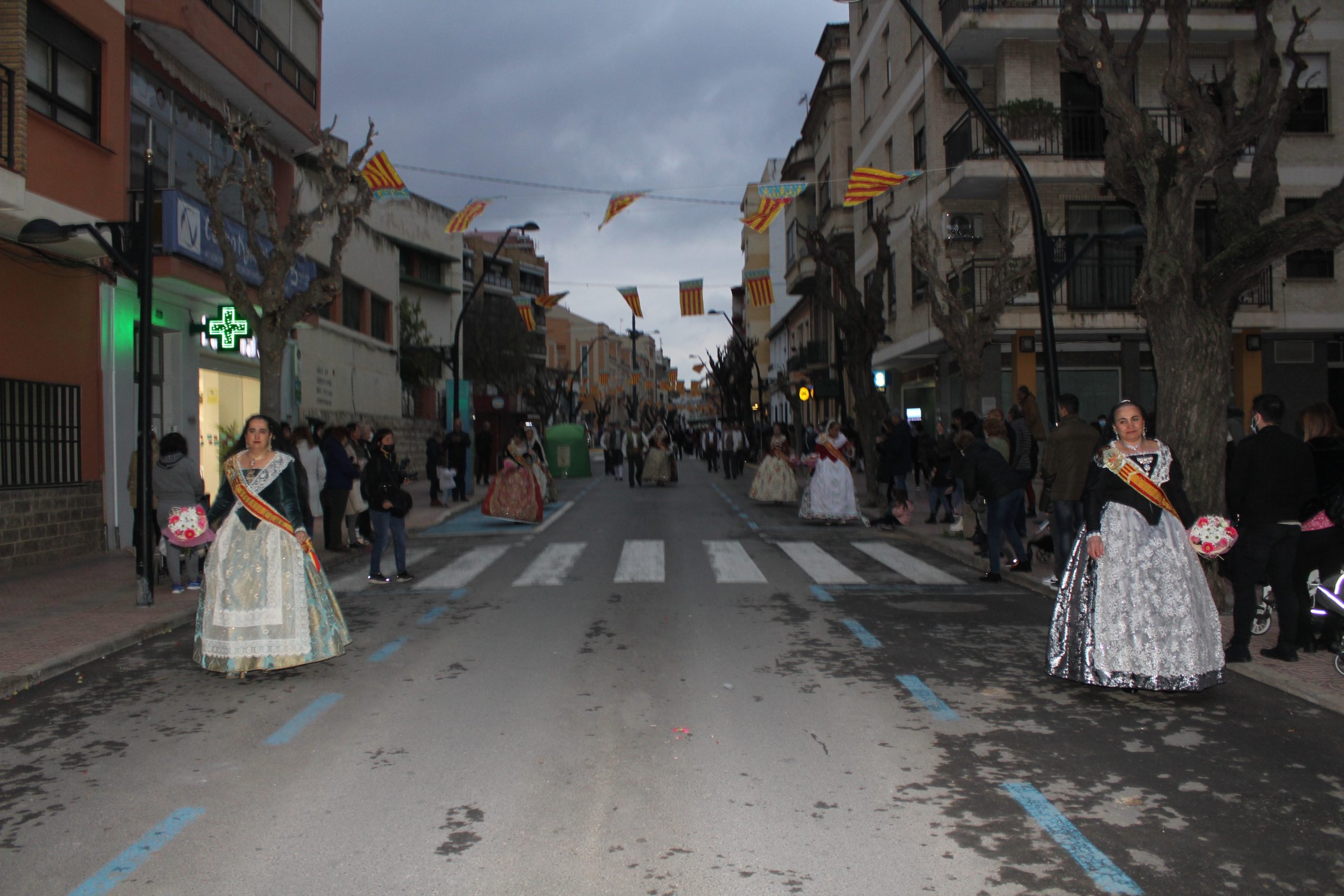 En la del pueblo, desde la Avenida de la Violeta, participaron las comisiones de la Falla Buñol Pueblo, Falla Reyes Católicos y Nuevo Buñol, que recordemos obtuvo el premio a la mejor falla grande. En Las Ventas, desfilaron, las comisiones de El Prado y Falla Ventas. Aunque el tiempo fue bastante desapacible, siempre es un momento único y bonito para las familias, para las falleras y falleros, participar en un acto como este y así lo reflejaron sus caras.