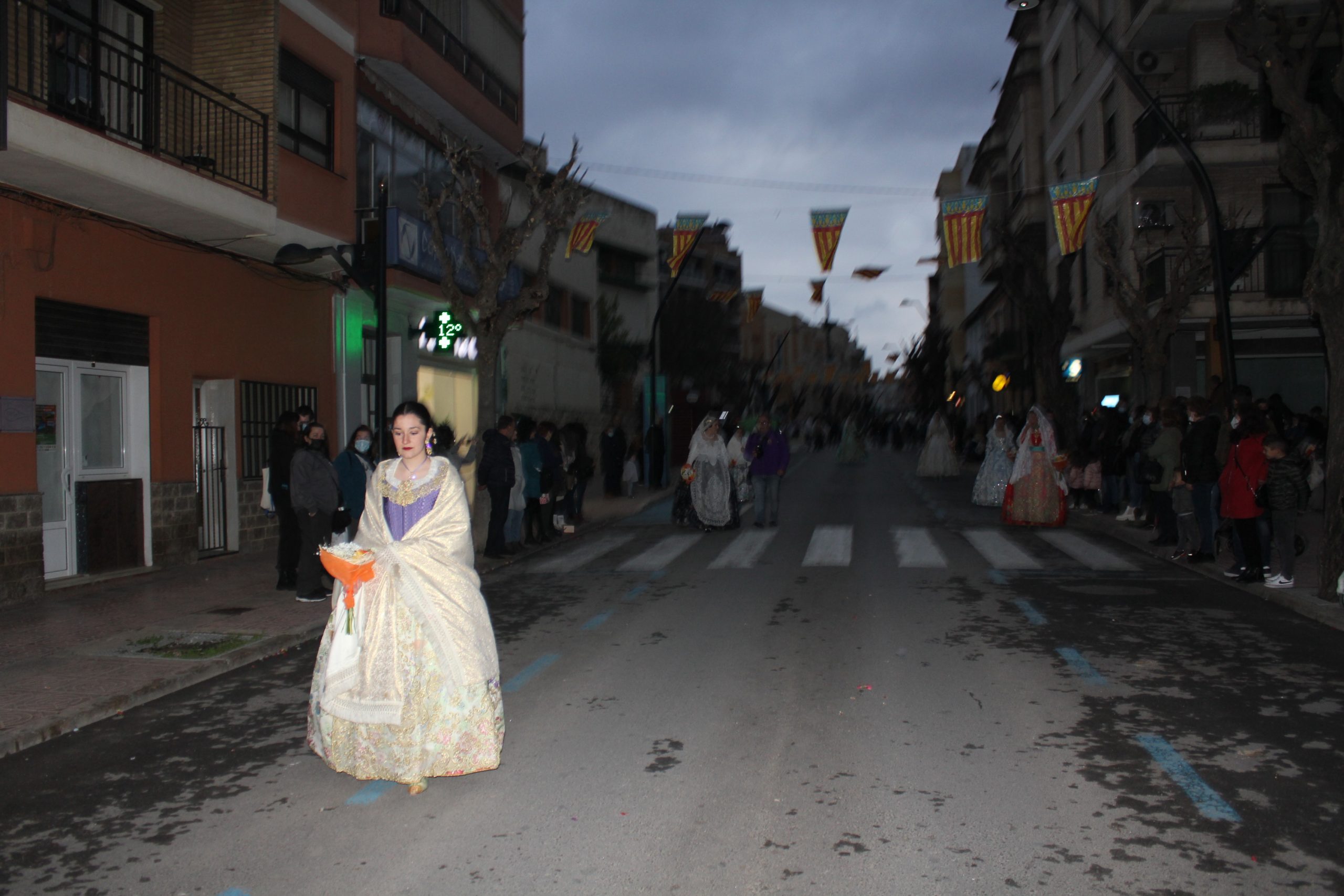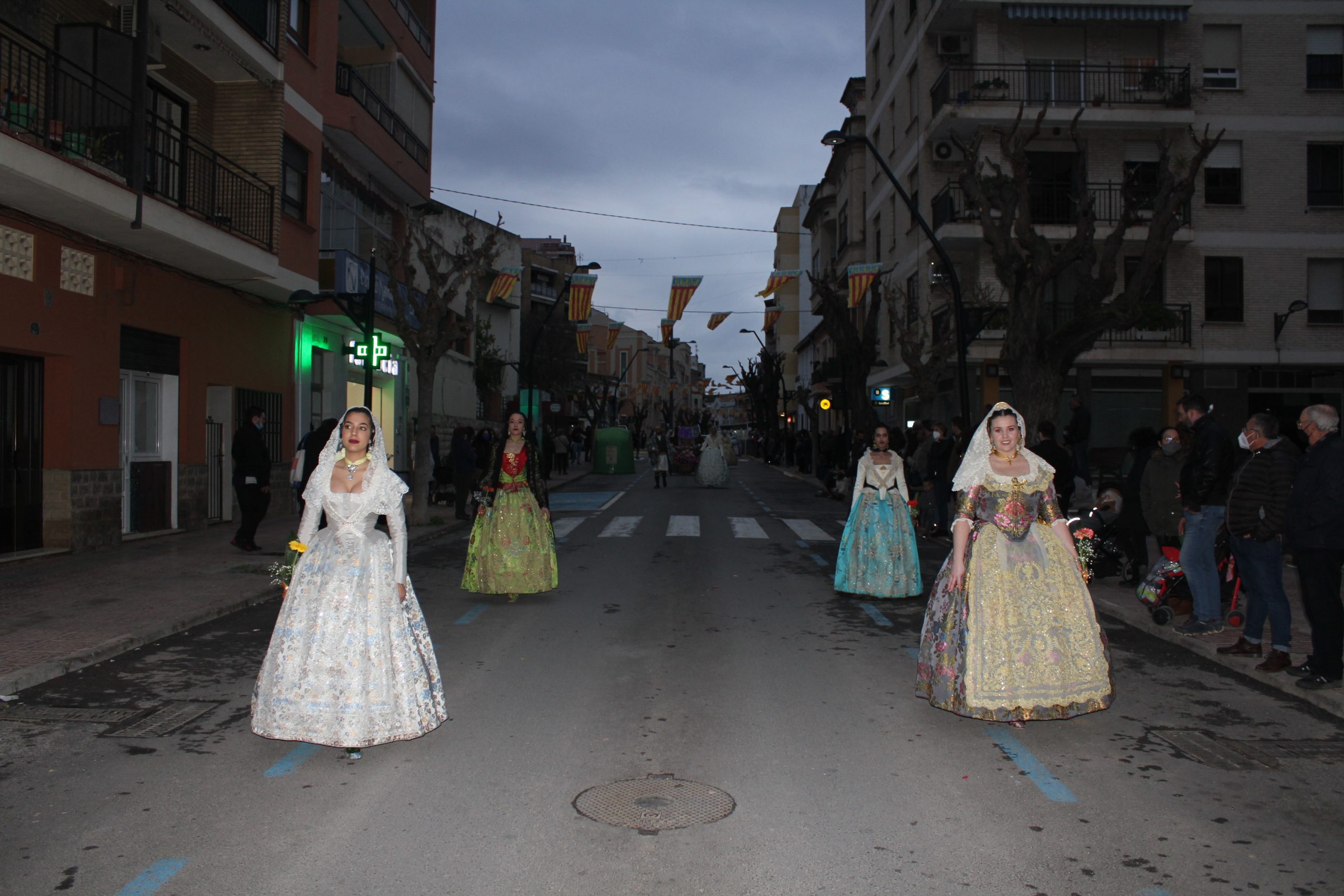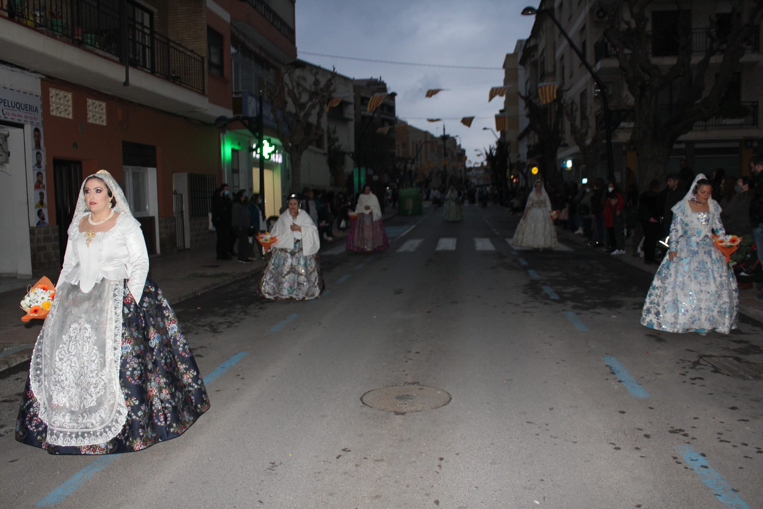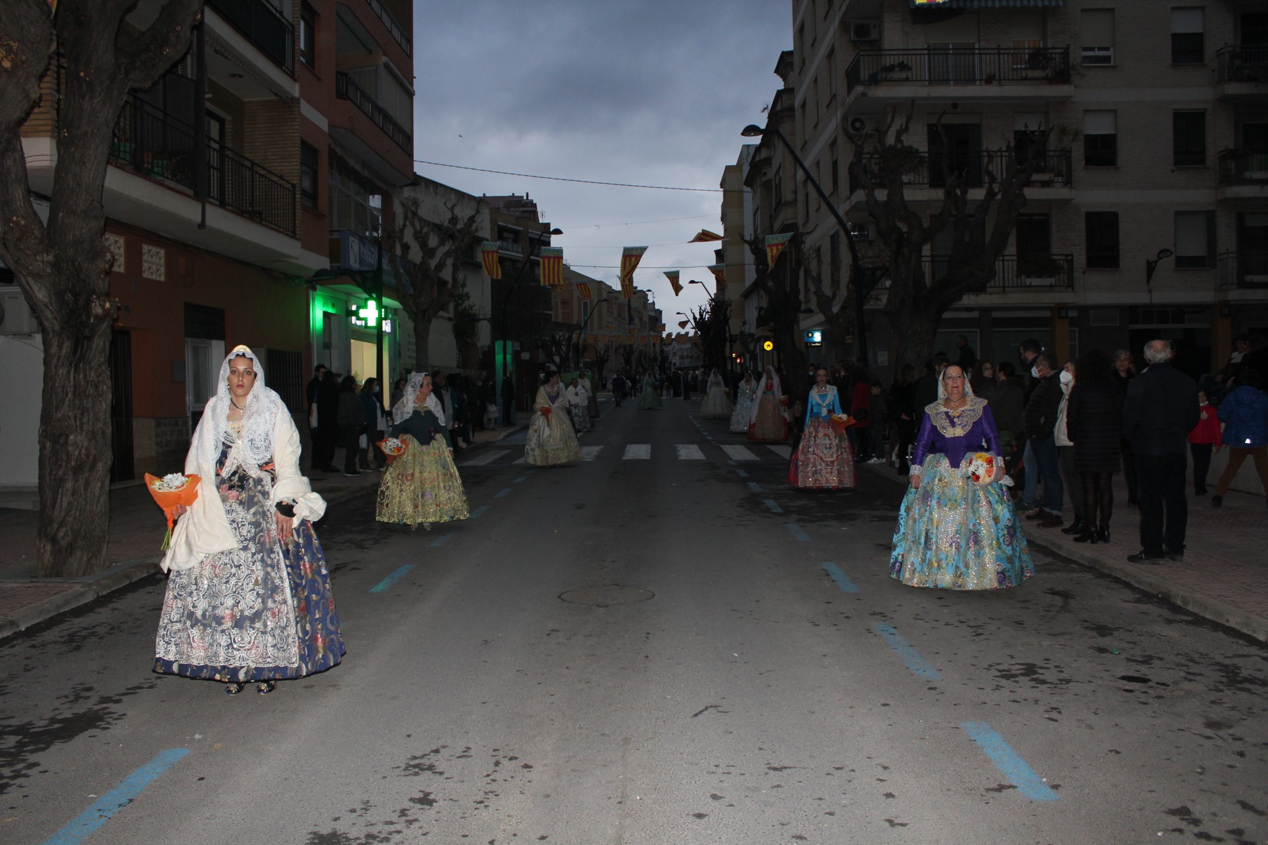 En la del pueblo, desde la Avenida de la Violeta, participaron las comisiones de la Falla Buñol Pueblo, Falla Reyes Católicos y Nuevo Buñol, que recordemos obtuvo el premio a la mejor falla grande. En Las Ventas, desfilaron, las comisiones de El Prado y Falla Ventas. Aunque el tiempo fue bastante desapacible, siempre es un momento único y bonito para las familias, para las falleras y falleros, participar en un acto como este y así lo reflejaron sus caras.