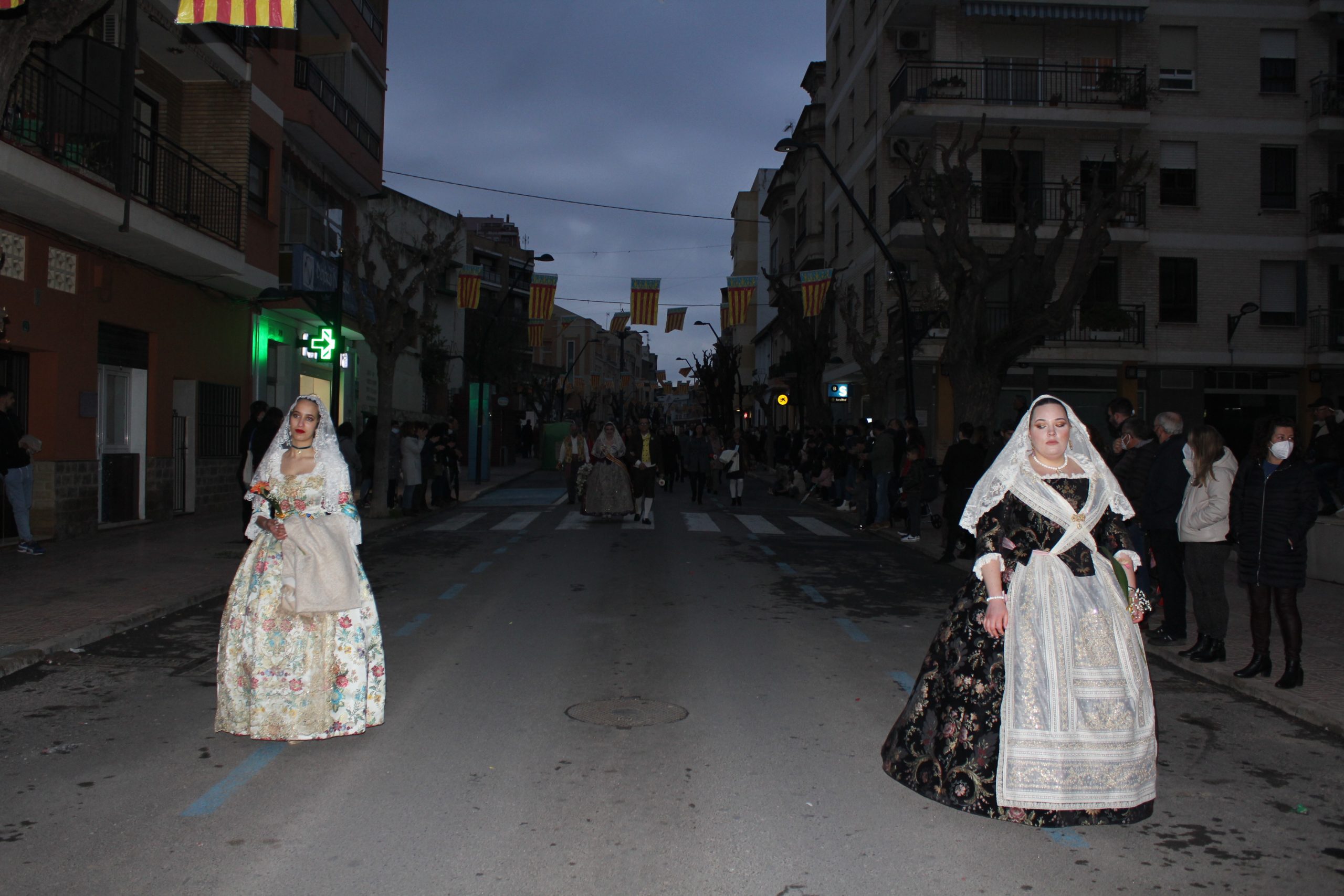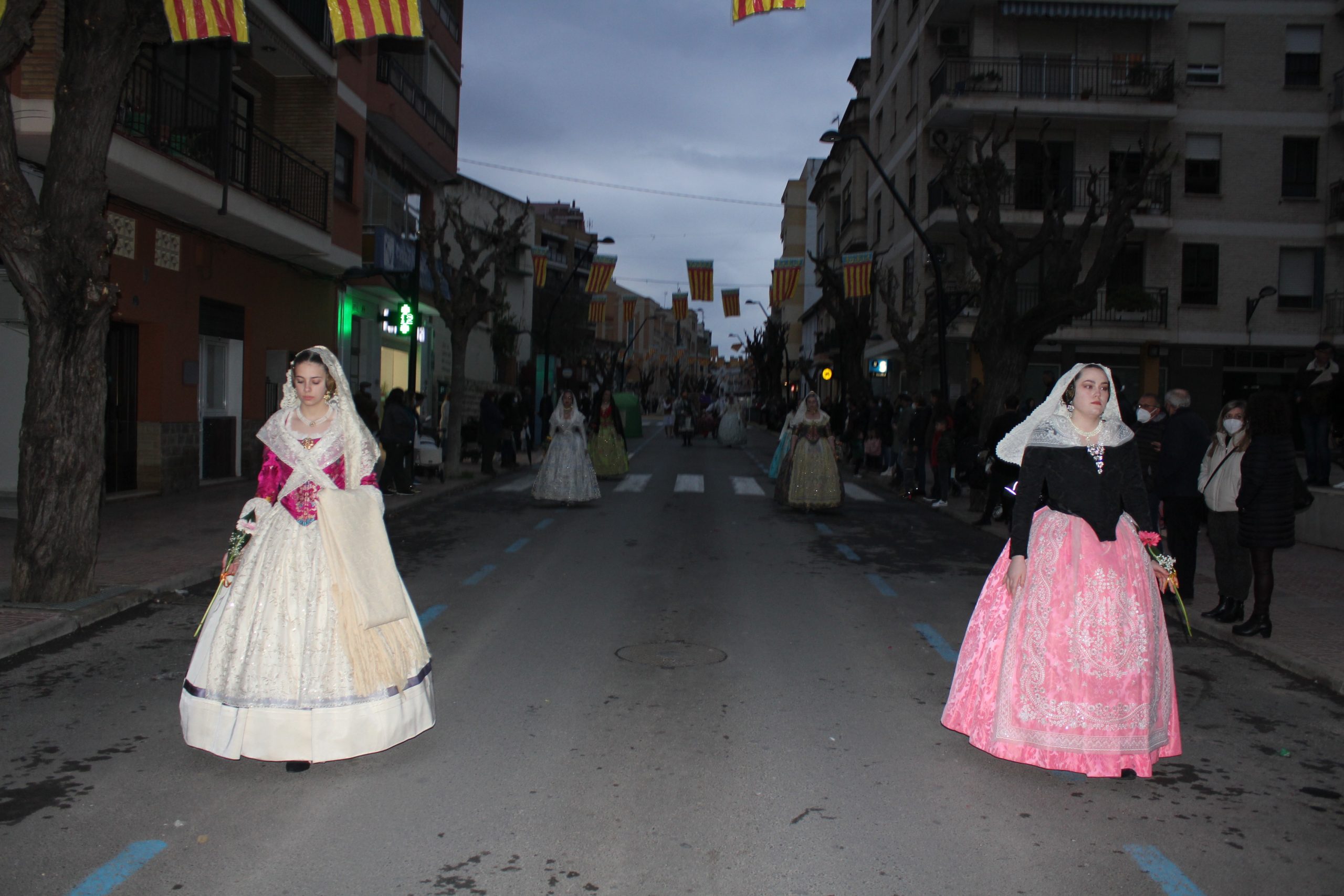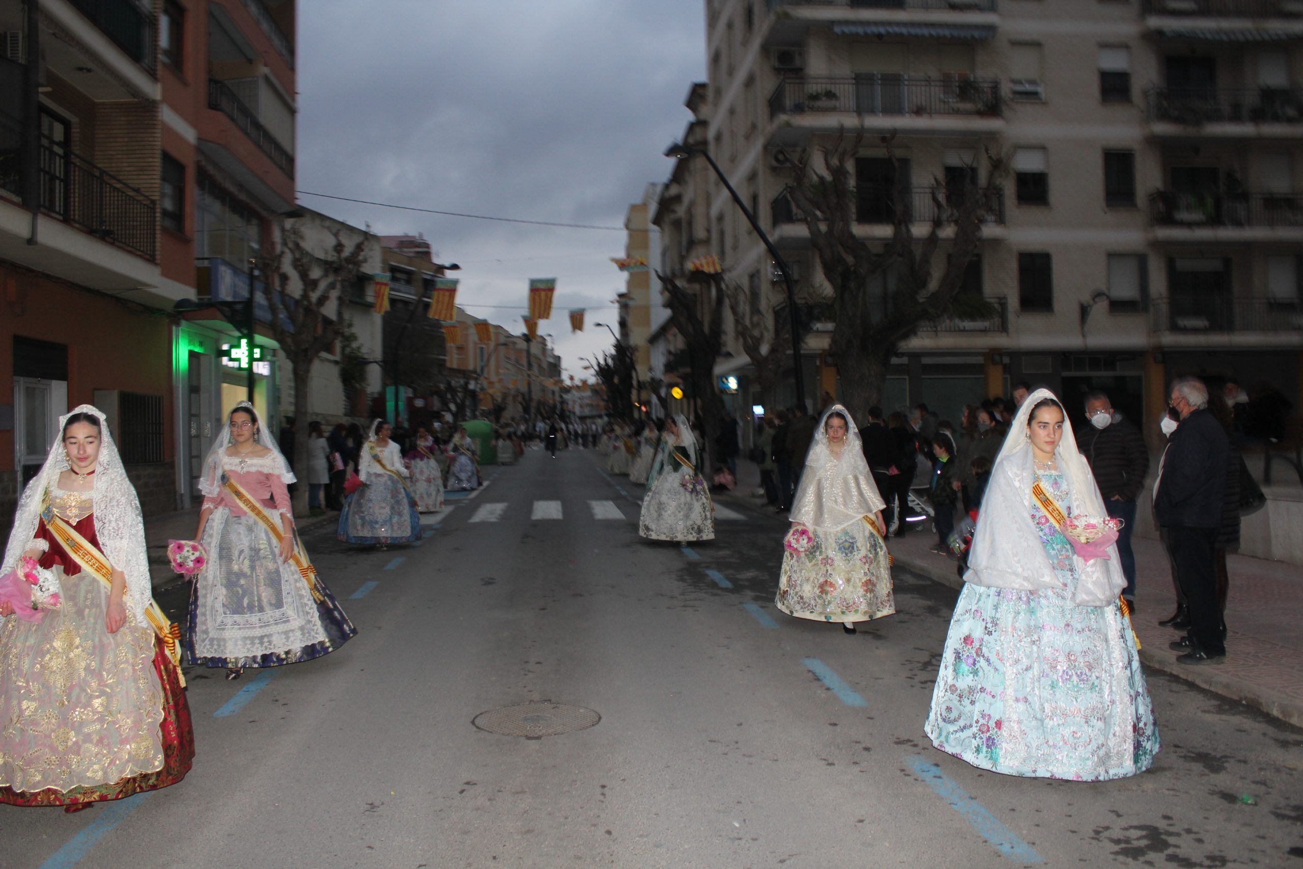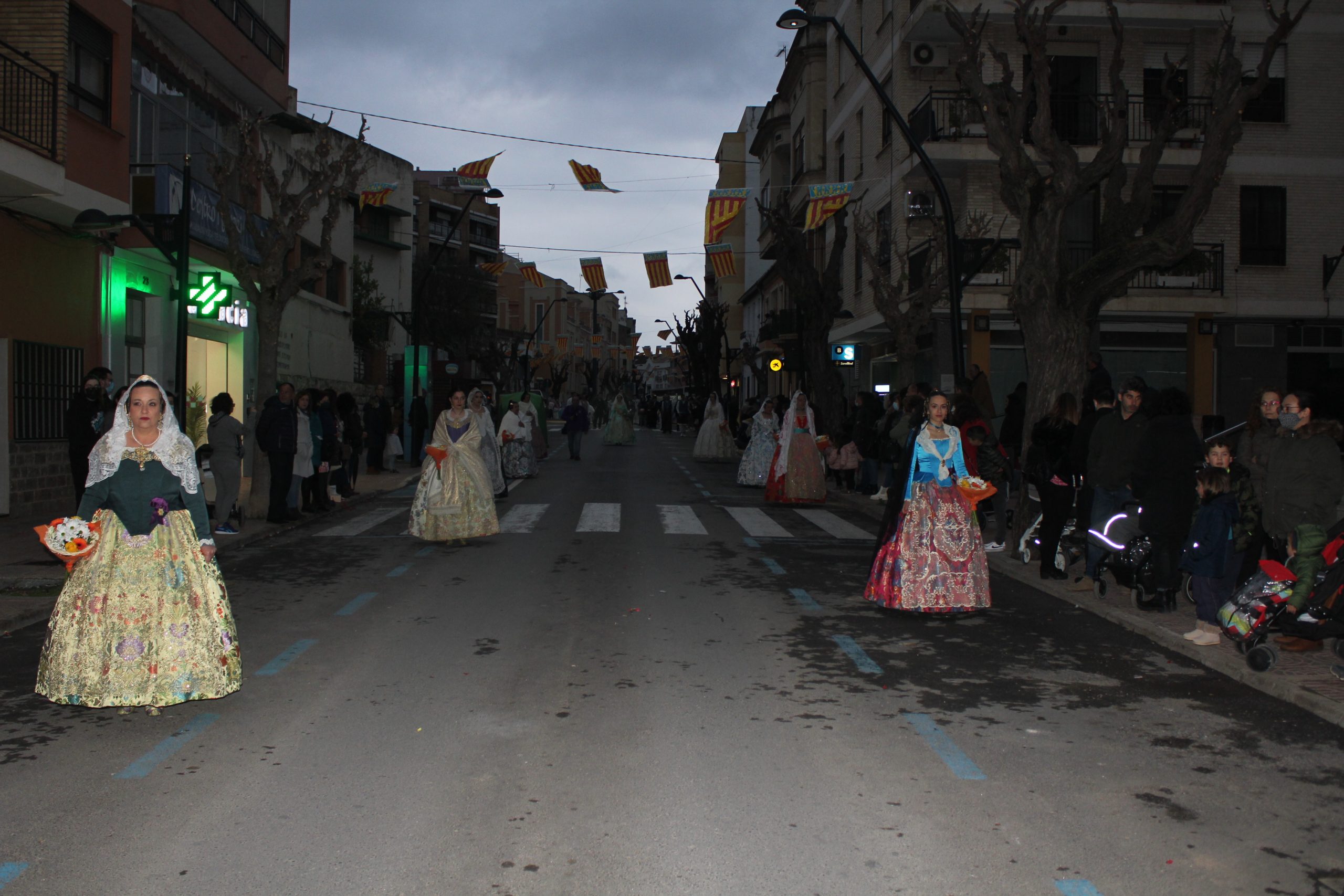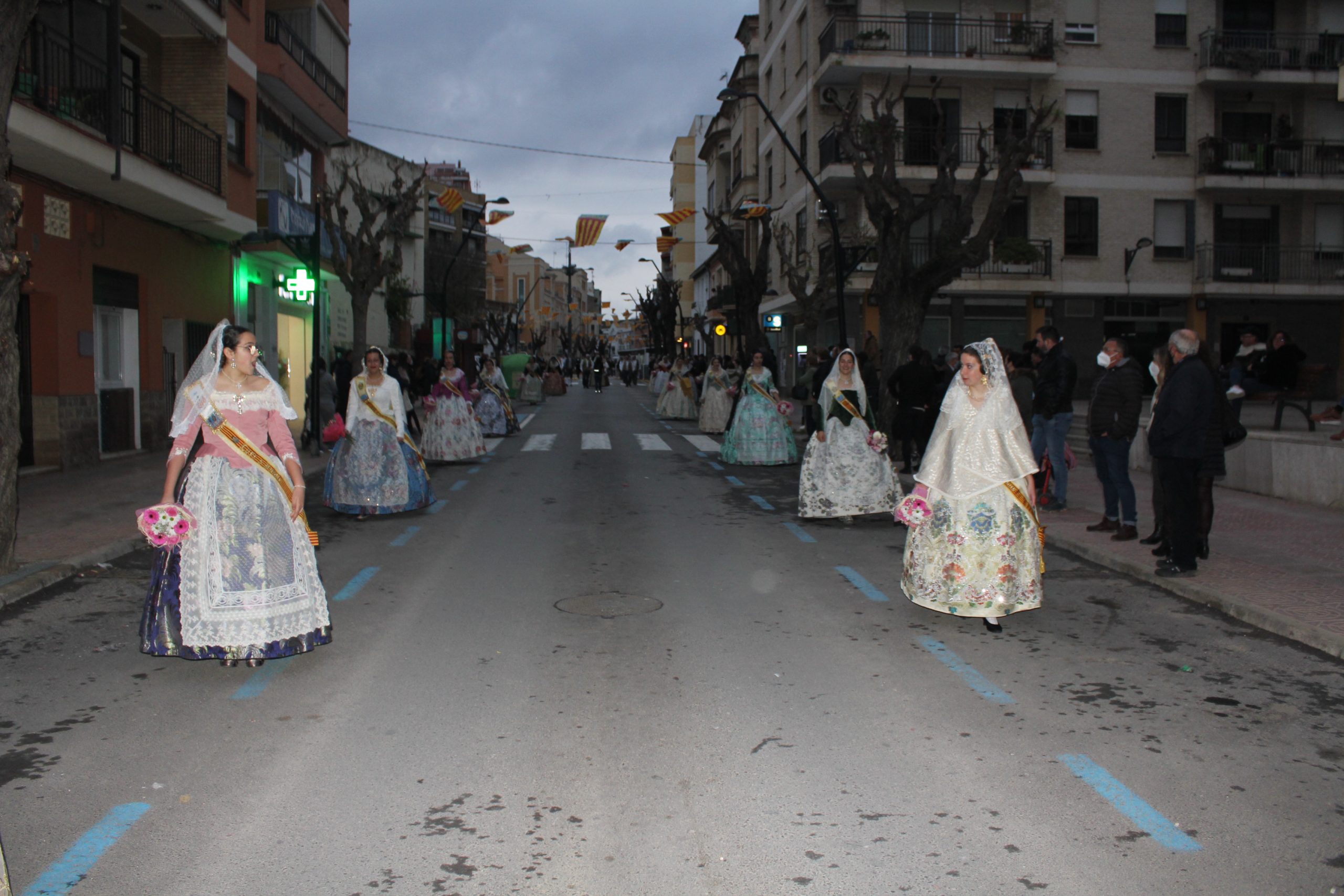 En la del pueblo, desde la Avenida de la Violeta, participaron las comisiones de la Falla Buñol Pueblo, Falla Reyes Católicos y Nuevo Buñol, que recordemos obtuvo el premio a la mejor falla grande. En Las Ventas, desfilaron, las comisiones de El Prado y Falla Ventas. Aunque el tiempo fue bastante desapacible, siempre es un momento único y bonito para las familias, para las falleras y falleros, participar en un acto como este y así lo reflejaron sus caras.