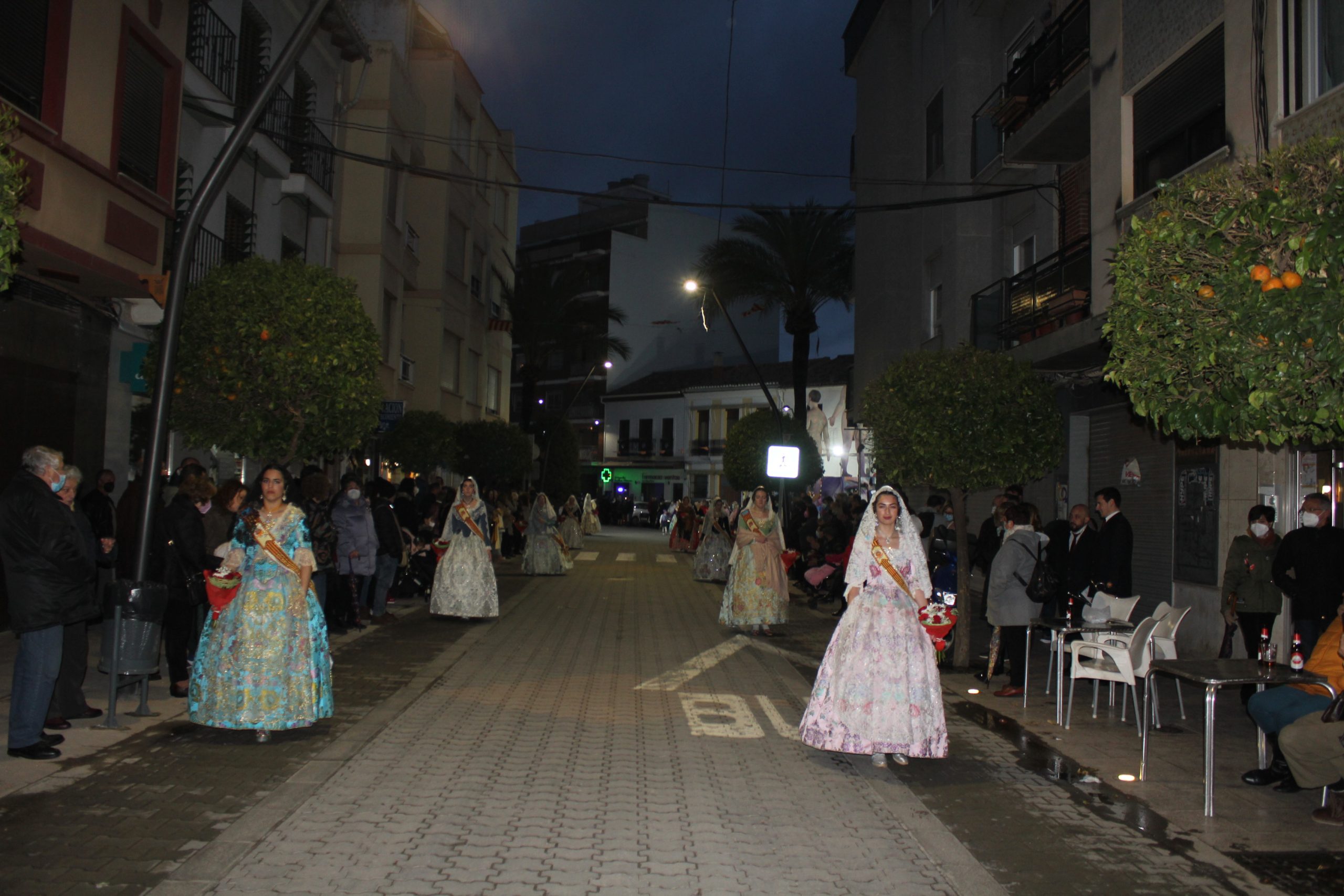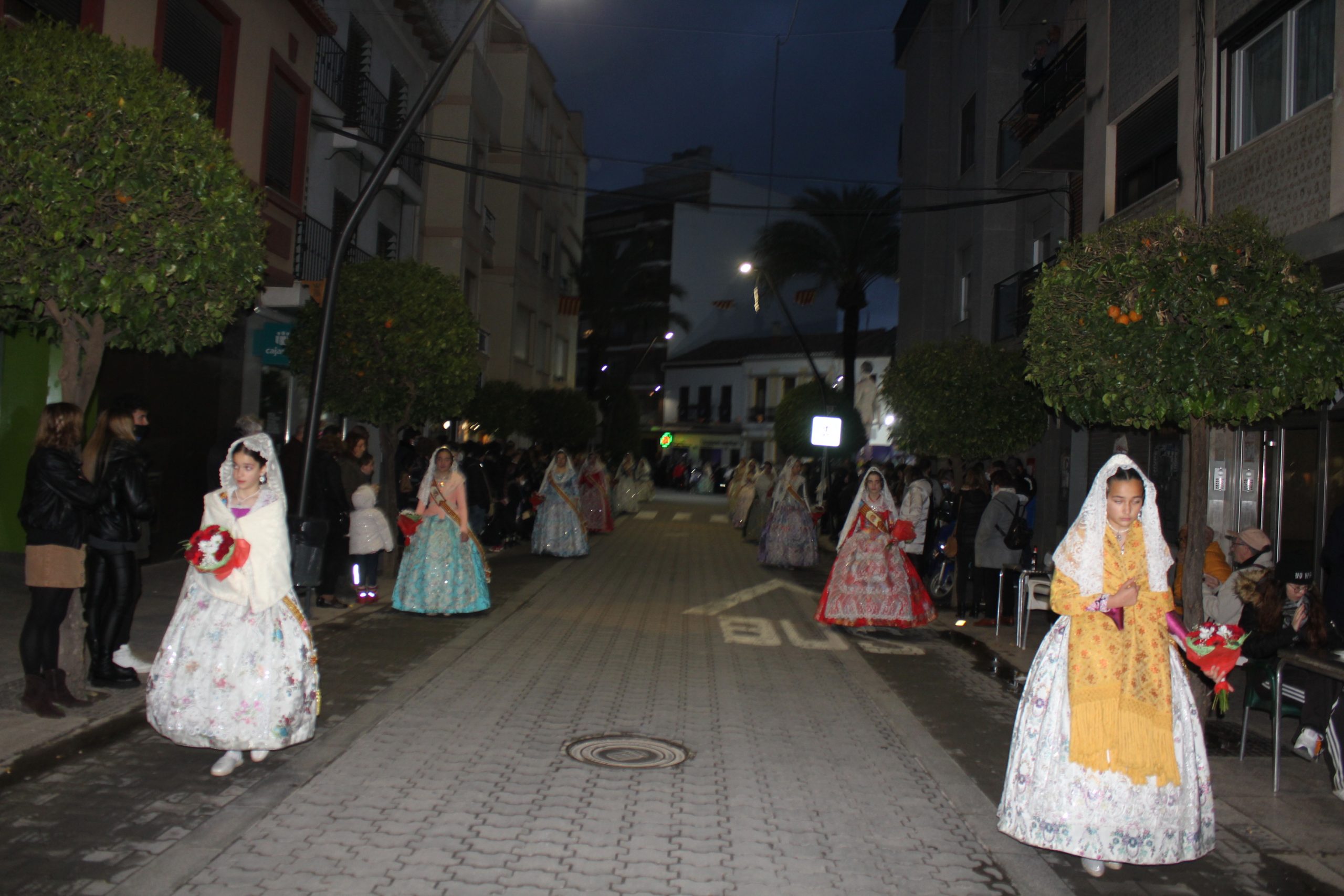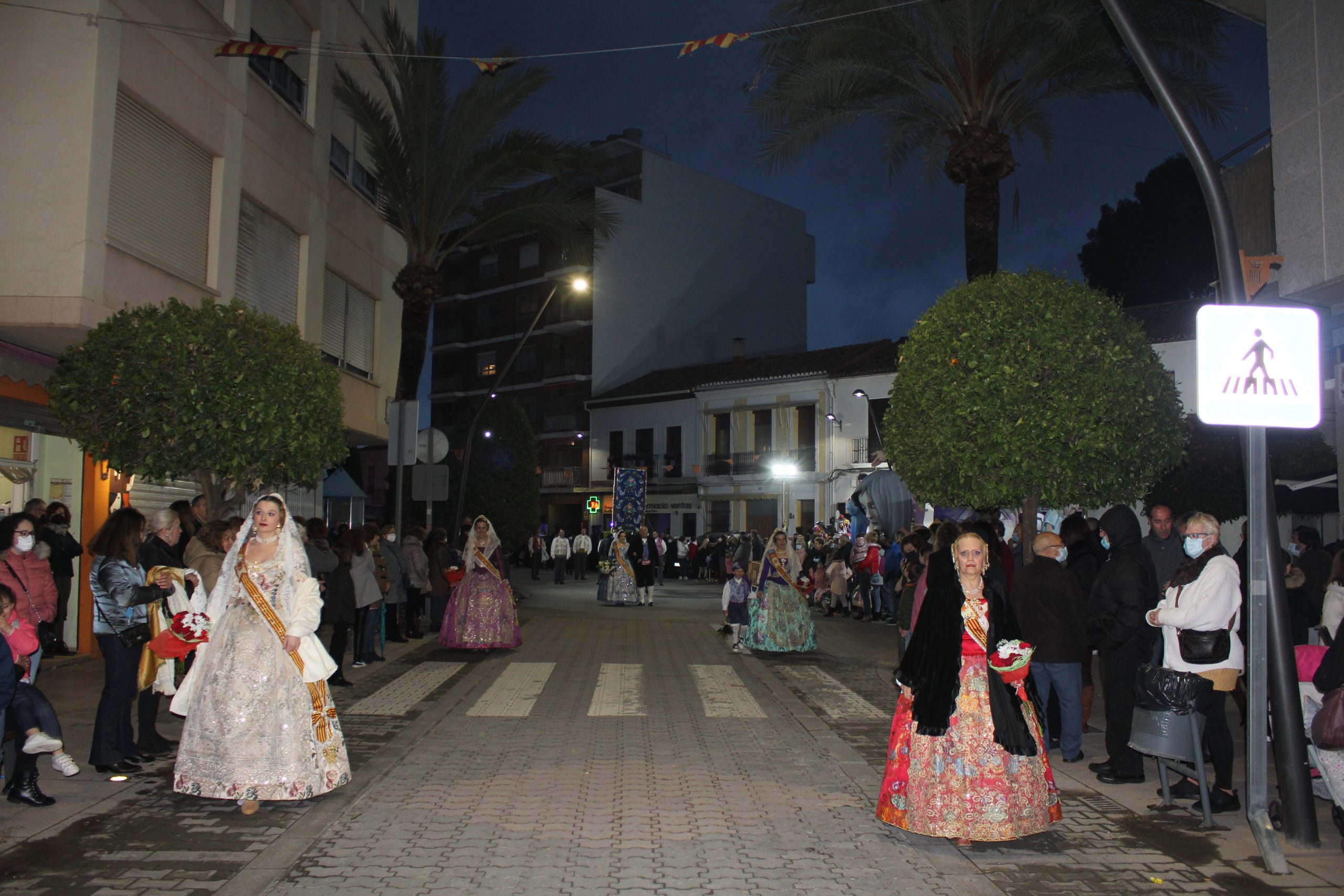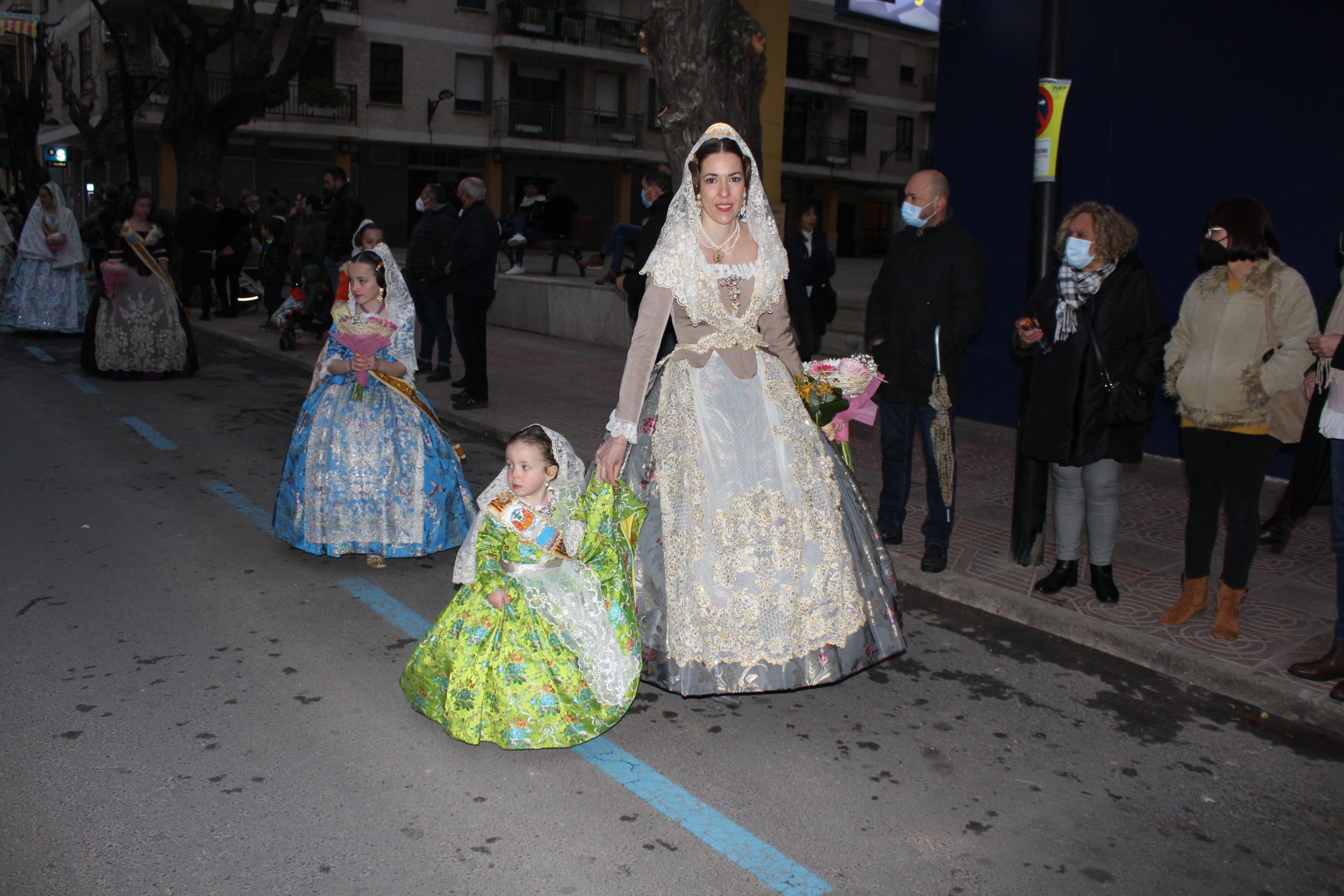 En la del pueblo, desde la Avenida de la Violeta, participaron las comisiones de la Falla Buñol Pueblo, Falla Reyes Católicos y Nuevo Buñol, que recordemos obtuvo el premio a la mejor falla grande. En Las Ventas, desfilaron, las comisiones de El Prado y Falla Ventas. Aunque el tiempo fue bastante desapacible, siempre es un momento único y bonito para las familias, para las falleras y falleros, participar en un acto como este y así lo reflejaron sus caras.