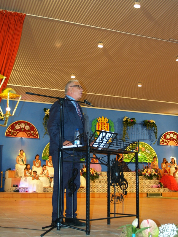 El acto fue presentado por el periodista Vicente Manuel Montó Miralles y actuó como mantenedor D. Fernando Delgado, Licenciado en Ciencias de la Información y periodista en prensa, radio y televisión y actualmente Diputado autonómico.