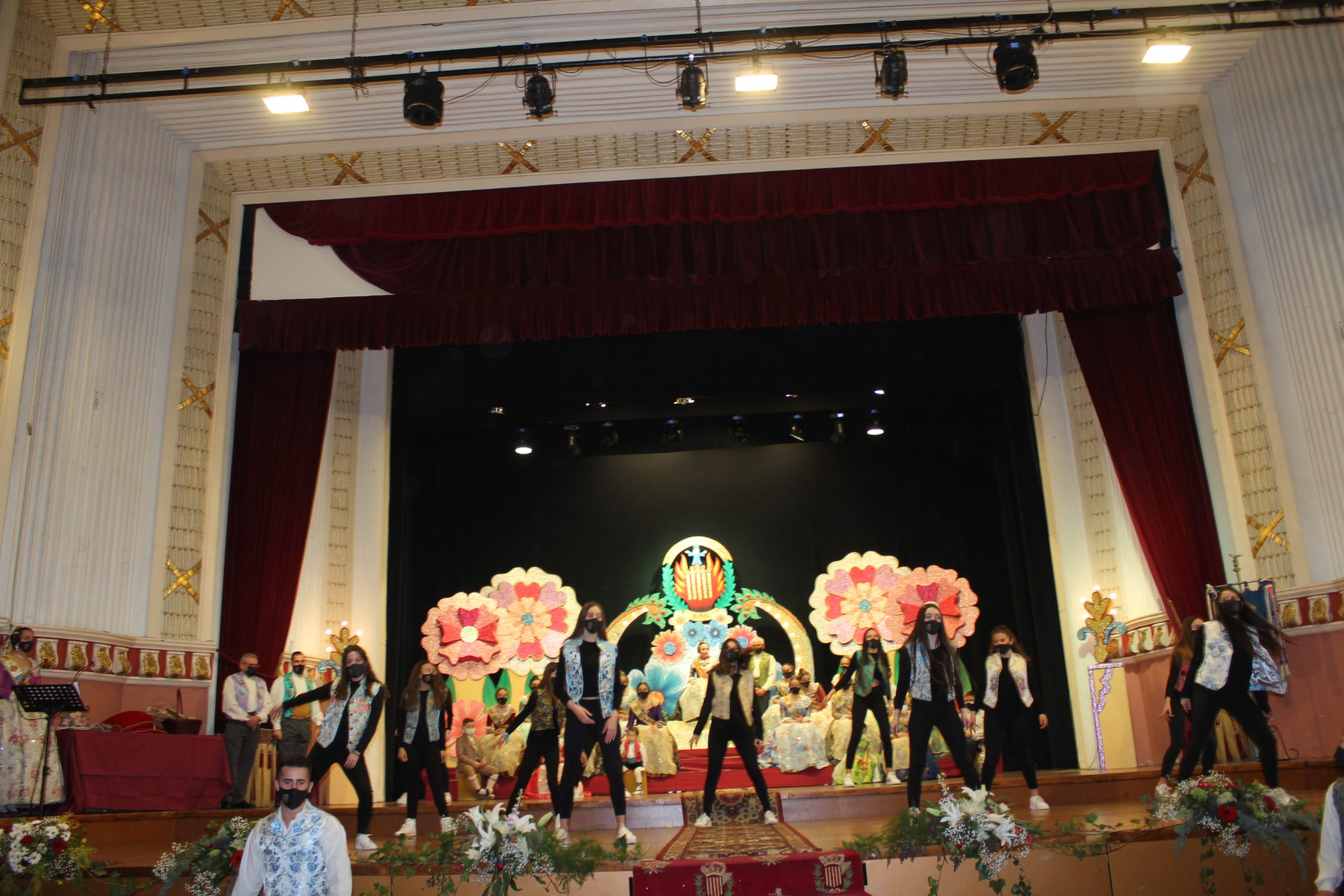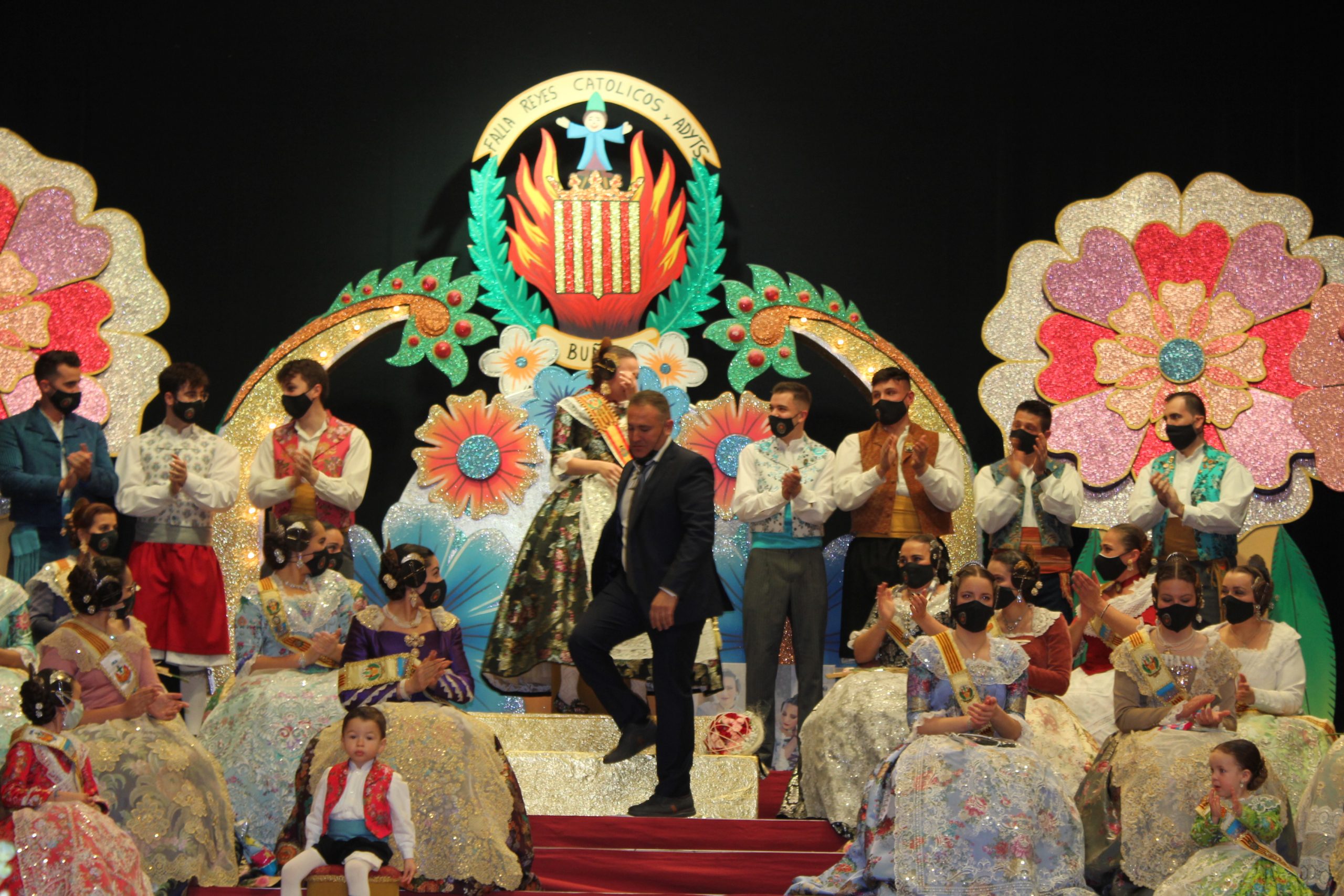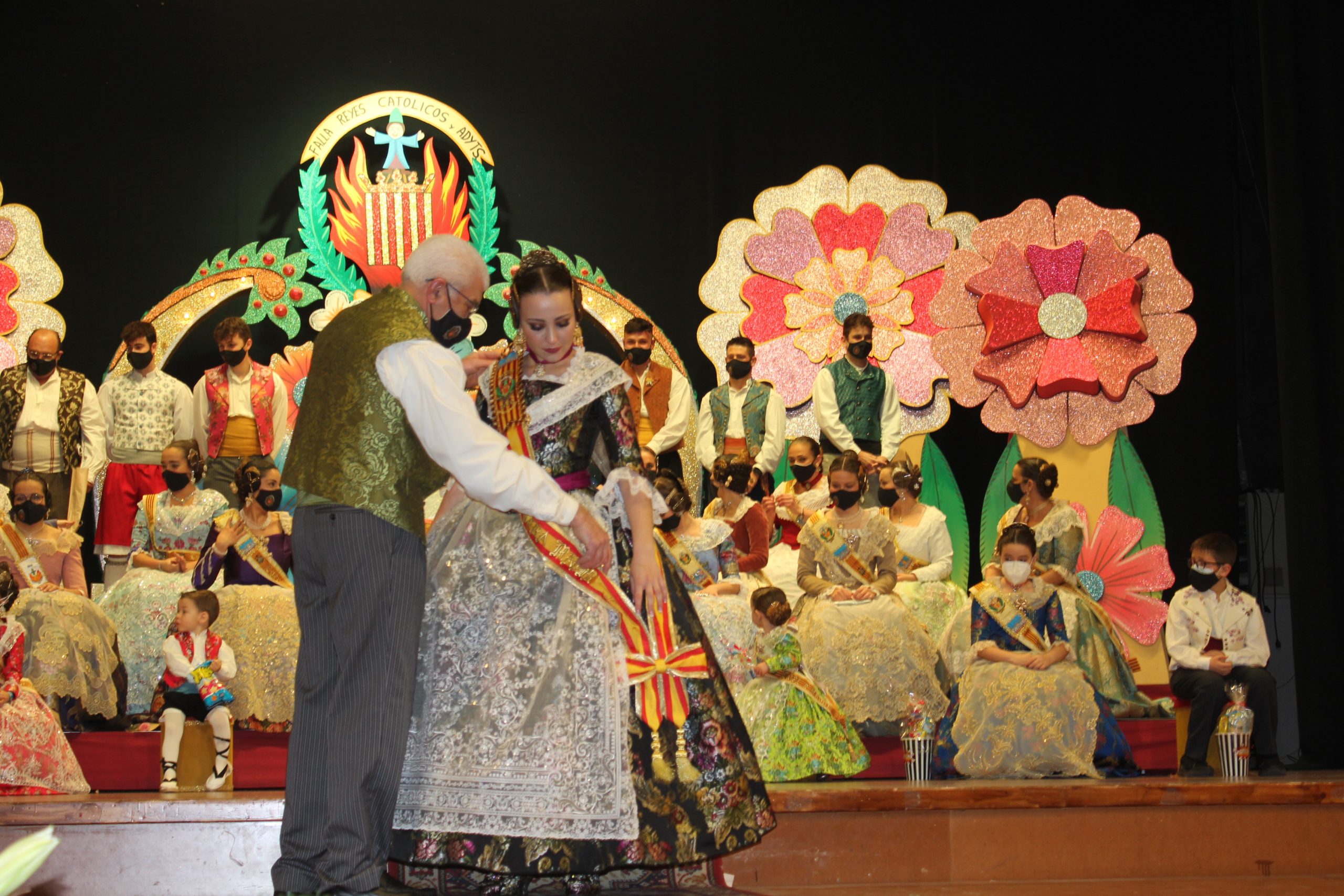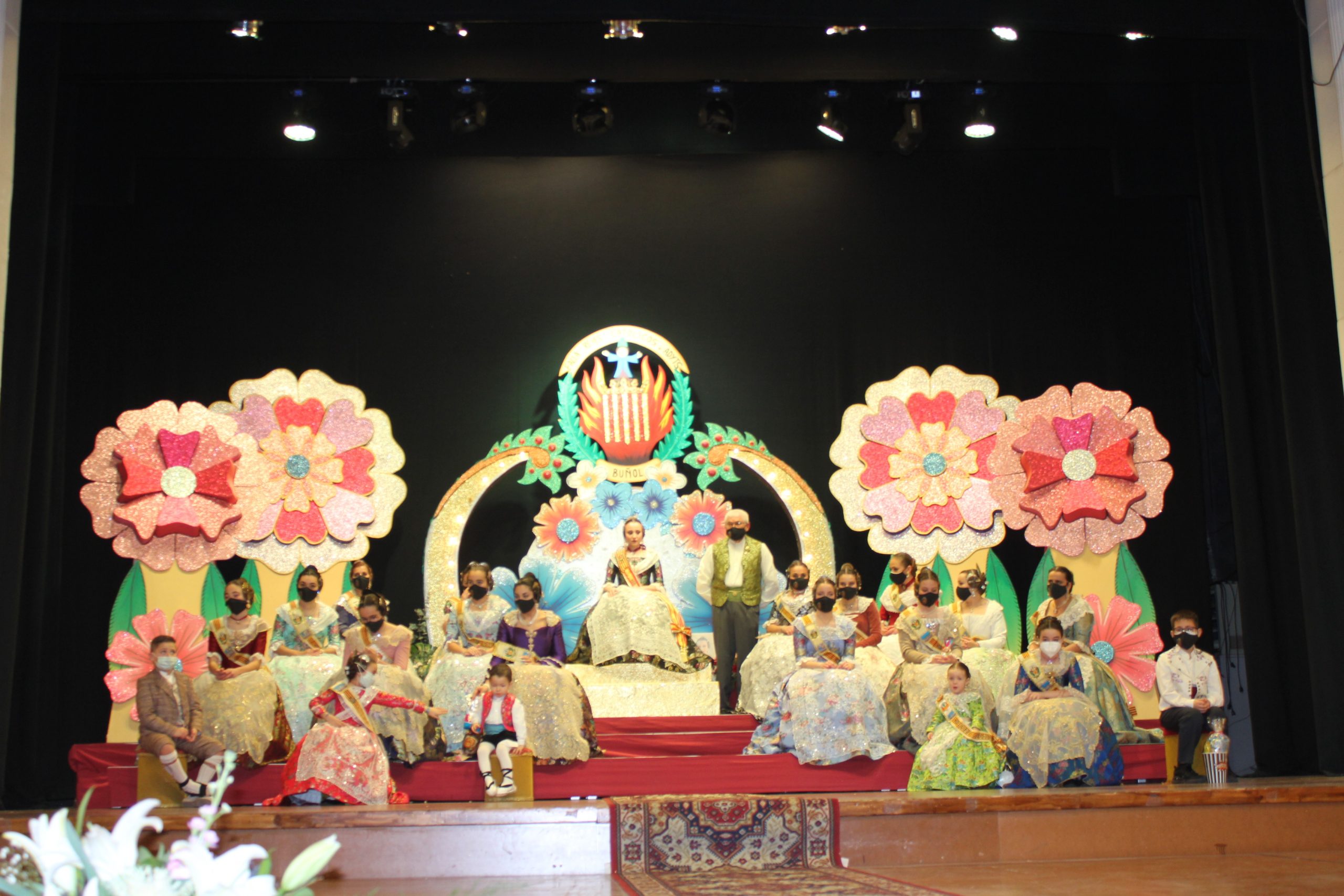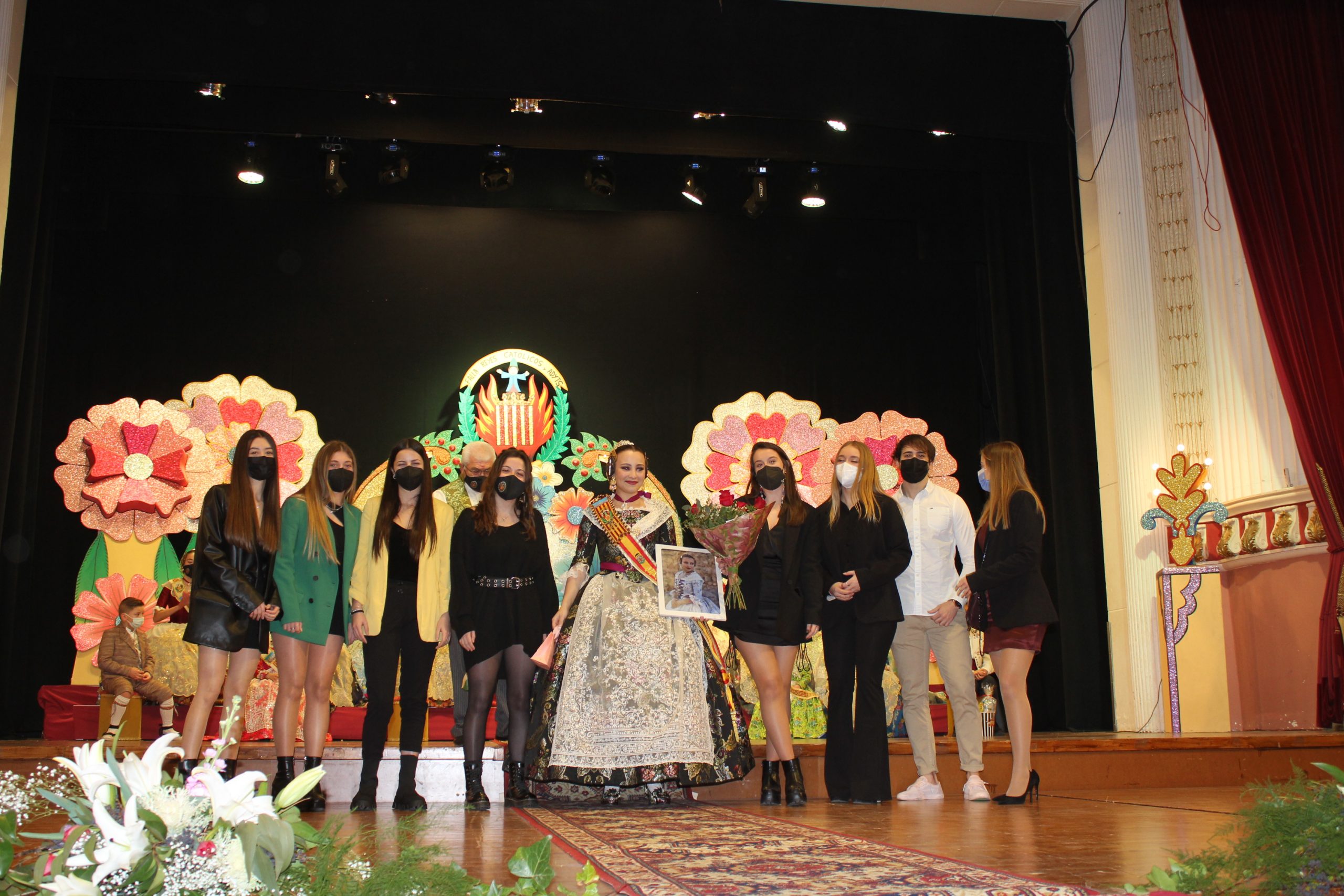Un escenario engalanado para la ocasión por Salvador Espert y sus ayudantes. Decenas de falleras y falleros que llenaron el escenario. Un emotivo vídeo de recuerdo de como la pandemia ha afectado a las fallas, pero no al espíritu de los miembros de la comisión. Un baile preparado por las más jóvenes de la falla. Su padre, Javier leyó unas emotivas palabras. Y, finalmente, Laura, recibió el caluroso recibimiento de las fallas amigas y de la Reina de la Feria y Fiestas y de la Alcaldesa de Buñol.