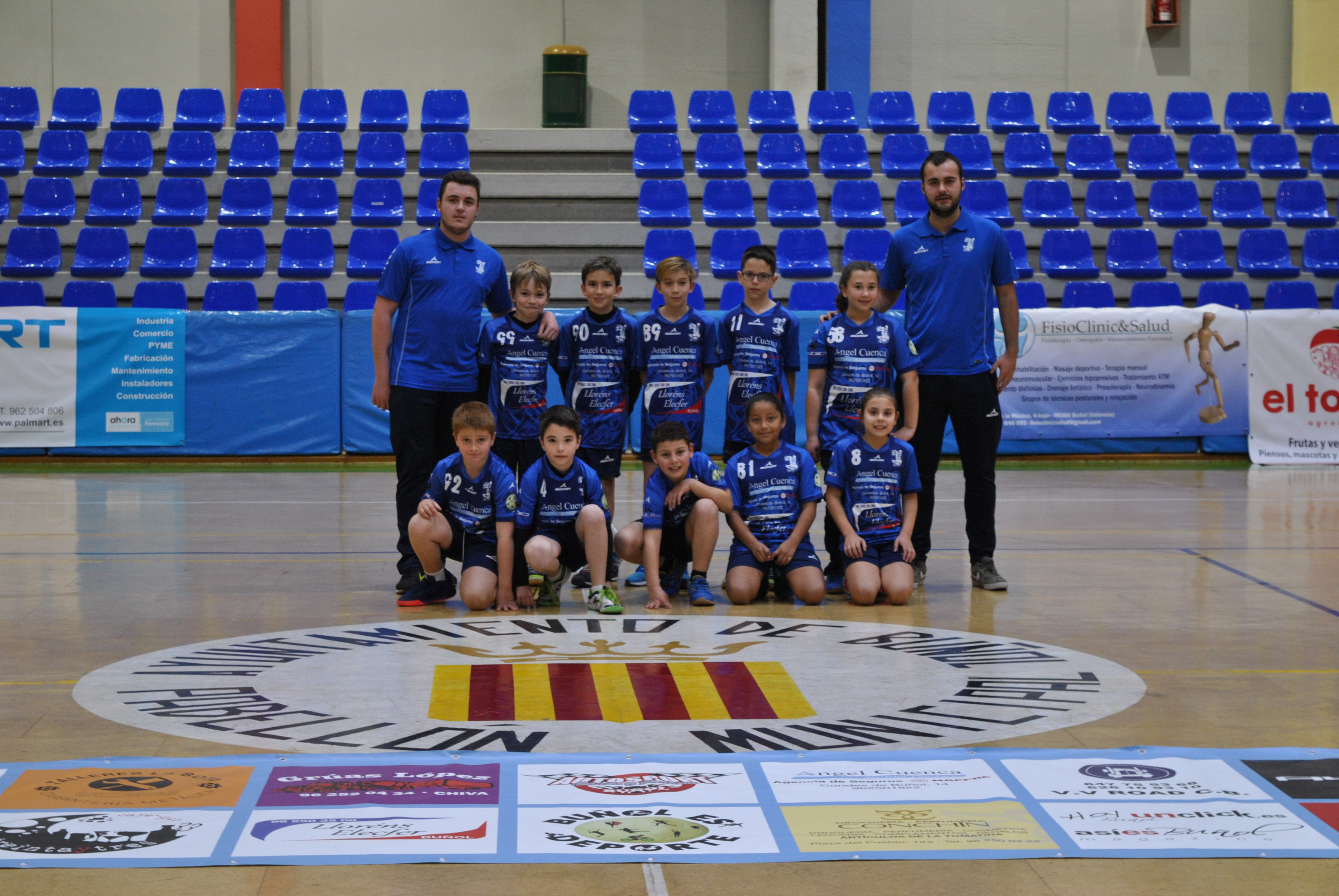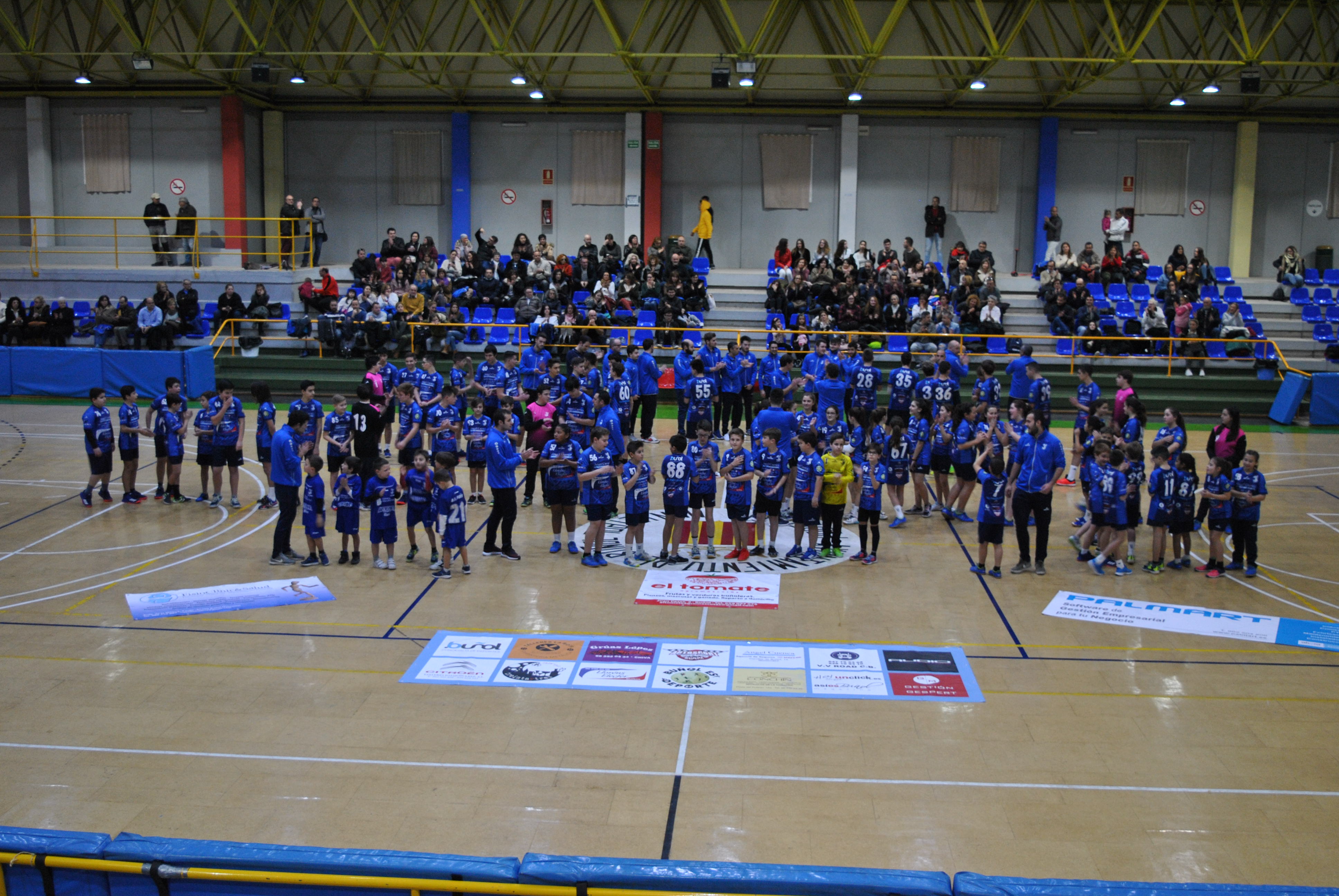 Por último, el acto se cerró con una gran foto de familia de todos los equipos ante un Pebellón lleno de familiares, padres, madres y abuelos, que vieron a los más pequeños disfrutar de este acto. Posteriormente el equipo sénior disputó su partido de liga ante el Florida Catarroja, al que venció por 37 a 31.