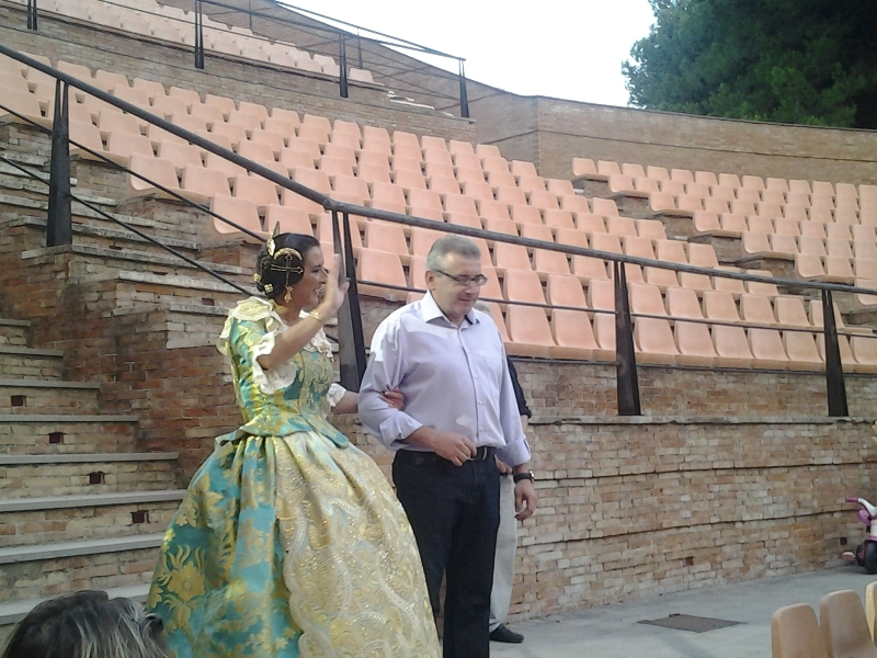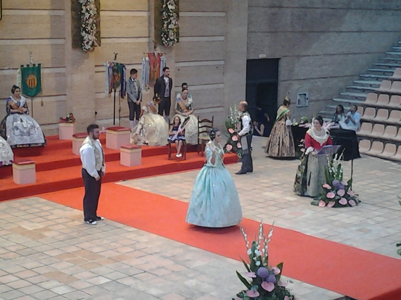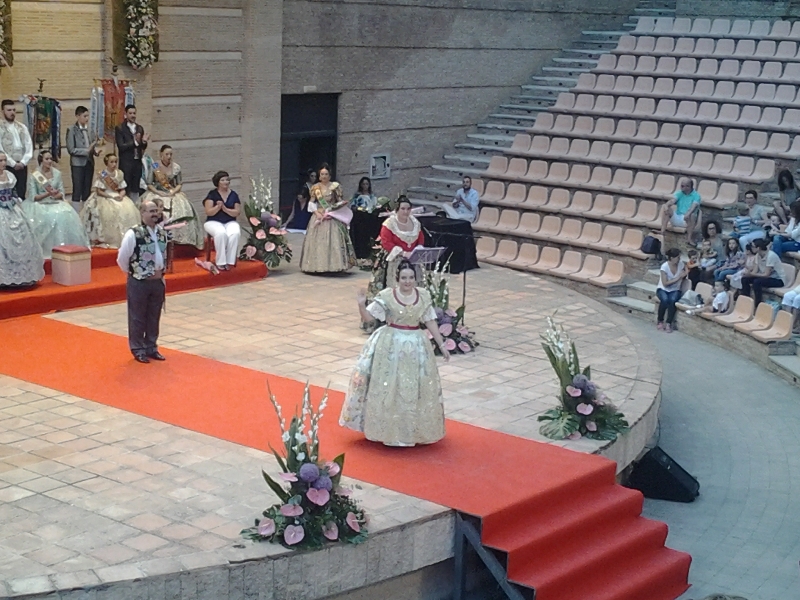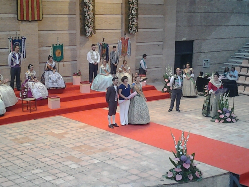 Reyes que subió al escenario de la mano de su esposo, saludó muy emocionada al numeroso público del auditorio. Además, recibió una grata sorpresa de manos de su hijo, a modo de audio, donde el pequeño reiteró el orgullo que tenía de que su madre se convirtiese en Fallera Mayor de la Junta Local. Además, Reyes estará acompañada este año por su Corte de Honor que la forman: Silvia Sáez Espert, Mª Ángeles Vallés Calabuig, Berta Alberola Collado y Sonia Llopis Hernández.