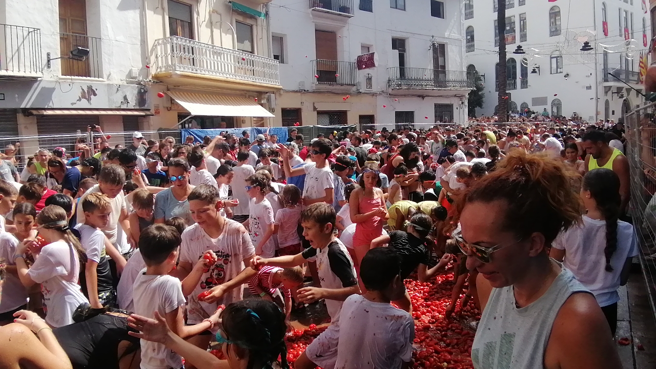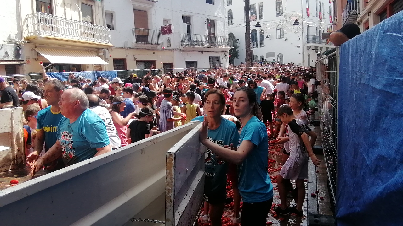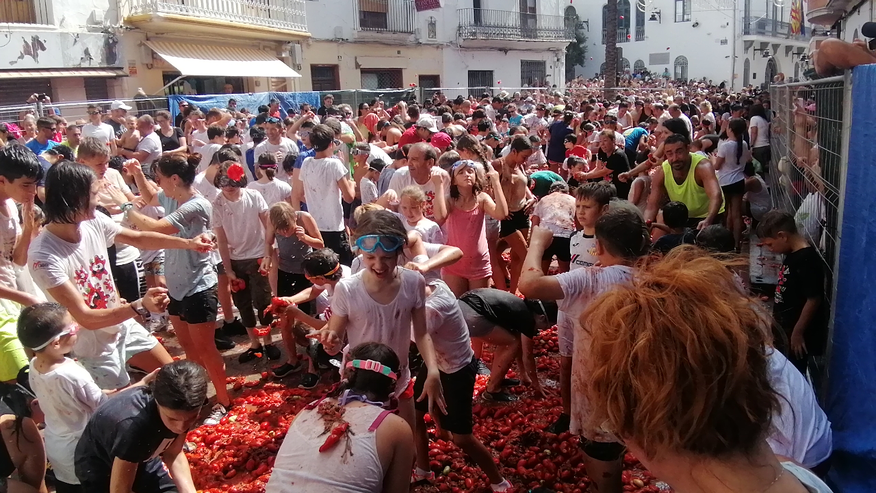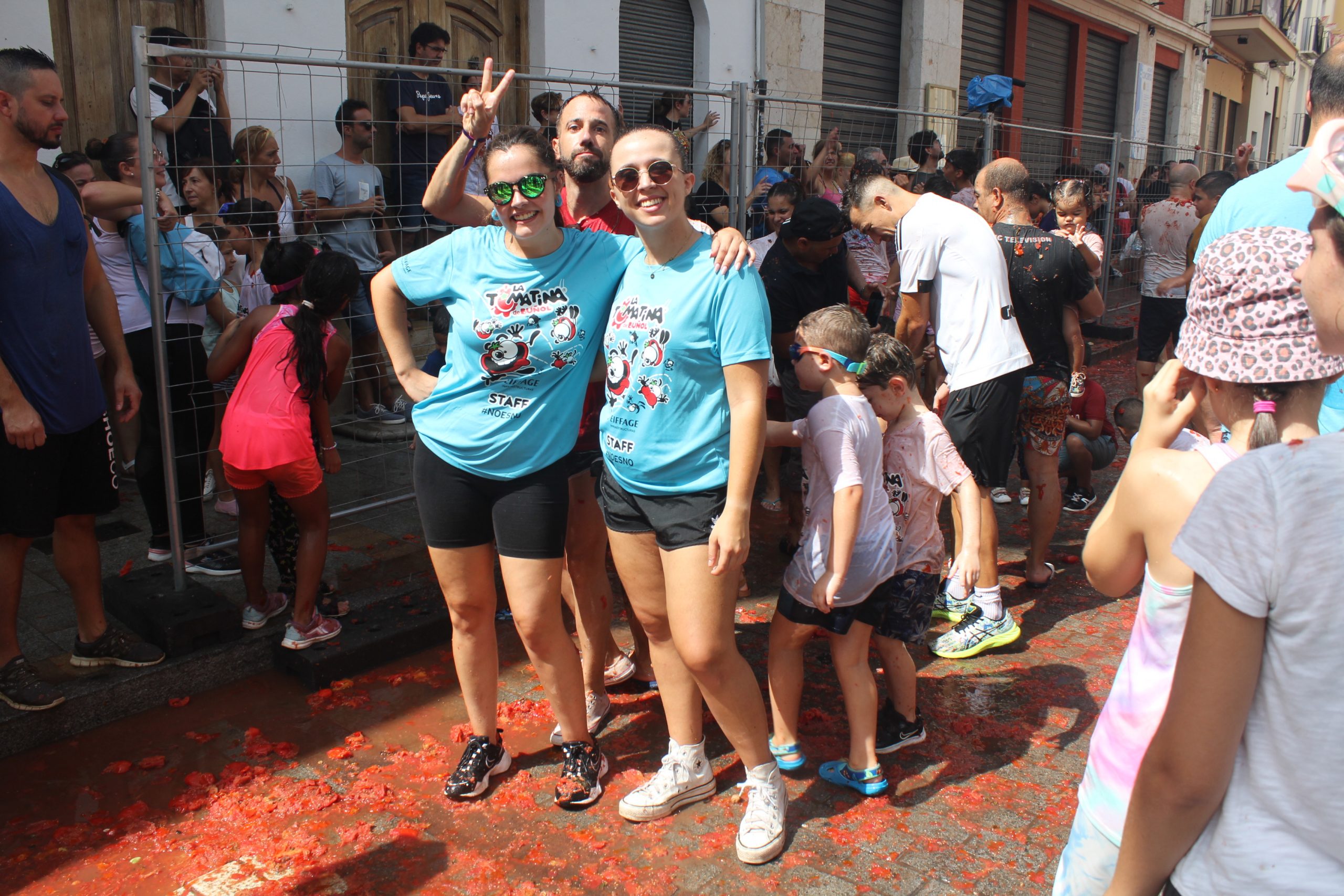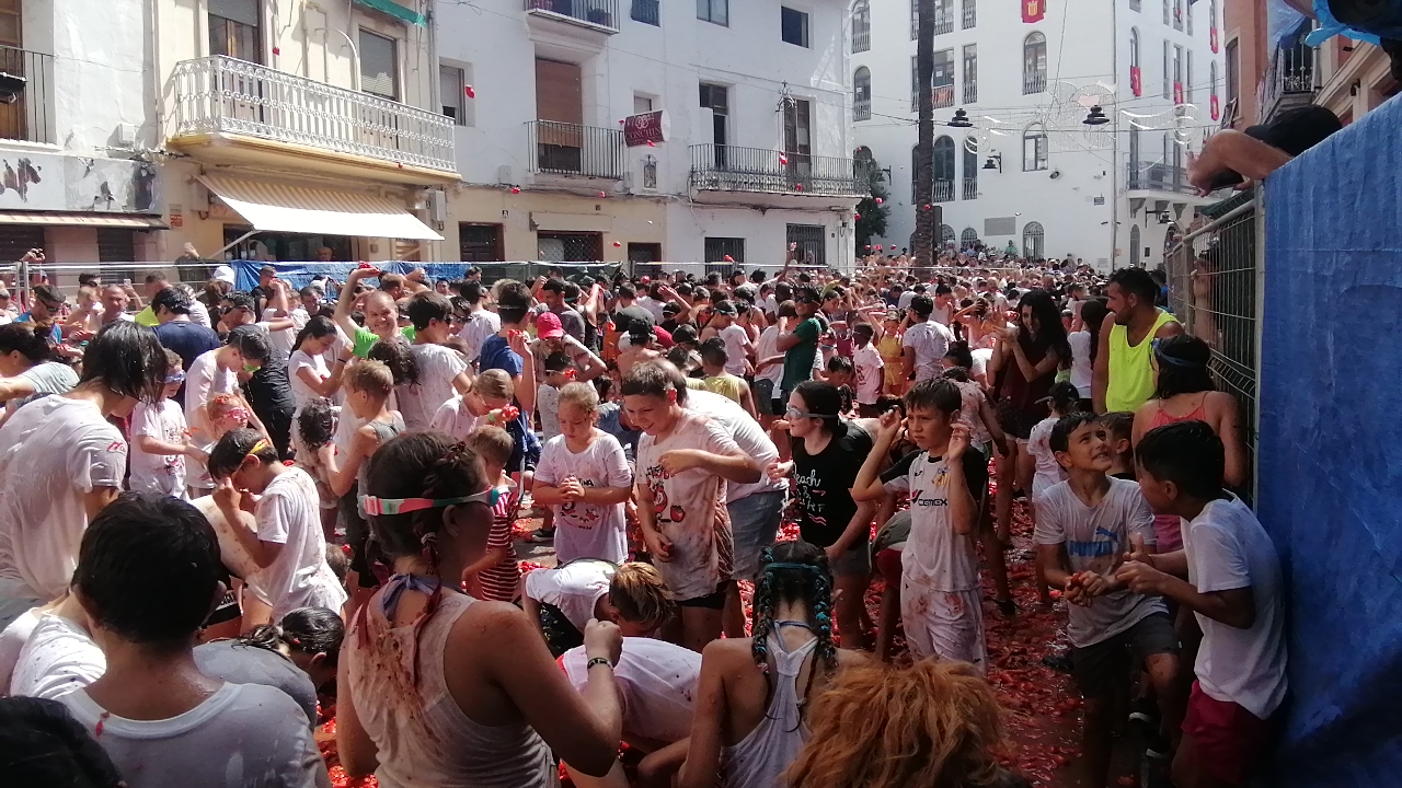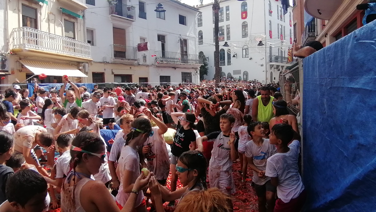 La Plaza del Pueblo de Buñol acogió a gran cantidad de niños y niñas que vivieron momentos de felicidad rodeados de 8.000 kilos de tomates. Los colaboradores y los trabajadores del Ayuntamiento de Buñol se encargaron de que todo discurriese.