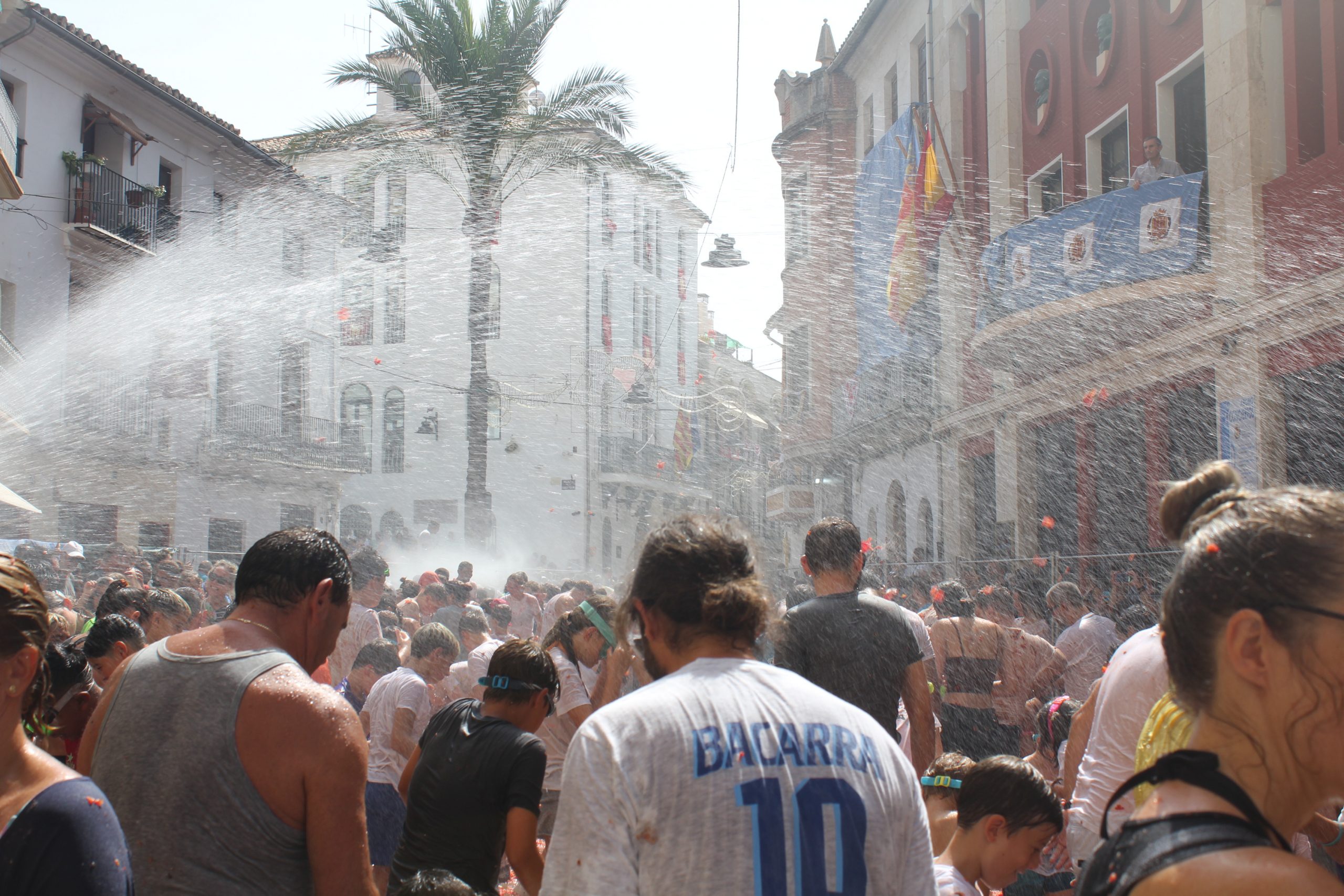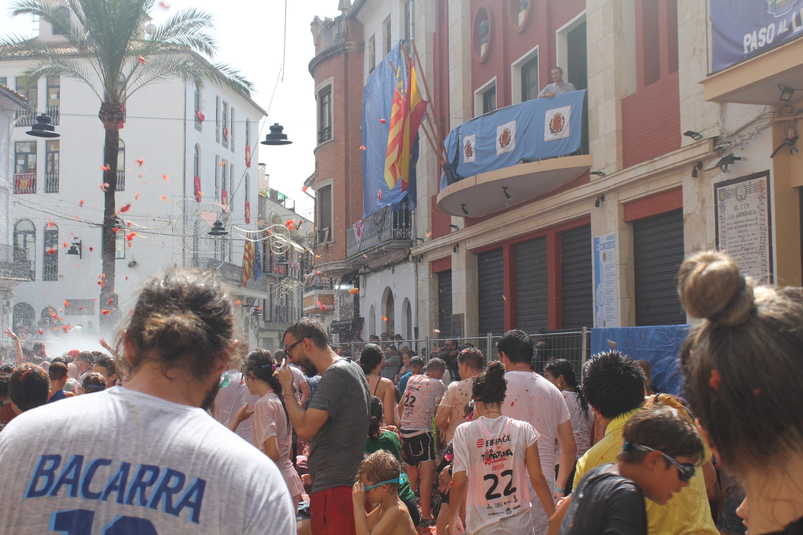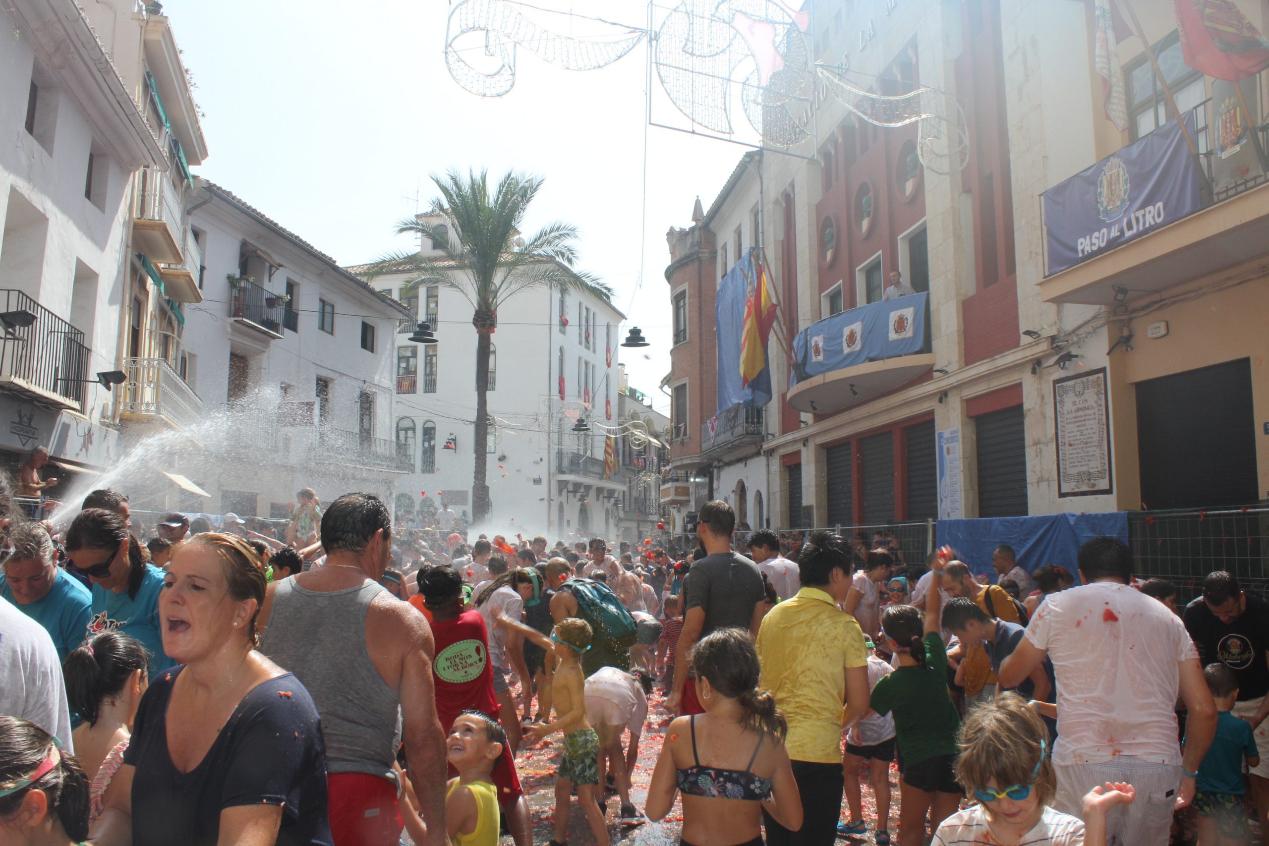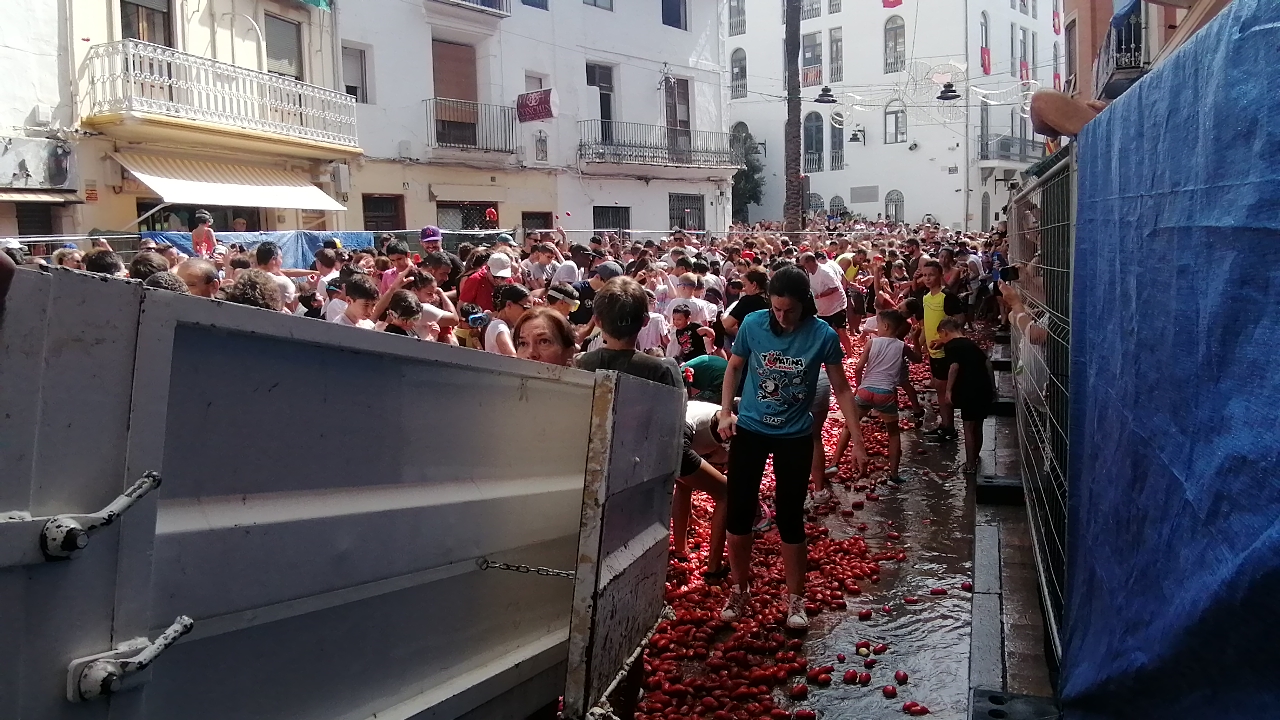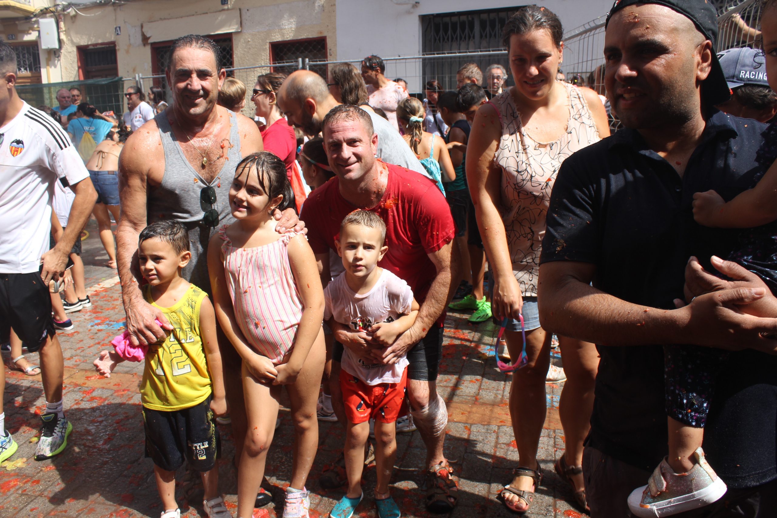 La Plaza del Pueblo de Buñol acogió a gran cantidad de niños y niñas que vivieron momentos de felicidad rodeados de 8.000 kilos de tomates. Los colaboradores y los trabajadores del Ayuntamiento de Buñol se encargaron de que todo discurriese.