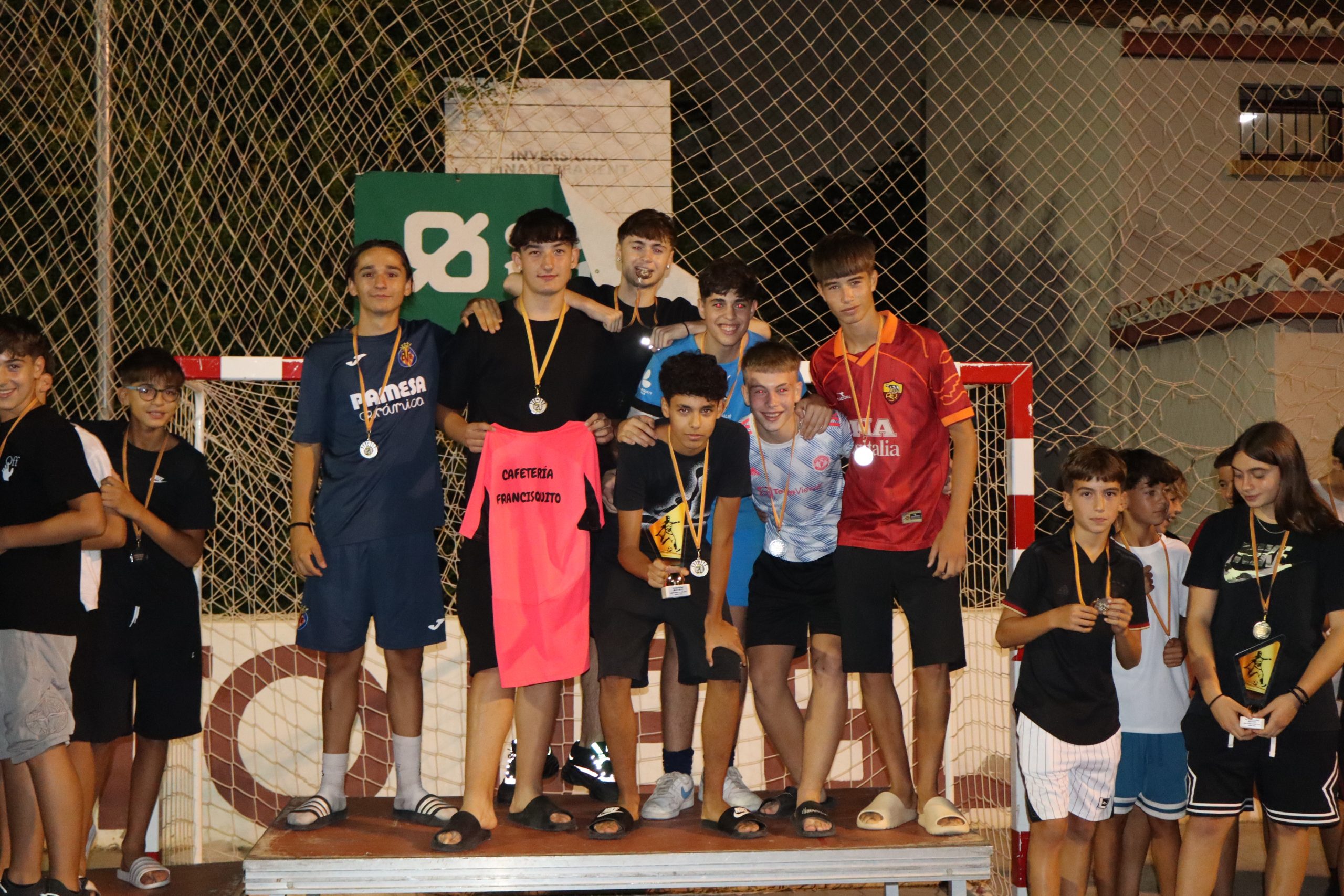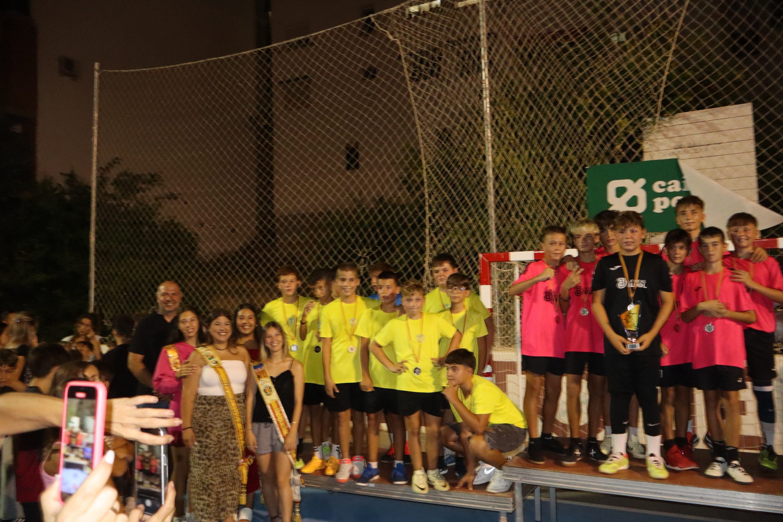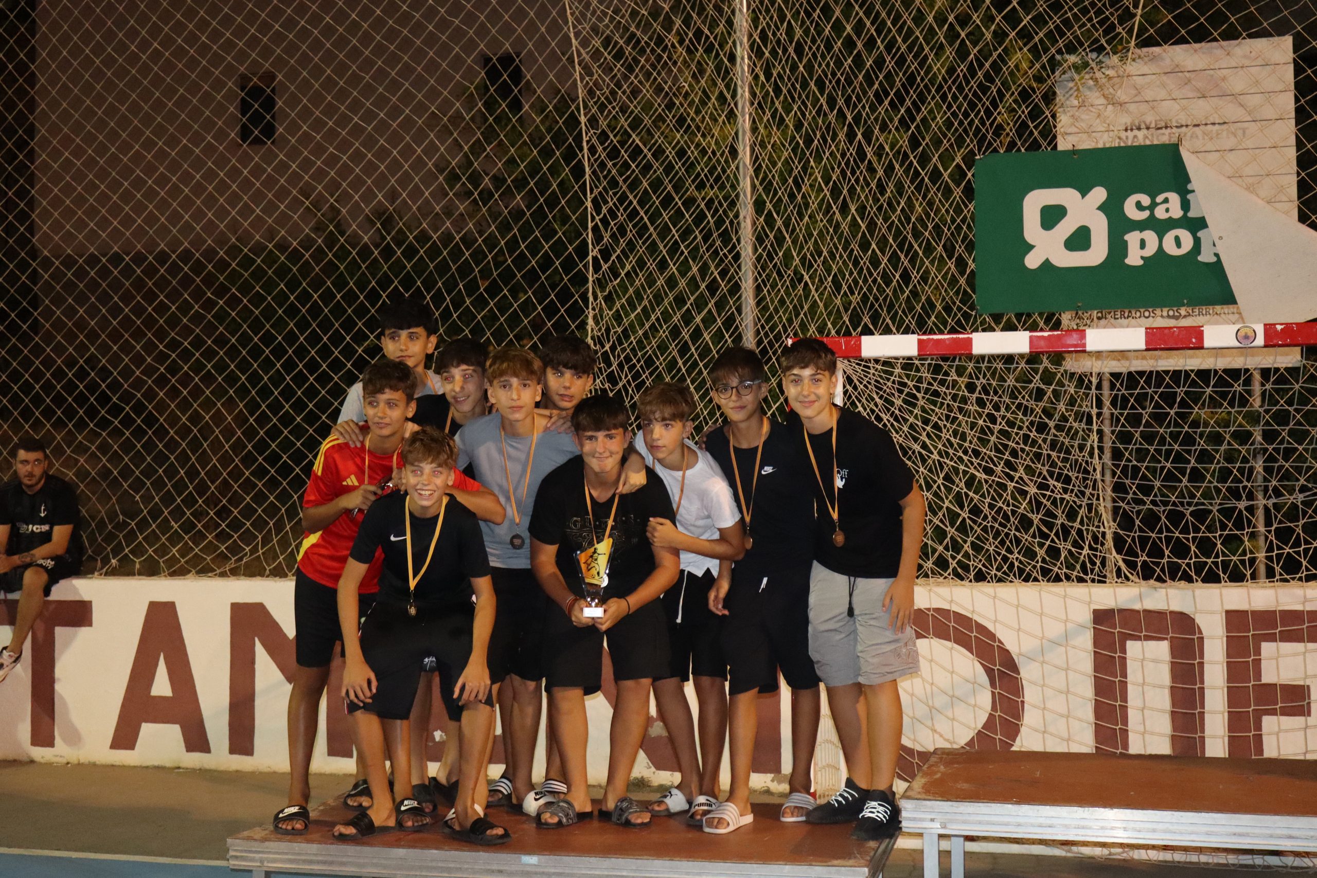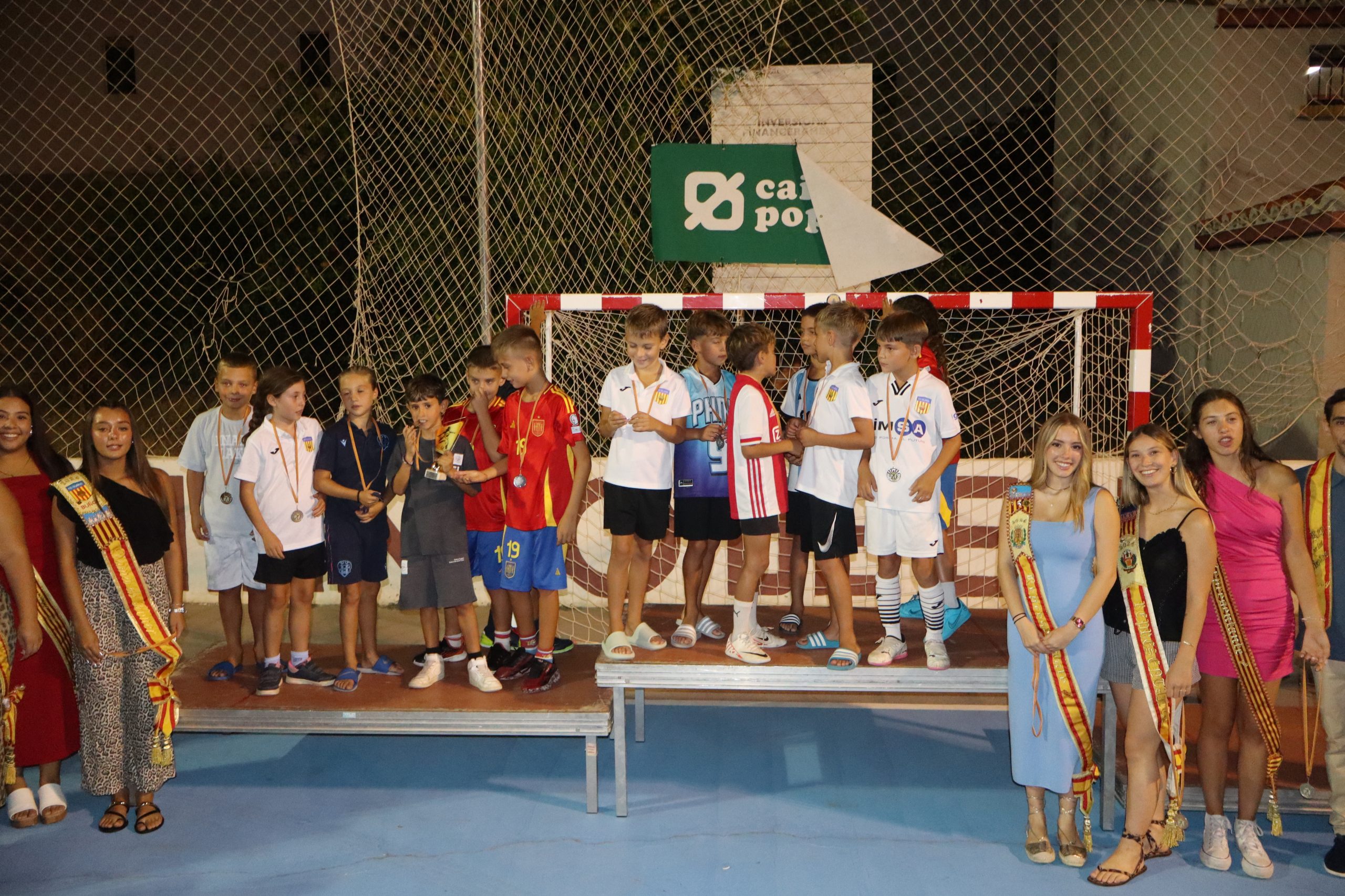 Y finalmente, en el torneo de fútbol-sala, así quedó la clasificación por categorías. En pequeños, Nostre Cos «A» venció a Nostre Cos «B» en la final. En medianos, primeros fueron los Alisiaos FC, segundos Samba FC y terceros, Inter San Luis «A». En mayores, campeones fueron Francisquito FS, segundos, Nothingam Miedo y terceros, Valencia 2011. Finalmente, en libres, la victoria fue para TCN, segundo fueron Samba du Brasil y terceros Sikomotronik. La entrega de trofeos la realizó el Rey de las Fiestas, Yeray Ruiz, junto a su Corte de Honor.