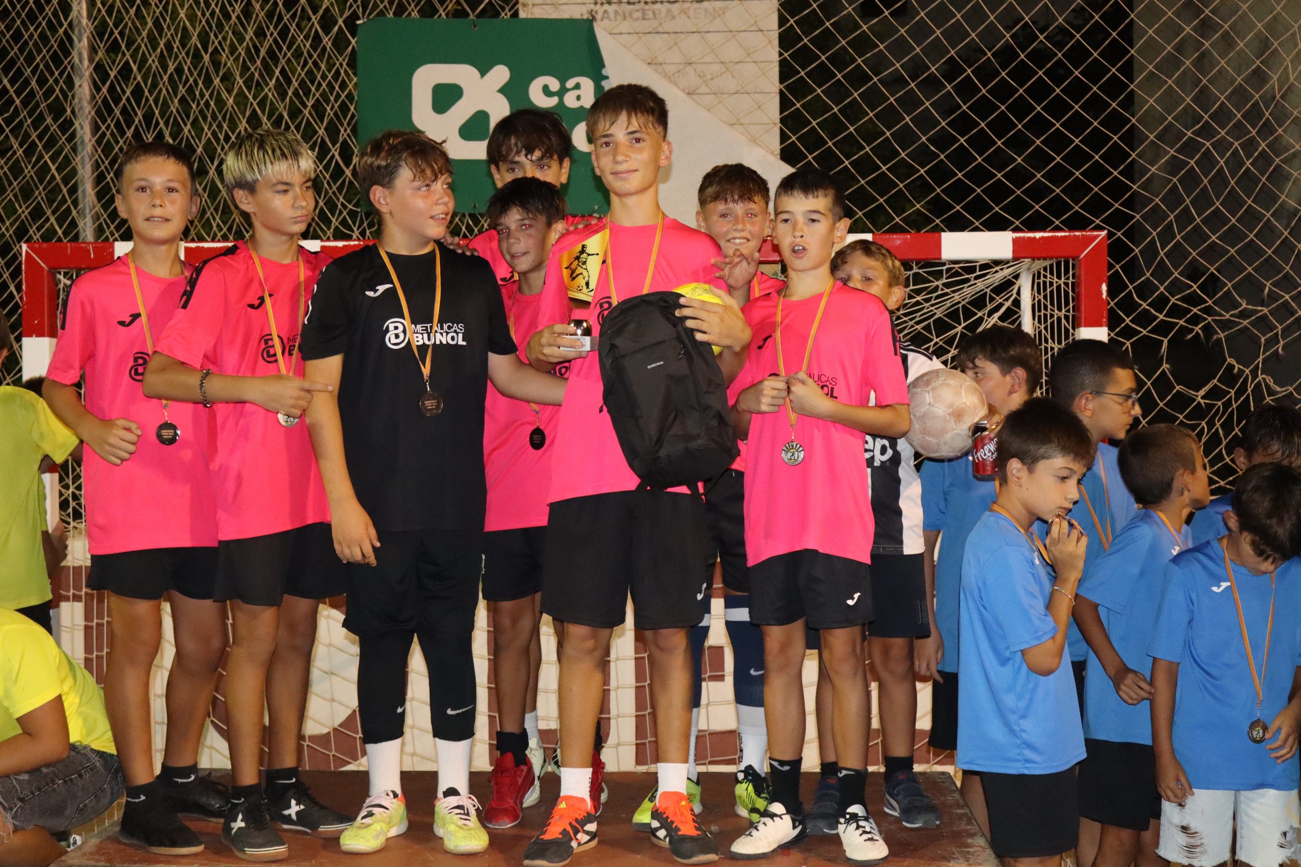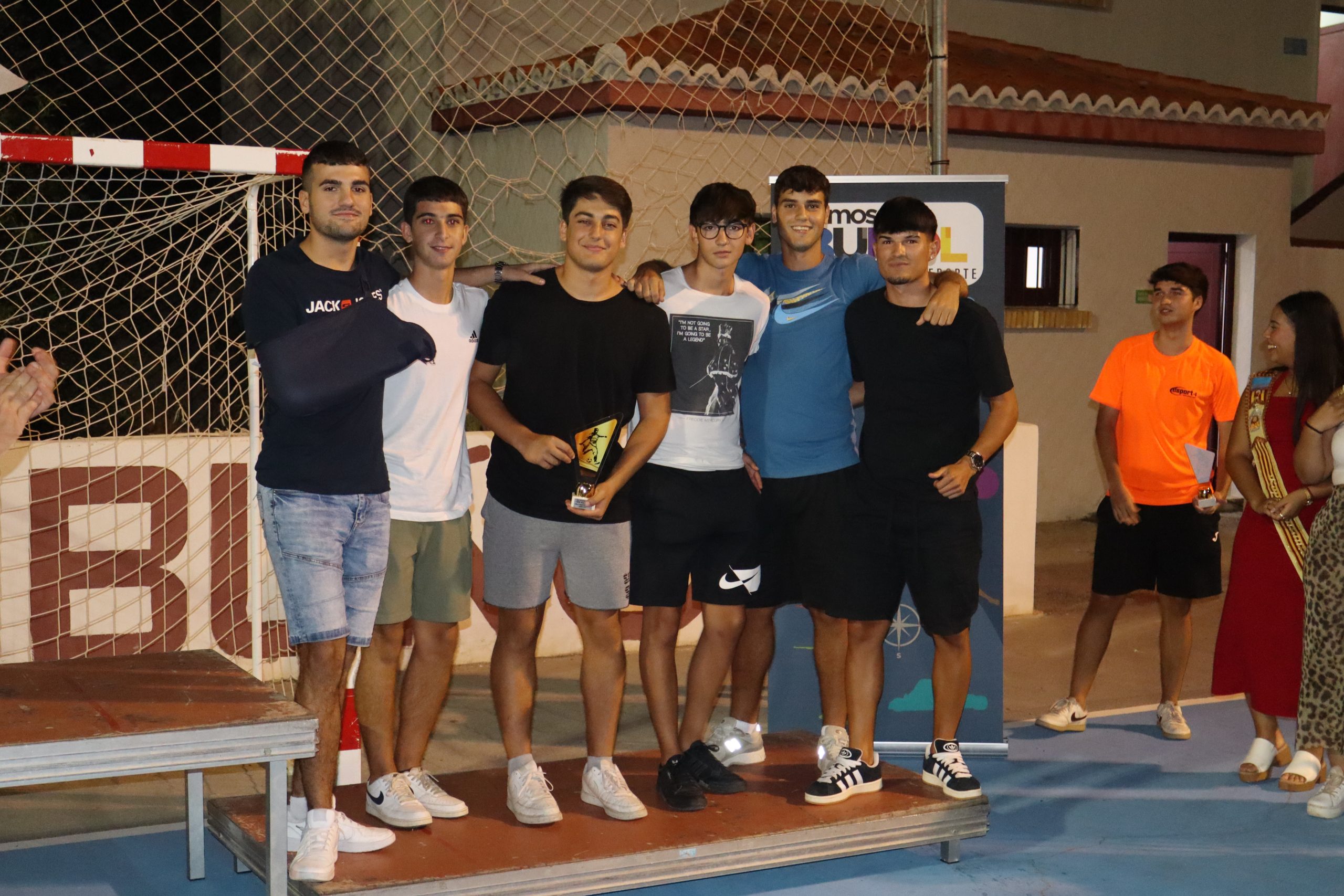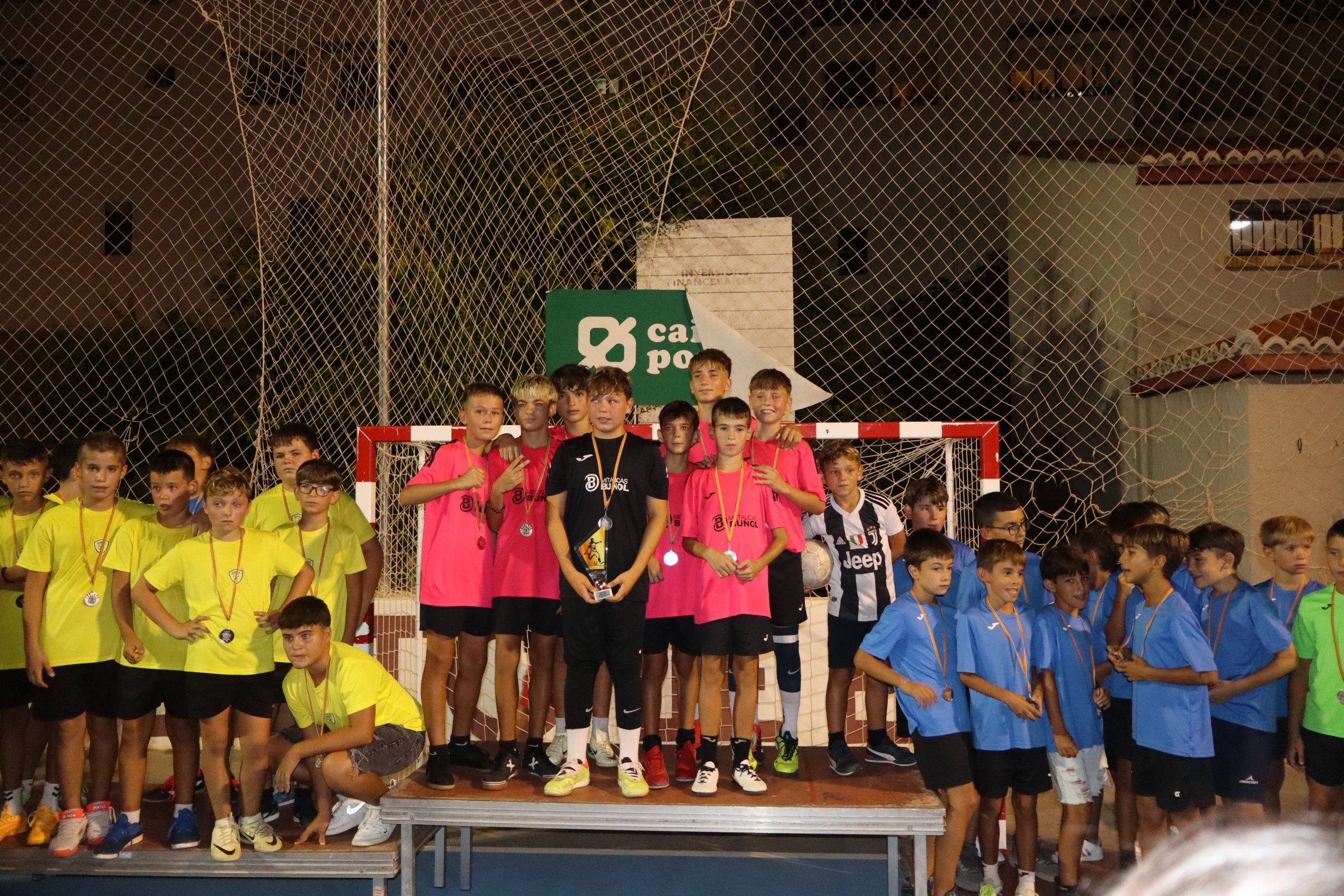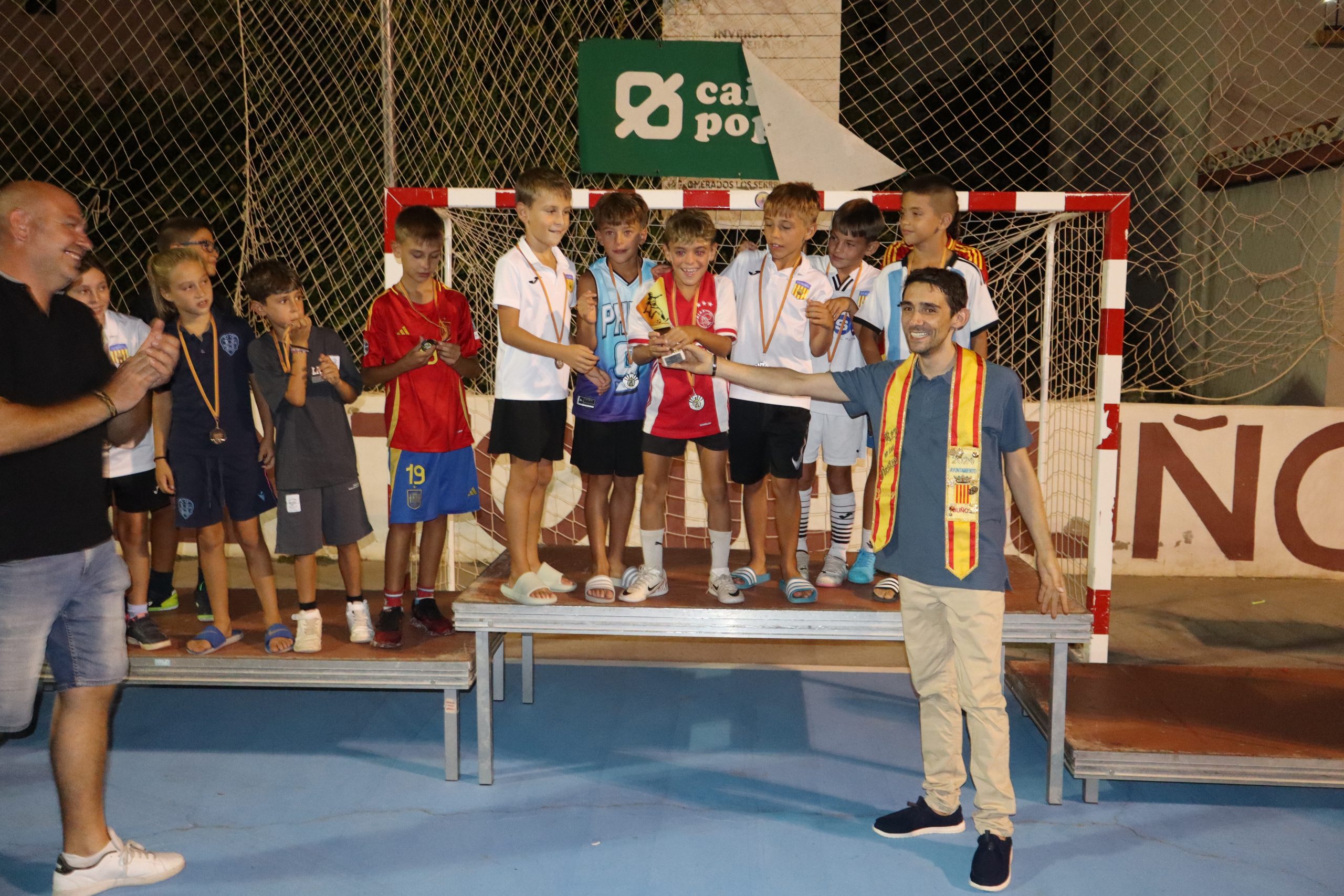 Y finalmente, en el torneo de fútbol-sala, así quedó la clasificación por categorías. En pequeños, Nostre Cos «A» venció a Nostre Cos «B» en la final. En medianos, primeros fueron los Alisiaos FC, segundos Samba FC y terceros, Inter San Luis «A». En mayores, campeones fueron Francisquito FS, segundos, Nothingam Miedo y terceros, Valencia 2011. Finalmente, en libres, la victoria fue para TCN, segundo fueron Samba du Brasil y terceros Sikomotronik. La entrega de trofeos la realizó el Rey de las Fiestas, Yeray Ruiz, junto a su Corte de Honor.