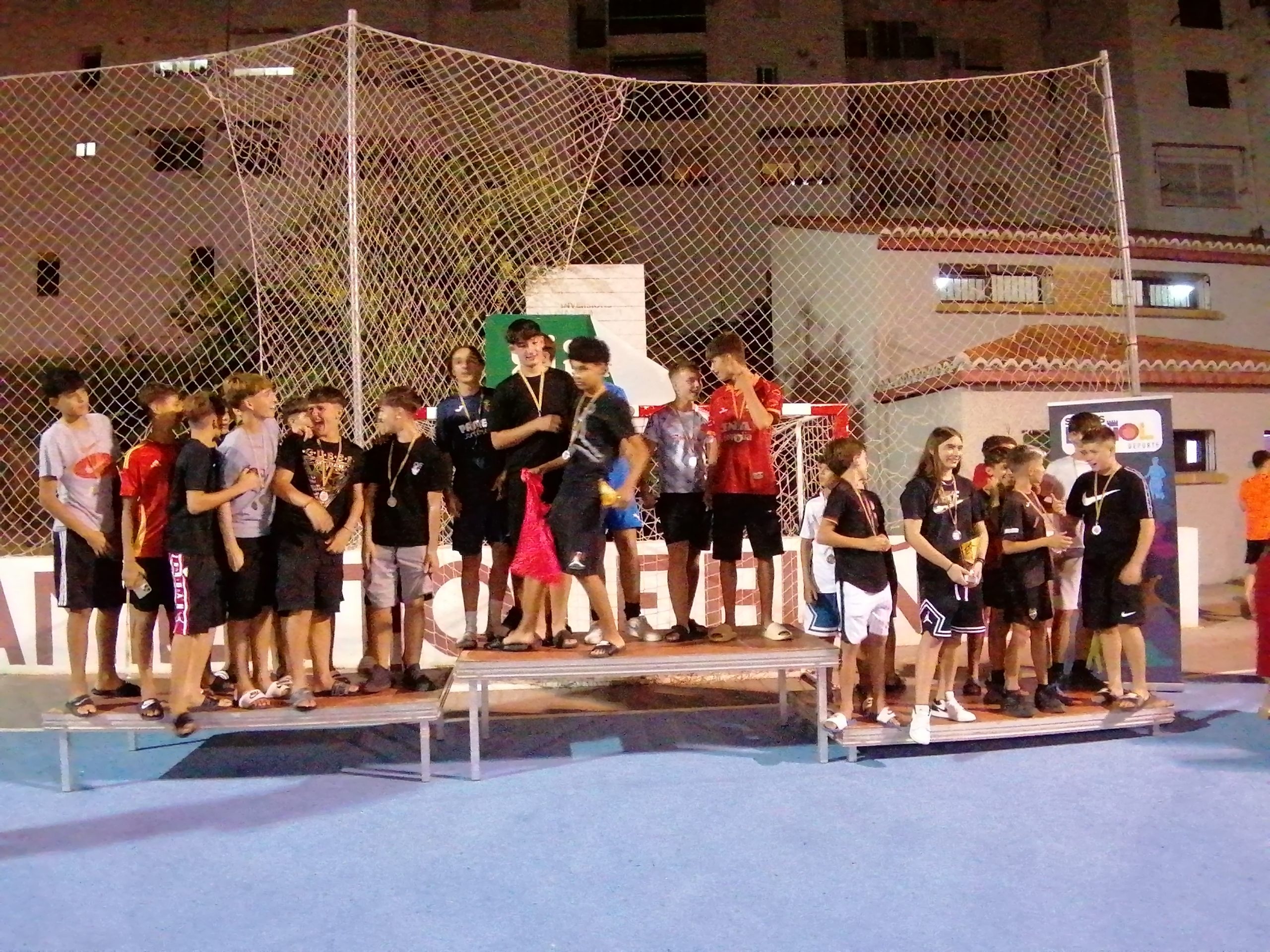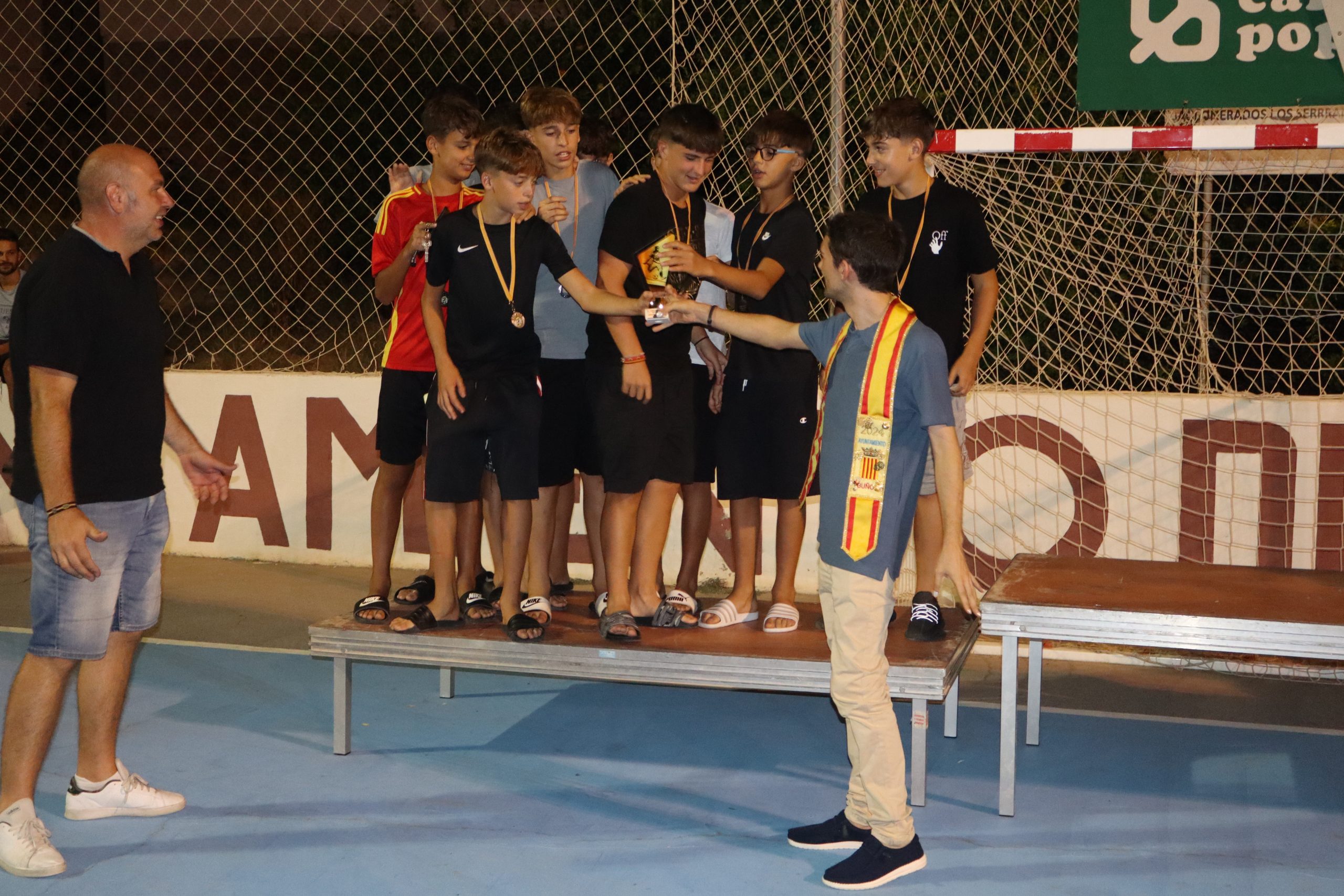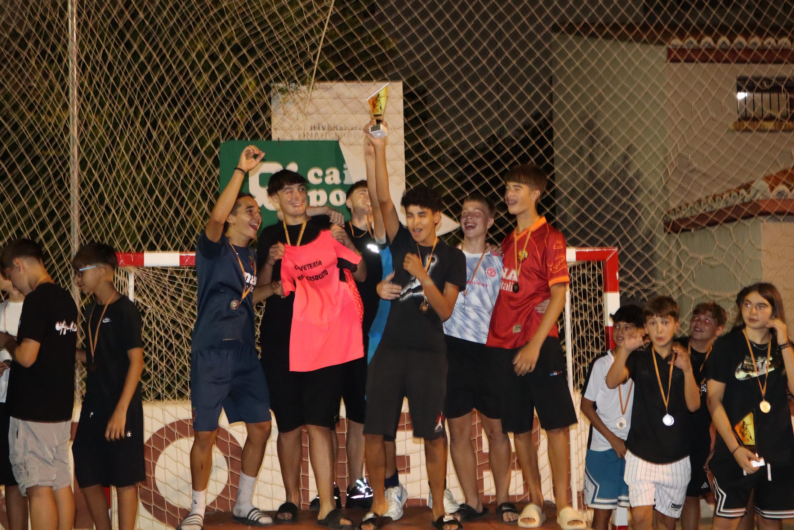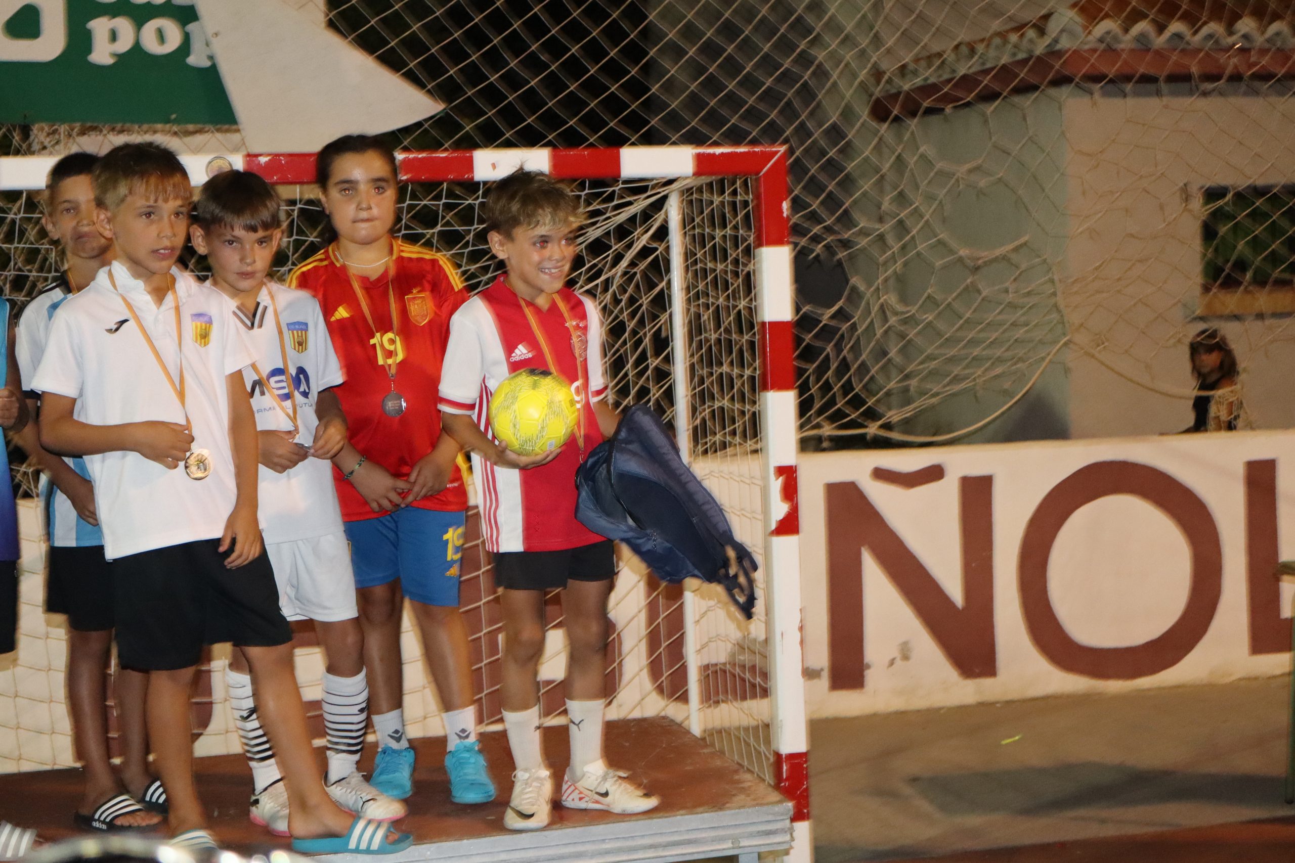 Y finalmente, en el torneo de fútbol-sala, así quedó la clasificación por categorías. En pequeños, Nostre Cos «A» venció a Nostre Cos «B» en la final. En medianos, primeros fueron los Alisiaos FC, segundos Samba FC y terceros, Inter San Luis «A». En mayores, campeones fueron Francisquito FS, segundos, Nothingam Miedo y terceros, Valencia 2011. Finalmente, en libres, la victoria fue para TCN, segundo fueron Samba du Brasil y terceros Sikomotronik. La entrega de trofeos la realizó el Rey de las Fiestas, Yeray Ruiz, junto a su Corte de Honor.