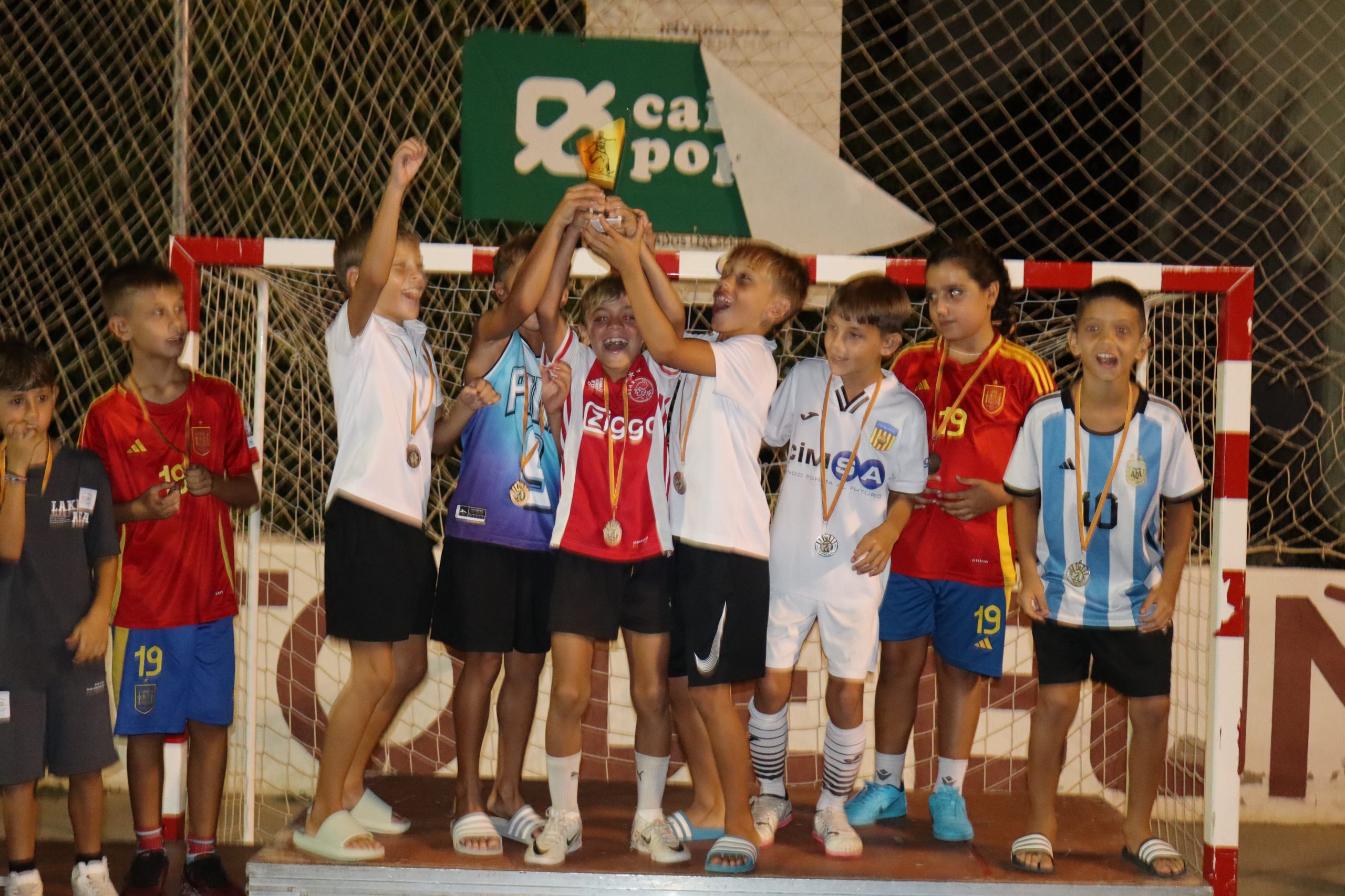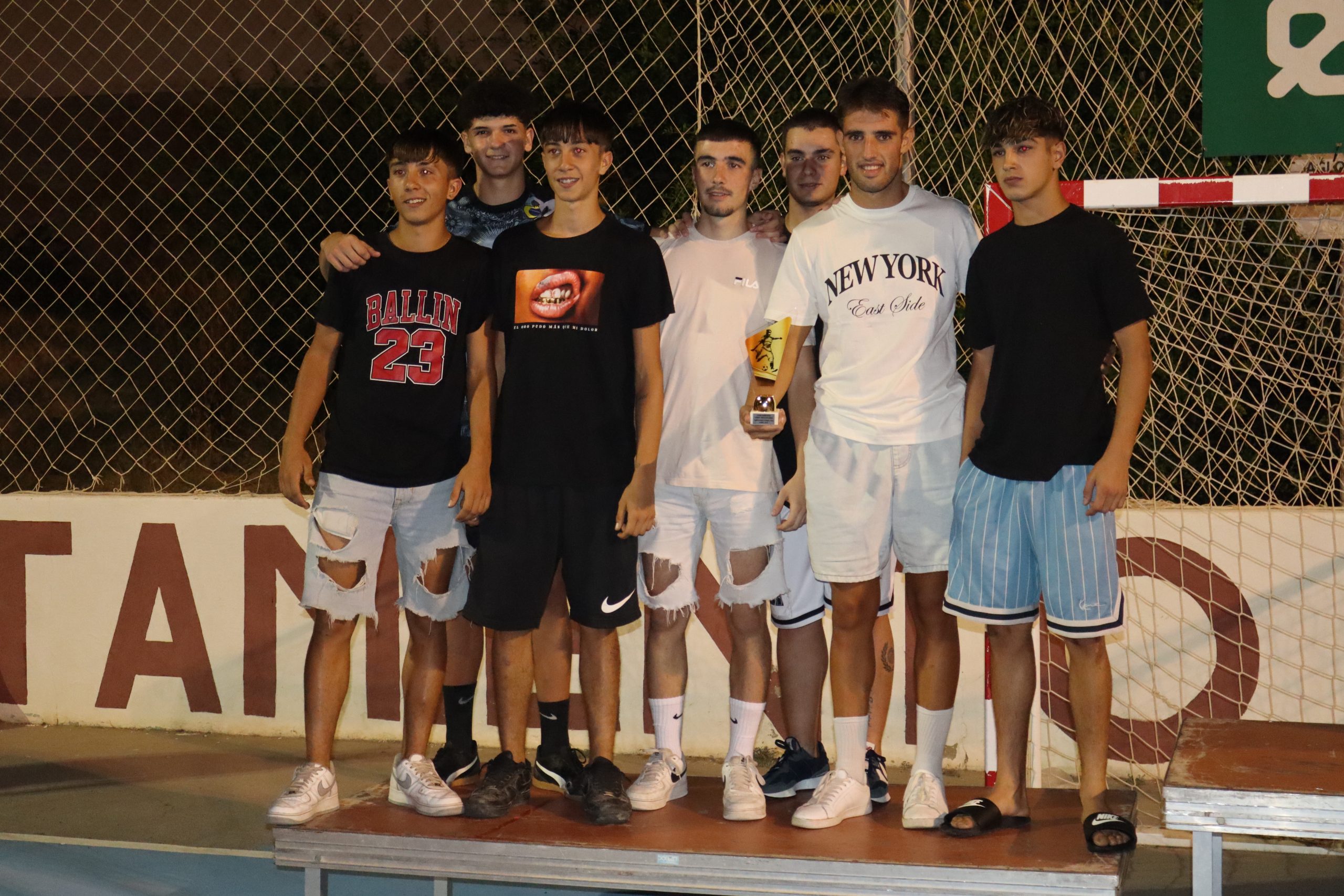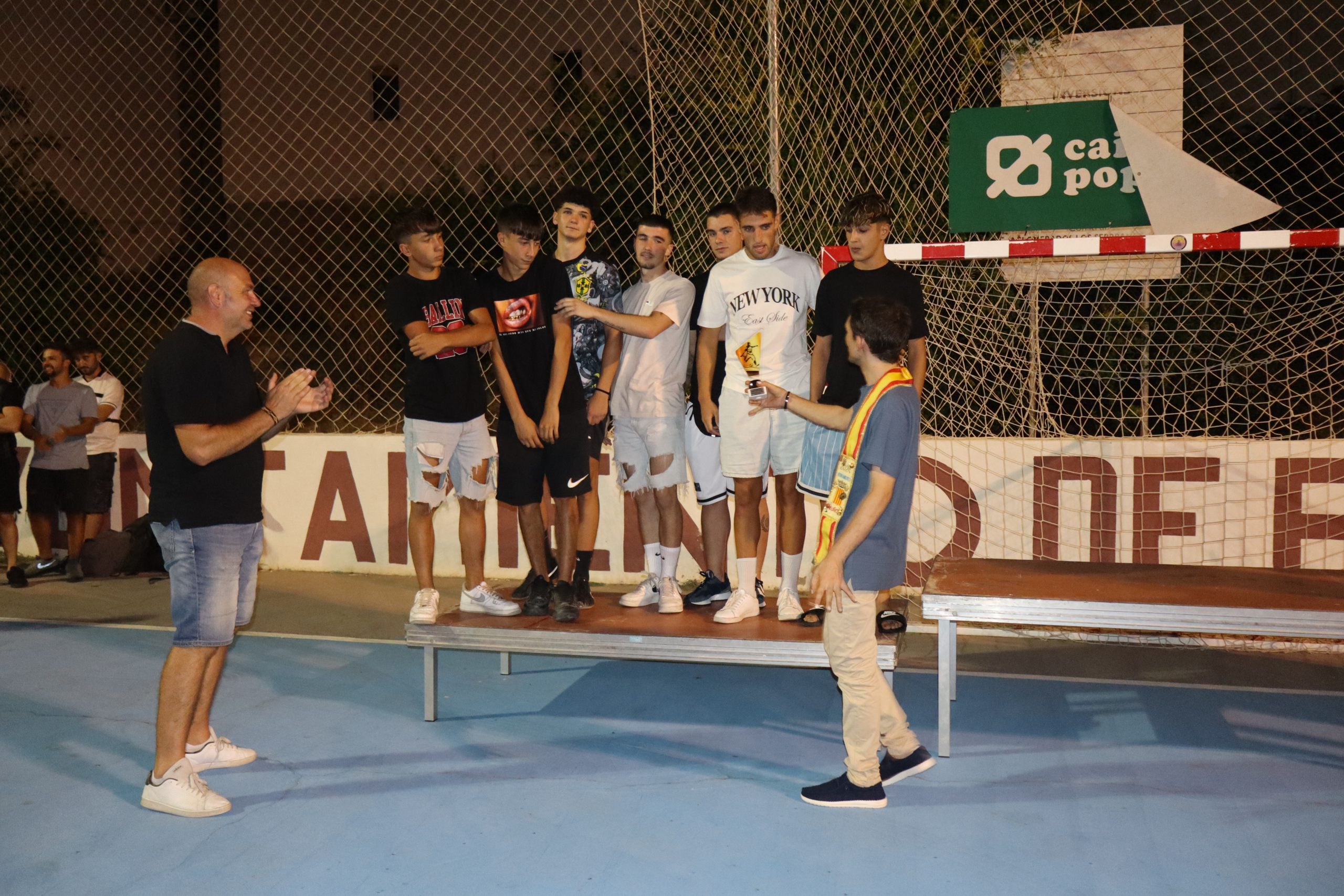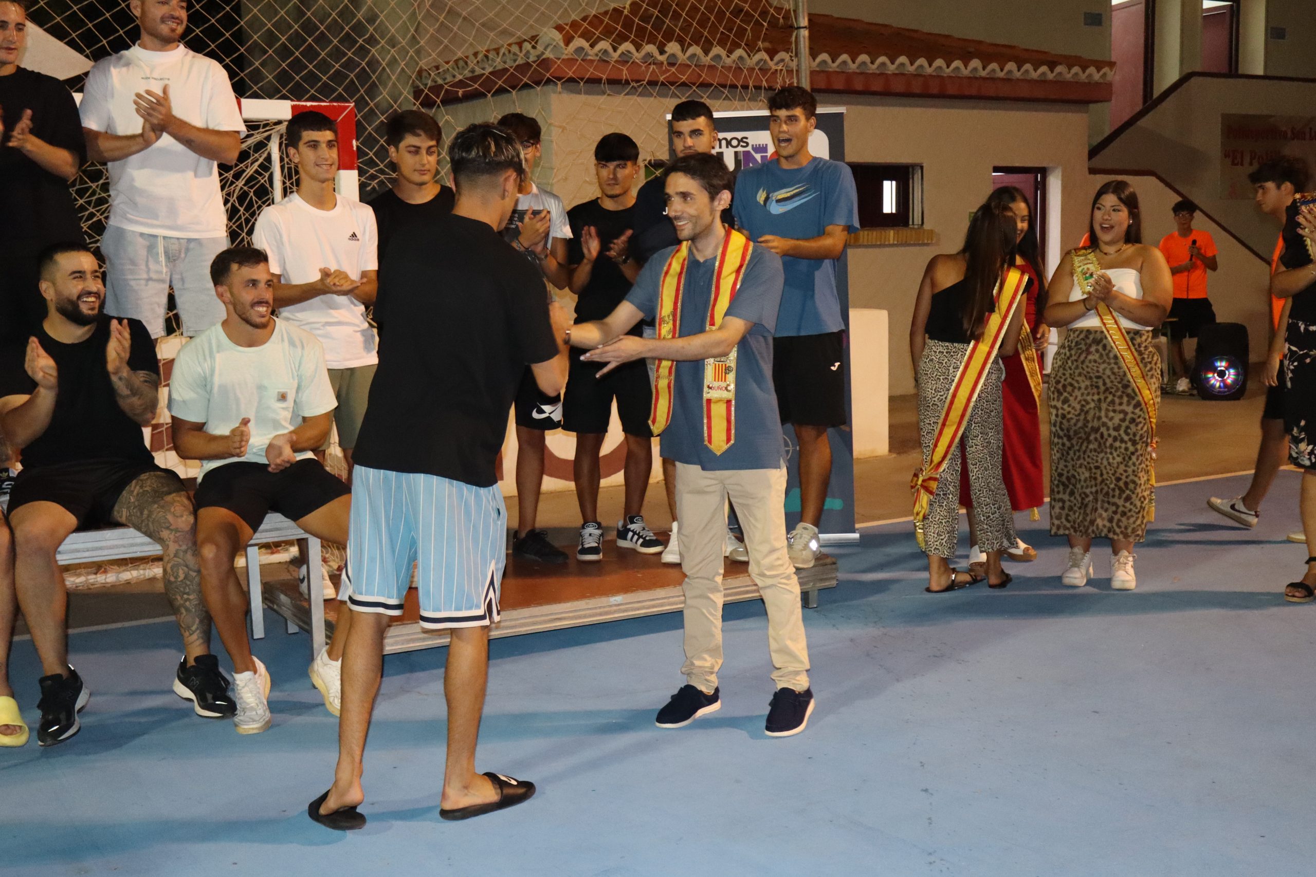 Y finalmente, en el torneo de fútbol-sala, así quedó la clasificación por categorías. En pequeños, Nostre Cos «A» venció a Nostre Cos «B» en la final. En medianos, primeros fueron los Alisiaos FC, segundos Samba FC y terceros, Inter San Luis «A». En mayores, campeones fueron Francisquito FS, segundos, Nothingam Miedo y terceros, Valencia 2011. Finalmente, en libres, la victoria fue para TCN, segundo fueron Samba du Brasil y terceros Sikomotronik. La entrega de trofeos la realizó el Rey de las Fiestas, Yeray Ruiz, junto a su Corte de Honor.