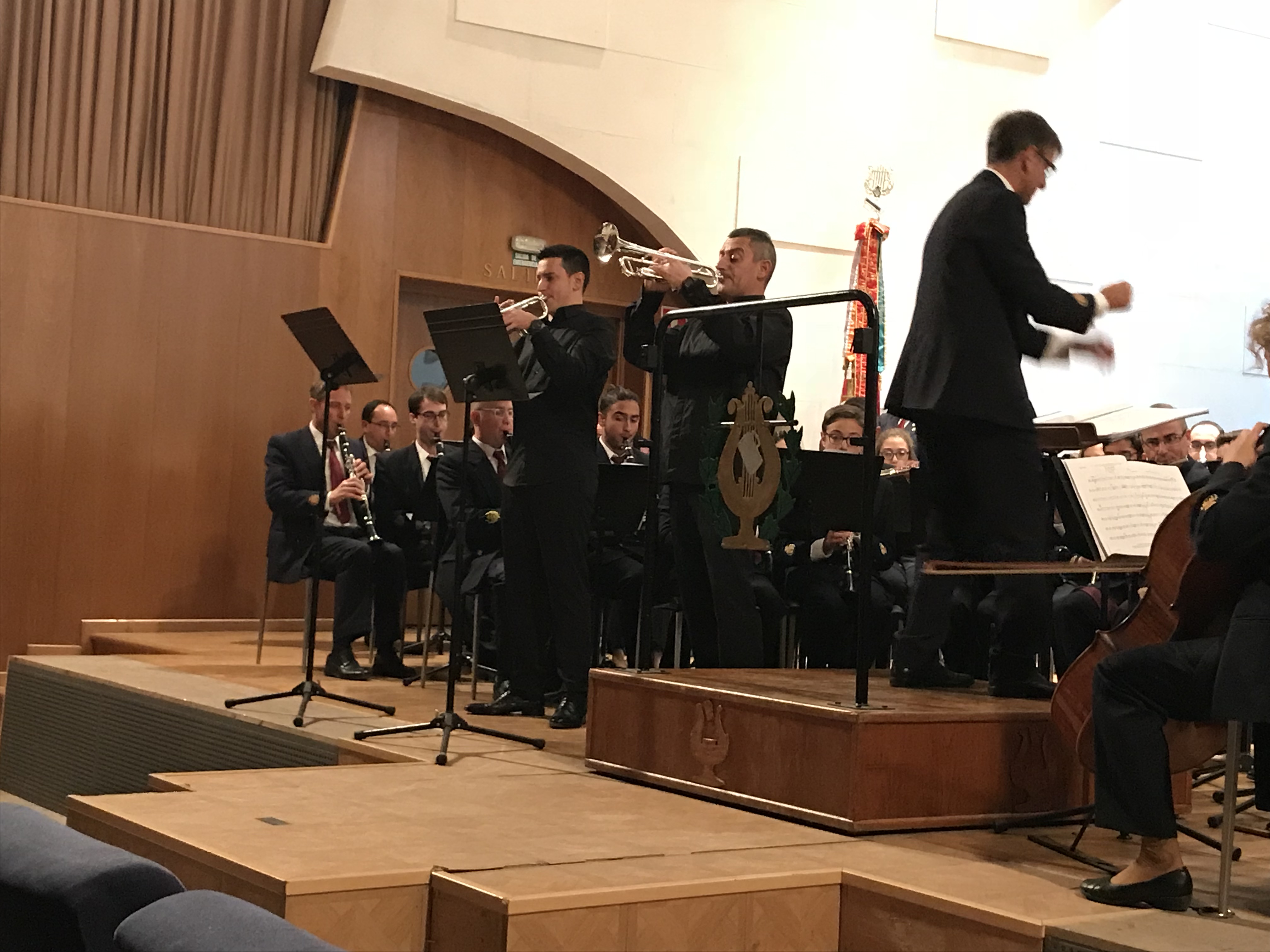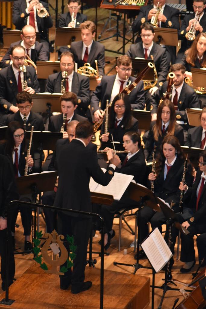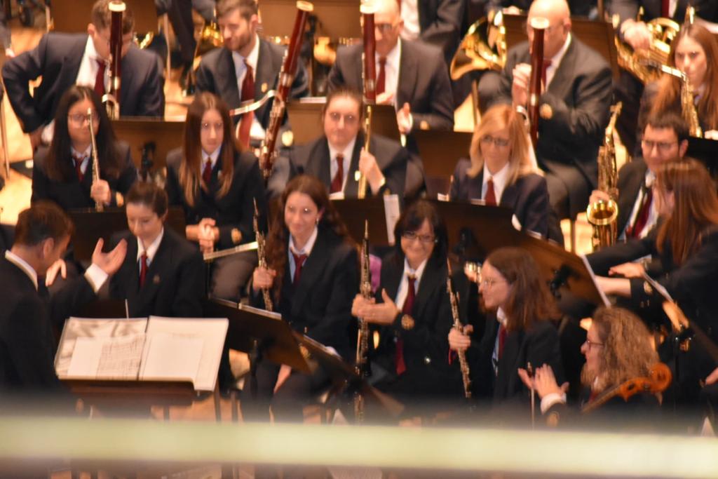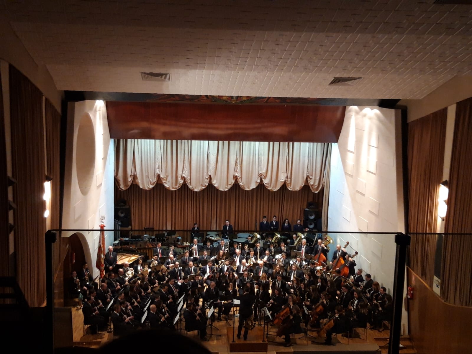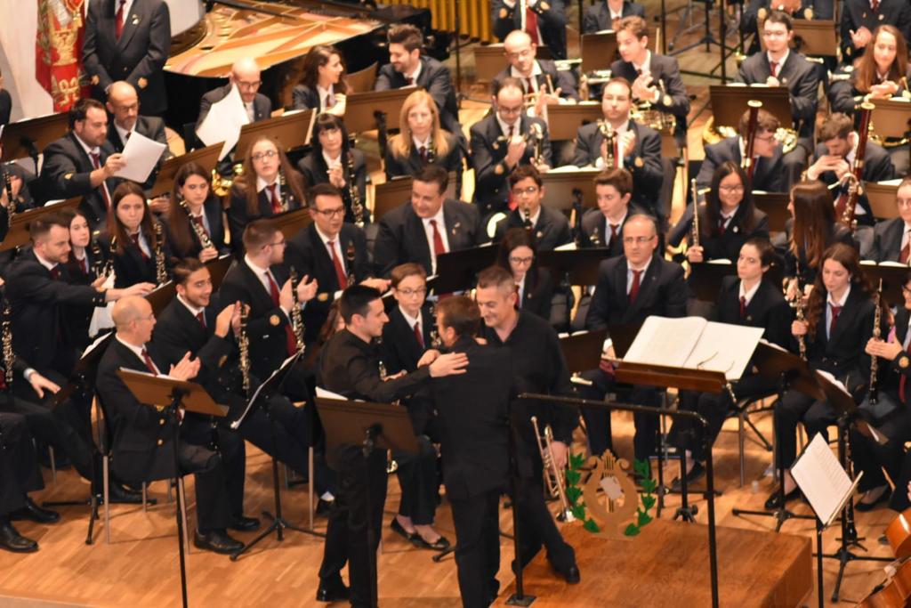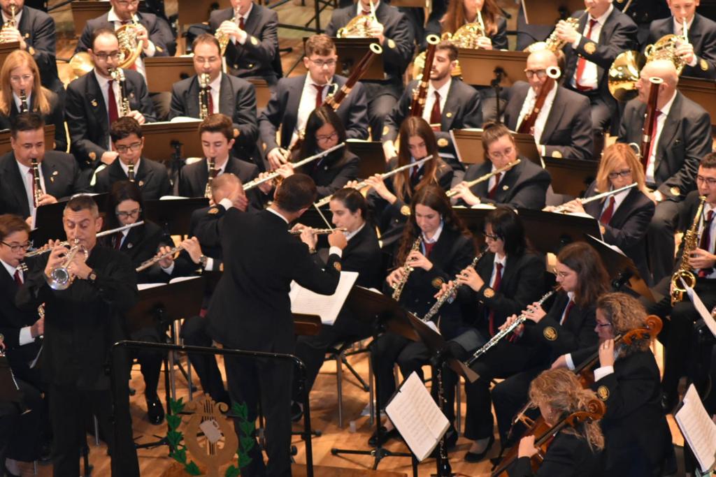 La guinda del pastel de los actos de la semana llegó de manos de la Banda Sinfónica de La Armónica. El programa que el director, José Tello Espert, eligió para este día estuvo formado por las siguientes obras: en la primera parte, la sinfónica interpretó Homenaje a la tempranica, del maestro Rodrigo, Gran fantasía española, de Ricardo Villa y por último, el Concierto para dos trompetas, de Erik Morales. Esta última obra tuvo como protagonistas a dos grandes trompetistas de La Armónica, Antoino Cambres y Paco Marzo, quienes actuaron como solistas. Antonio Cambres es un trompetista de fama reconocida. Ha trabajado como solista en prestigiosas orquestas, como la de Sevilla o la de Madrid, donde actualmente tiene la plaza. Pero el joven Paco Marzo tampoco le va a la zaga; su juventud no le ha impedido destacar como trompetista lo que le ha llevado a colaborar en orquestas como la de Oviedo o la de Valencia. En la actualidad, es profesor del conservatorio San Rafael de Buñol. Tras la interpretación de esta última obra, la banda obsequió al público con otra obra, Rolipops, de Jean François Michel, en la que también intervinieron los dos trompetistas.