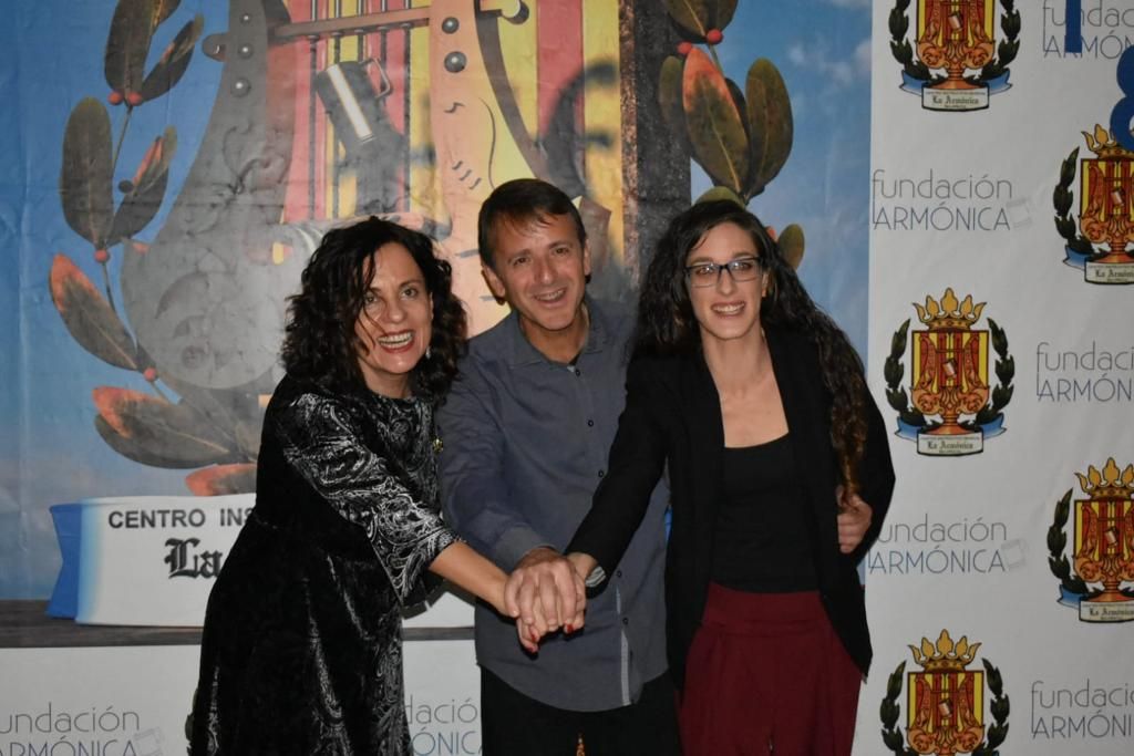 El intervalo entre las dos partes del concierto comenzó con la imposición de la Representante de La Armónica, Airam Rehués Font, del corbatín conmemorativo a la bandera. Después de este momento, llegaron las novedades. No se dio entrada a la Banda Sinfónica a nuevos músicos, pues estos se incorporarán cuando finalicen el segundo curso en el conservatorio. Esto permitió detener la atención en los socios de La Armónica, concretamente en dos abonados que recibieron un premio muy especial, y es que dos afortunados podrán vivir el próximo concierto desde dentro, como si de dos músicos más se tratase. Se convertirán así en los músicos infiltrados. Para ello, la presidenta de la banda, Elena Villar, les hizo entrega de la corbata de músico que les permitirá ser un músico más en el concierto de Navidad, el día 29 de diciembre.