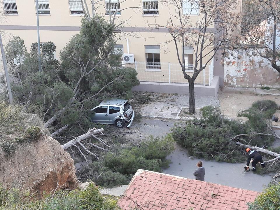 No obstante, antes a las 6:45h, la Calle Ruiz Pons ha tenido que ser cortada por la caída de un pino, que además ha afectado a un vehículo que iba circulando, aunque afortunadamente solo se han registrado daños materiales. Según el Inspector Jefe de la Policía Local, Antonio Zanón, “la vía ha sido cortada durante media hora mientras los Bomberos procedían a la retirada del árbol de la calzada“.