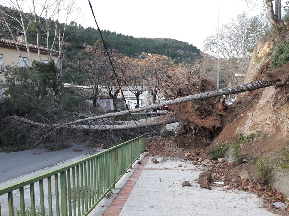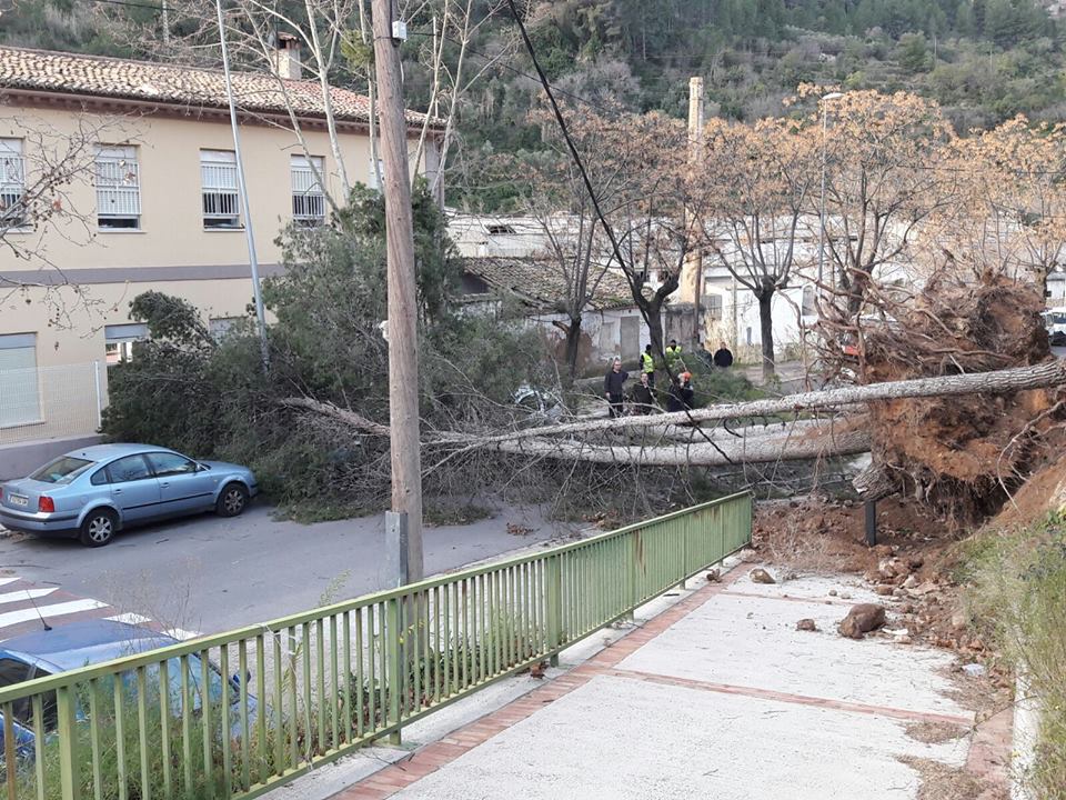 El fuerte viento que azota la localidad de Buñol ha provocado graves destrozos, después de que varios árboles en la Calle San Luis cayeran y dejaran cortada la calle. Además, la caída de estos árboles de grandes dimensiones han provocado numerosos daños en 3 vehículos que estaban aparcados en la misma calle.