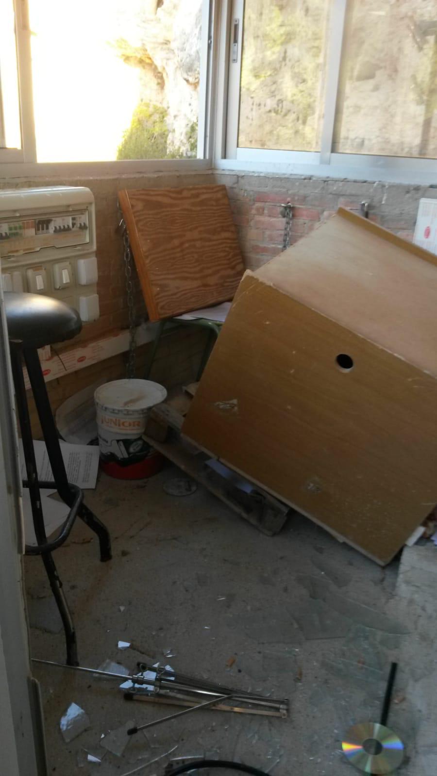 Durante el tiempo que estuvieron en el Auditorio, los vándalos rompieron puertas, hicieron añicos algunos cristales, causaron destrozos en la cabina de sonido, arrancaron y lanzaron butacas, desenrollaron las mangueras de extinción de incendios, sacaron y cortaron el cableado… En el lugar de los hechos, según advirtió la alcaldesa, también se encontraron restos de comida y bebida.»Parece como que hubieran hecho una salita para pasar el rato allí», explicó. Eso sí, al parecer, no había ninguna evidencia de que el móvil del asalto fuera el robo, ya que no ha desaparecido ningún objeto de valor del auditorio. «Han hecho un destrozo enorme», lamentó Carrascosa, quien anunció que los hechos ya han sido denunciados ante la Guardia Civil para que se busque a los responsables.