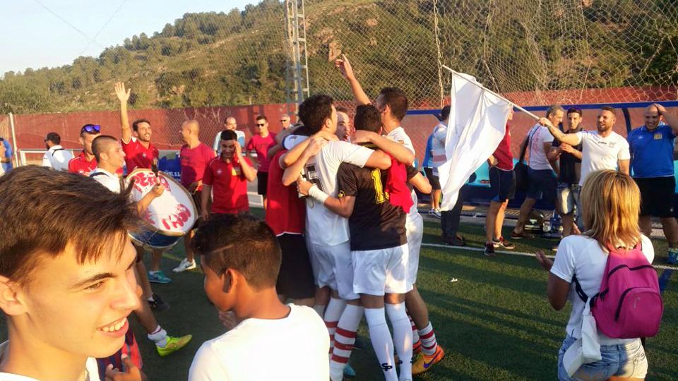 El Club Deportivo Buñol ha hecho historia. Después de 15 años ha vuelto a Tercera División tras lograr una gesta digna de pocos equipos. Cuando el colegiado ha pitado el final del partido la alegría ha desbordado a los jugadores, que han celebrado con el Frente Buñolarra el ascenso.