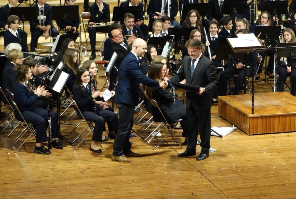 El concierto también sirvió para presentar a los nuevos músicos de la Banda Juvenil y para homenajear a su director, Luis Gómez Zanón, al que el Presidente de la entidad, Paco Blasco, entregó una placa conmemorativa en el día de su despedida como director de la formación.