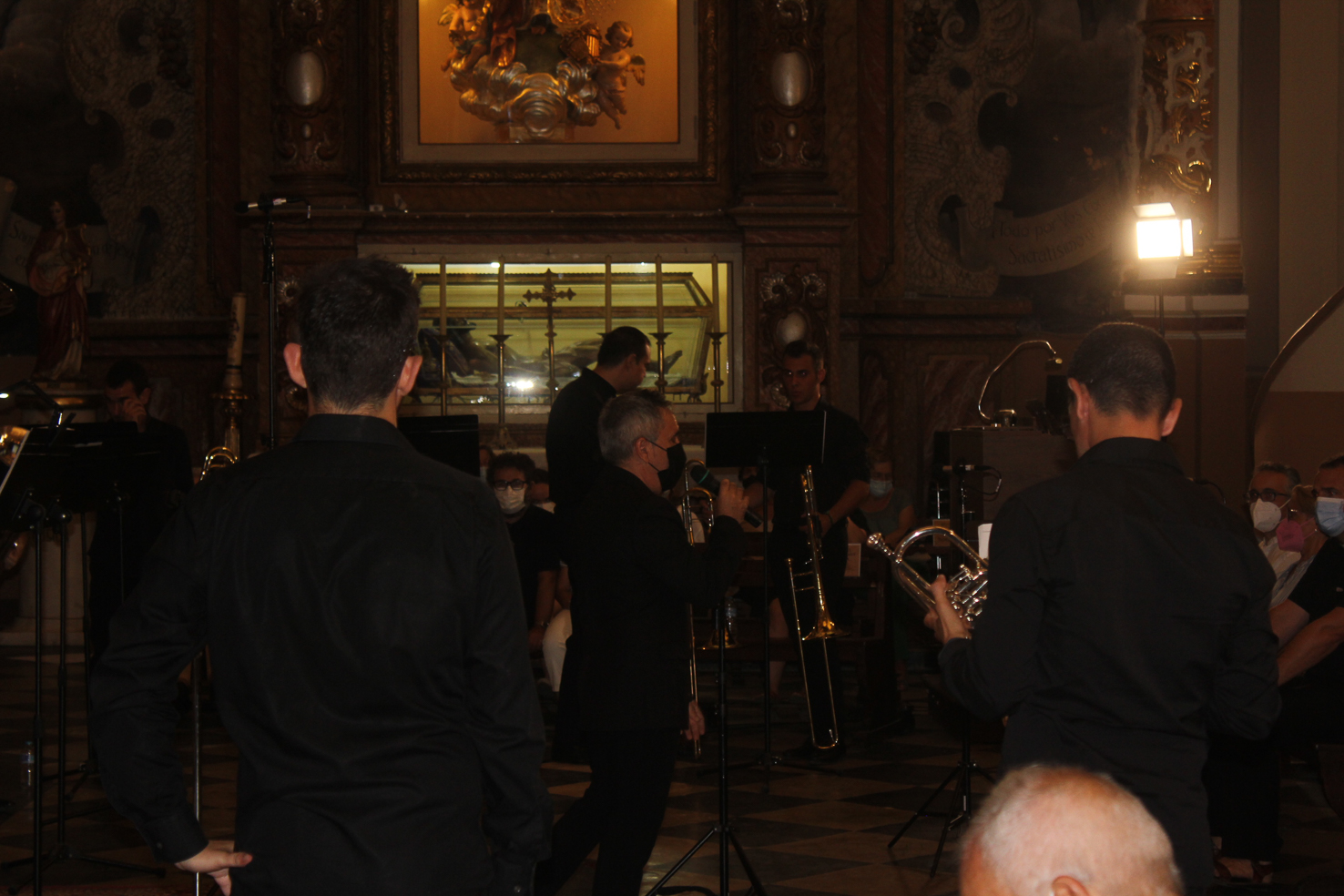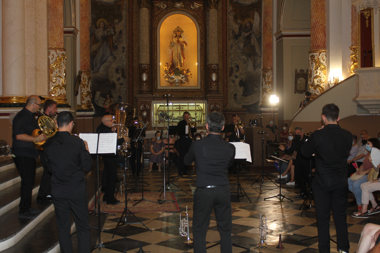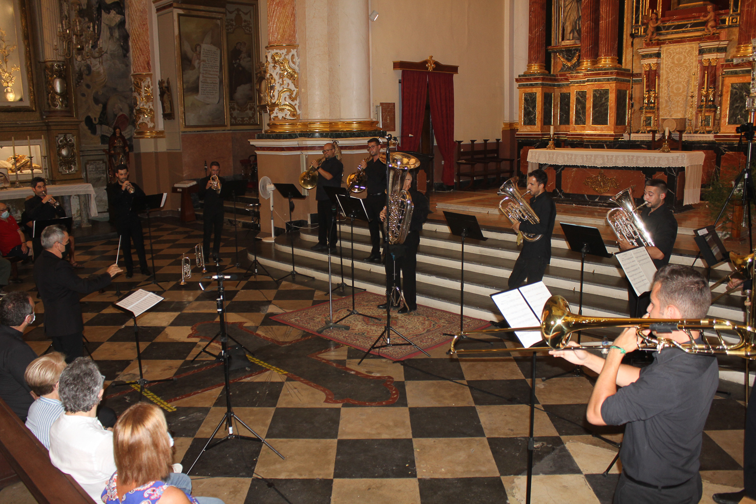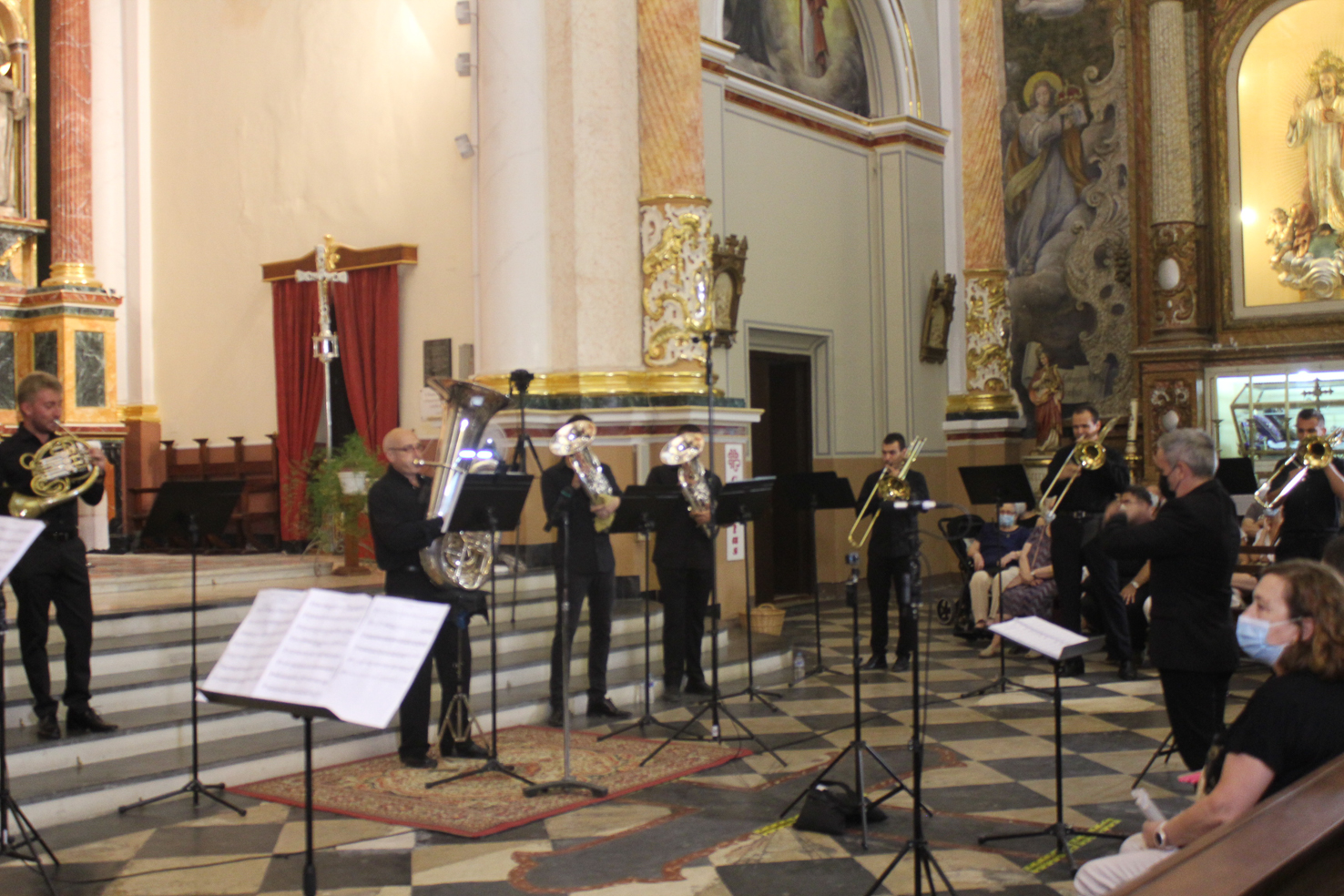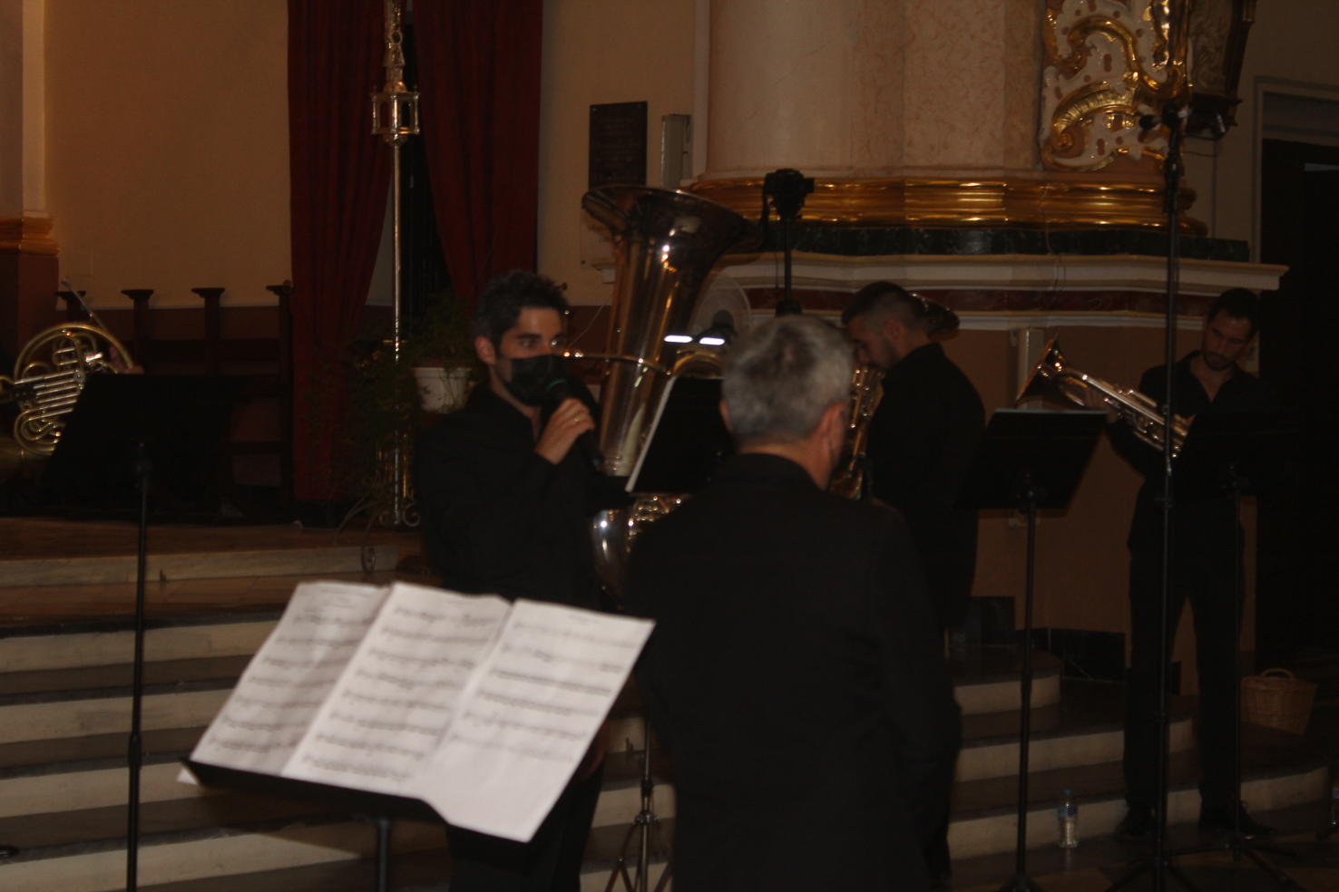 El Grupo de Metales y percusión de Buñol, bajo la dirección de Manuel Godoy, interpretó varias piezas que hicieron las delicias del público asistente y levantaron el aplauso unánime. El concierto se pudo celebrar, con restricciones y con limitación de aforo, aún así eso no impidió que los músicos brillaran con luz propia.
