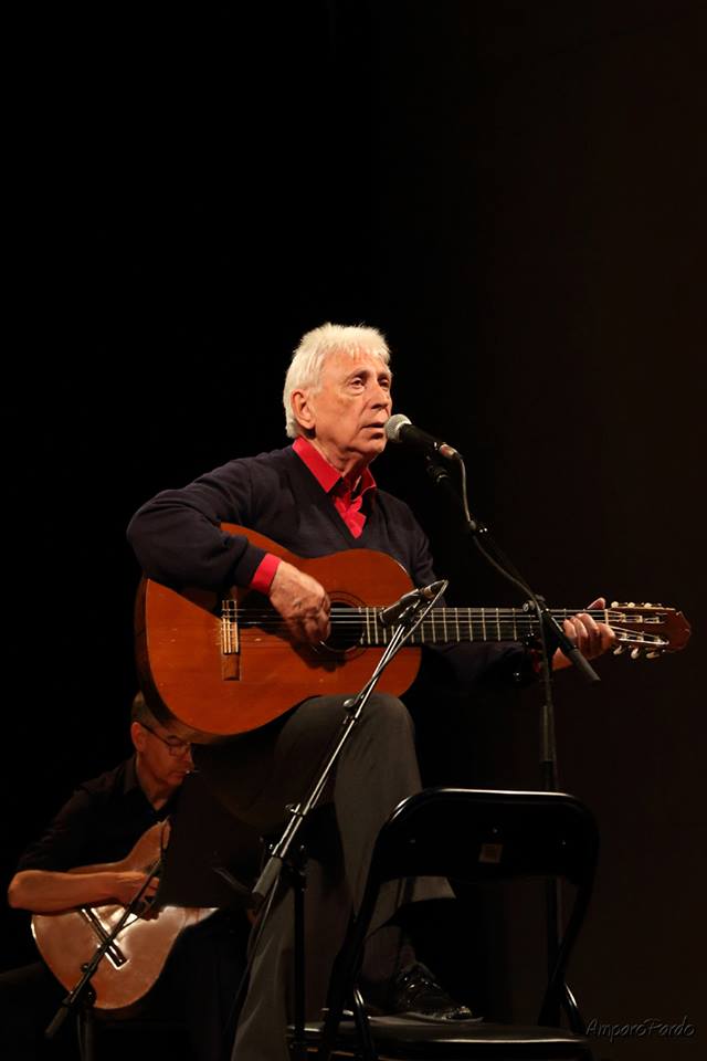 Con guitarra en ristre y sentado delante del micrófono la atmósfera cálida y cercana que estableció enganchó al público y consiguió que se rindiera ante él. Muchos de los allí presentes recordaron su época de juventud, cuando la libertad y la democracia solamente aparecían en las canciones de este tipo de artistas. «Jo vinc d’un silenci, Diguem no, He mirat aquesta terra» y el mítico «Al vent», entre otros temas, hicieron las delicias de los allí presentes.