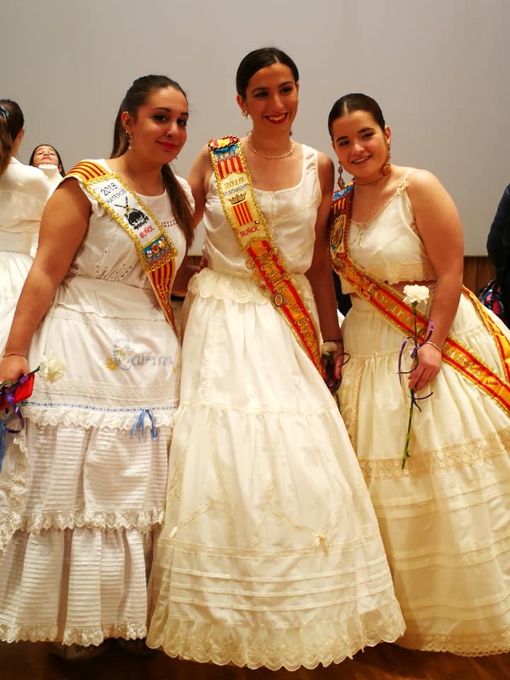 Se da la circunstancia de que algunas de las protagonistas pertenecen a asociaciones locales. A ellas se sumaron las Mises de El Litro y Reinas del Mantón, Reina de las Fiestas y Fallera Mayor de la Junta Local.Todas ellas lucieron esta magnífica prenda, bordada y muy artesanal, que se ocultan bajo los típicos trajes de valenciana y buñolera.