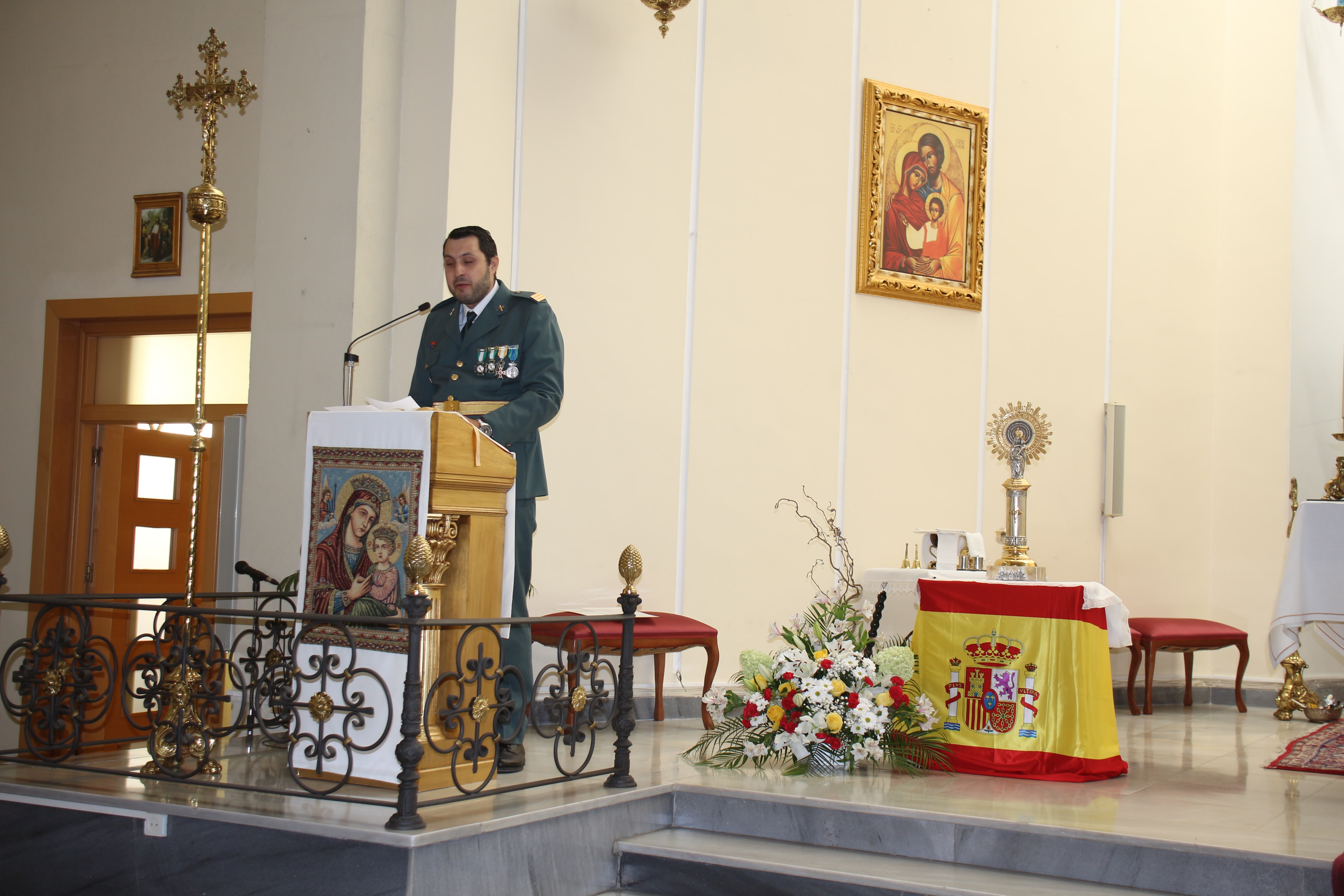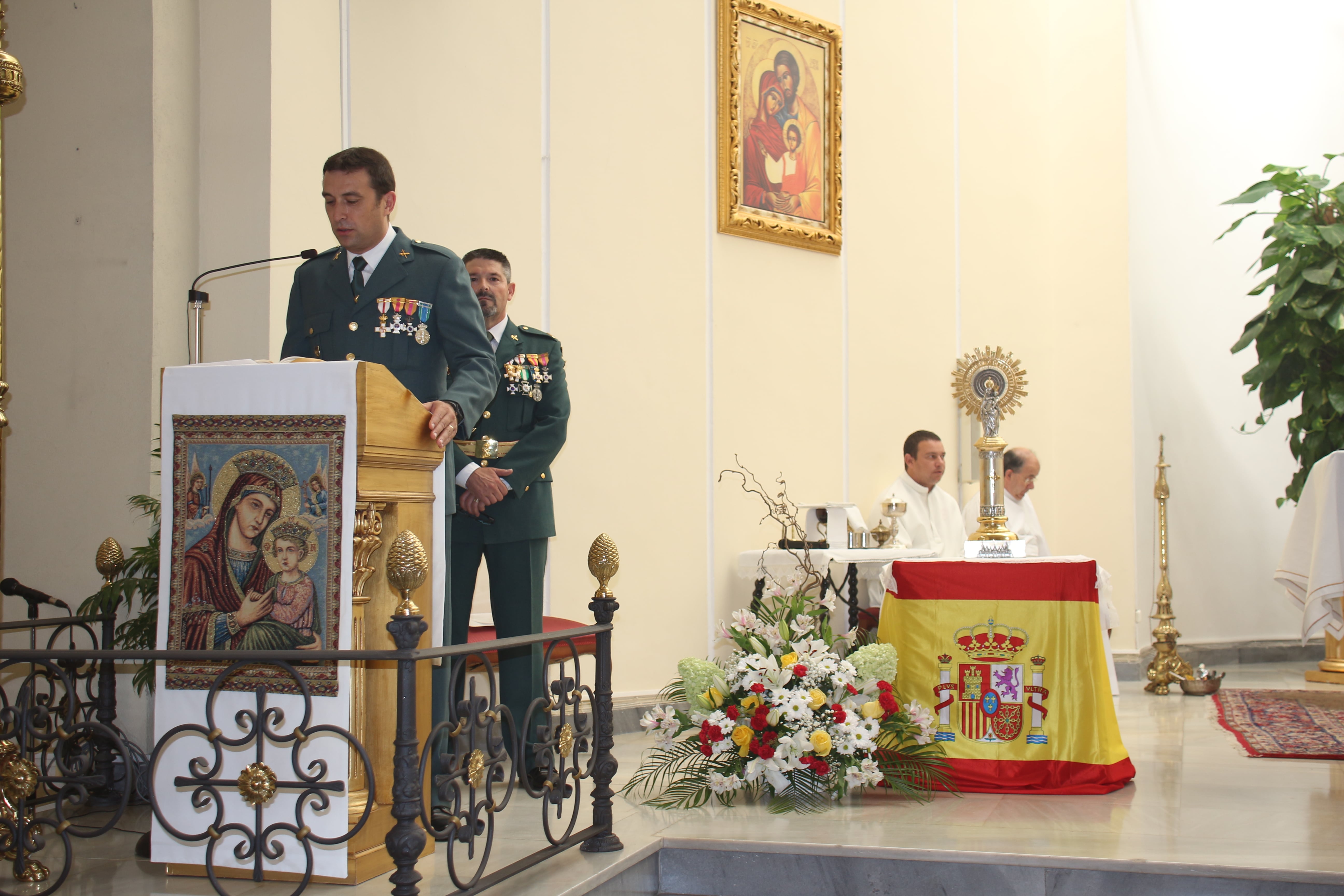 Buñol volvió a acoger ayer las celebraciones del tradicional Día del Pilar. La parroquia Nuestra Señora de los Dolores acogió una solemne misa oficiada por el párroco José Vicente Martínez Muedra. A la Ecuaristía acudieron los miembros del puesto de mando de la Guardia Civil de Buñol, acompañados de los de la Policía Local y Protección Civil.