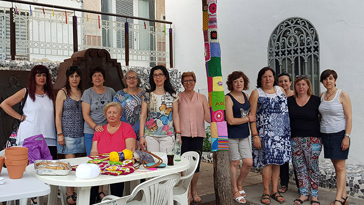 El pasado viernes 16 de Junio, las componentes del Grupo de Ganchillo Solidario de Buñol, junto con varias vecinas, se dieron cita en la Plaza del Pueblo para tejer.