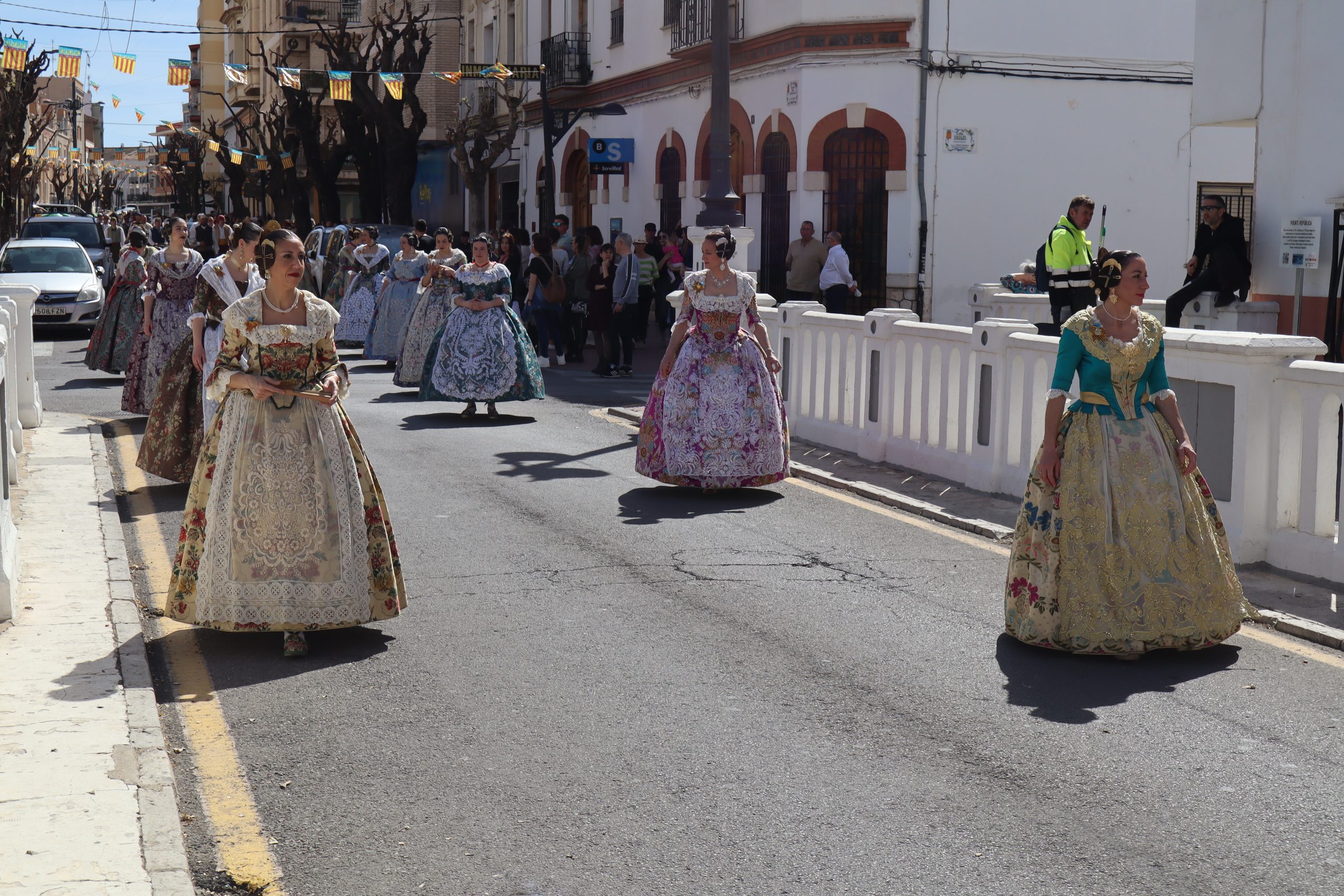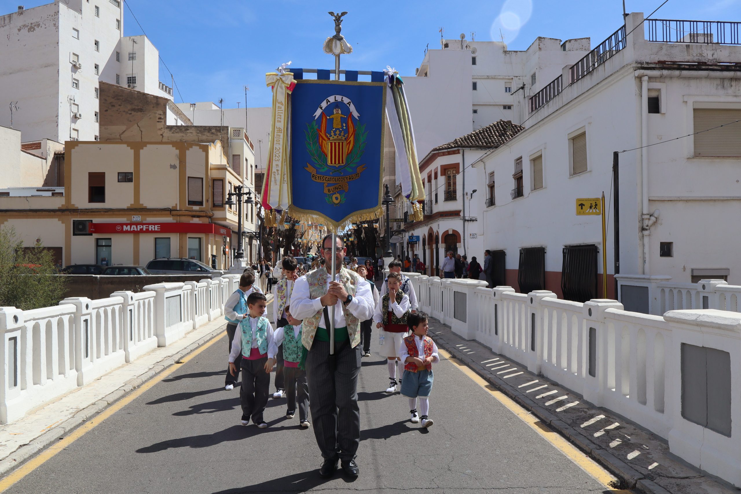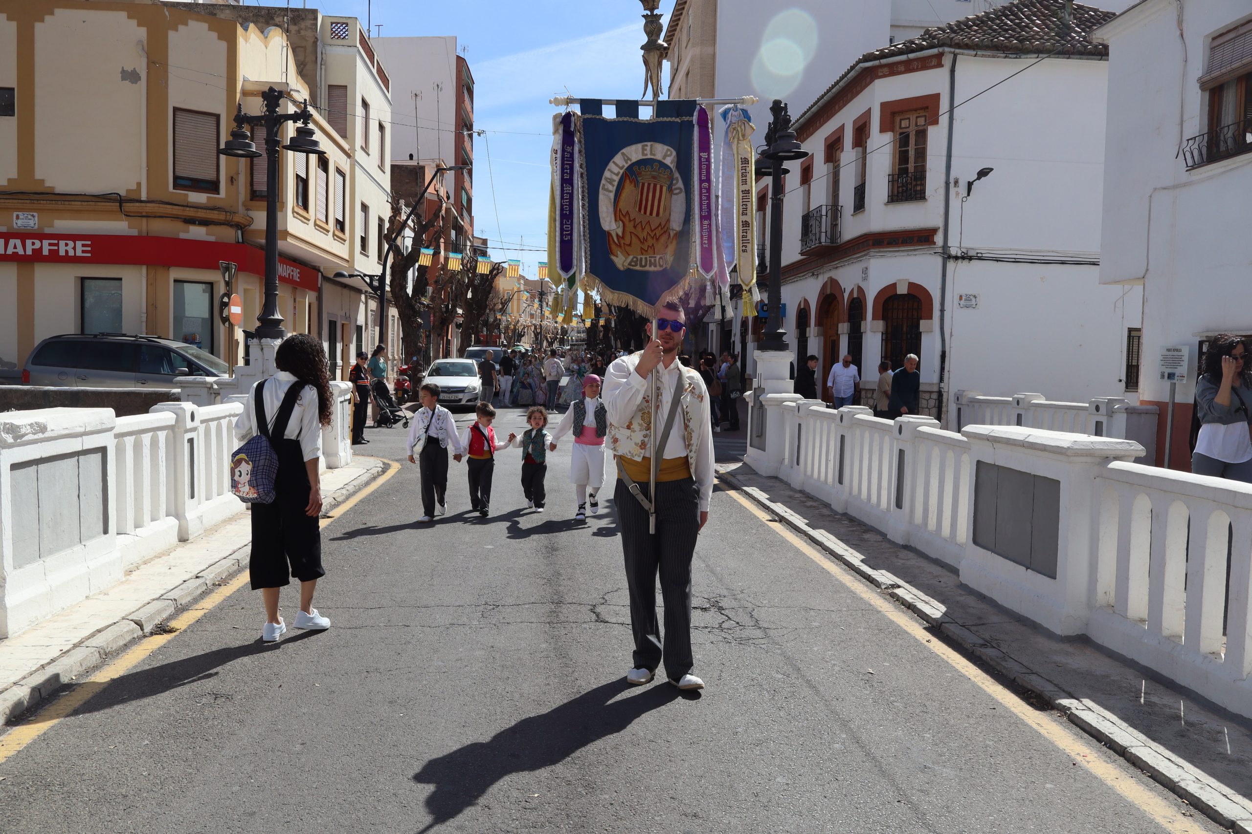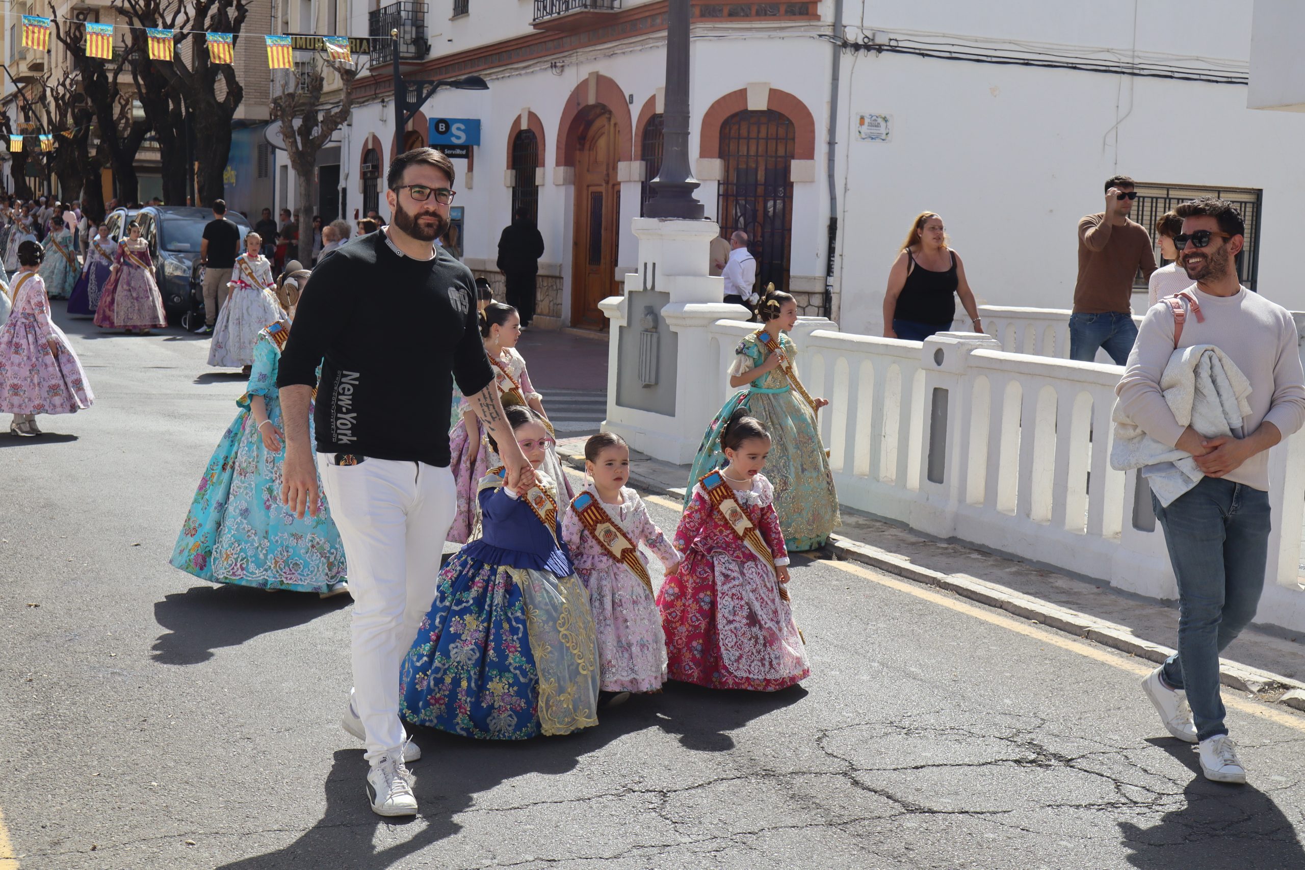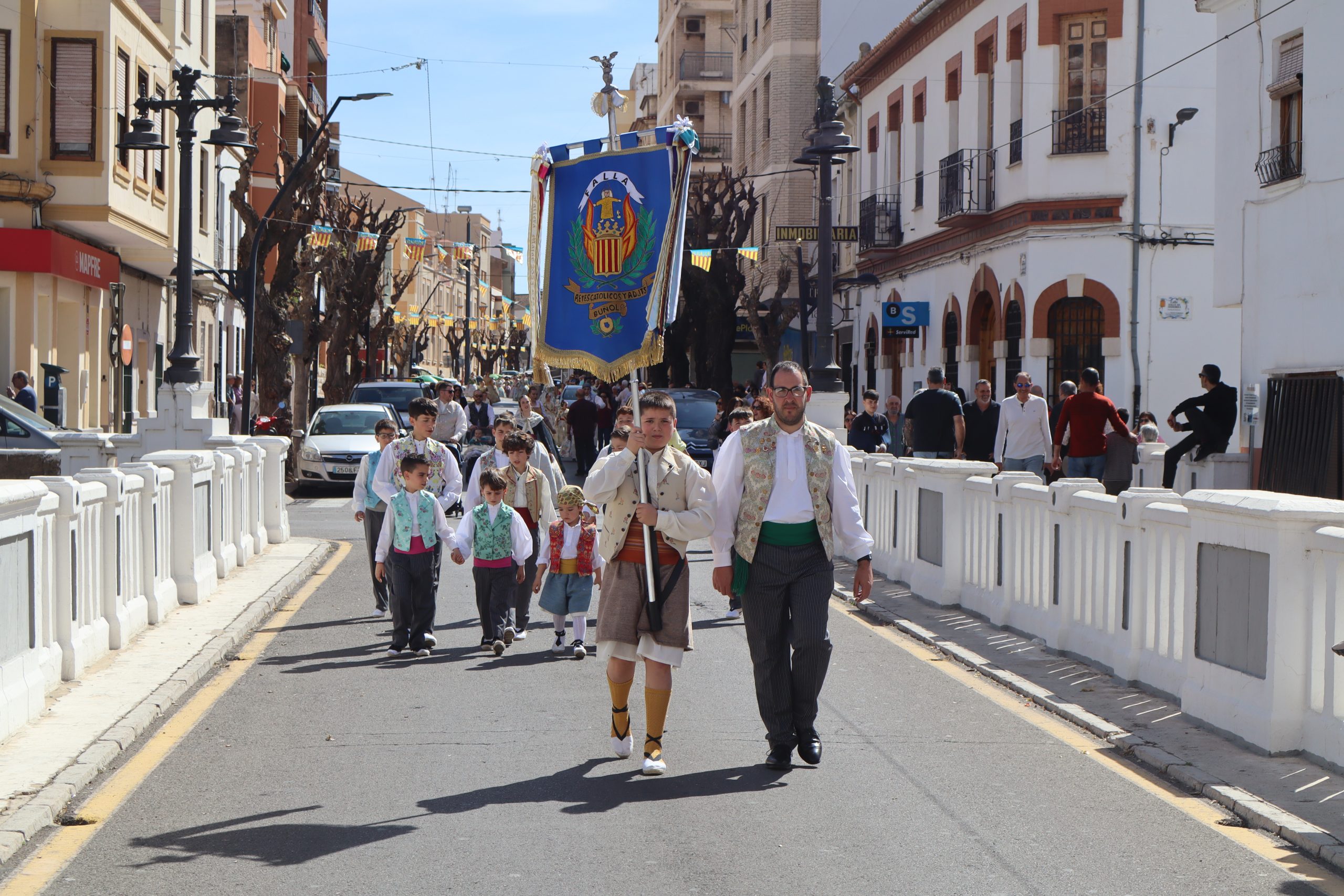 Las comisiones se reunieron en la Plaza del Castillo para visitar los monumentos de Reyes Católicos, Buñol Pueblo y Nuevo Buñol. El buen tiempo acompañó en una mañana festiva que hizo salir a muchas vecinas y vecinos de la localidad a ver el primer pasacalle de las fiestas Josefinas. El recorrido terminó en la Falla Buñol Pueblo donde las Falleras Mayores, la alcaldesa de Buñol, Virginia Sanz y el edil de Fiestas, Sergio Galarza, se realizaron la tradicional foto de familia.