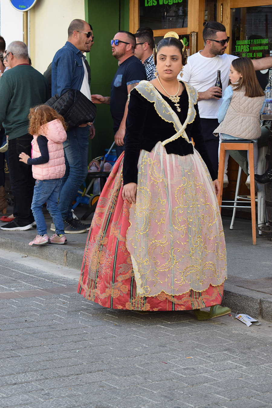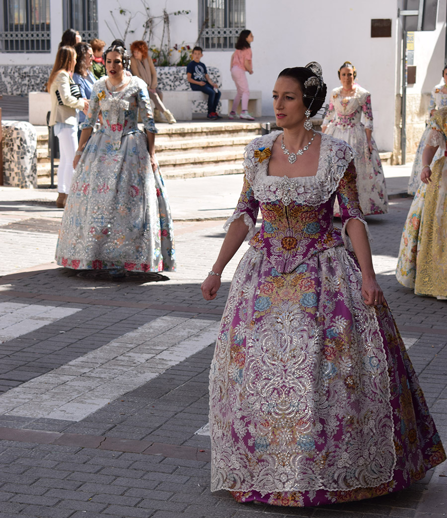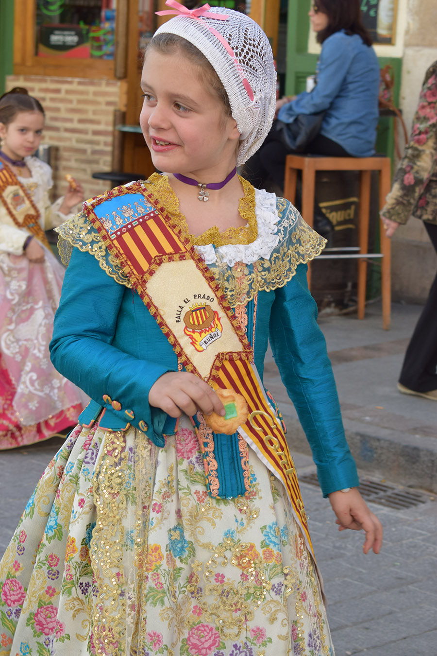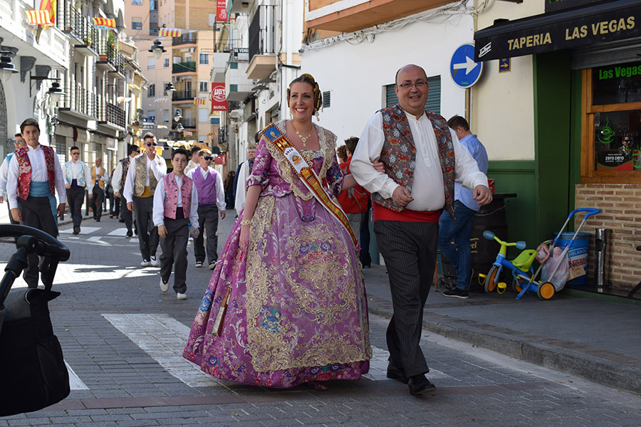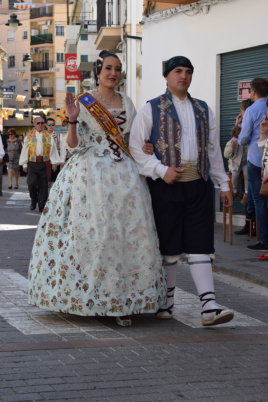 En una mañana más que agradable, las charangas y falleros y falleras han puesto color a las calles de Buñol, que estaban llenas de vecinos y vecinas que han arropado a las comisiones con sus aplausos. En cada parada, todas las comisiones se han realizado la foto de familia junto al monumento y han seguido su recorrido. Una vez han terminado, de nuevo vuelta a barracón, para coger fuerzas de cara a lo que les espera por la tarde, que es el acto más especial para los falleros y falleras, la ofrenda.