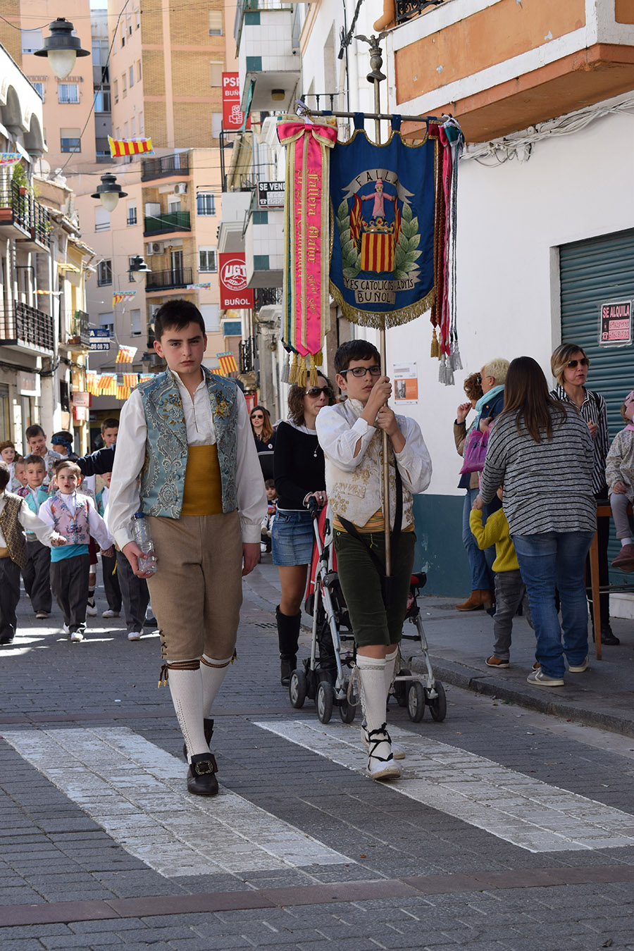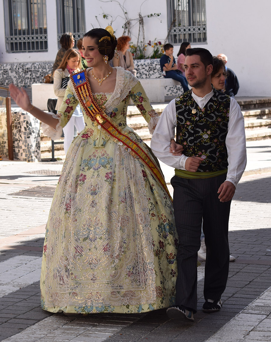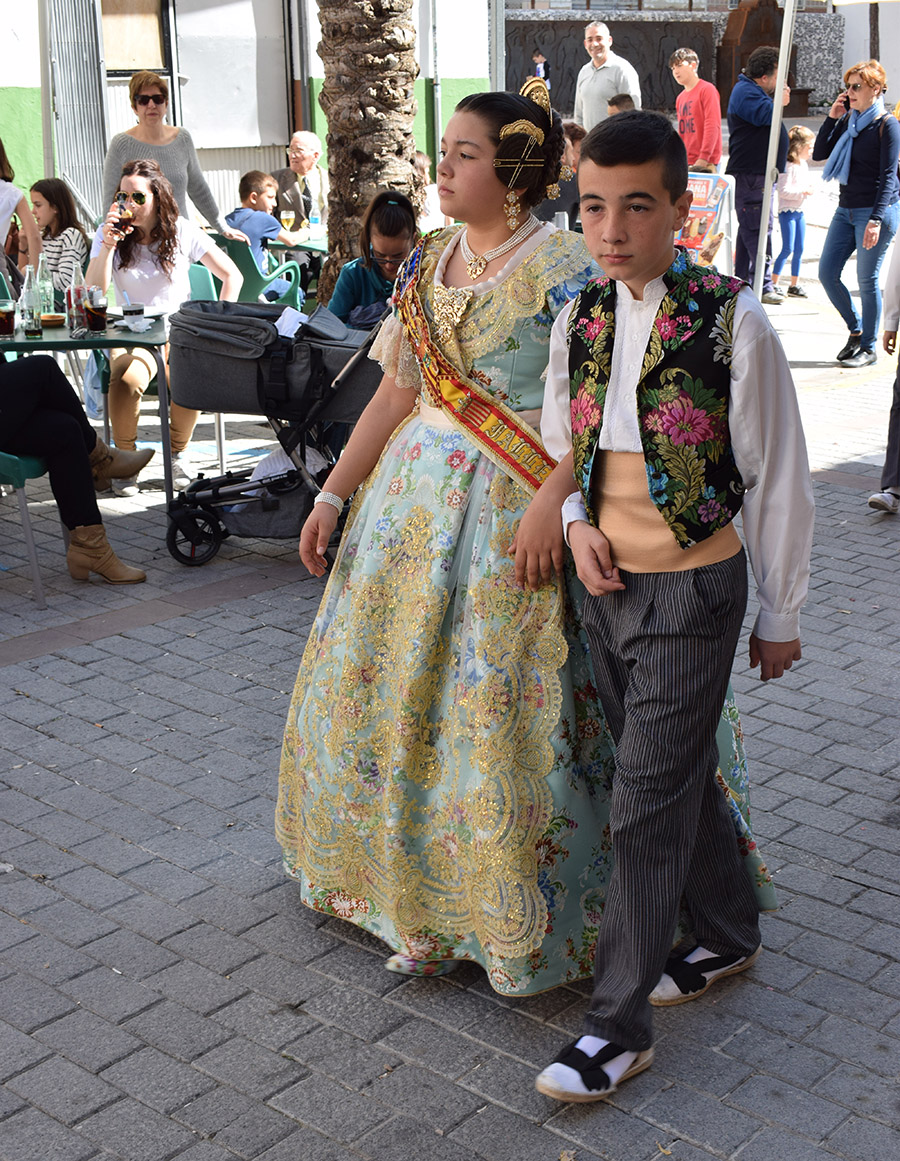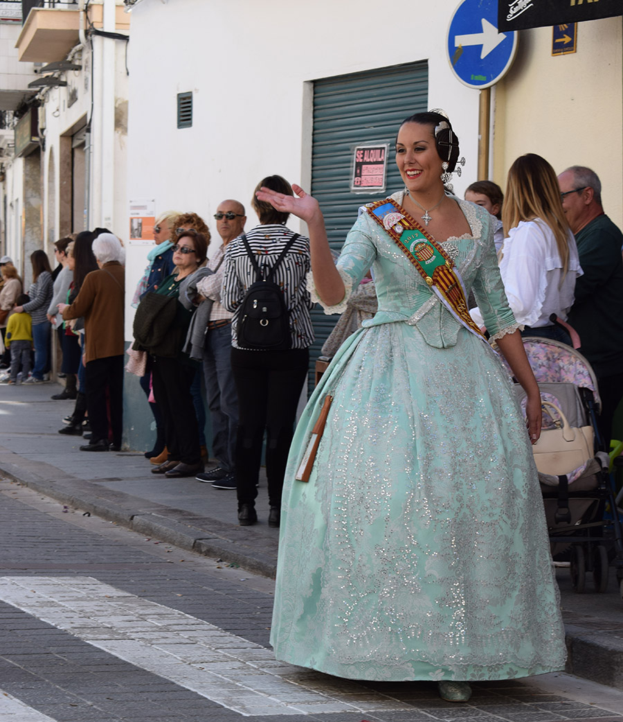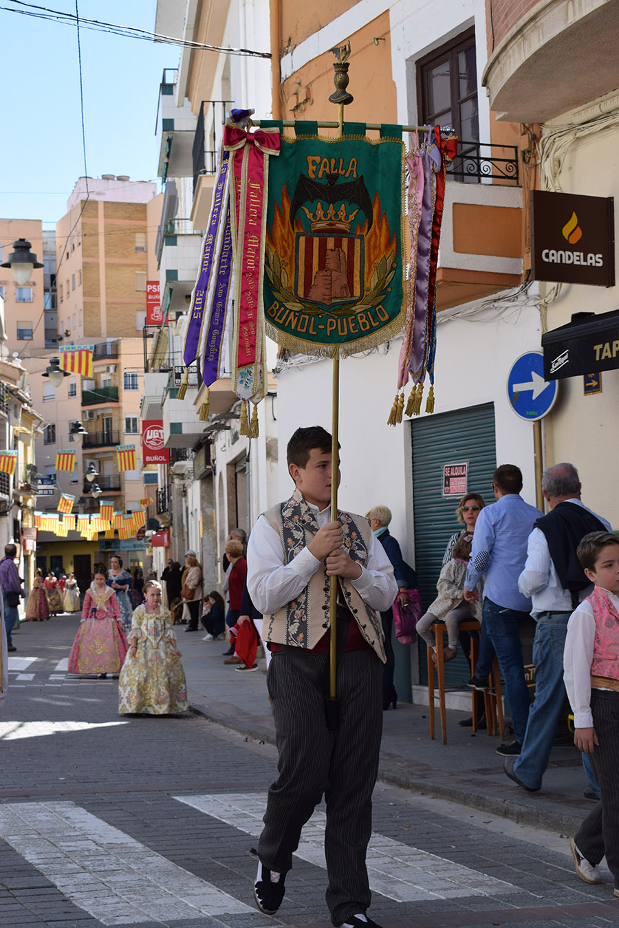 En una mañana más que agradable, las charangas y falleros y falleras han puesto color a las calles de Buñol, que estaban llenas de vecinos y vecinas que han arropado a las comisiones con sus aplausos. En cada parada, todas las comisiones se han realizado la foto de familia junto al monumento y han seguido su recorrido. Una vez han terminado, de nuevo vuelta a barracón, para coger fuerzas de cara a lo que les espera por la tarde, que es el acto más especial para los falleros y falleras, la ofrenda.