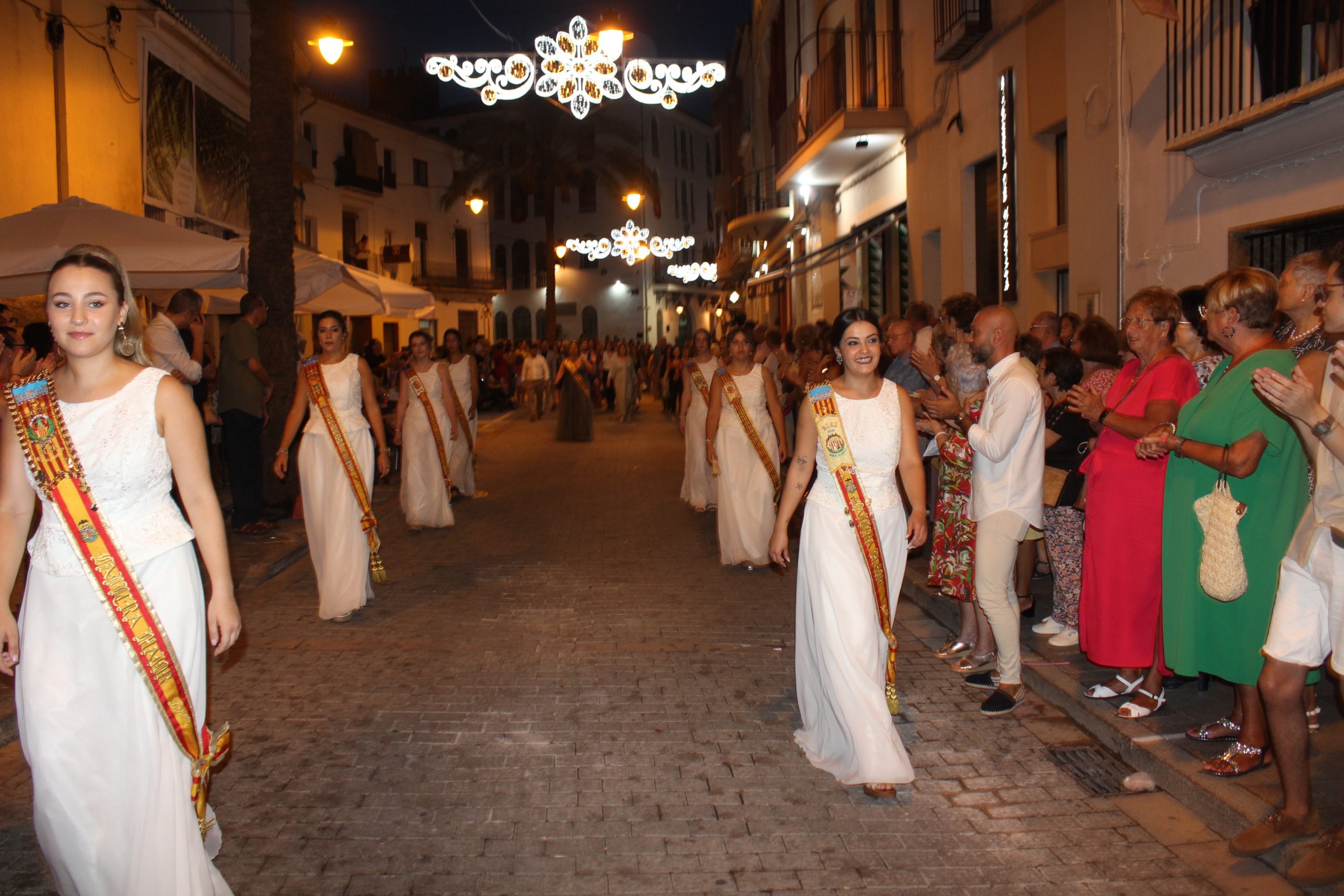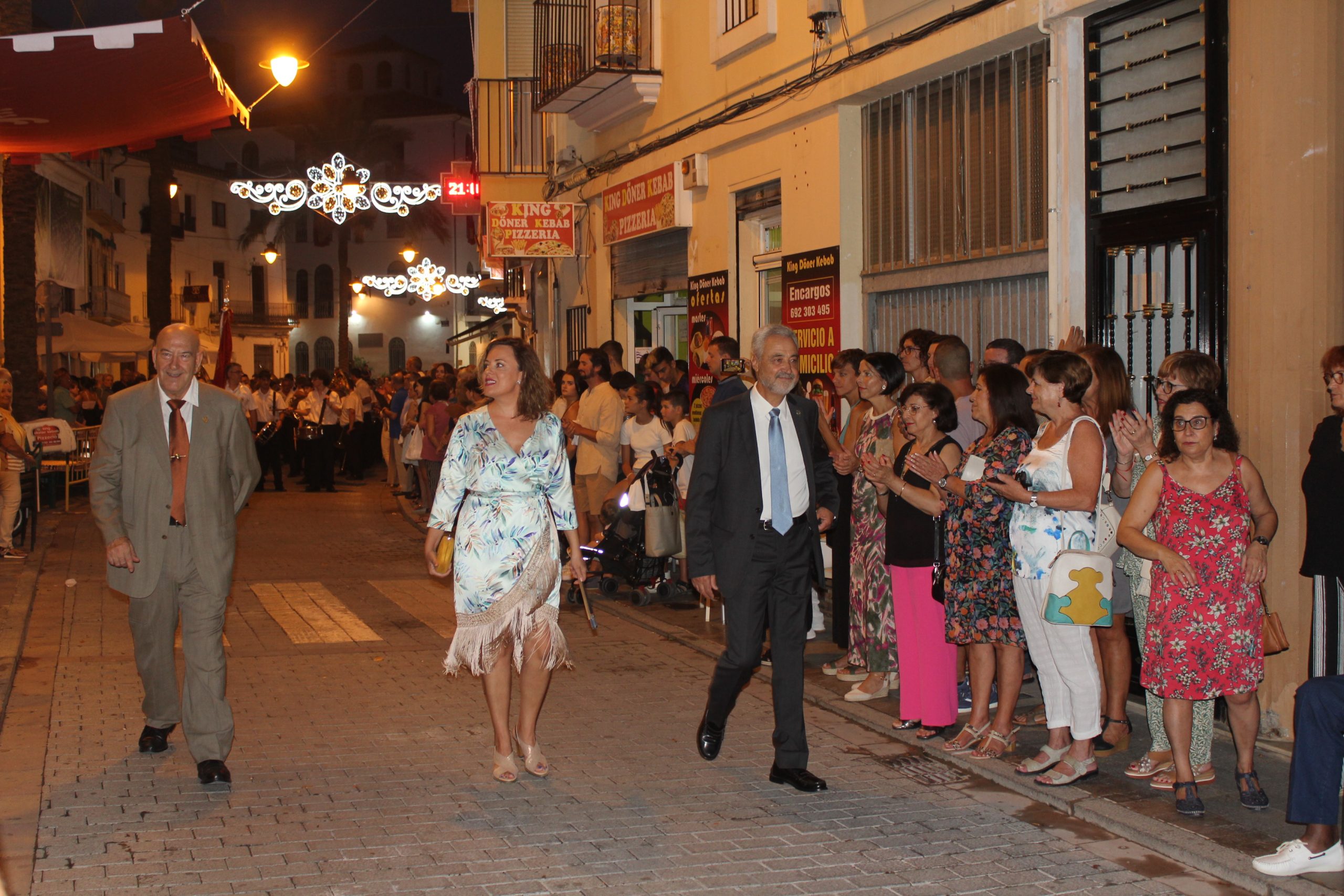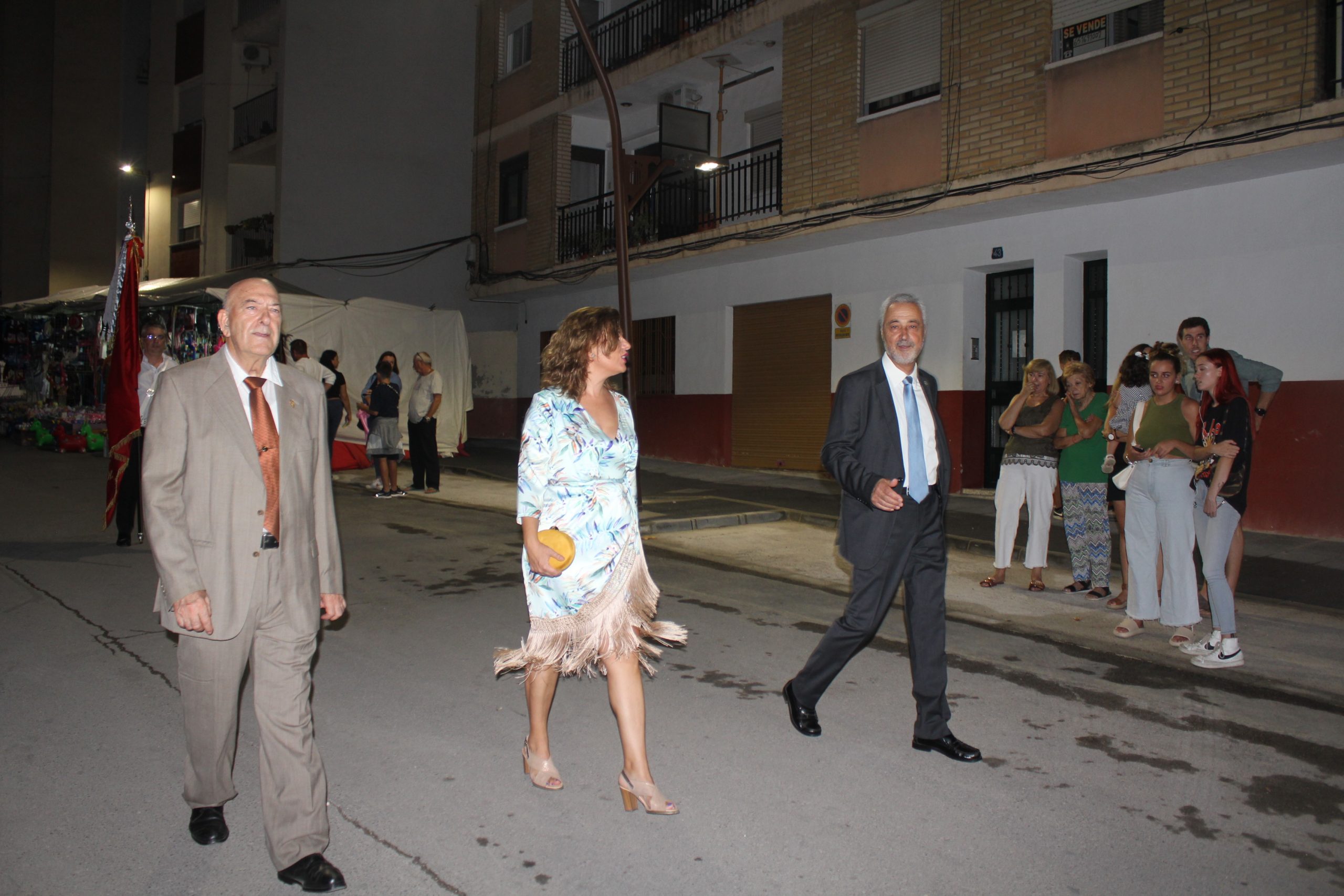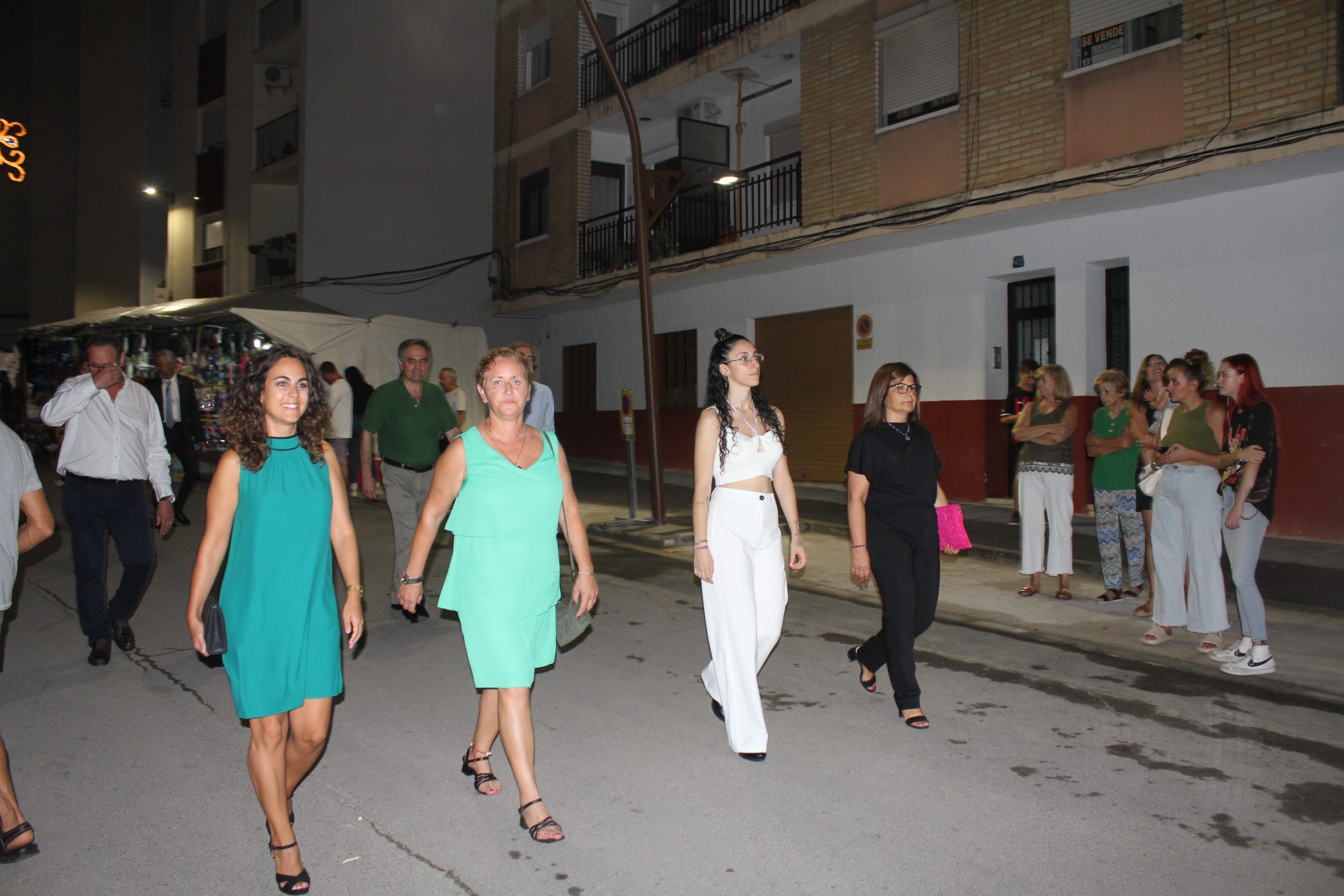 La comitiva ha salido del paseo de San Luis. La Reina de la Feria y Fiestas, Regina Martínez ha estado acompañada de su Corte de Honor y de la corporación municipal. Además, la imagen del santo ha sido llevada por los feligreses, a los que acompañaban las Clavarias de San Luis y el resto de las vecinas y vecinos que han decidido acompañar al santo hasta la parroquia.