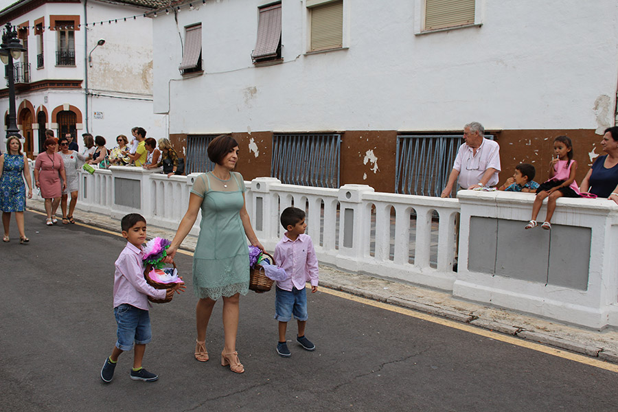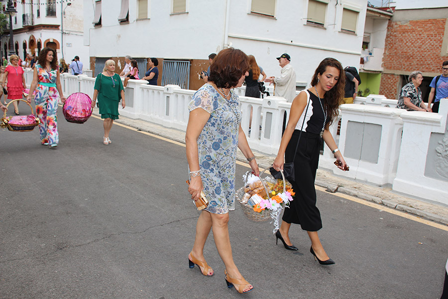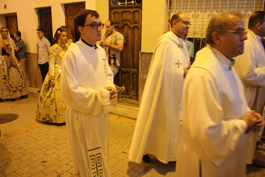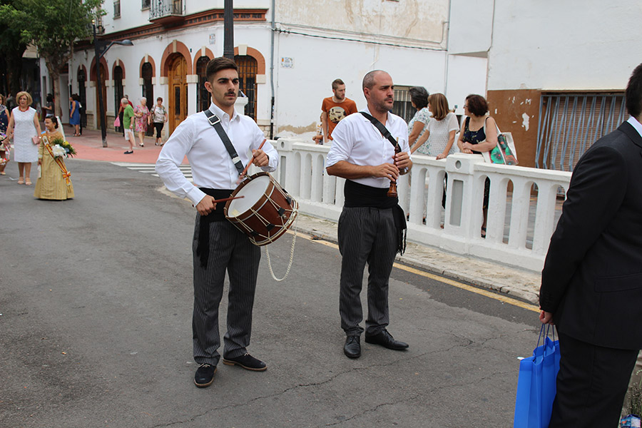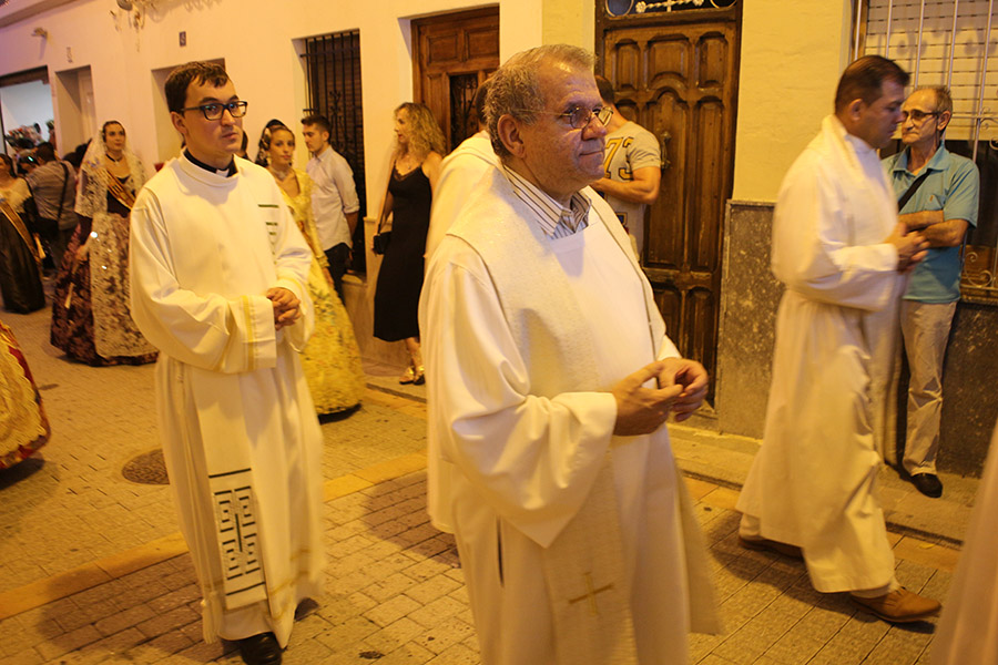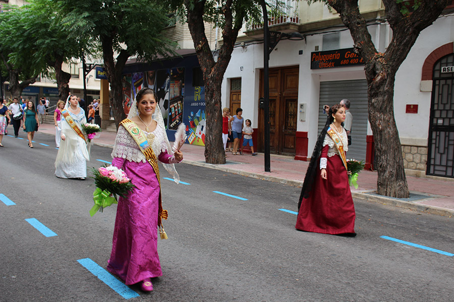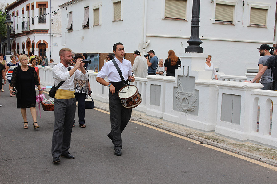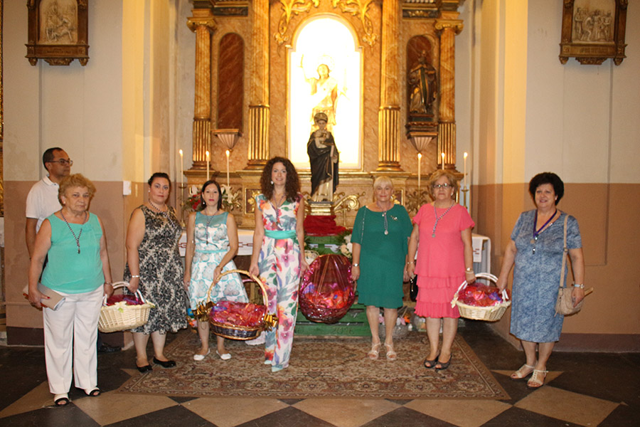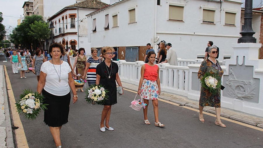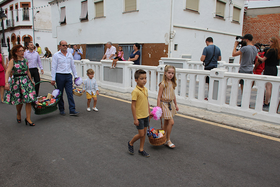 Bien es verdad, que desde el primer sábado de fiestas San Luis es trasladado desde su ermita hasta la Iglesia San Pedro Apóstol y muchos vecinos y vecinas consideran que es el protector de la semana grande de Buñol. Que gracias a él todo se desarrolla con total normalidad y sin tener que lamentar ningún incidente. Por ello, los buñoleros y buñoleras lo acompañan en la procesión vespertina, ya sea participando de ella o agolpándose a uno y otro lado de la calle para ver en primera fila el paso del patrón. Además, ya desde el año pasado, se realiza una ofrenda por la mañana, en la que participan las Misses y Reinas de ambas sociedades musicales y un numeroso público.