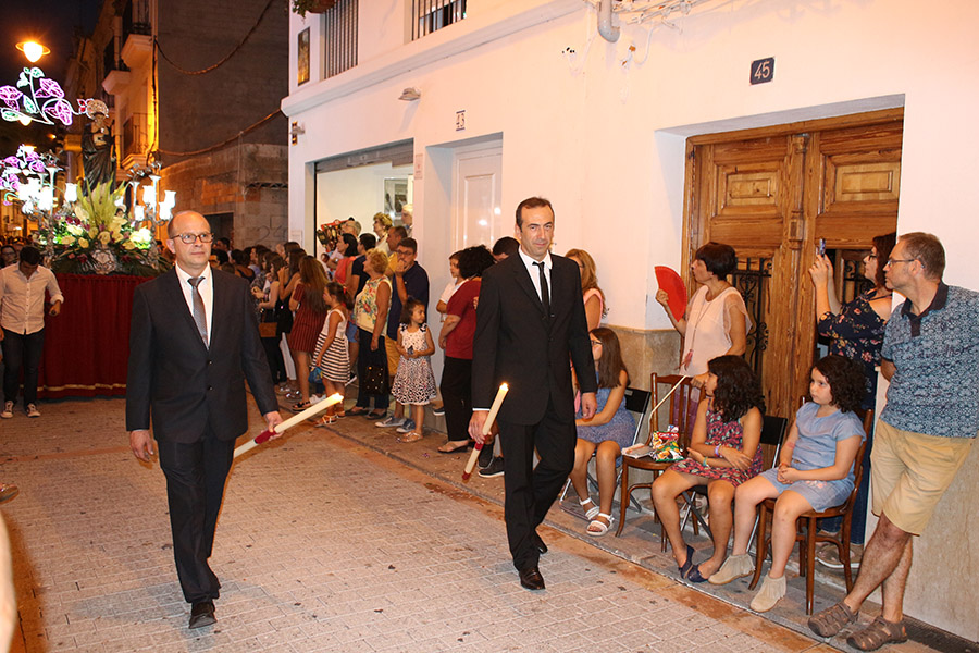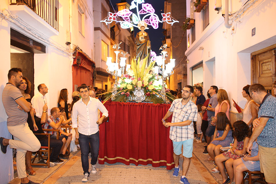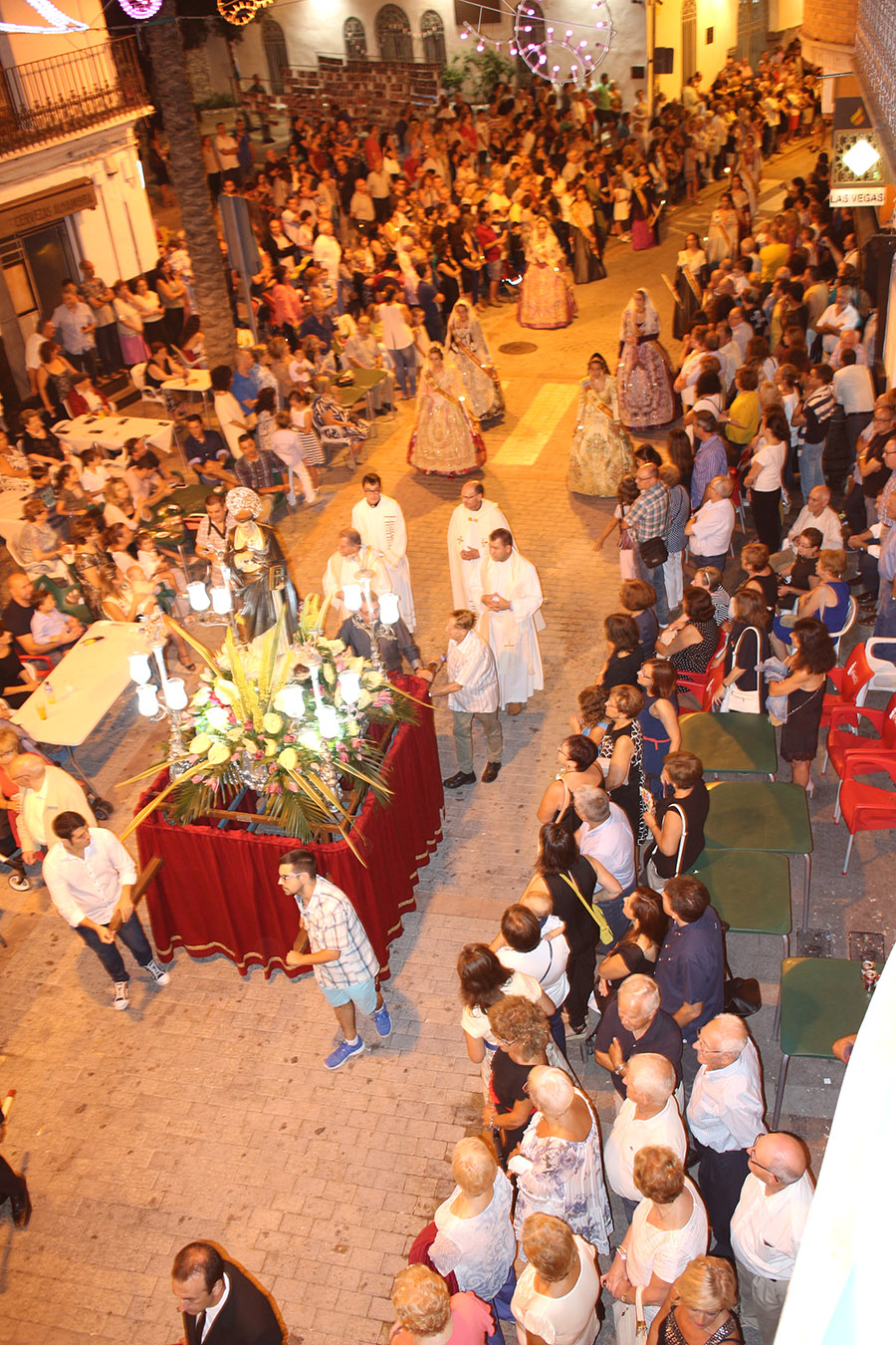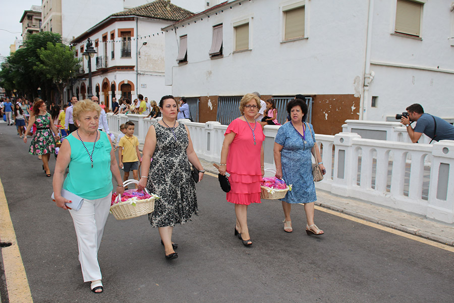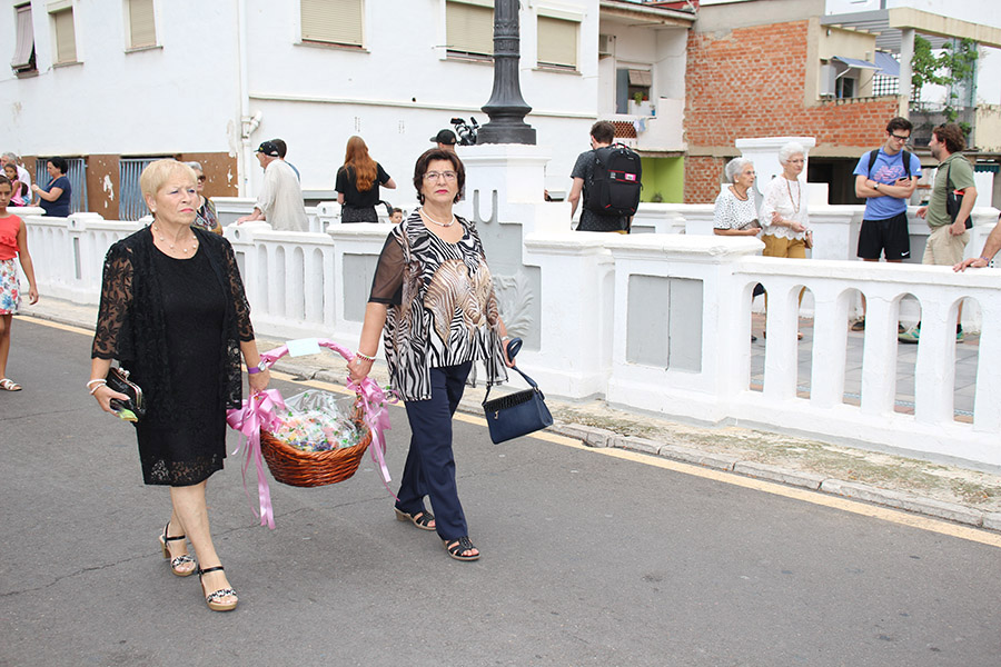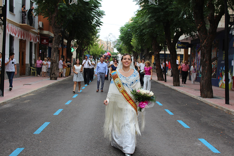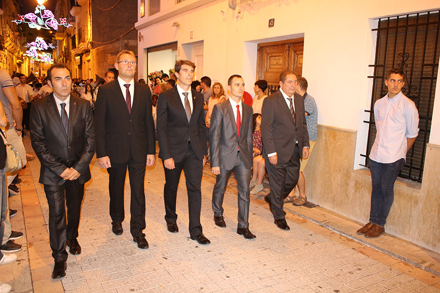 Bien es verdad, que desde el primer sábado de fiestas San Luis es trasladado desde su ermita hasta la Iglesia San Pedro Apóstol y muchos vecinos y vecinas consideran que es el protector de la semana grande de Buñol. Que gracias a él todo se desarrolla con total normalidad y sin tener que lamentar ningún incidente. Por ello, los buñoleros y buñoleras lo acompañan en la procesión vespertina, ya sea participando de ella o agolpándose a uno y otro lado de la calle para ver en primera fila el paso del patrón. Además, ya desde el año pasado, se realiza una ofrenda por la mañana, en la que participan las Misses y Reinas de ambas sociedades musicales y un numeroso público.