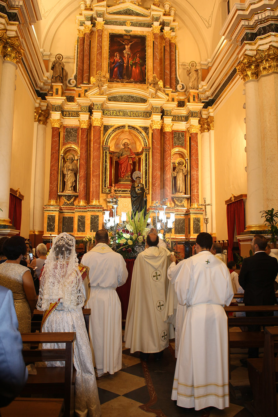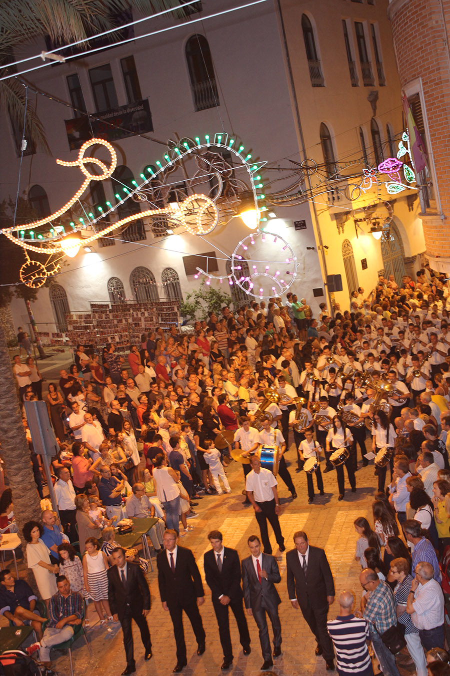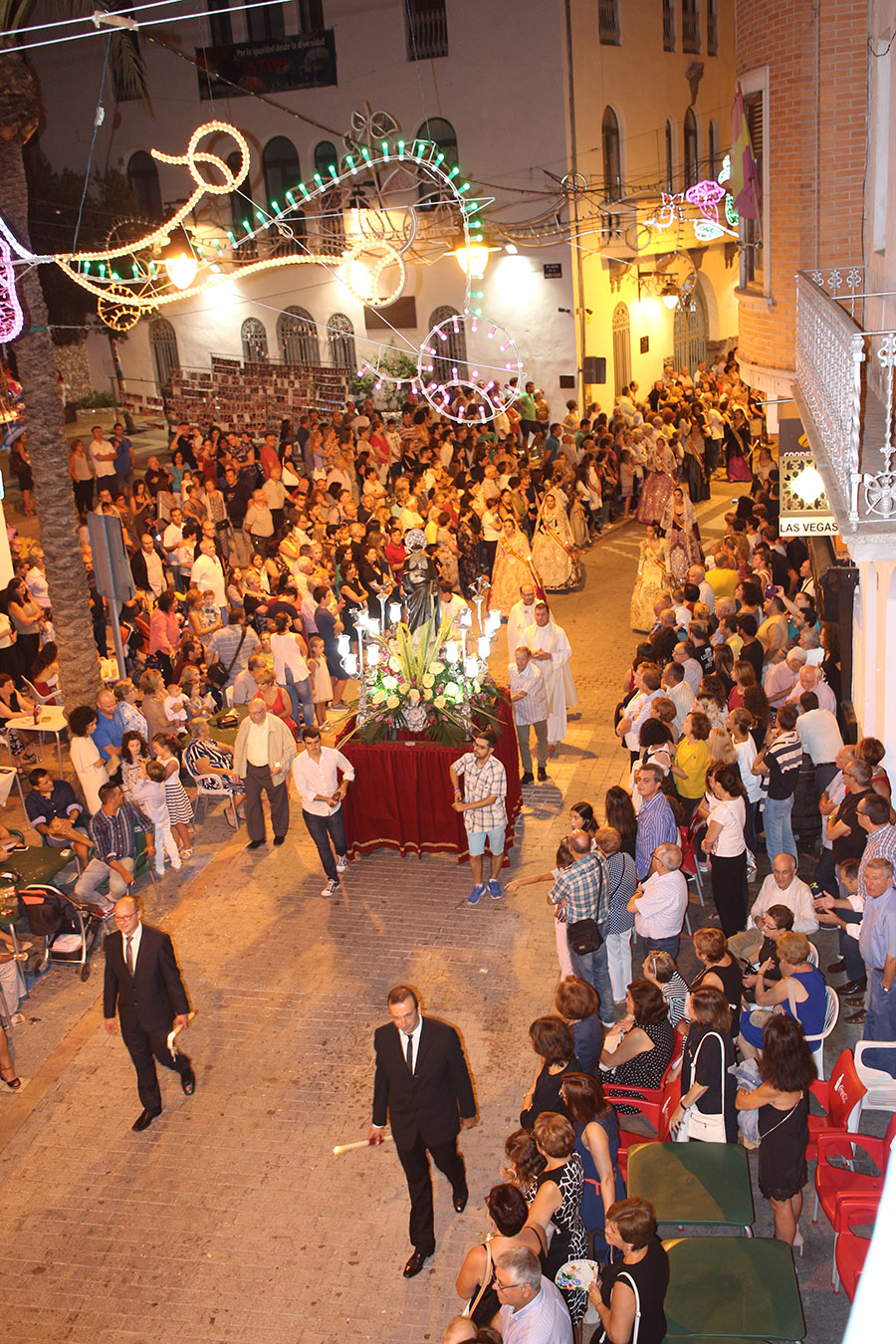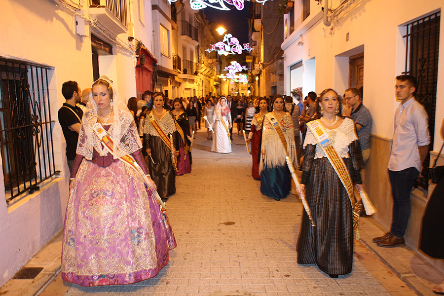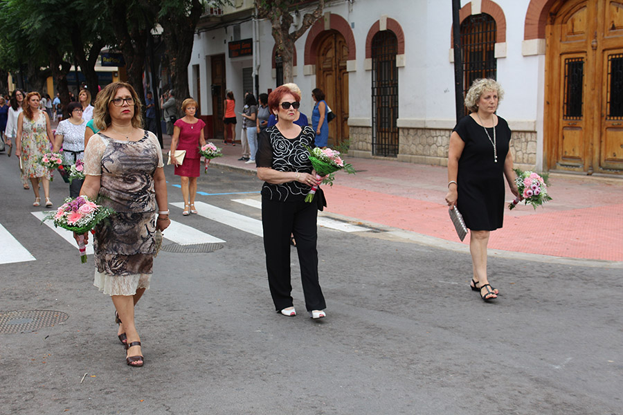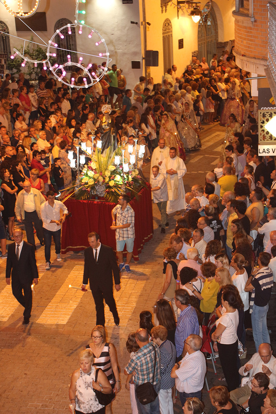Bien es verdad, que desde el primer sábado de fiestas San Luis es trasladado desde su ermita hasta la Iglesia San Pedro Apóstol y muchos vecinos y vecinas consideran que es el protector de la semana grande de Buñol. Que gracias a él todo se desarrolla con total normalidad y sin tener que lamentar ningún incidente. Por ello, los buñoleros y buñoleras lo acompañan en la procesión vespertina, ya sea participando de ella o agolpándose a uno y otro lado de la calle para ver en primera fila el paso del patrón. Además, ya desde el año pasado, se realiza una ofrenda por la mañana, en la que participan las Misses y Reinas de ambas sociedades musicales y un numeroso público.