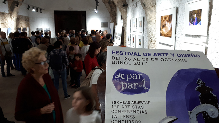 Éxito rotundo de la inauguración de la Bienal de Artes y Diseño de Buñol. El pasado viernes tuvo lugar la puesta de largo de la Bienal y del Festival «De Par en Part» en la Sala «El Oscurico» y en varios puntos del Castillo de Buñol se realizaron varias acciones.
