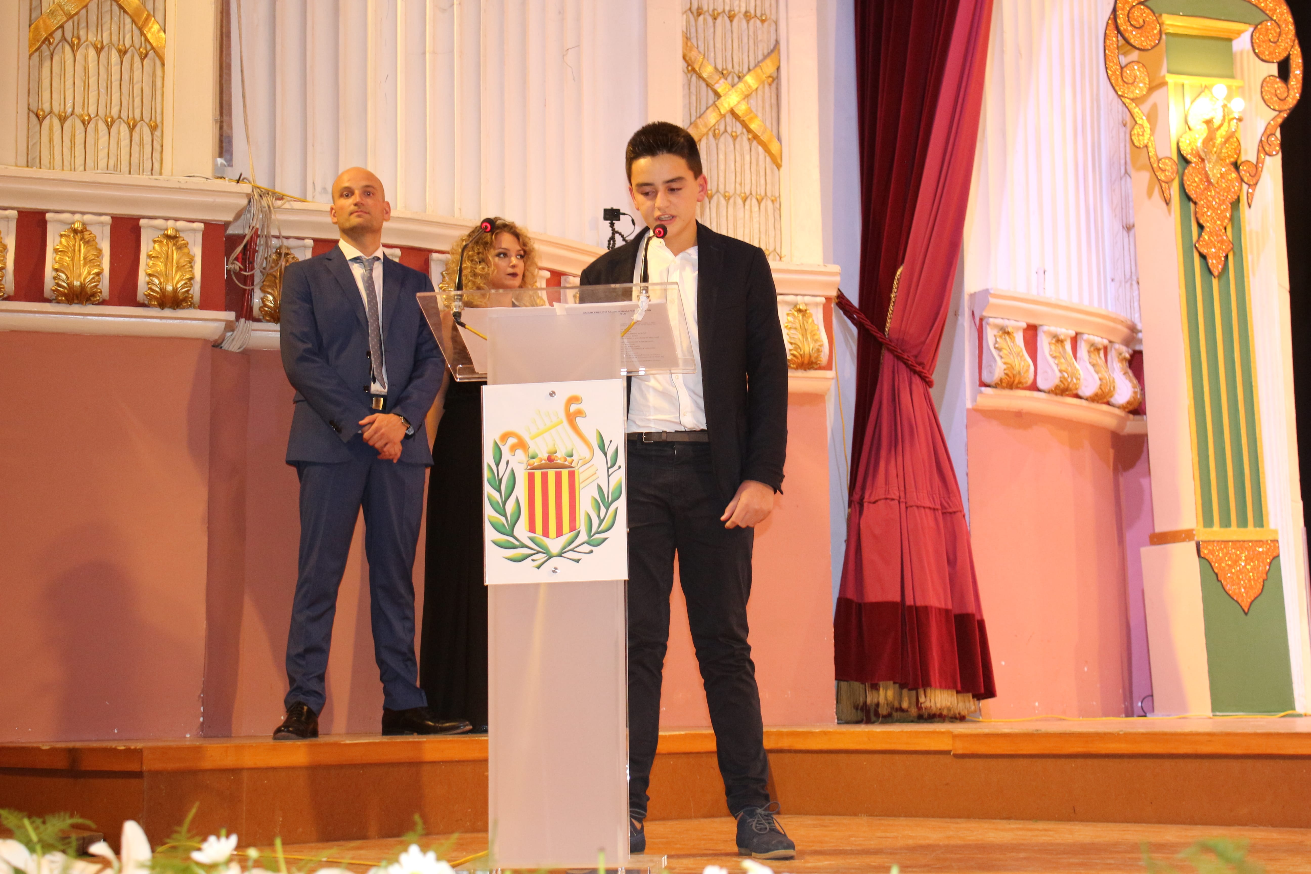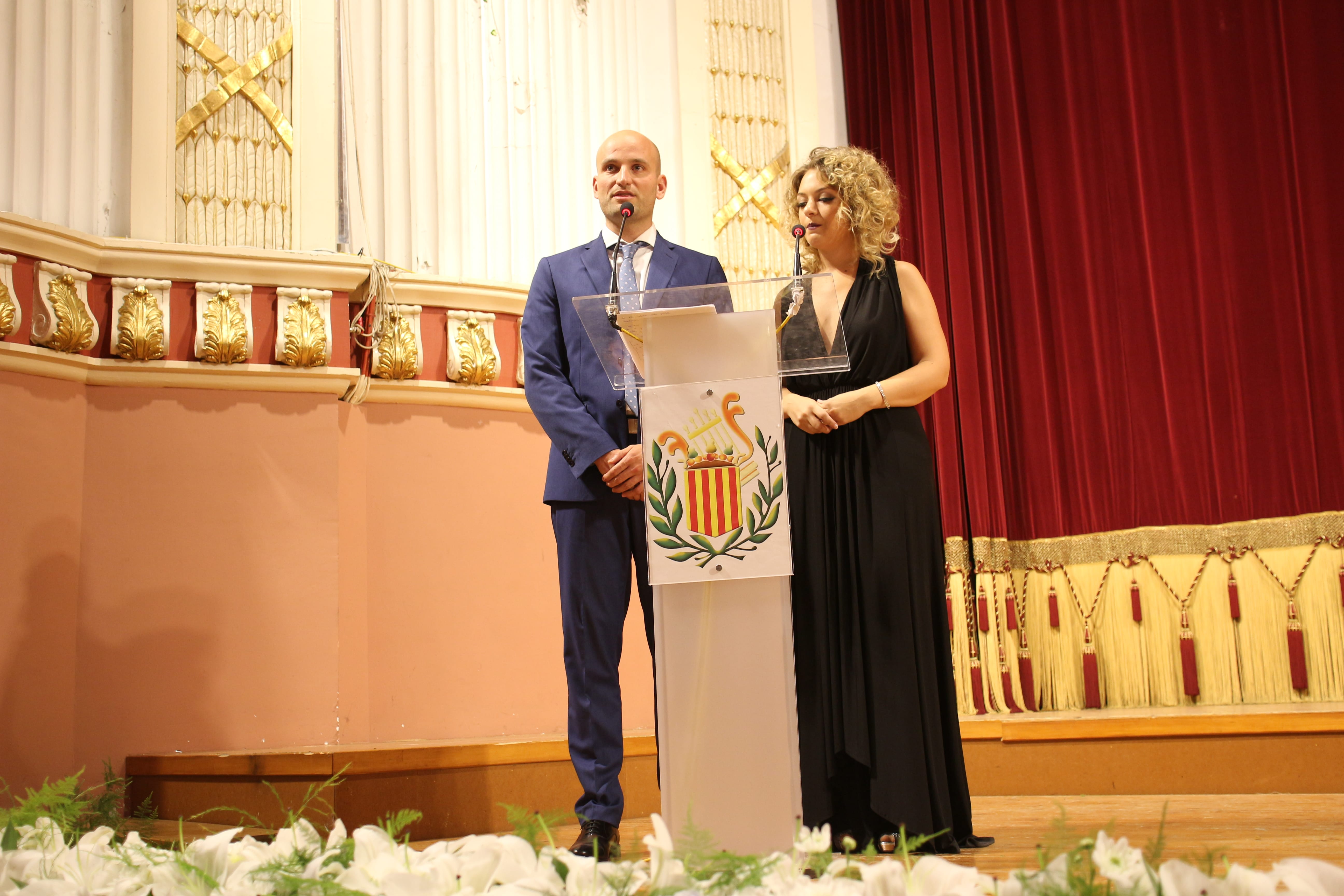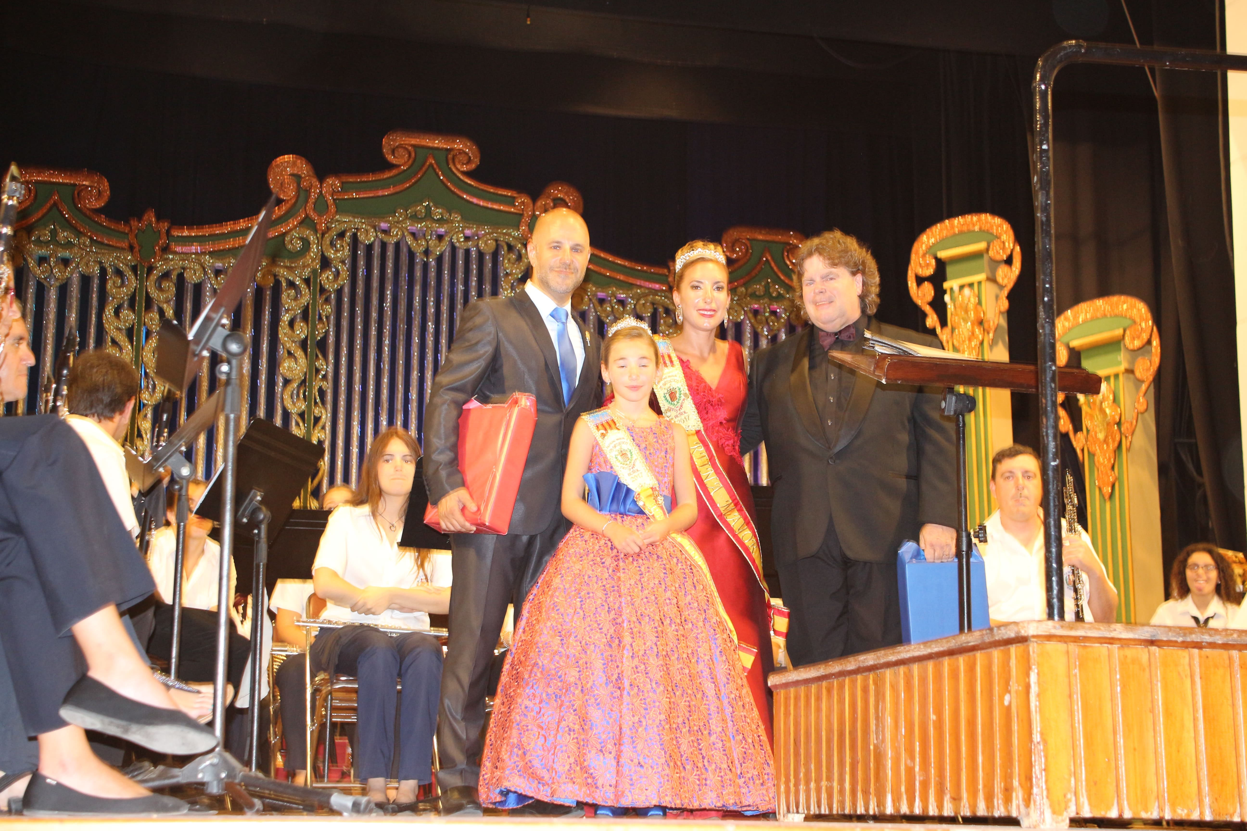 A este escenario también subieron las que van a ser Madrinas de la Bandera en este año, Carmen Díaz Criado y Estela Sánchez Gómez a las que en el concierto posterior de la banda sinfónica, les dedicaron un pasodoble escrito por David Tarín Díaz y Jose Vicente Fuentes y que fue dirigido por Manolo Tarin. El broche de oro a la noche lo puso el concierto de la banda, dirigida por Henrie Adams.