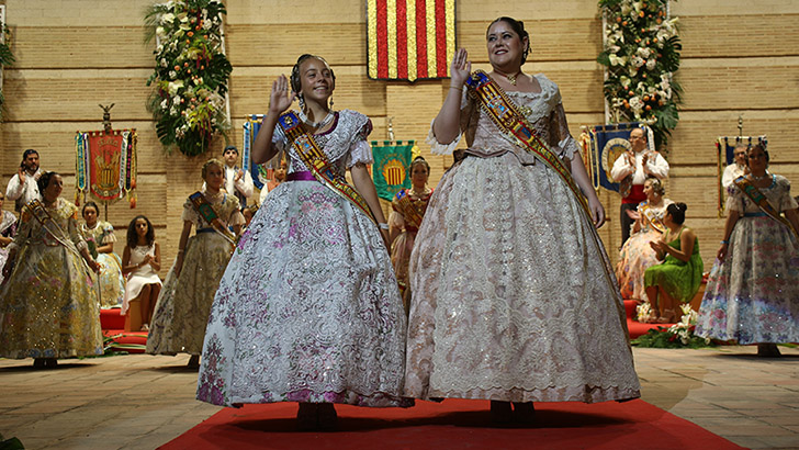 El acto arrancó desde el Ayuntamiento, donde las falleras fueron desfilando hasta el Auditorio donde se produjo la proclamación de Nairobi.