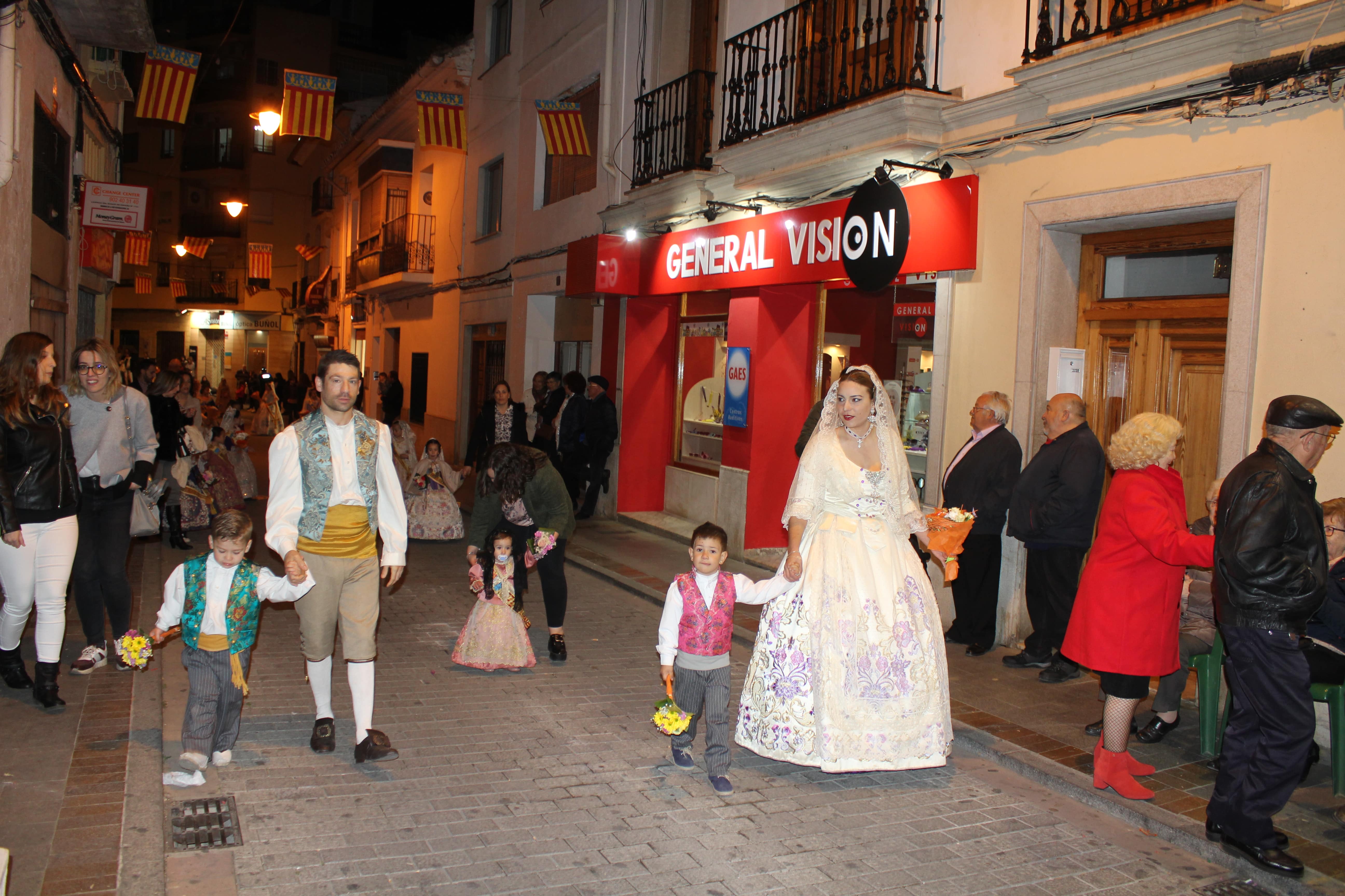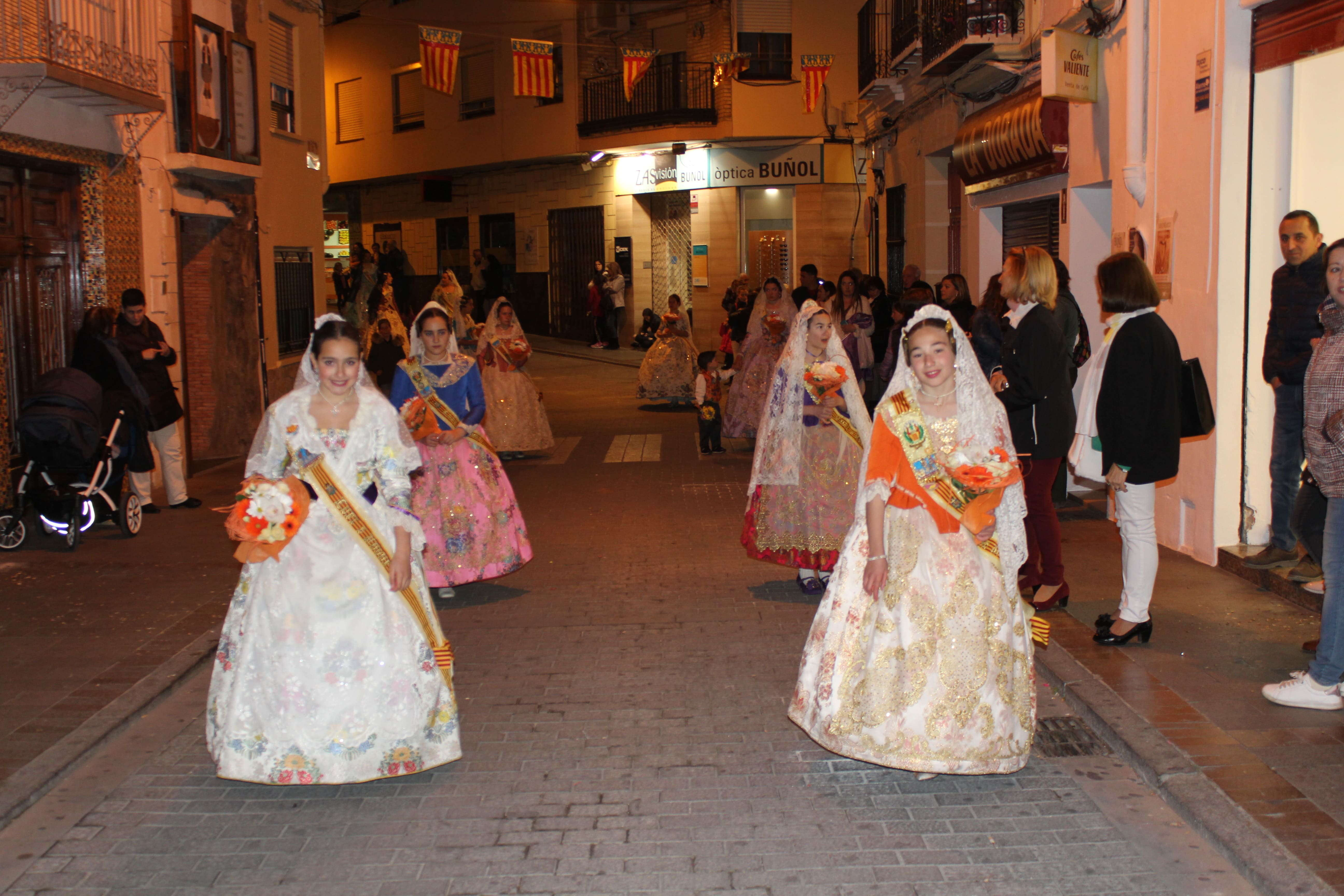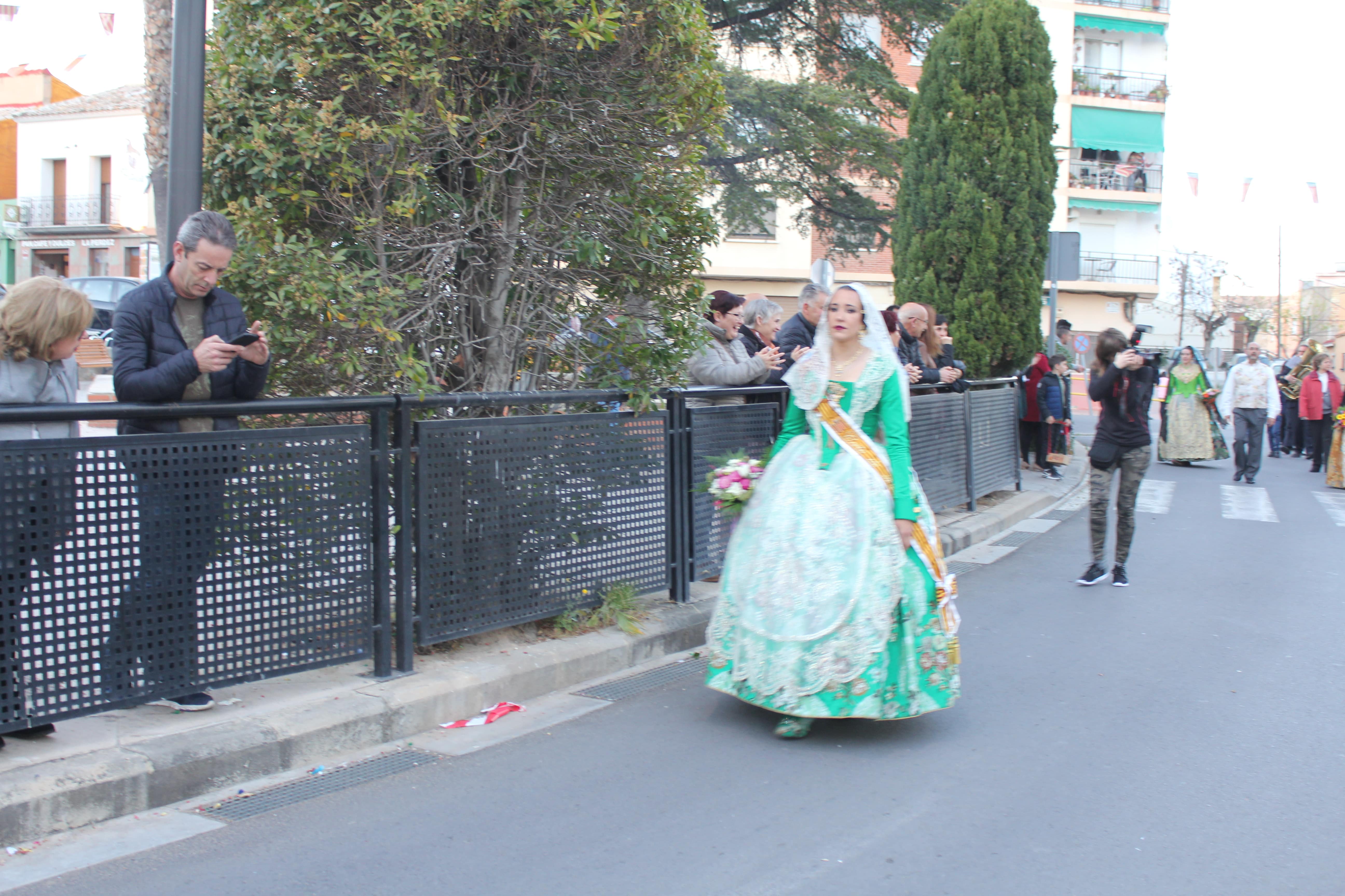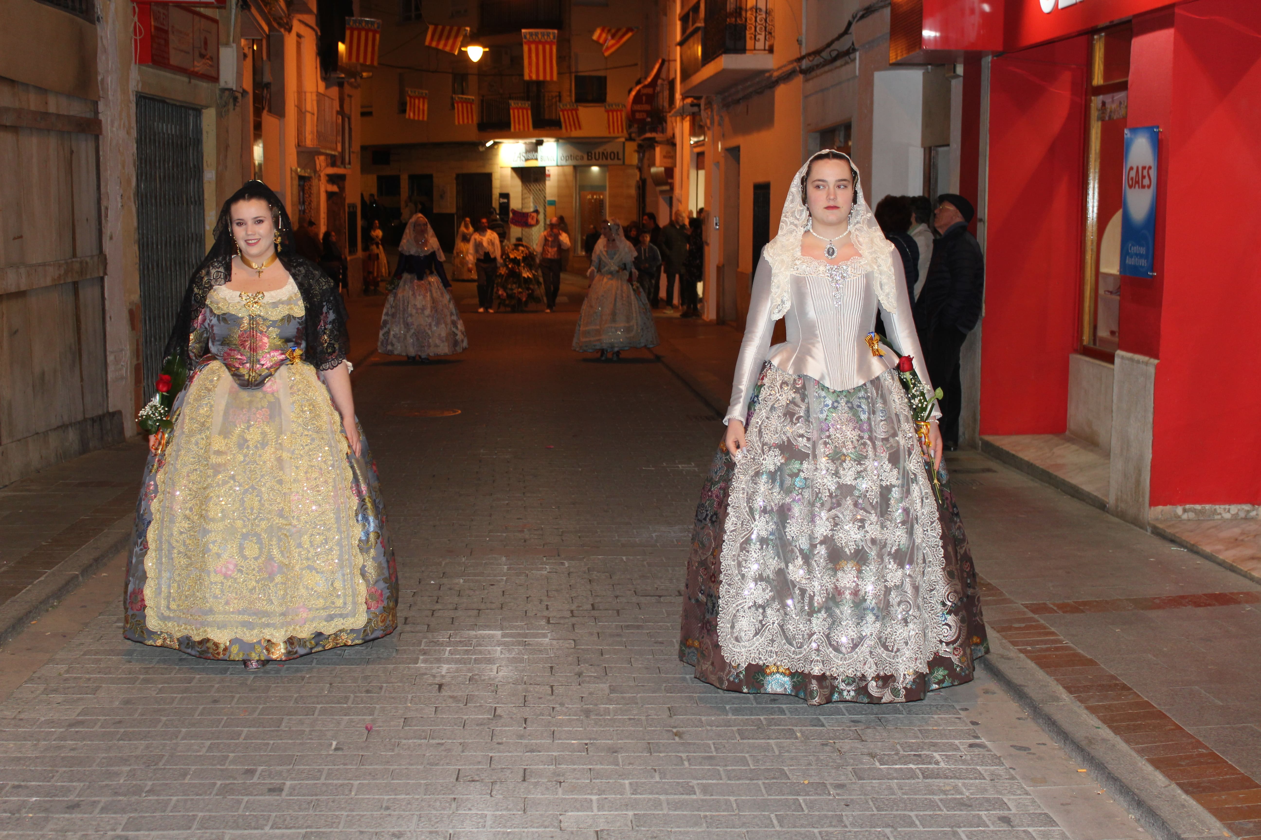 Redacción.- Las Fallas de Buñol han celebrado uno de los actos centrales más emotivos de las fiestas josefinas, la Ofrenda. Este año el acto ha comenzado en la Plaza Rivero,desde donde las comisiones de El Prado y Las Ventas, acompañados de la Fallera Mayor de la Junta Local, Maribel Montaner, que ha encabezado el desfile, han ofrendado a la Virgen de los Dolores. El “puente de la Venta”, así como la Calle Condes de Buñol estaban abarrotadas para observar a decenas de falleros y falleras, en una de las tardes más especiales de las fiestas Josefinas. Míriam Villena, llena de emoción depositó su ramo y más tarde se hizo la foto de familia con su comisión de El Prado. Igualmente emocionadas se mostraron, Míriam Carreño y Claudia Tórtola de la comisión de Las Ventas, que repitieron instantánea con toda su familia fallera.