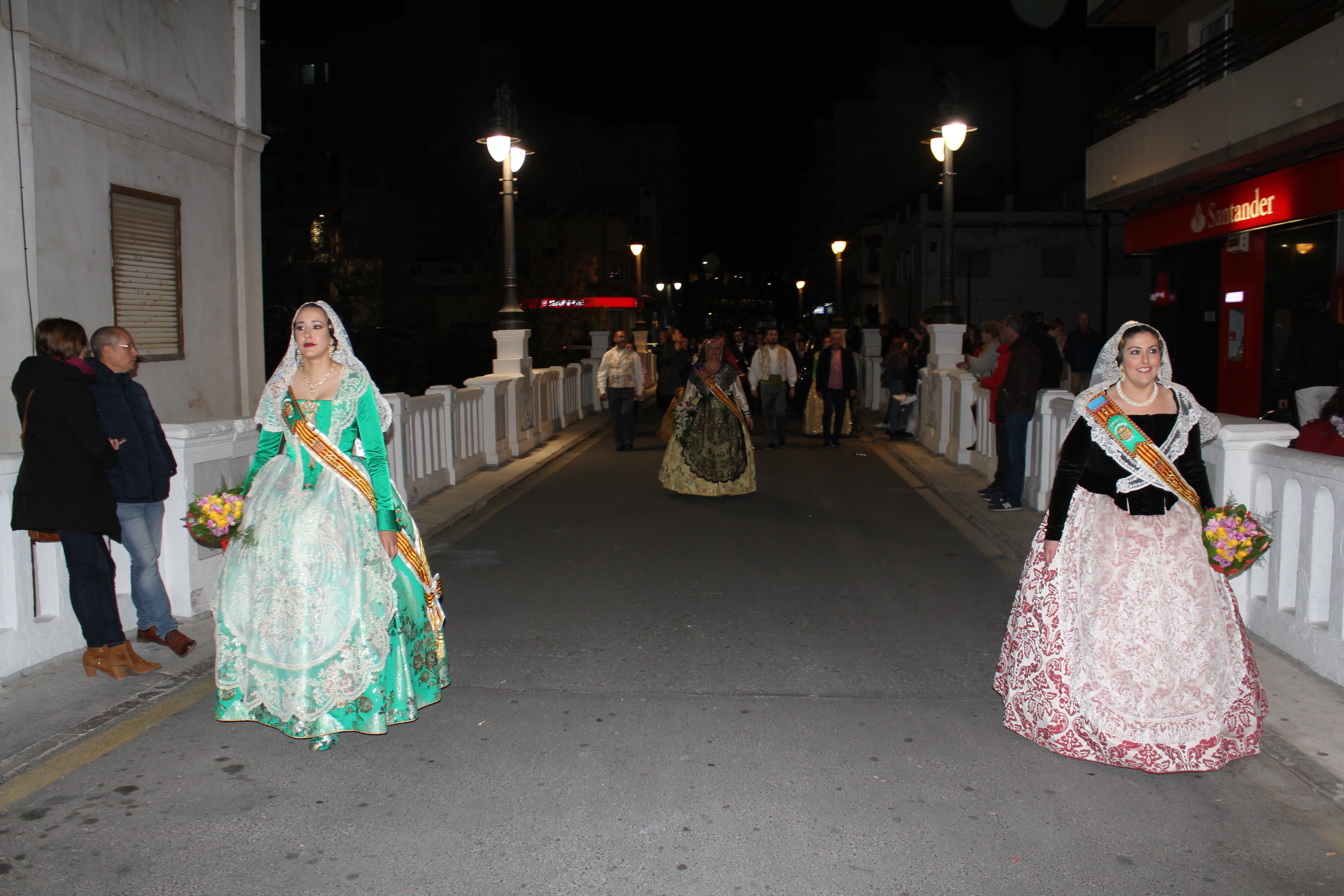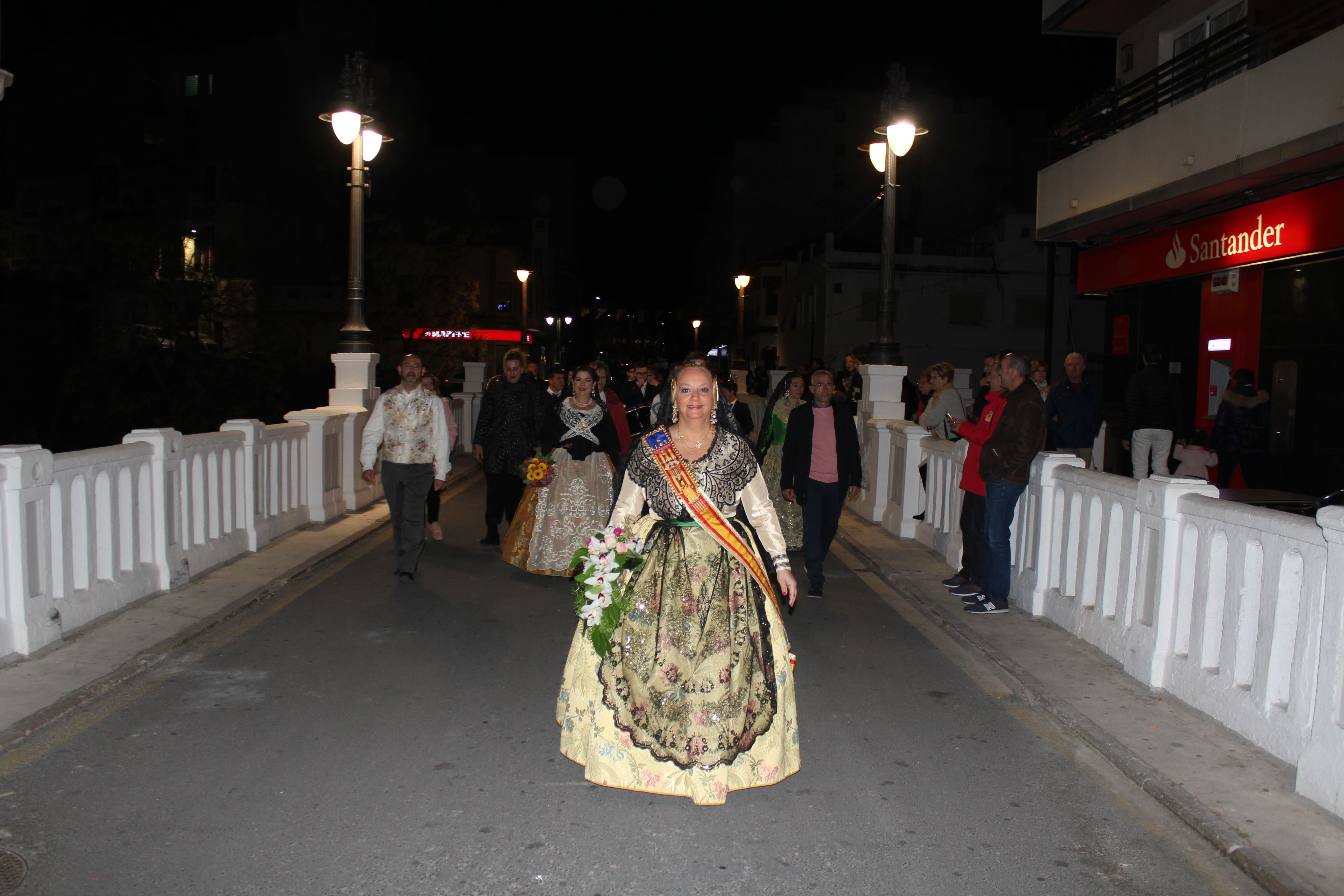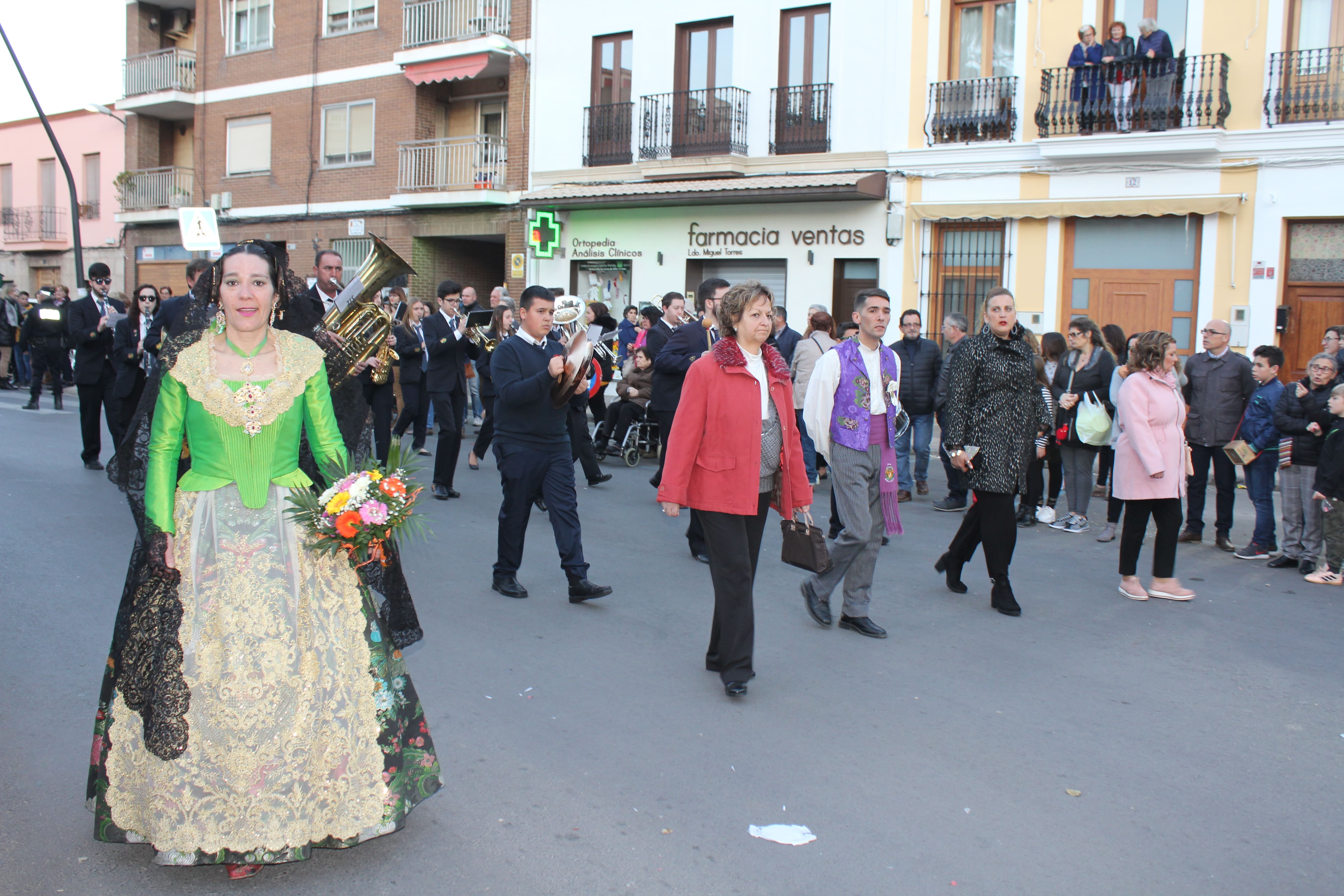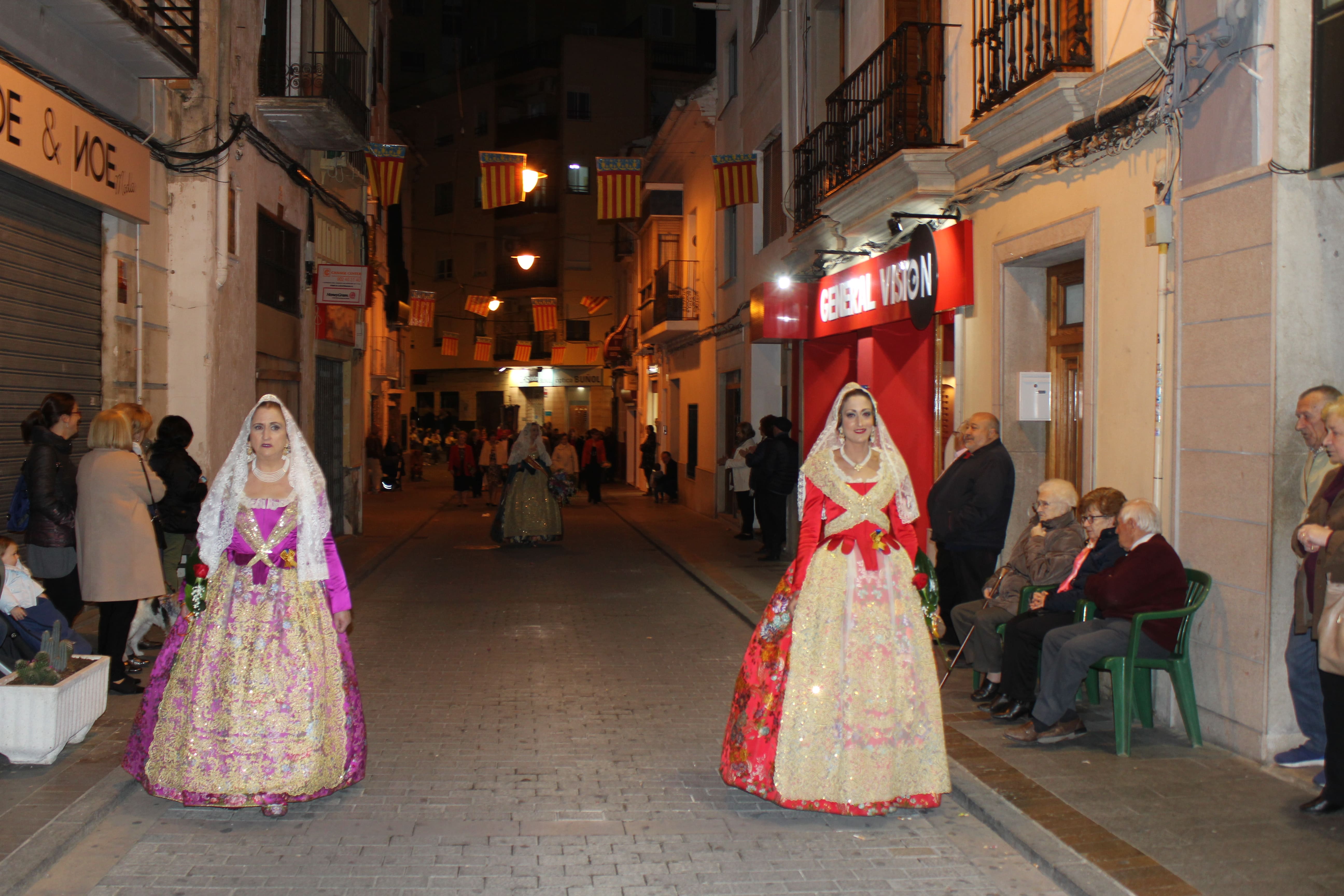 Redacción.- Las Fallas de Buñol han celebrado uno de los actos centrales más emotivos de las fiestas josefinas, la Ofrenda. Este año el acto ha comenzado en la Plaza Rivero,desde donde las comisiones de El Prado y Las Ventas, acompañados de la Fallera Mayor de la Junta Local, Maribel Montaner, que ha encabezado el desfile, han ofrendado a la Virgen de los Dolores. El “puente de la Venta”, así como la Calle Condes de Buñol estaban abarrotadas para observar a decenas de falleros y falleras, en una de las tardes más especiales de las fiestas Josefinas. Míriam Villena, llena de emoción depositó su ramo y más tarde se hizo la foto de familia con su comisión de El Prado. Igualmente emocionadas se mostraron, Míriam Carreño y Claudia Tórtola de la comisión de Las Ventas, que repitieron instantánea con toda su familia fallera.