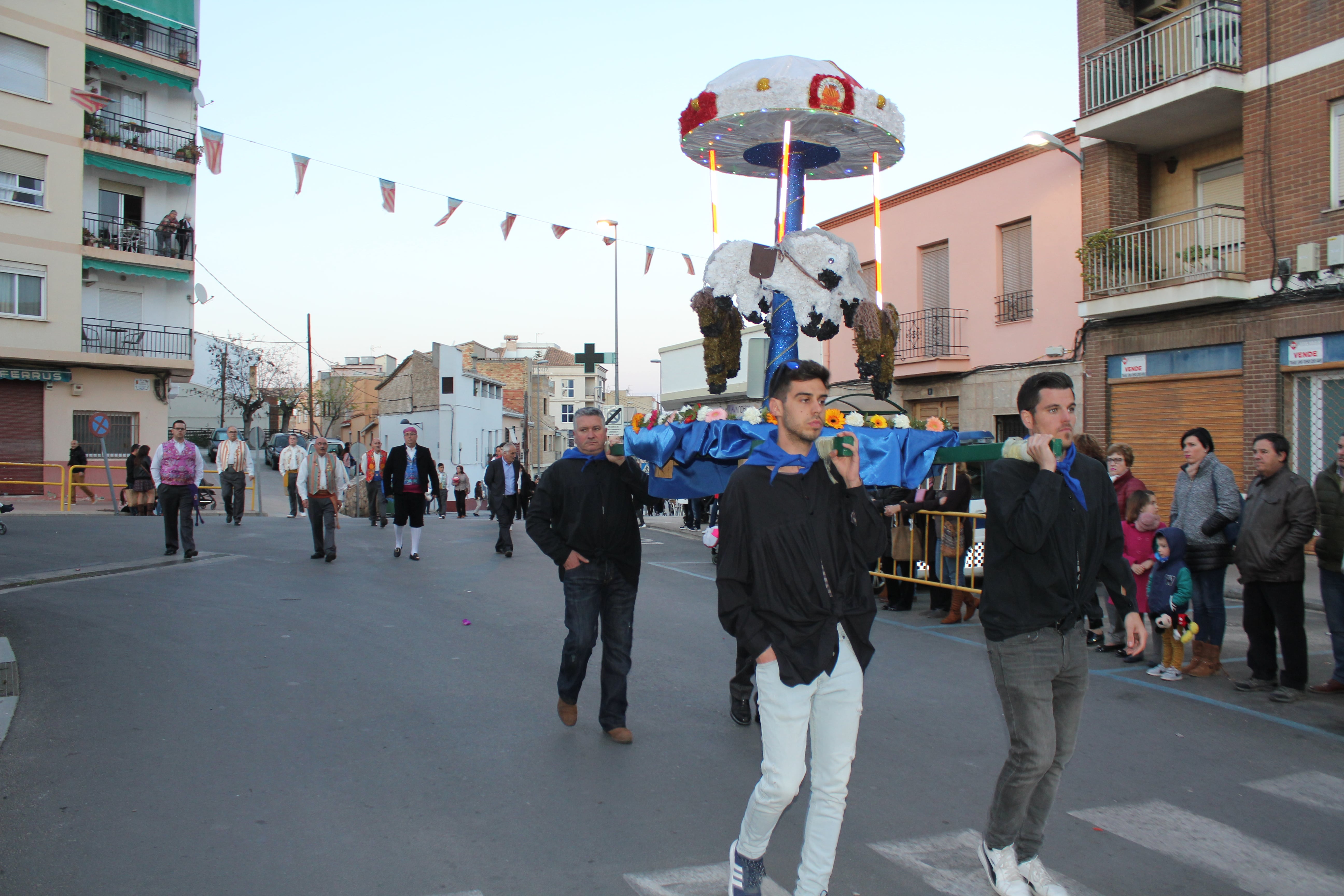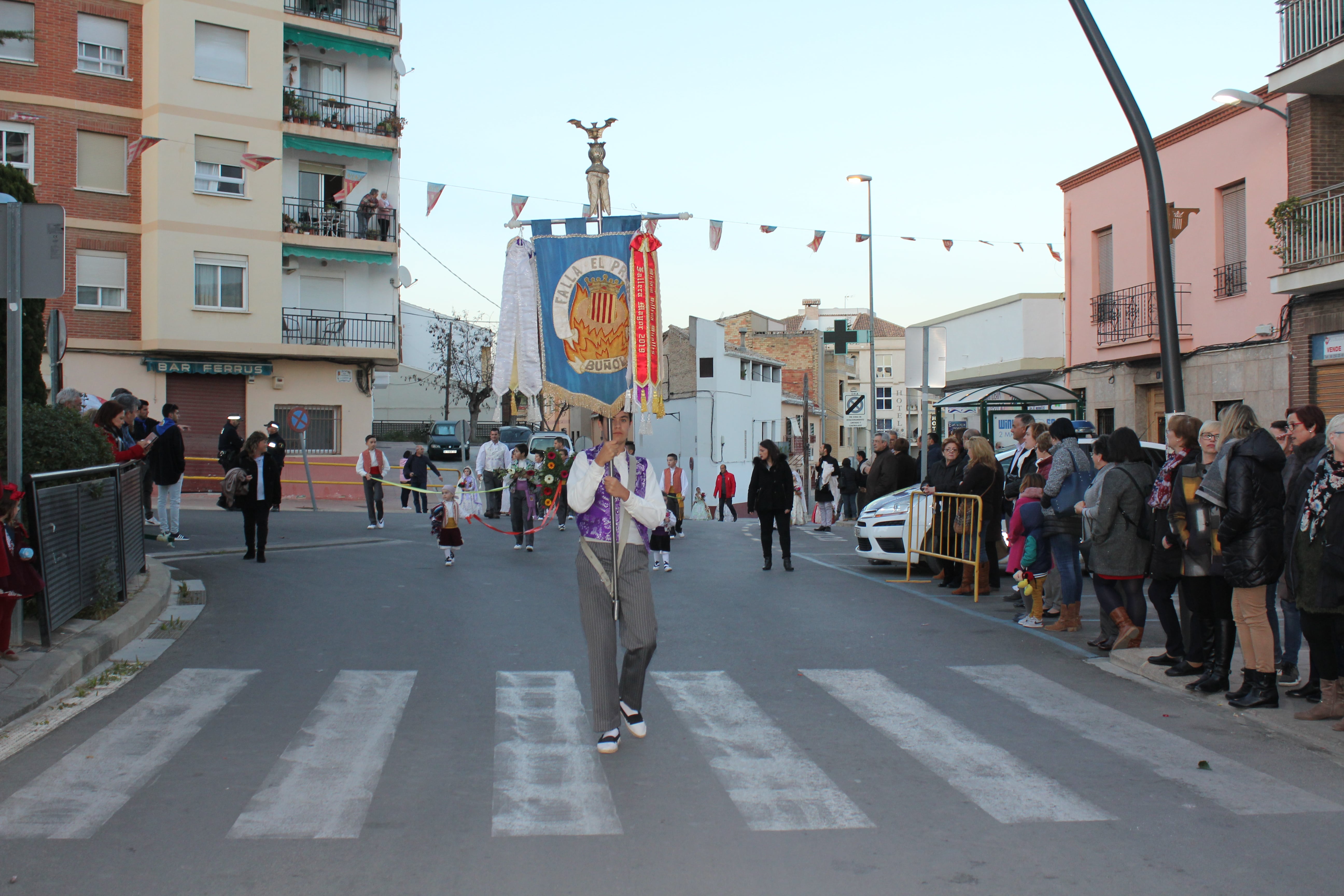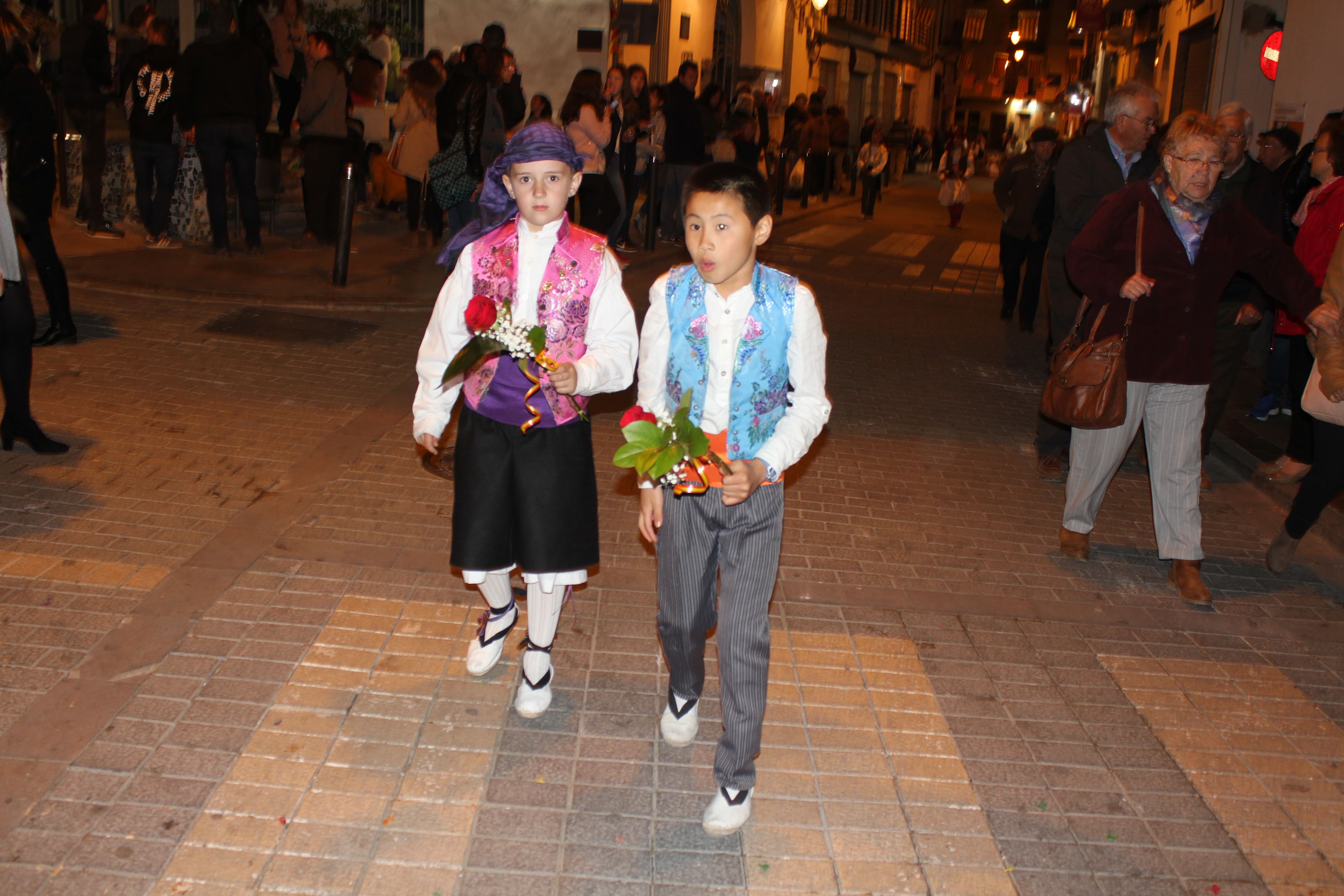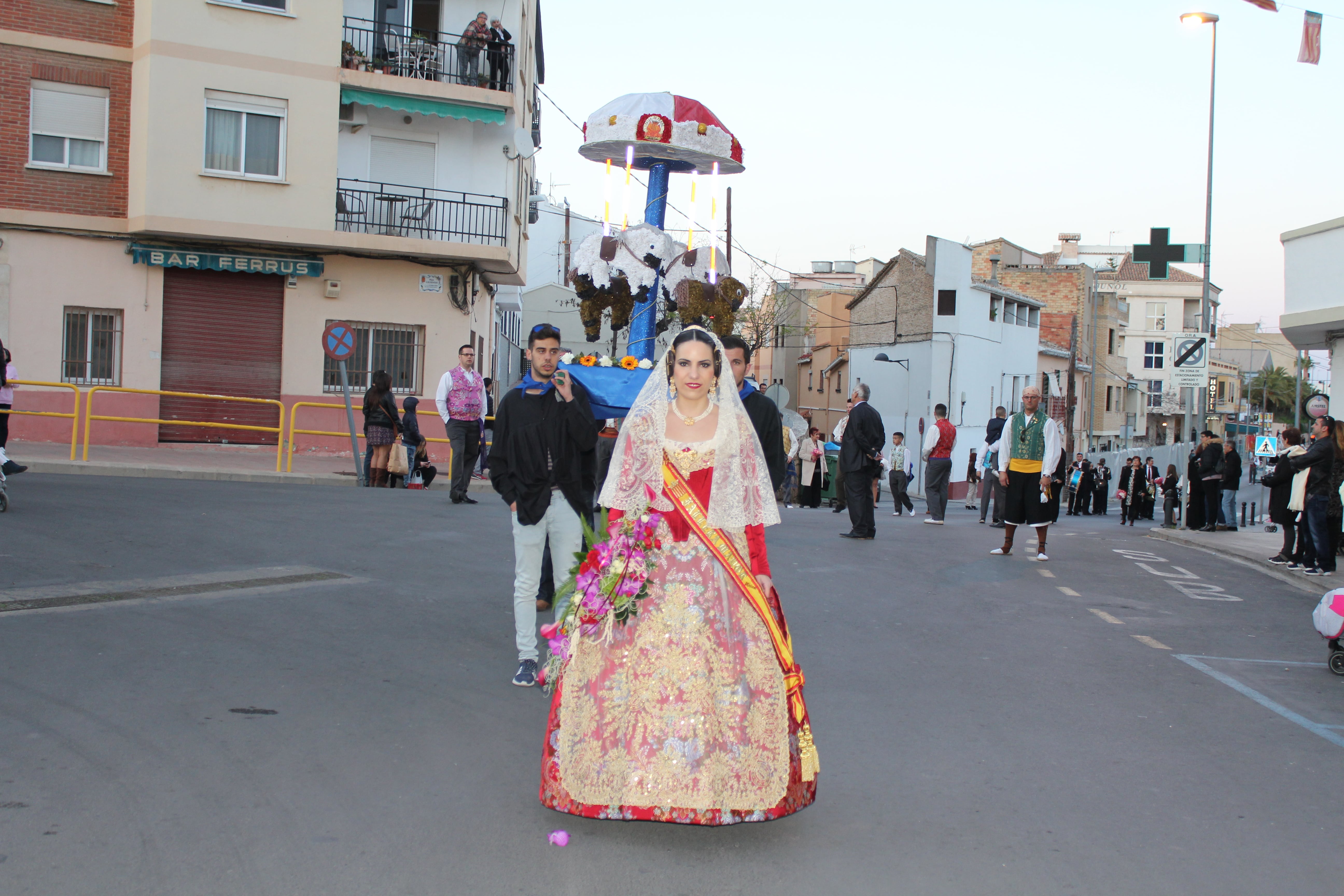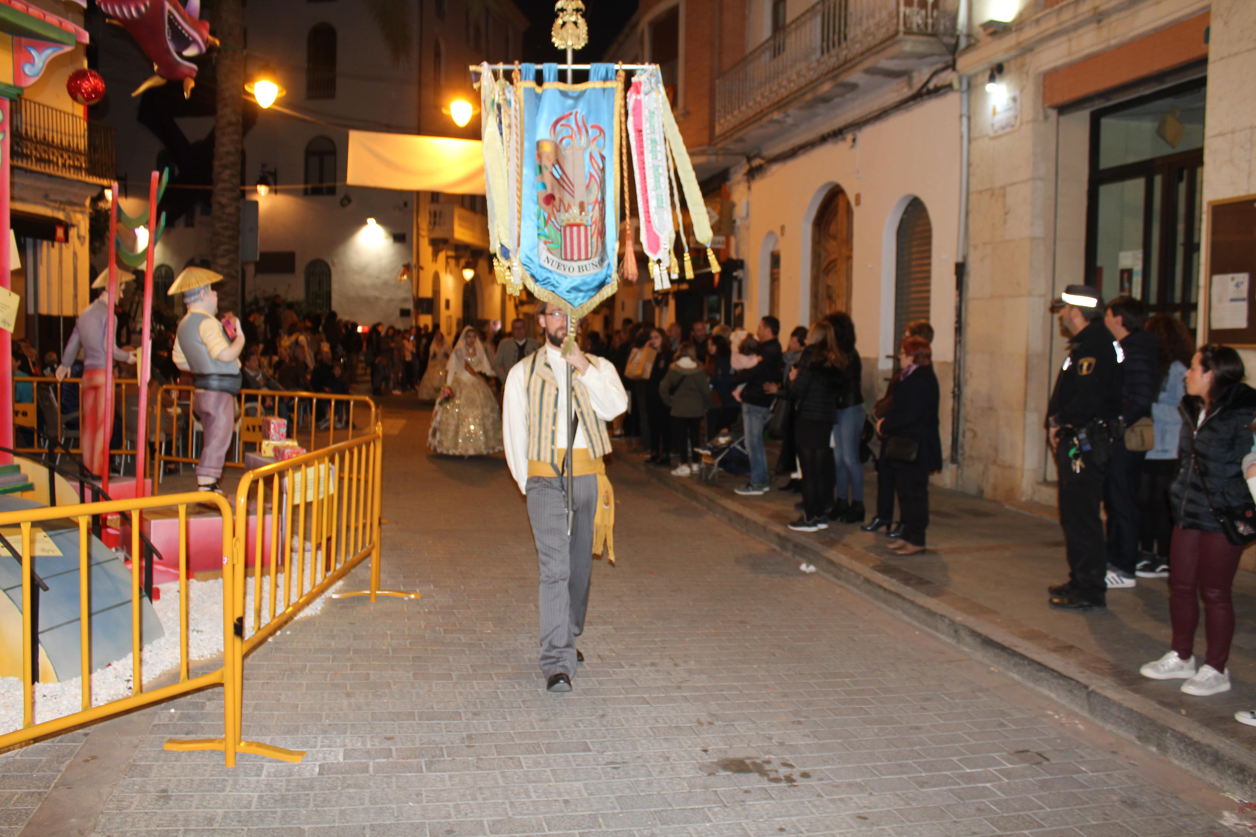 Más tarde, la Fallera Mayor de la Junta Local se trasladó rápidamente a la Avenida de la Violenta desde donde partió la otra de las ofrendas. En esta participaron las fallas Nuevo Buñol, Buñol Pueblo y Reyes Católicos, que han depositado sus ramos, centros y flores, en el retablo colocado en la Iglesia de San Pedro Apóstol, dedicado a la Virgen de los Desamparados. Lara Risueño y Sheila Romero, de Nuevo Buñol, Amparo Gómez, de Reyes Católicos y Claudia Gasull, de Buñol Pueblo, vivieron su momento más especial de estas fiestas, tras ofrendar a la Virgen. Sin duda este es uno de los actos más emotivos de estas fiestas y en el que más participación por parte de todas las comisiones suele haber.
